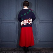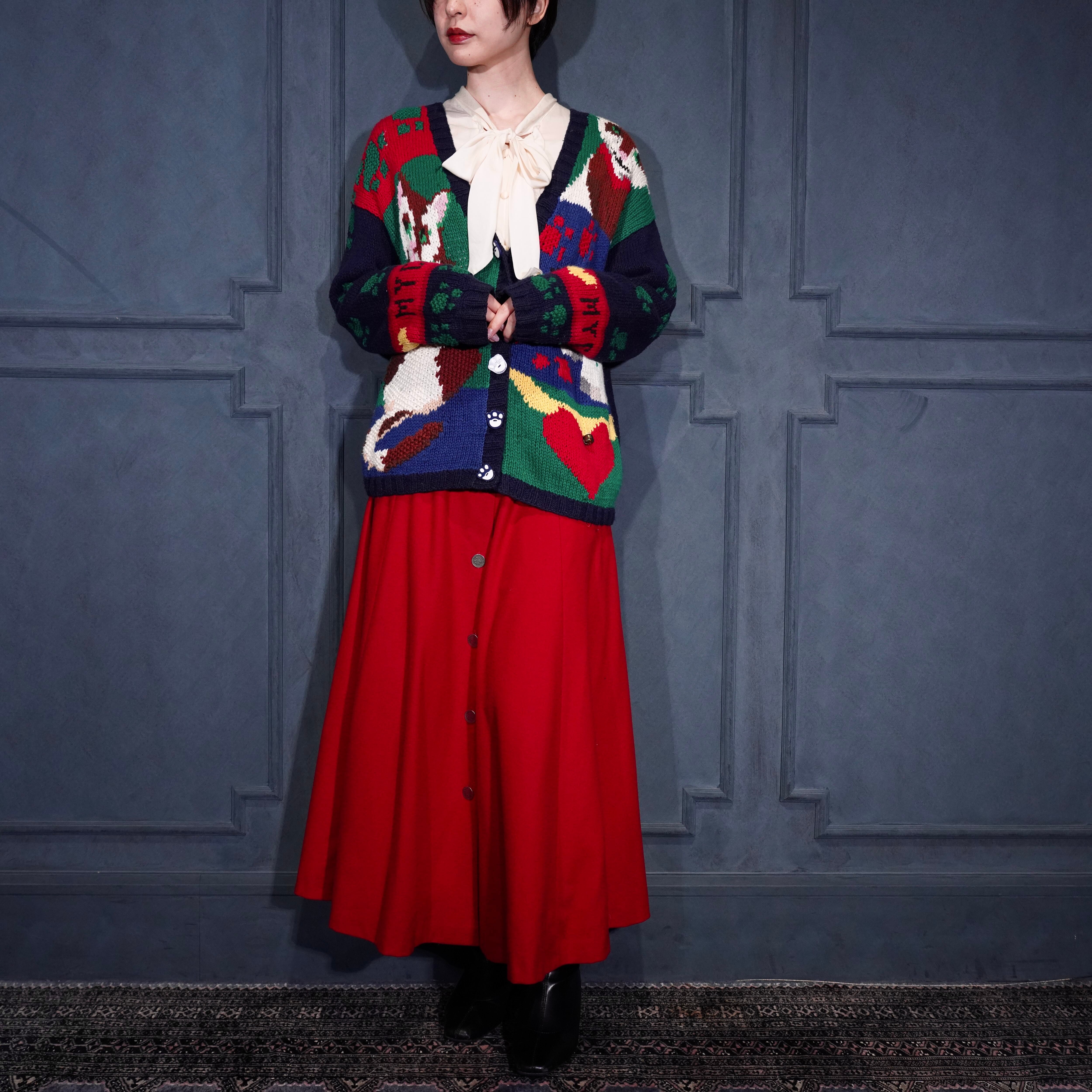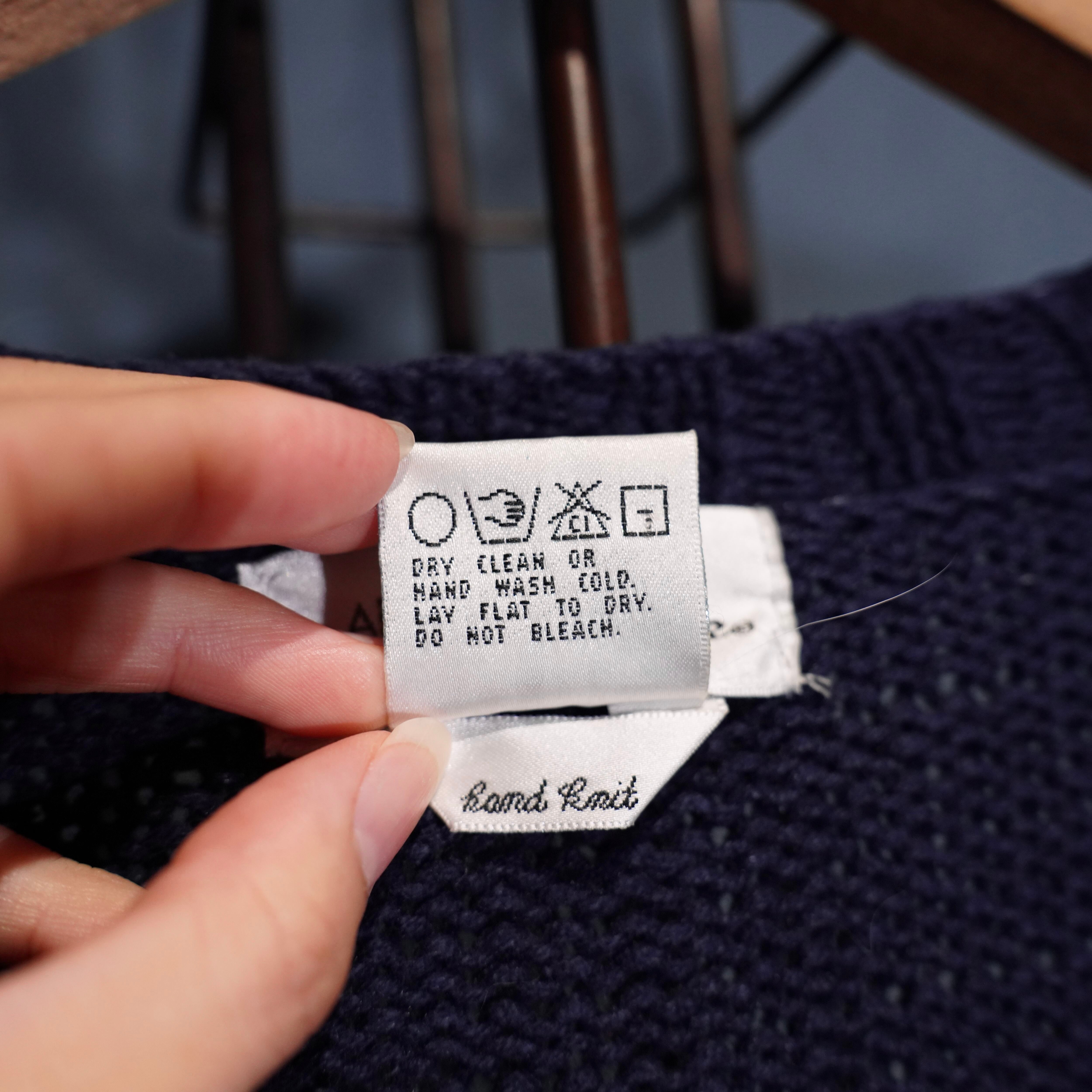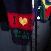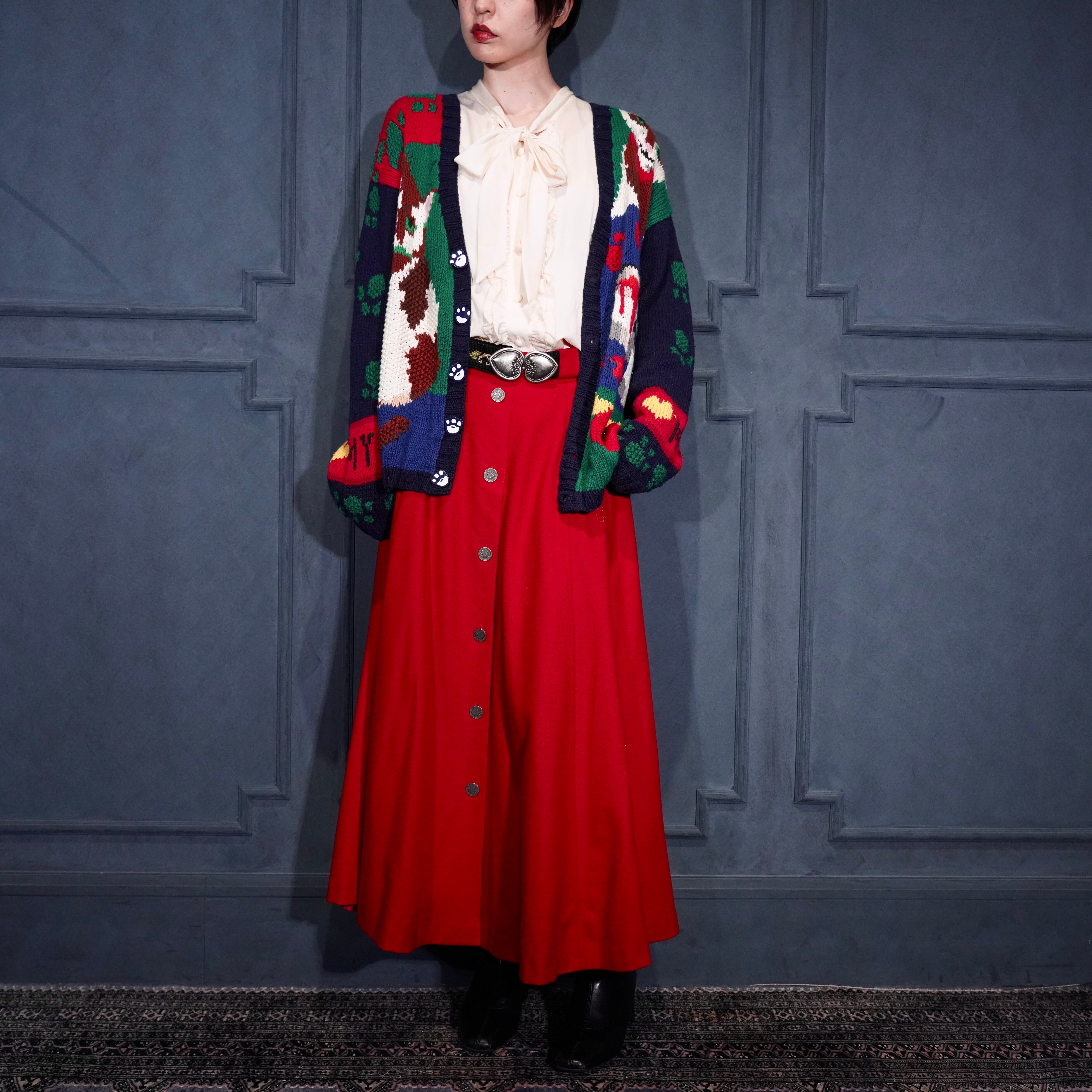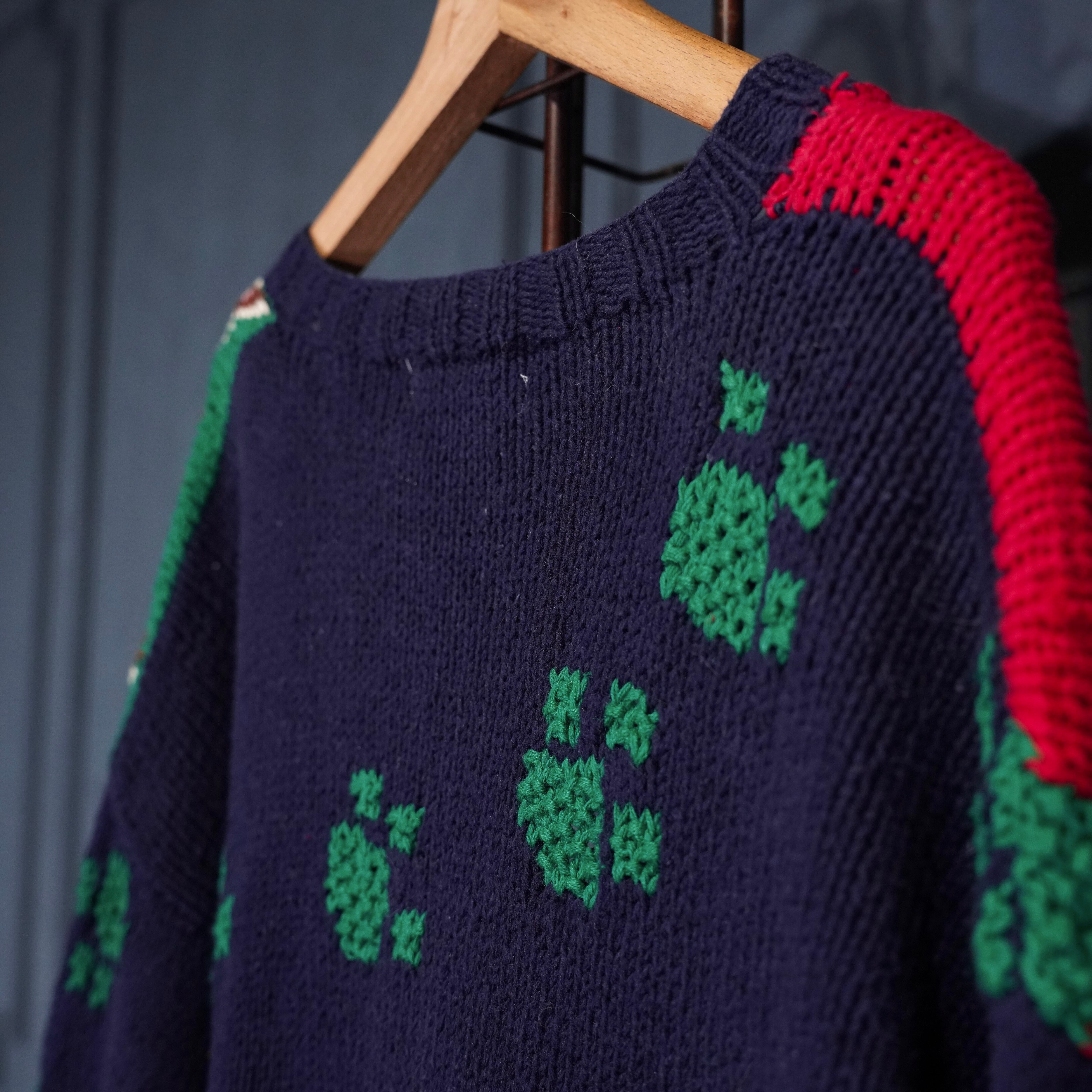 USA VINTAGE ALEXANdRA BARILETT for the eagle's eye CAT DESIGN COTTON RAMIE HAND KNIT CARDIGAN/アメリカ古着にゃんこデザインコットンラミーハンドニットカーディガン
