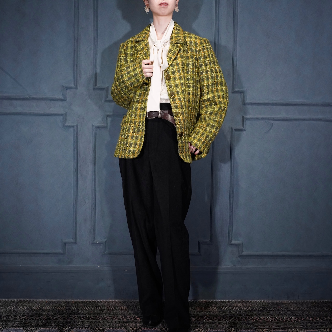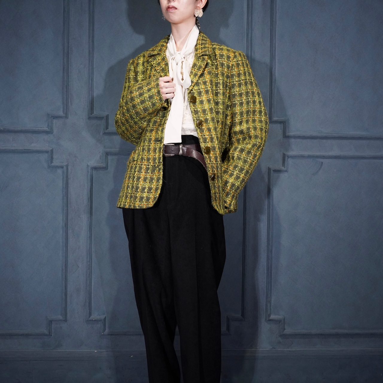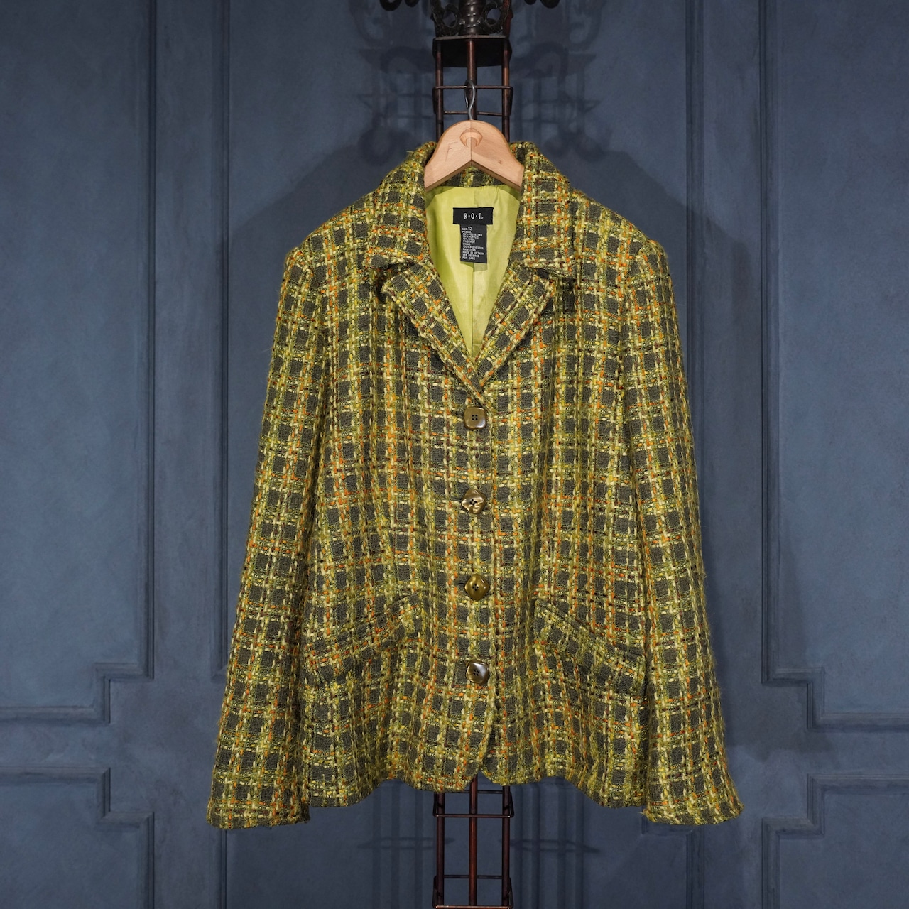 USA VINTAGE R・Q・T CHECK PATTERNED TWEED TAILORED JACKET/アメリカ古着チェック柄ツイードジャケット