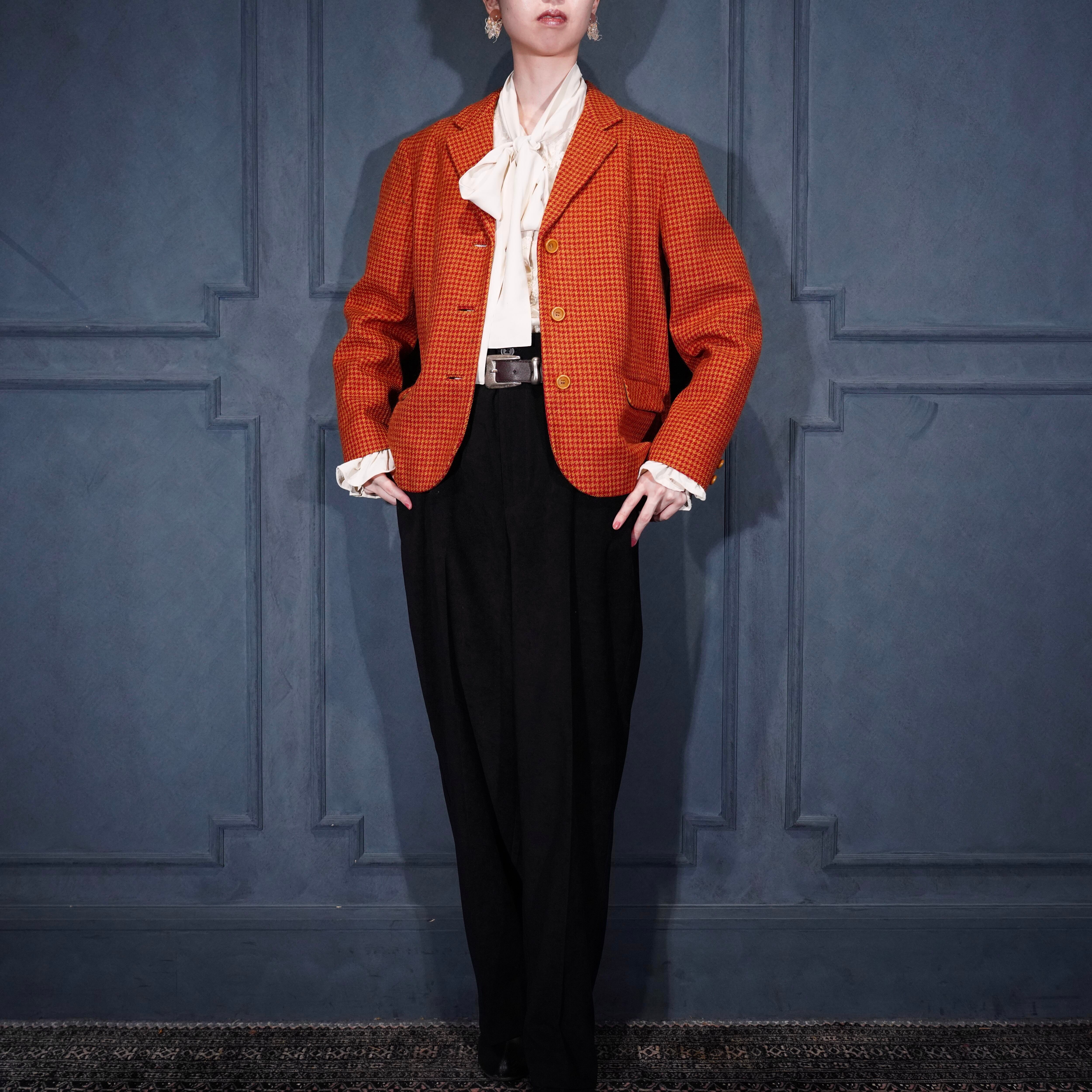 USA VINTAGE corner house HOUNDTOOTH PATTERNED DESIGN WOOL TAILORED JACKET/アメリカ古着千鳥格子柄デザインウールテーラードジャケット