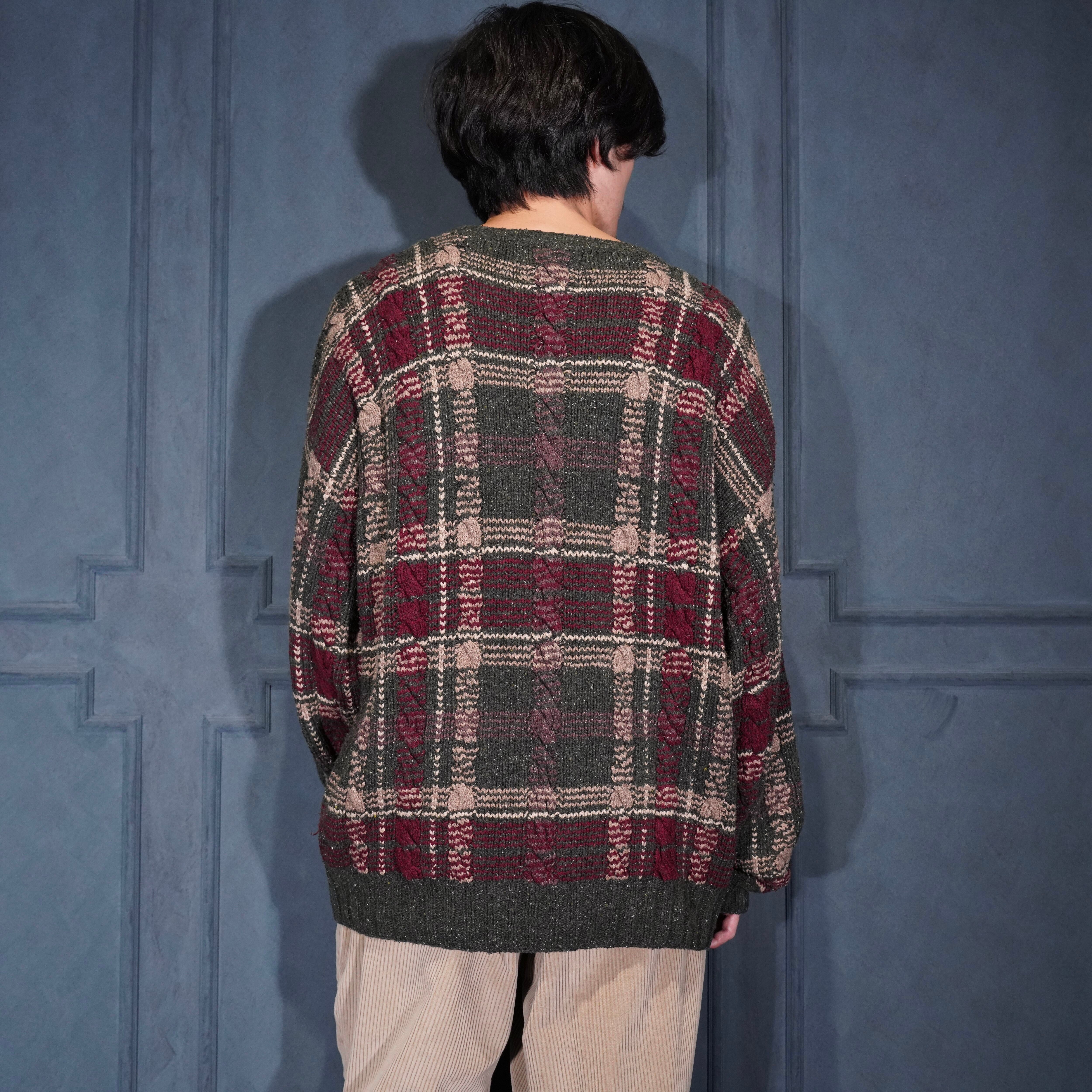 USA VINTAGE ROUNDTREE&YORKE CHECK PATTERNED SILK COTTON WOOL HAND KNIT/アメリカ古着チェック柄シルクコットンウールハンドニット