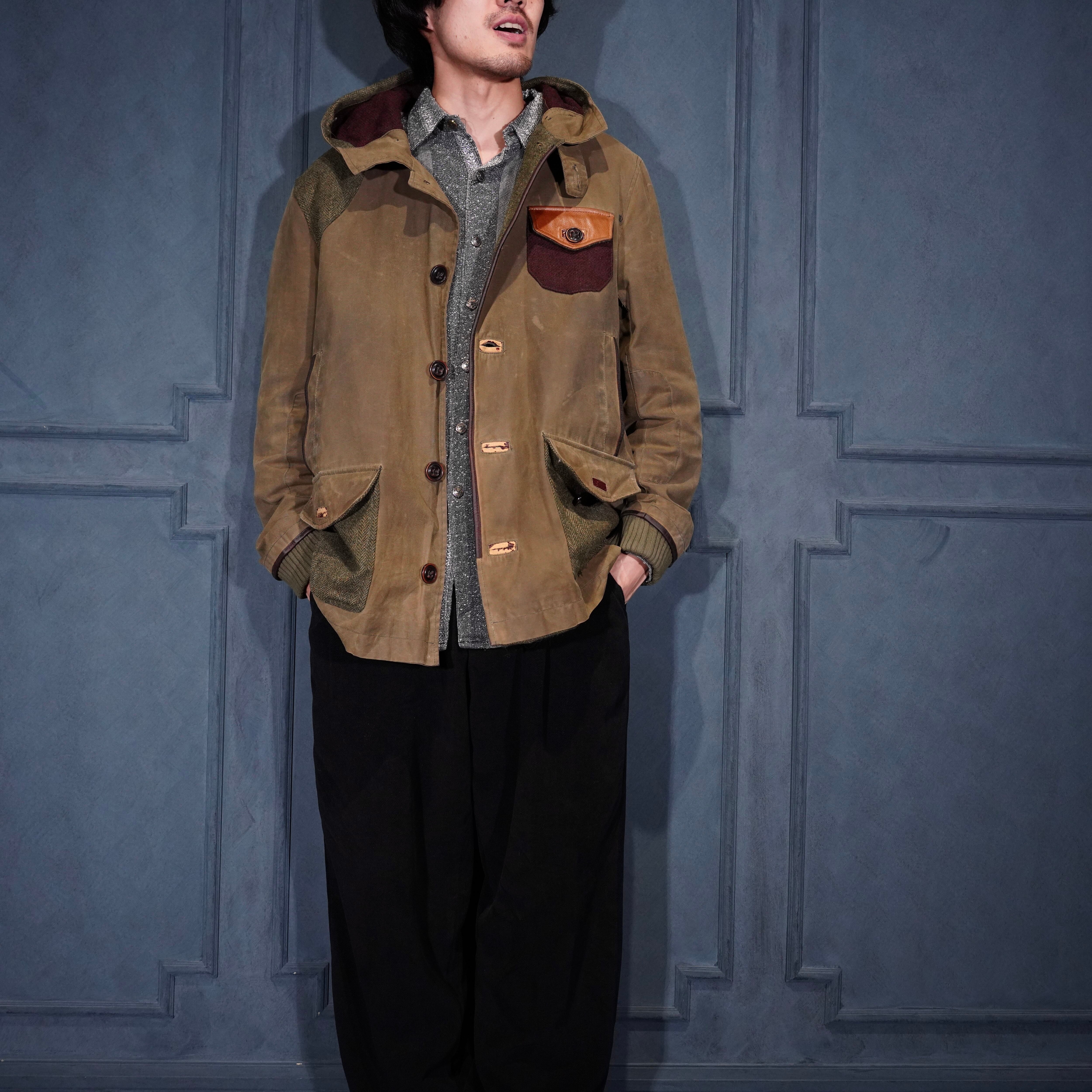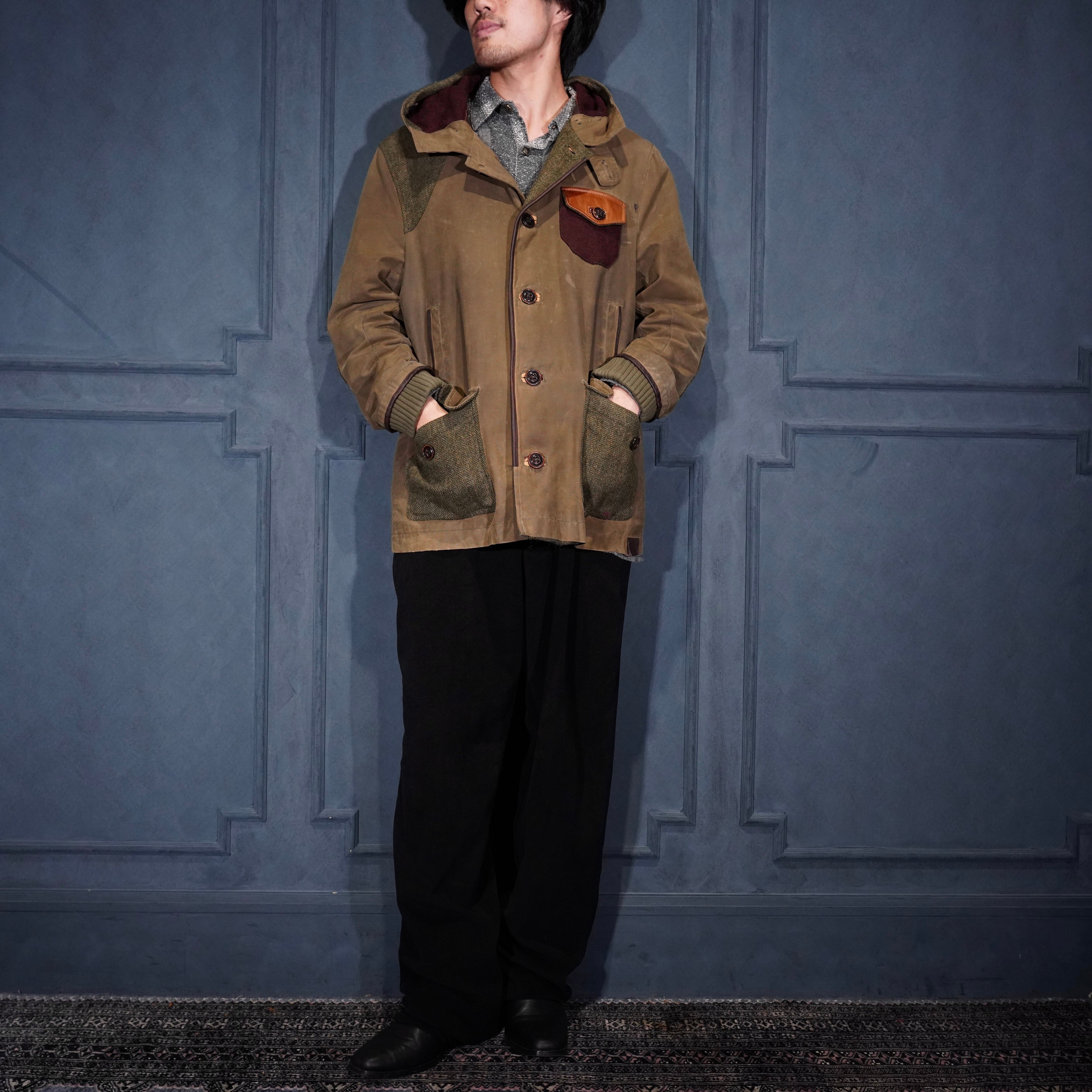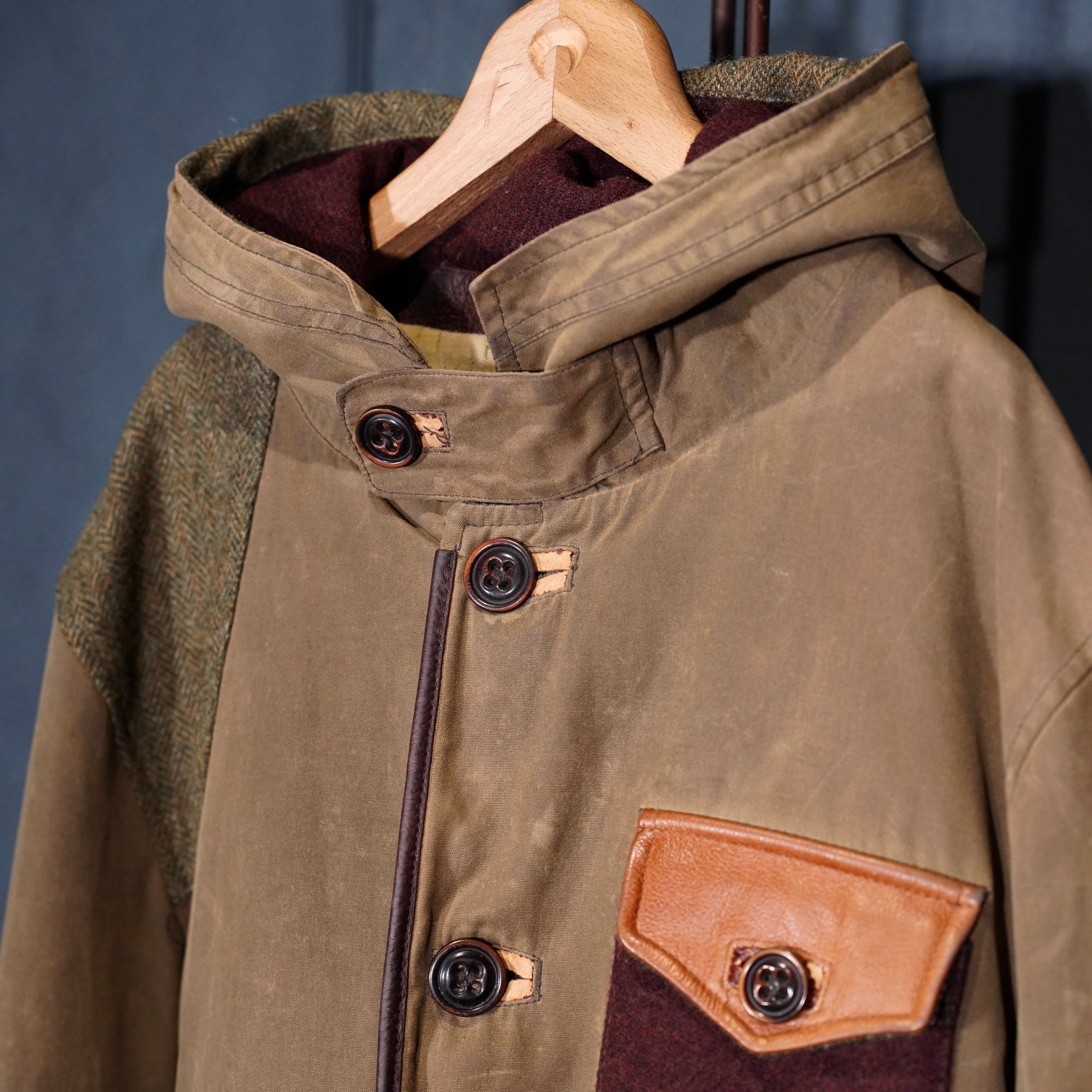 USA VINTAGE HOLLOWAY.RD TWEED POCKET DESIGN HOODIE OILED JACKET/アメリカ古着ツイードポケットデザインフーディオイルドジャケット