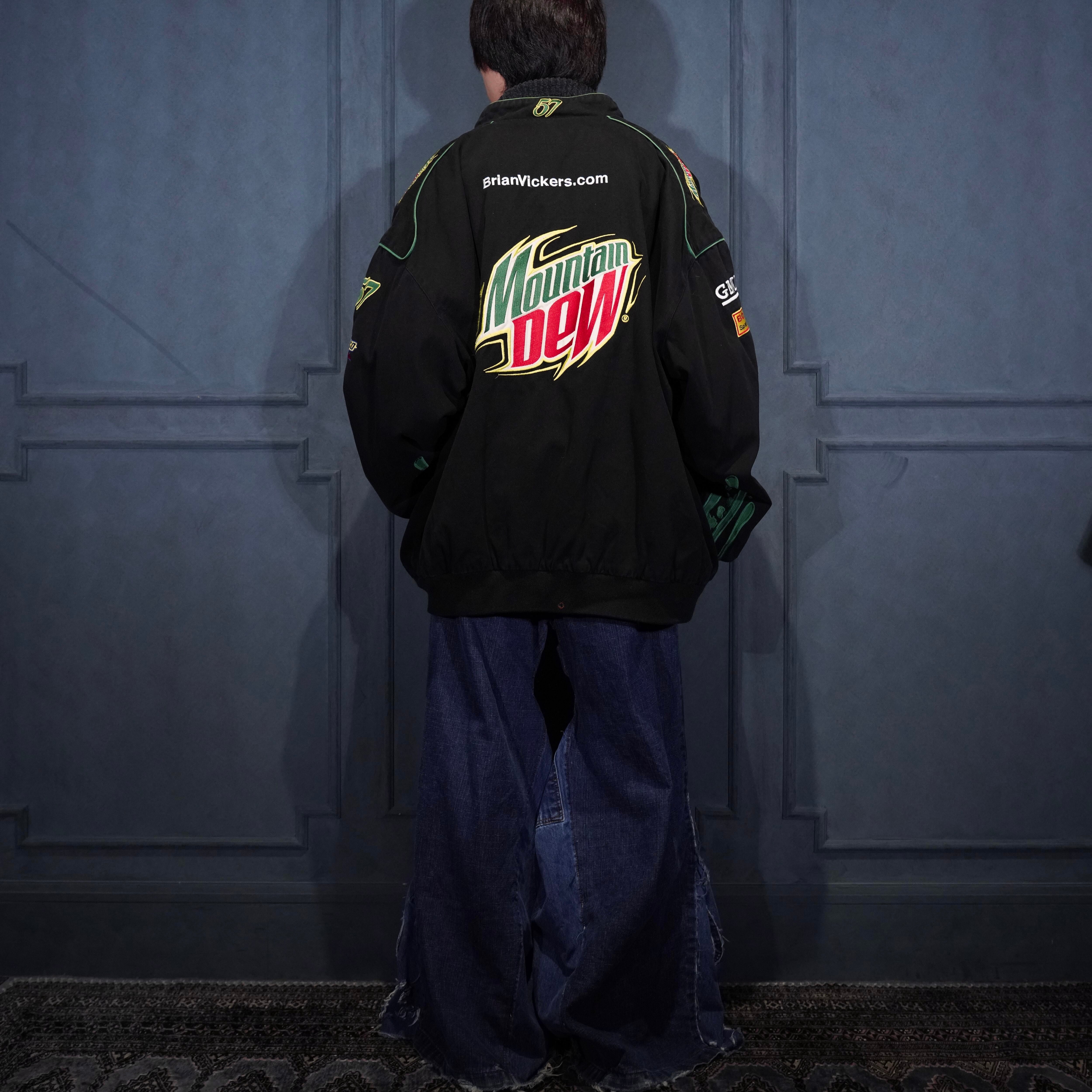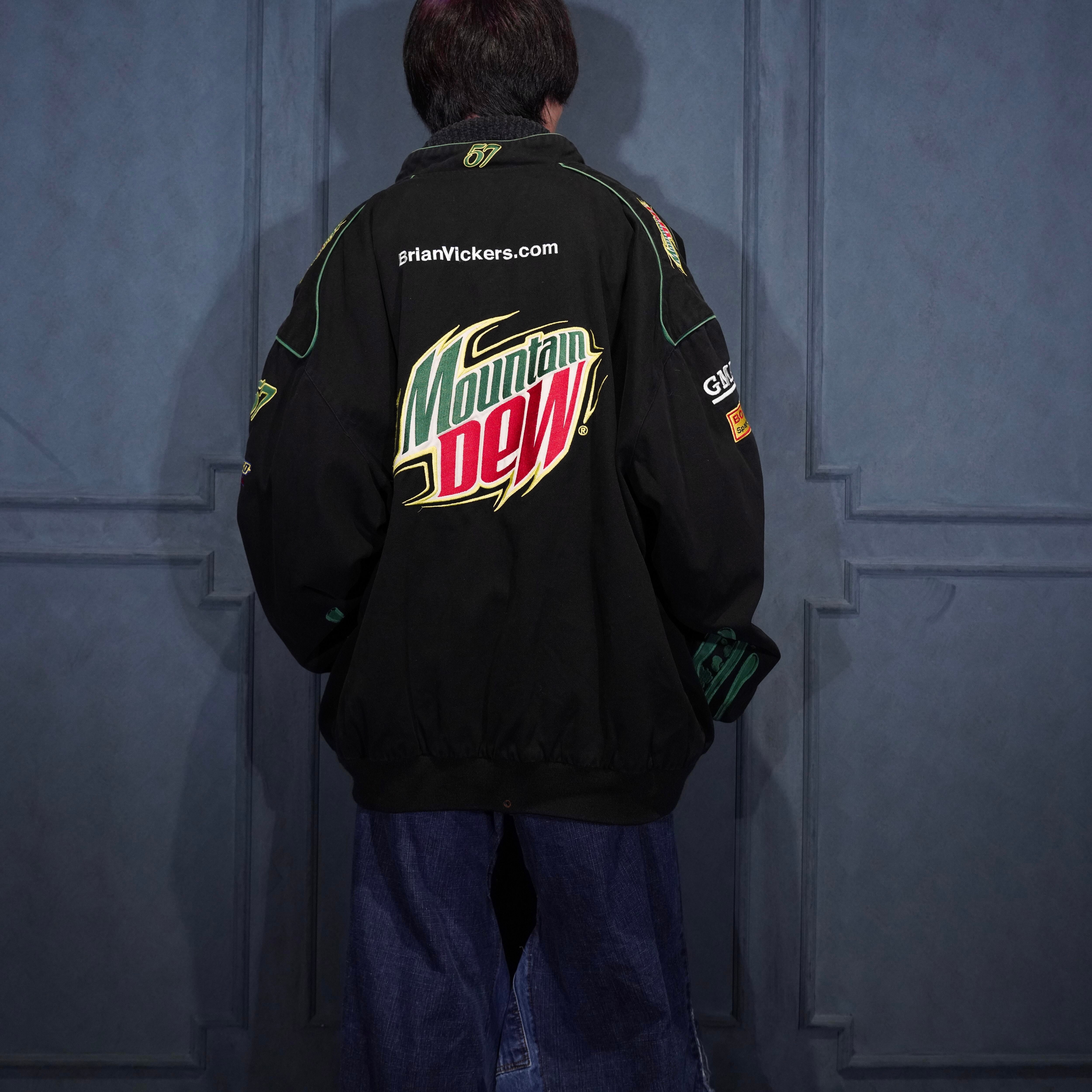 *SPECIAL ITEM* USA VINTAGE JH DESIGN JEFF HAMILTON Mountain Dew EMBROIDERY DESIGN COTTON STADIUM JUMPER/アメリカ古着ジェフハミルトンマウンテンデュー刺繍デザインコットンスタジャン