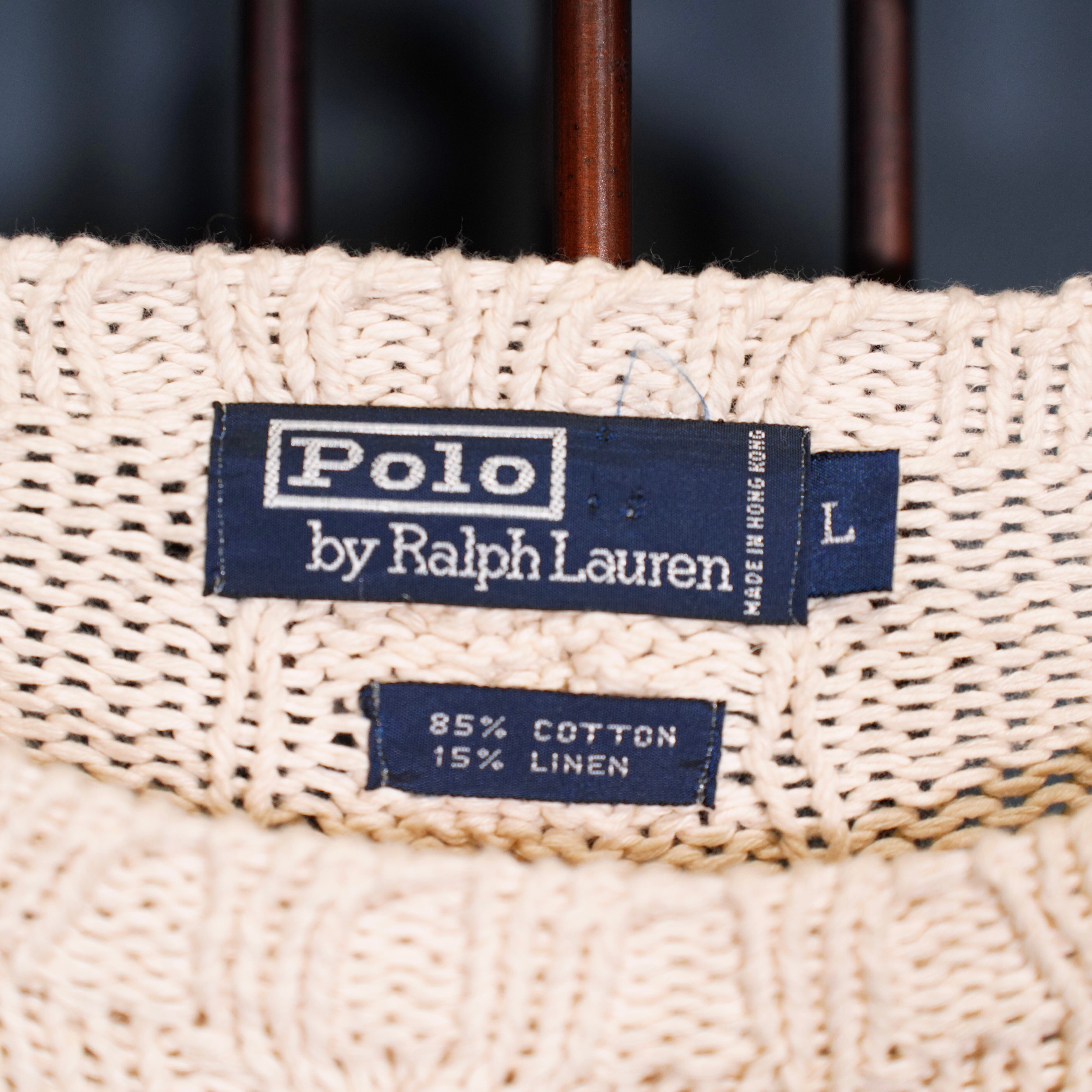 USA VINTAGE Polo by Ralph Lauren CABLE DESIGN COTTON LINEN KNIT/アメリカ古着ポロバイラルフローレンケーブルデザインコットンリネンニット