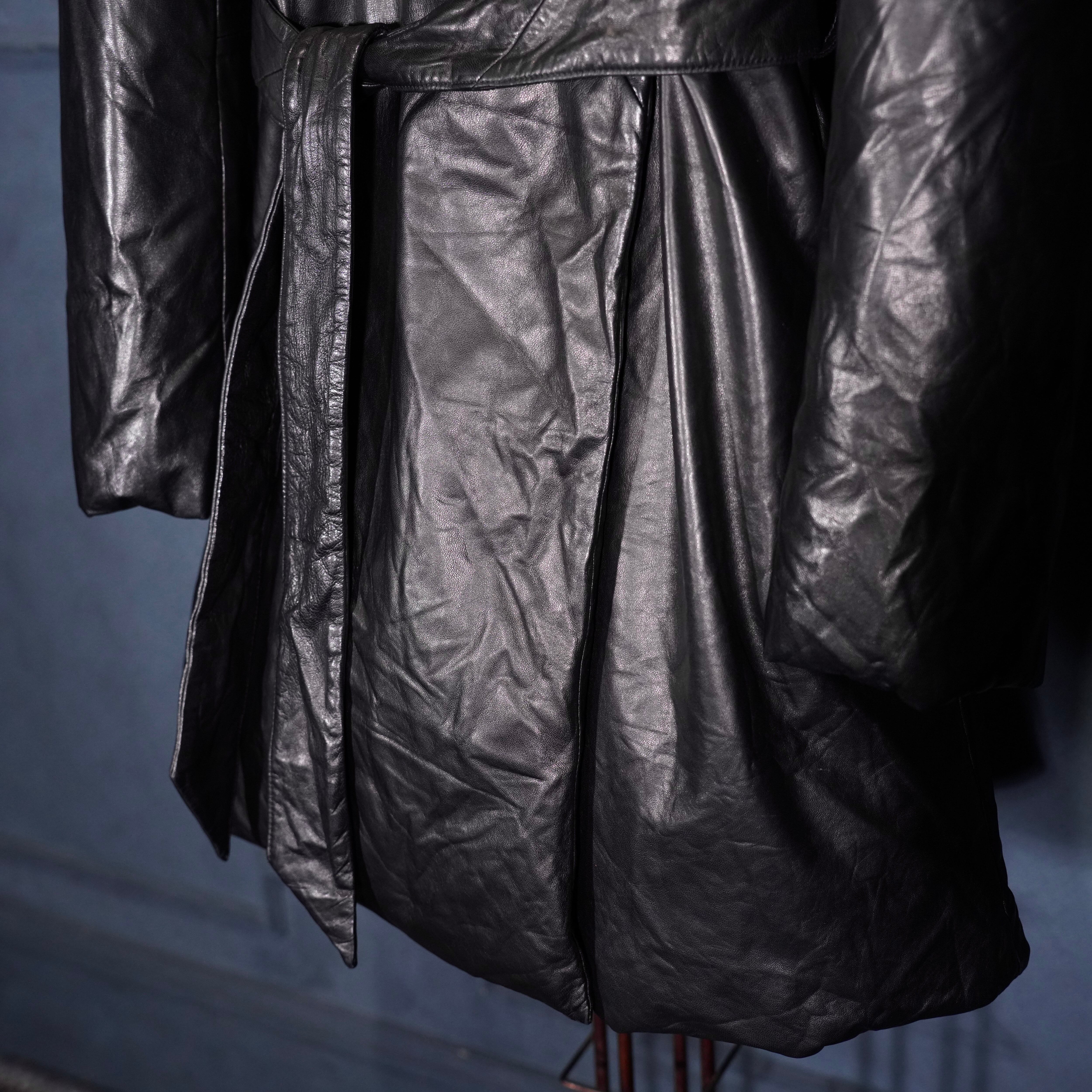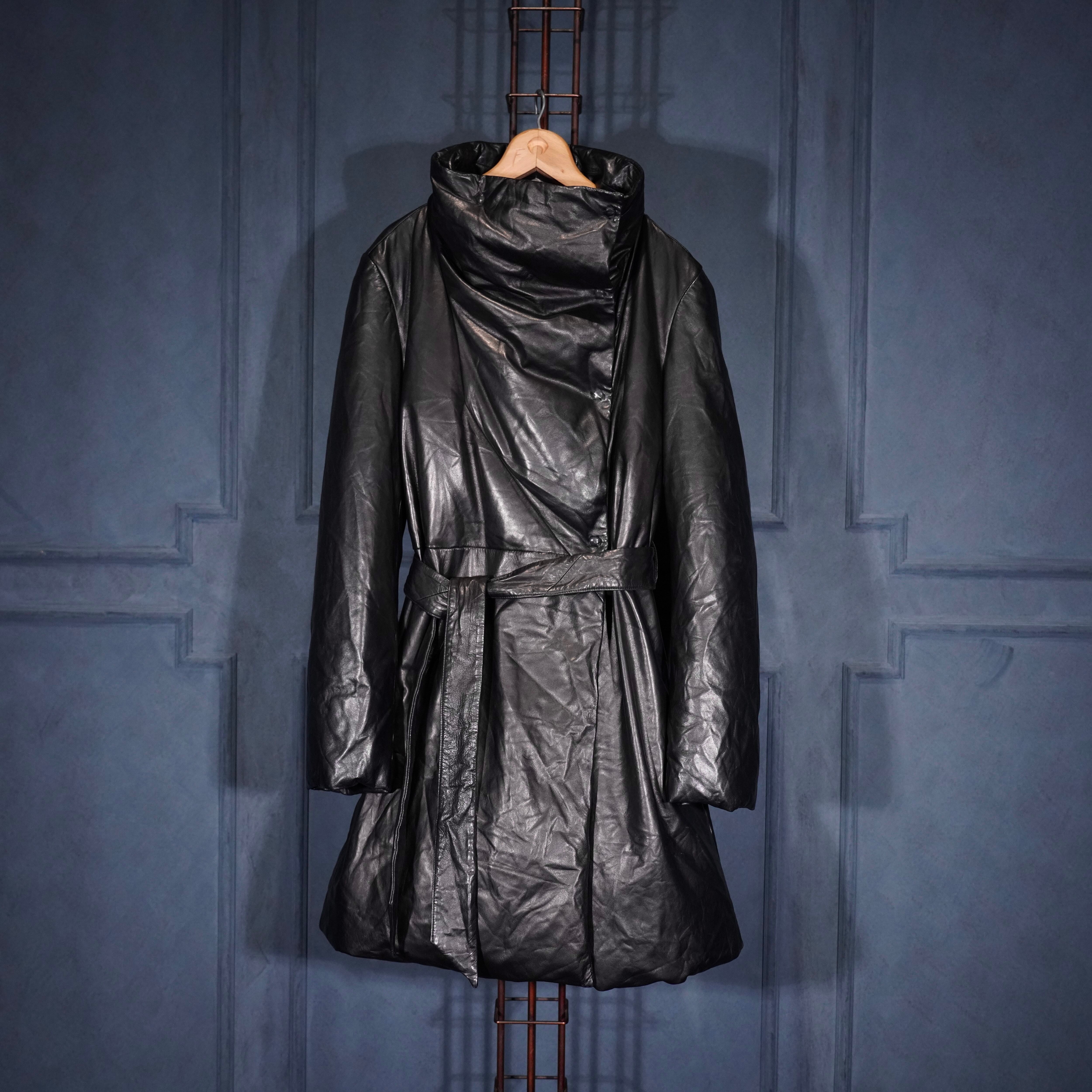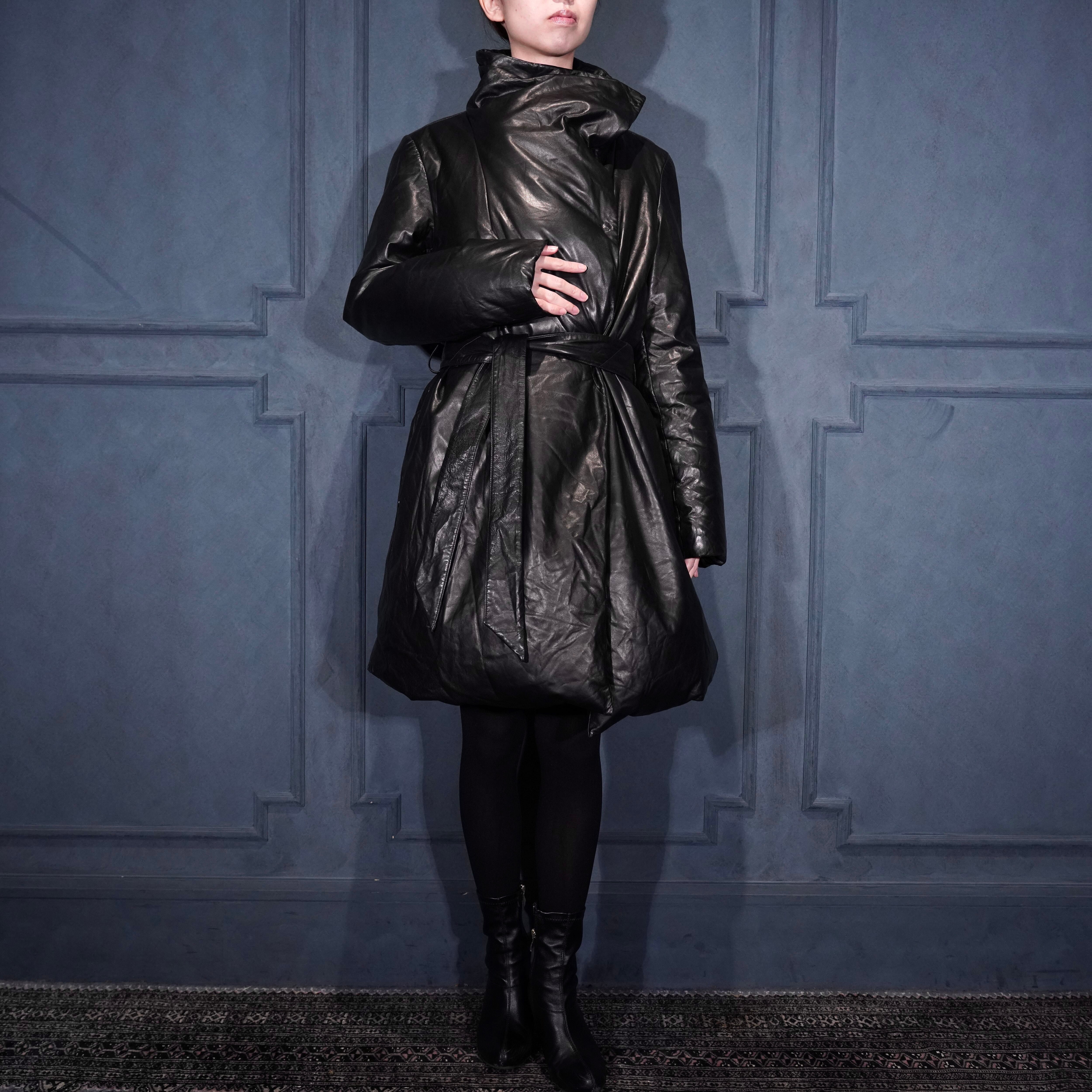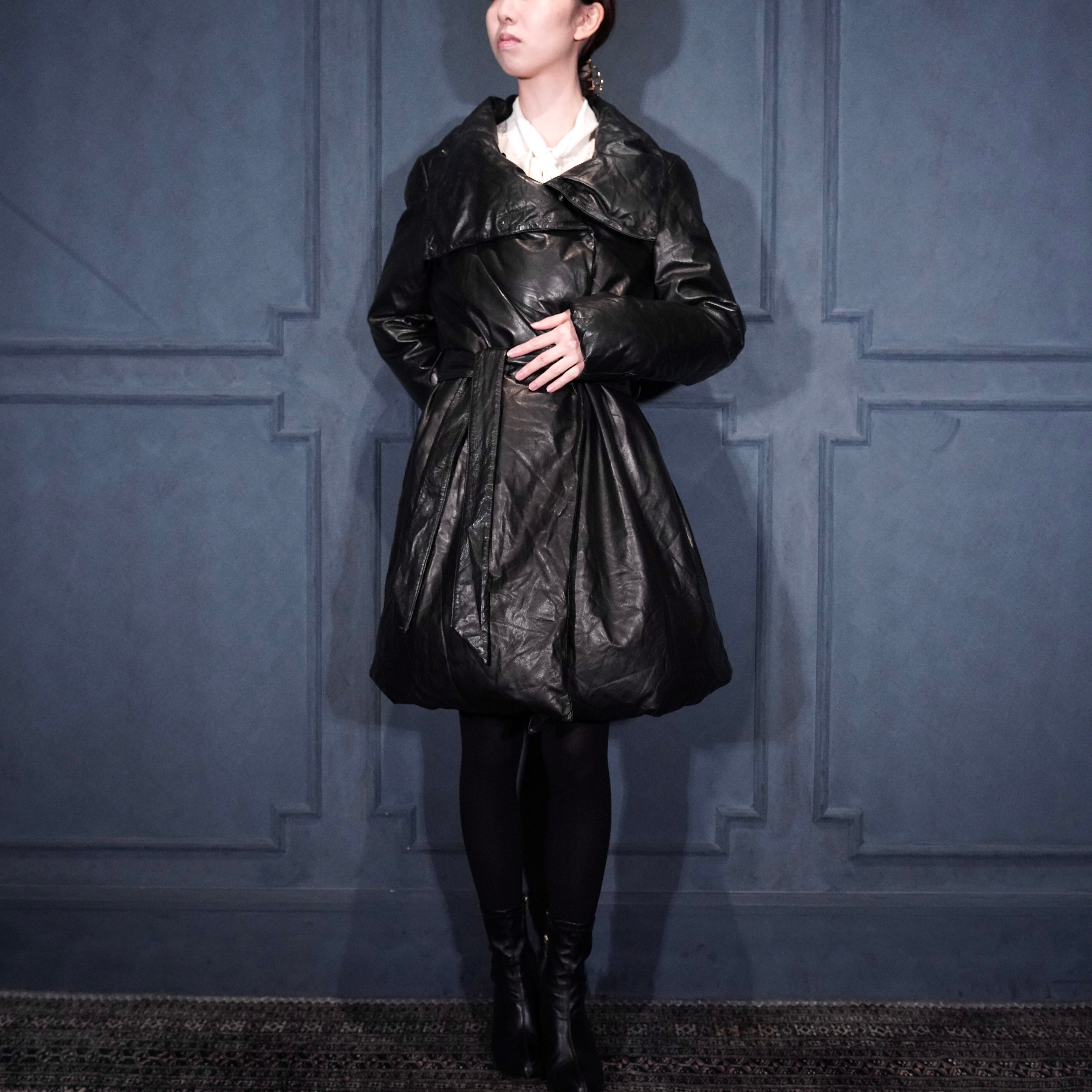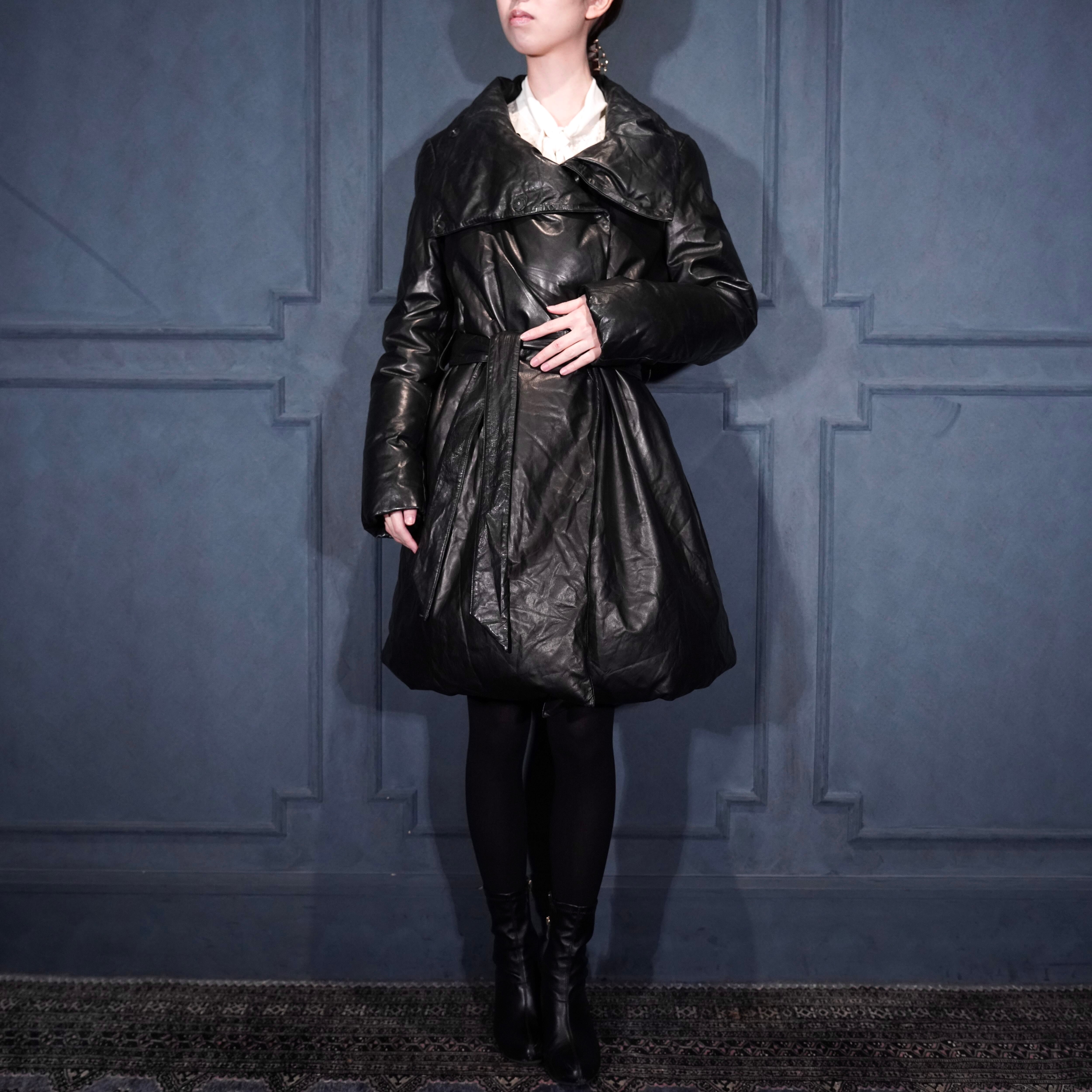 EMPORIO ARMANI 2WAY VOLUME NECK BELTED LEATHER DOWN COAT/エンポリオアルマーニ2wayボリュームネックベルテッドダウンコート