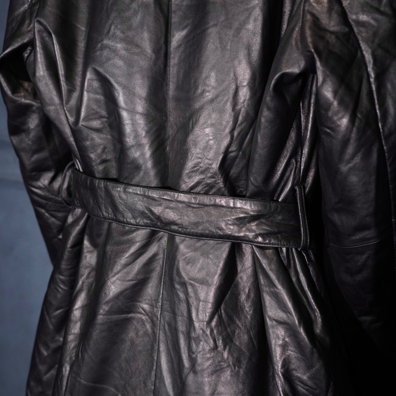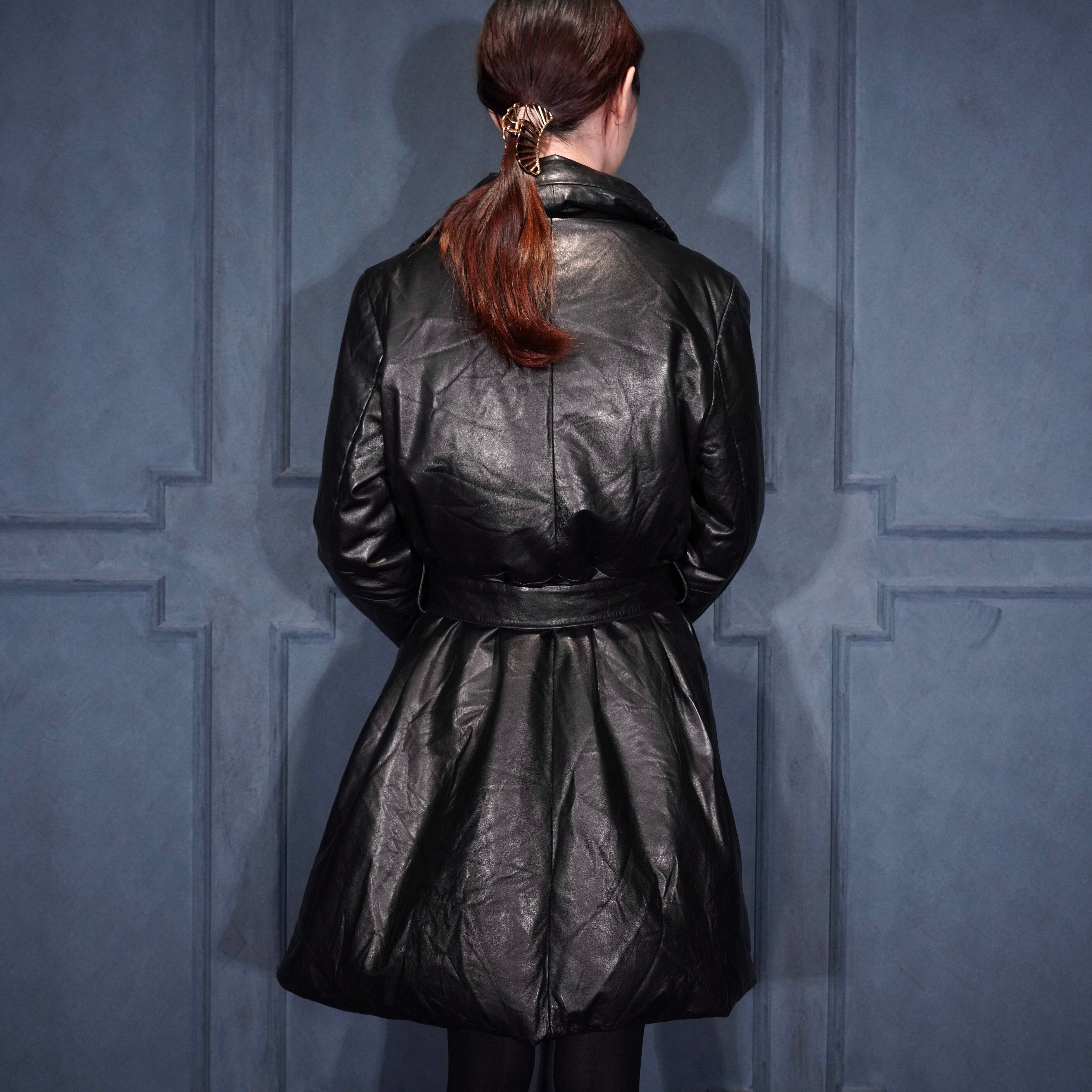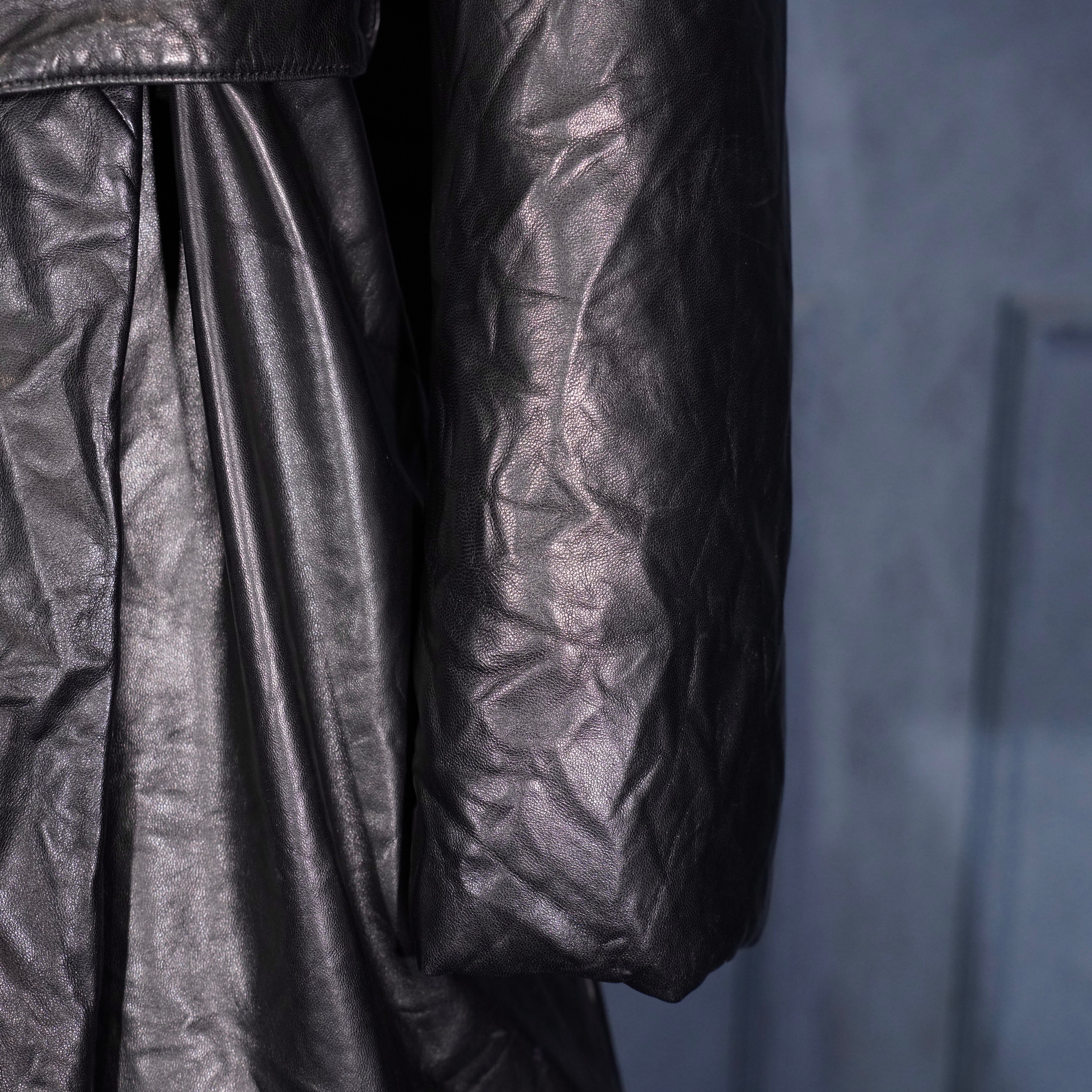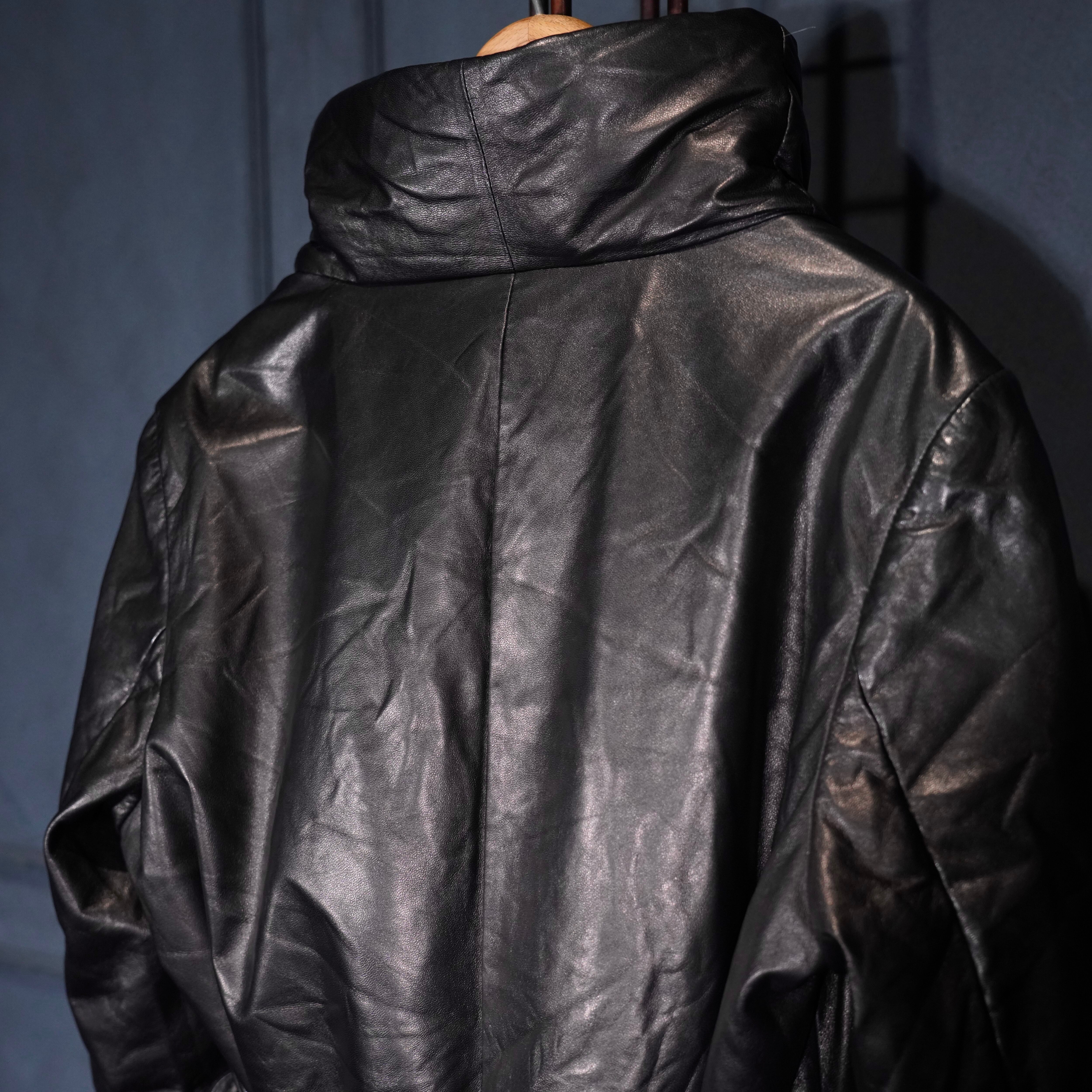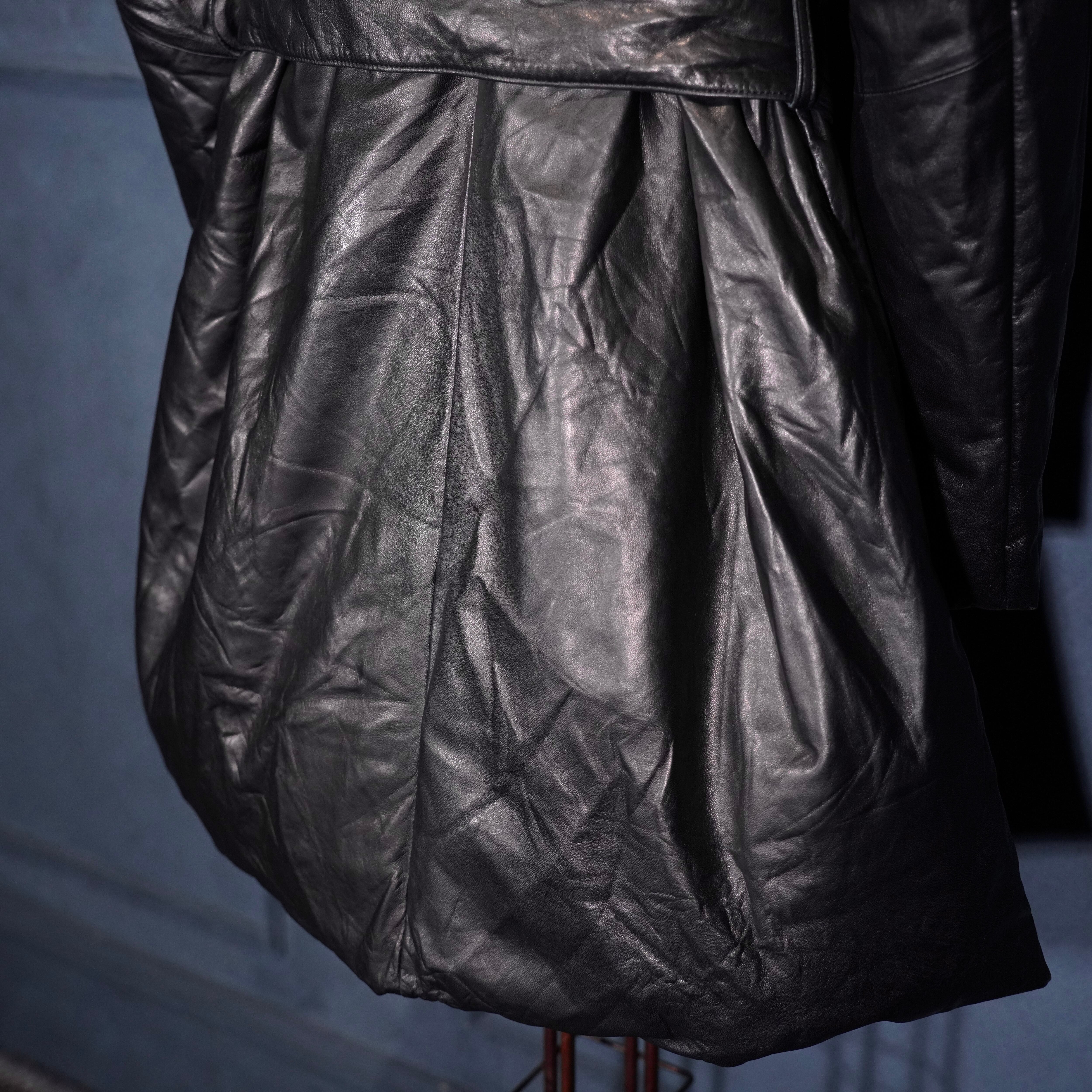 EMPORIO ARMANI 2WAY VOLUME NECK BELTED LEATHER DOWN COAT/エンポリオアルマーニ2wayボリュームネックベルテッドダウンコート