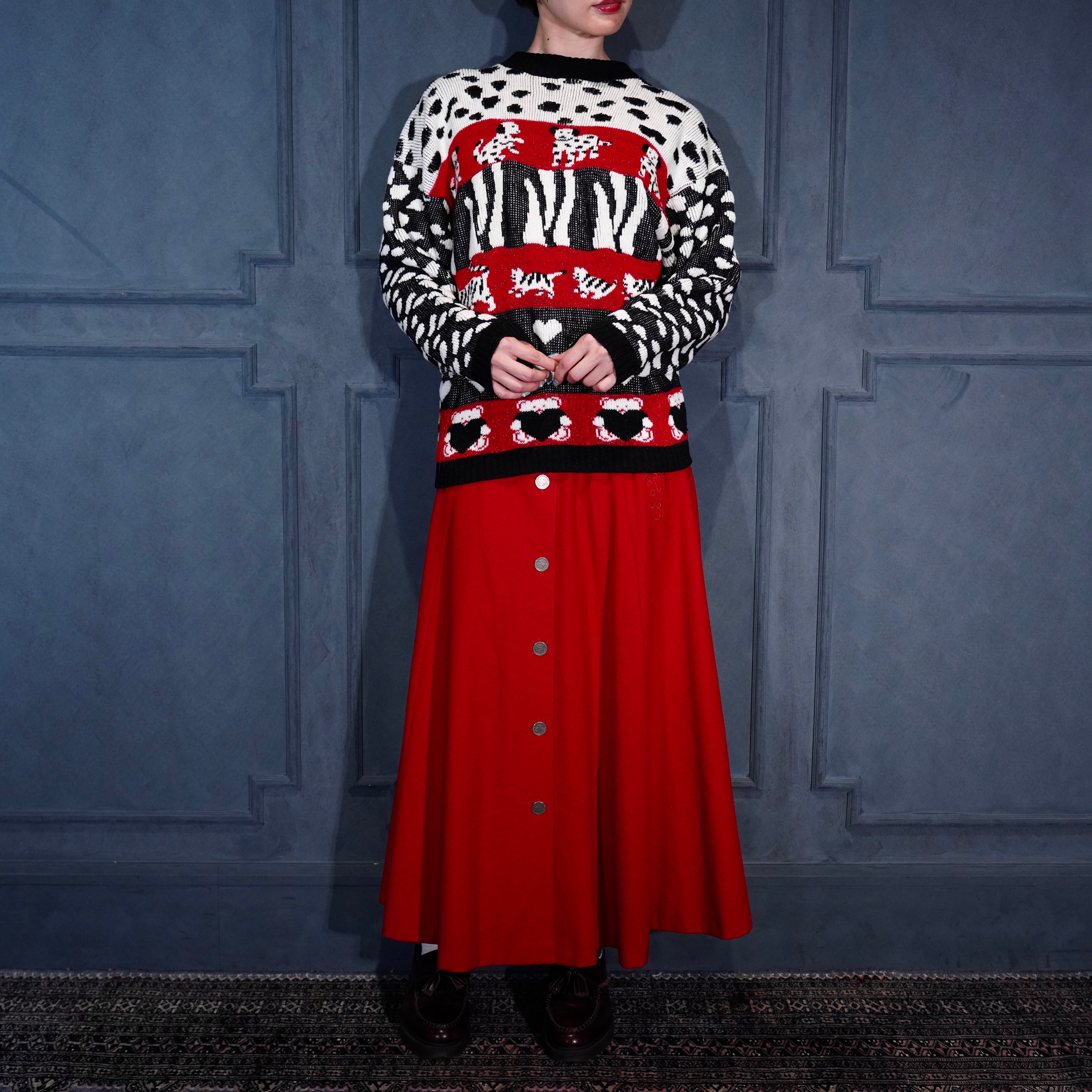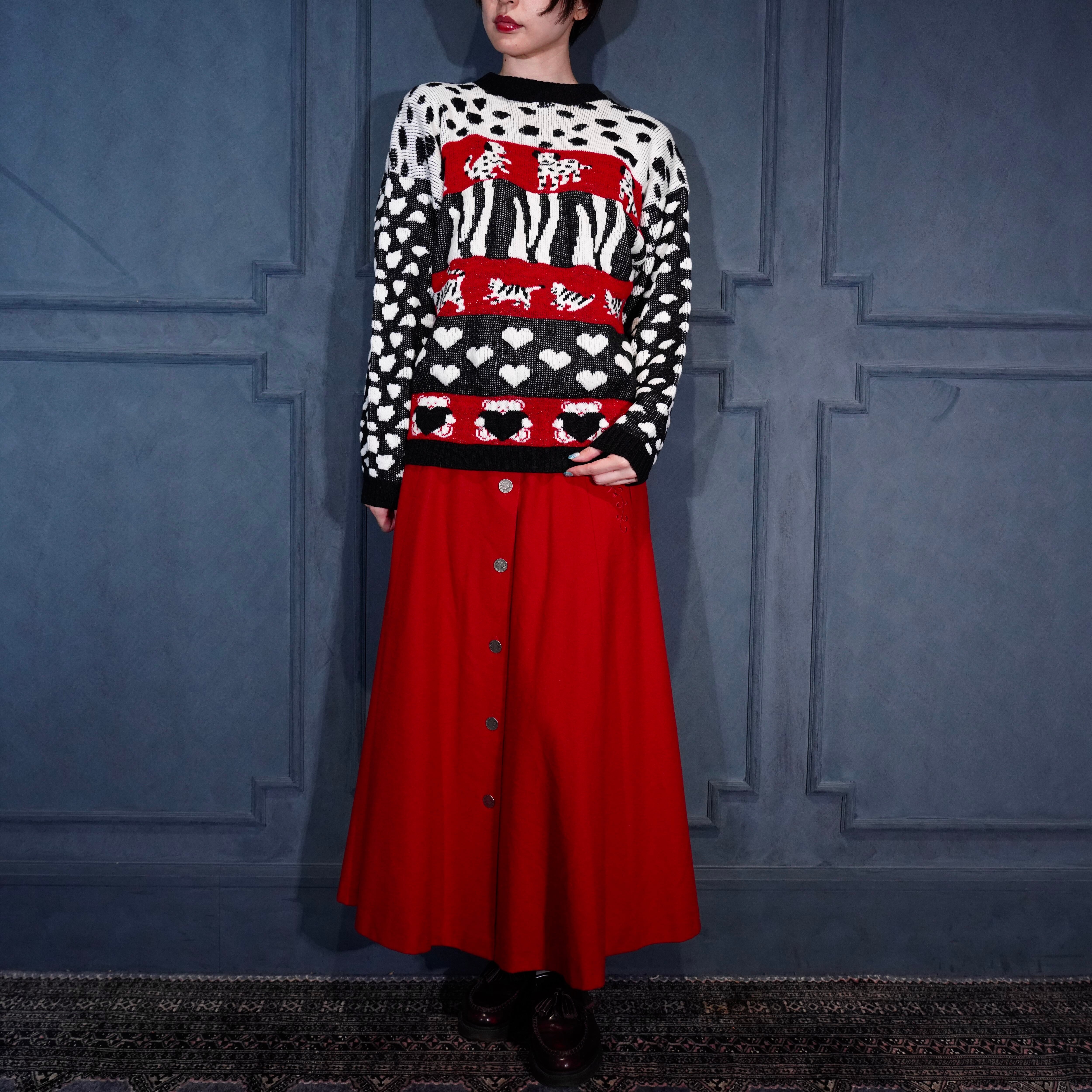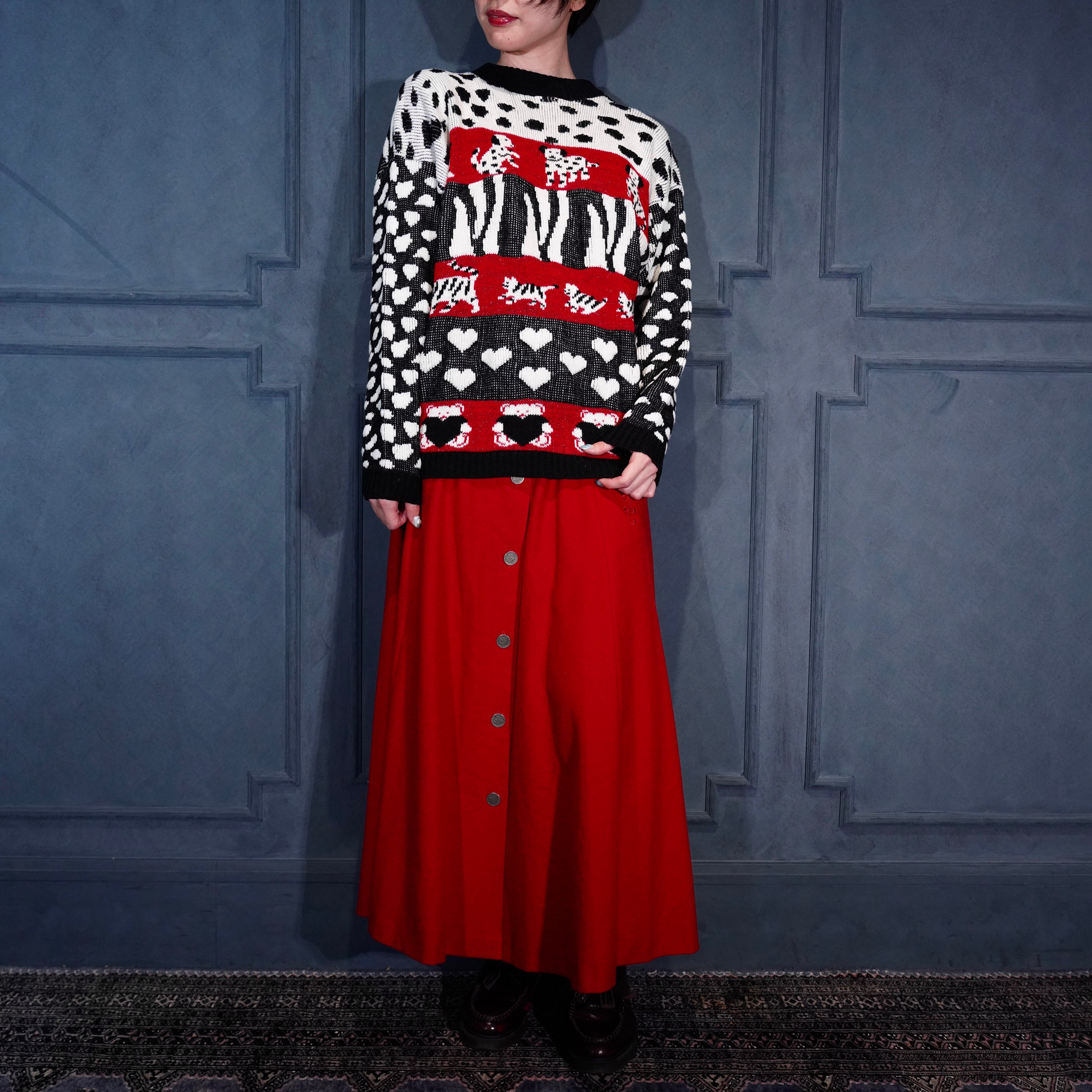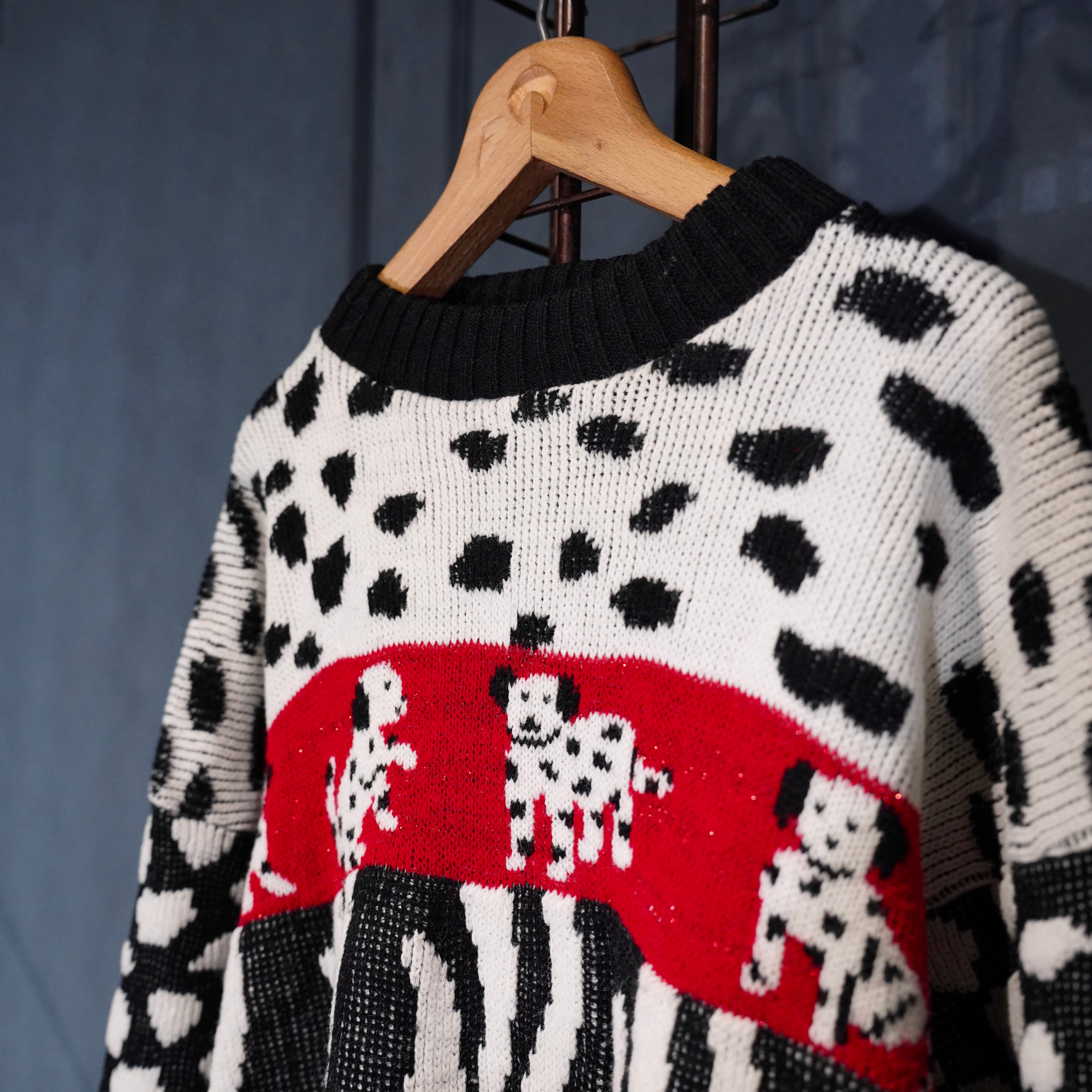 USA VINTAGE Custom Design CAT&DOG&TEDDY BEAR DESIGN KNIT/アメリカ古着にゃんことわんことテディベアデザインニット