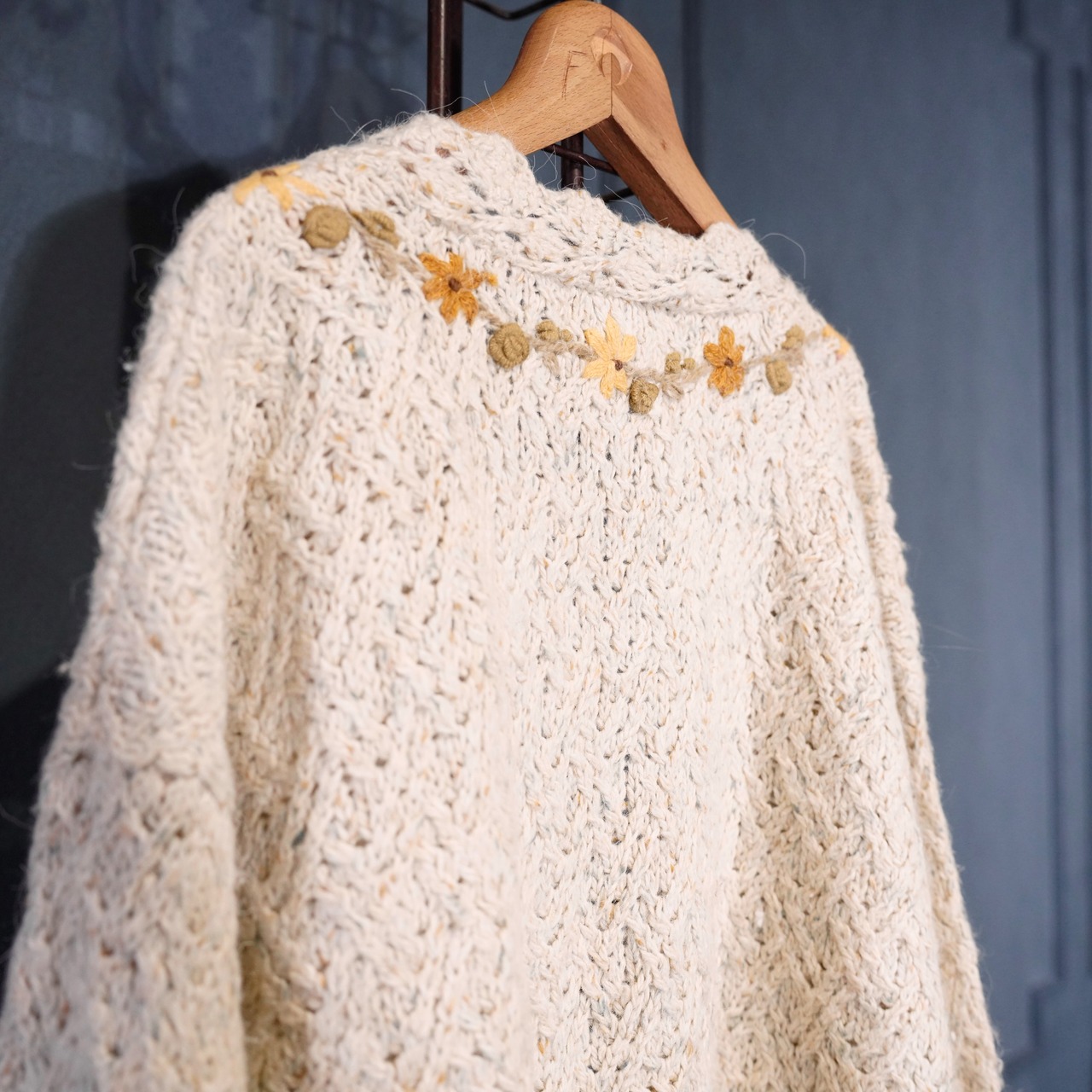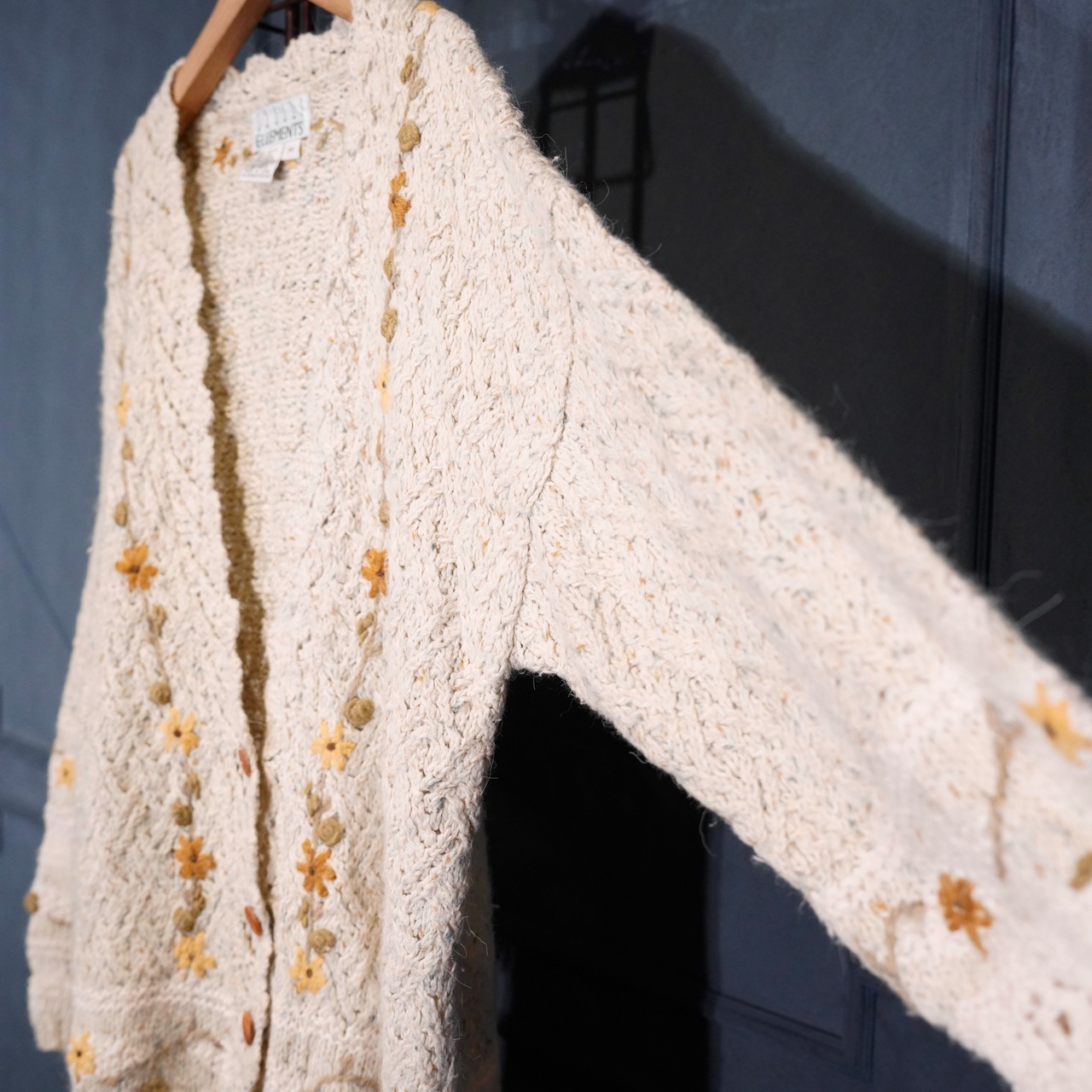 USA VINTAGE CASUAL ELLEMENTS FLOWER EMBROIDERY DESIGN RABBIT FUR ANGORA BREND WOOL KNIT CARDIGAN/アメリカ古着お花刺繍デザインラビットファーアンゴラ混ウールニットカーディガン