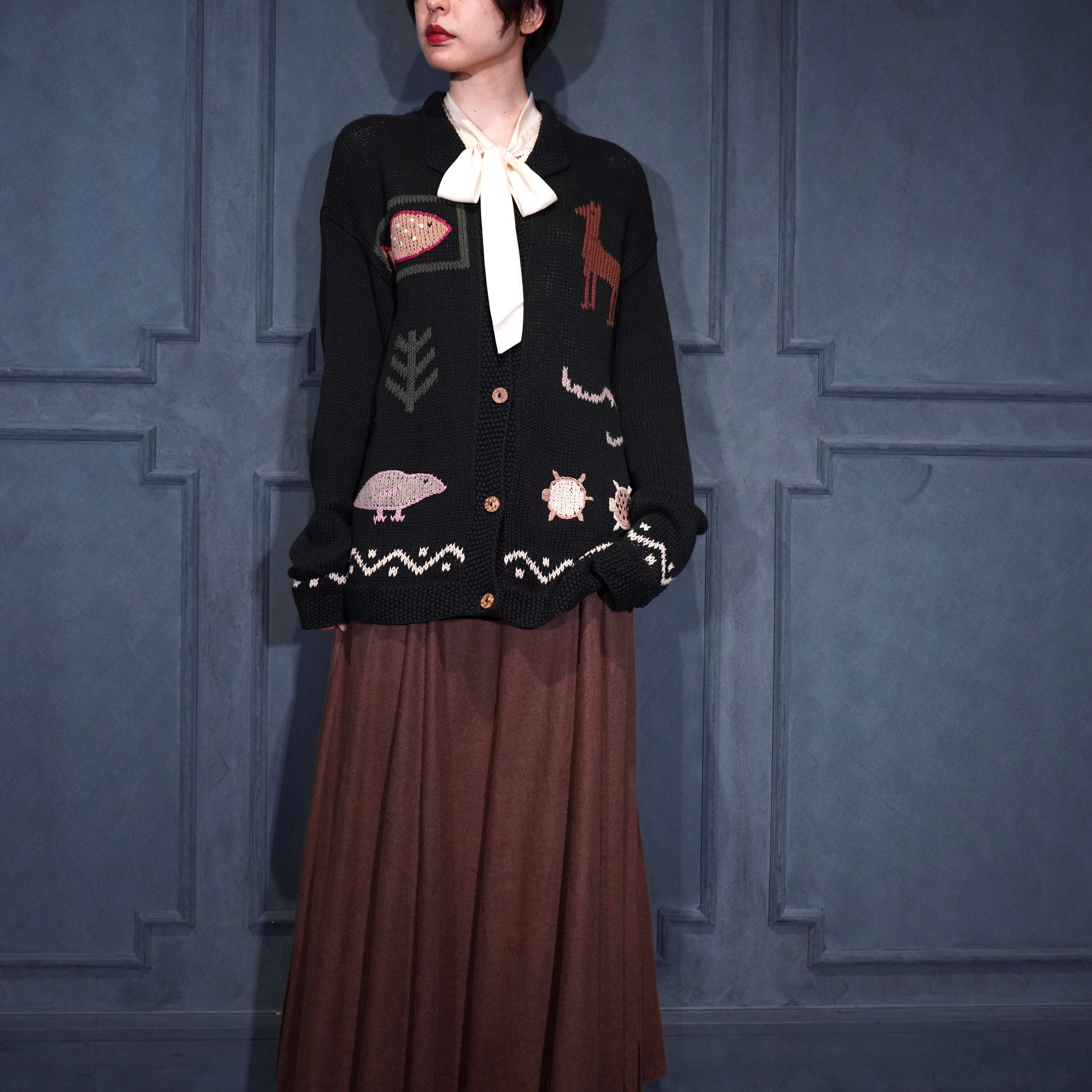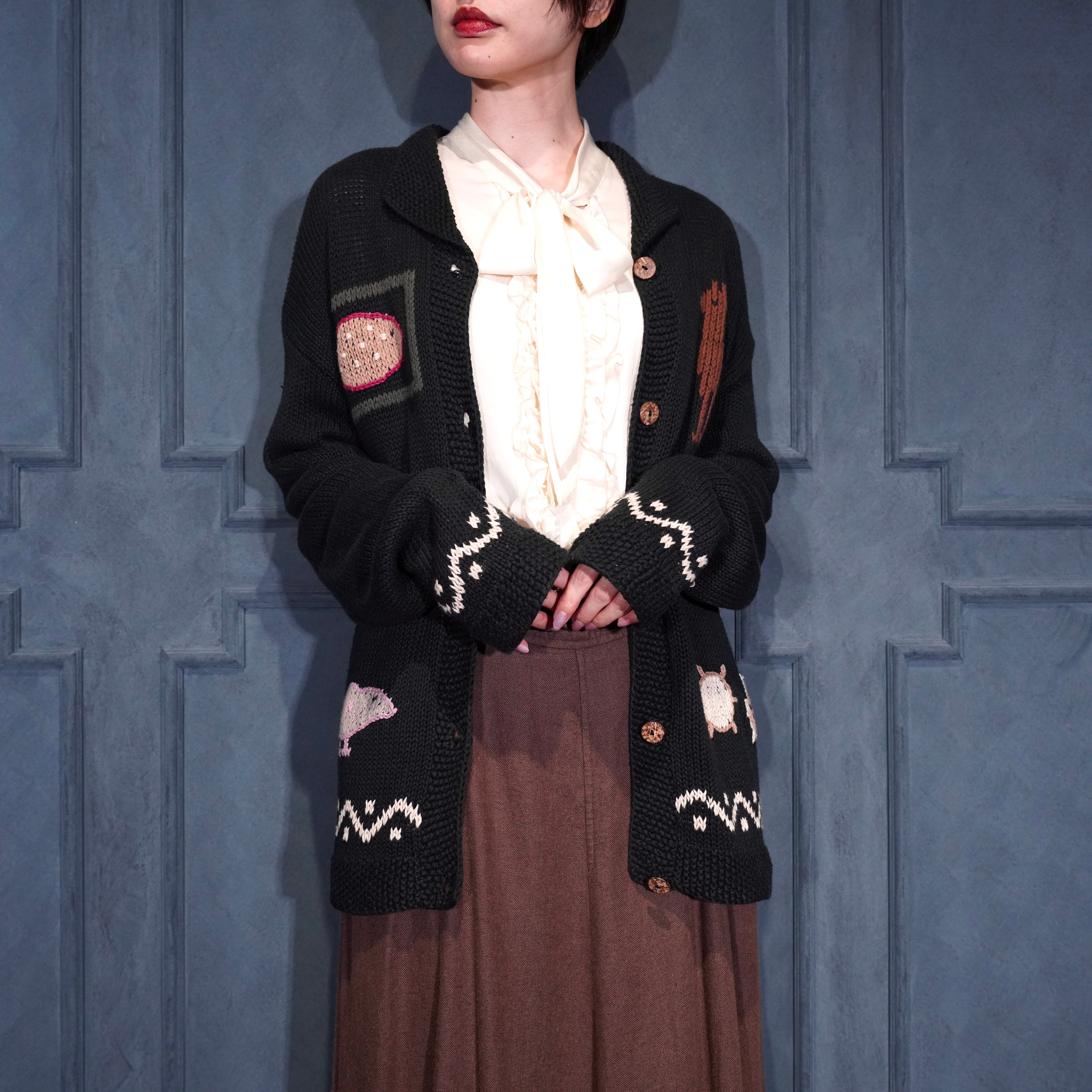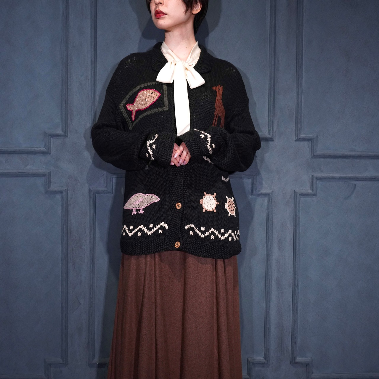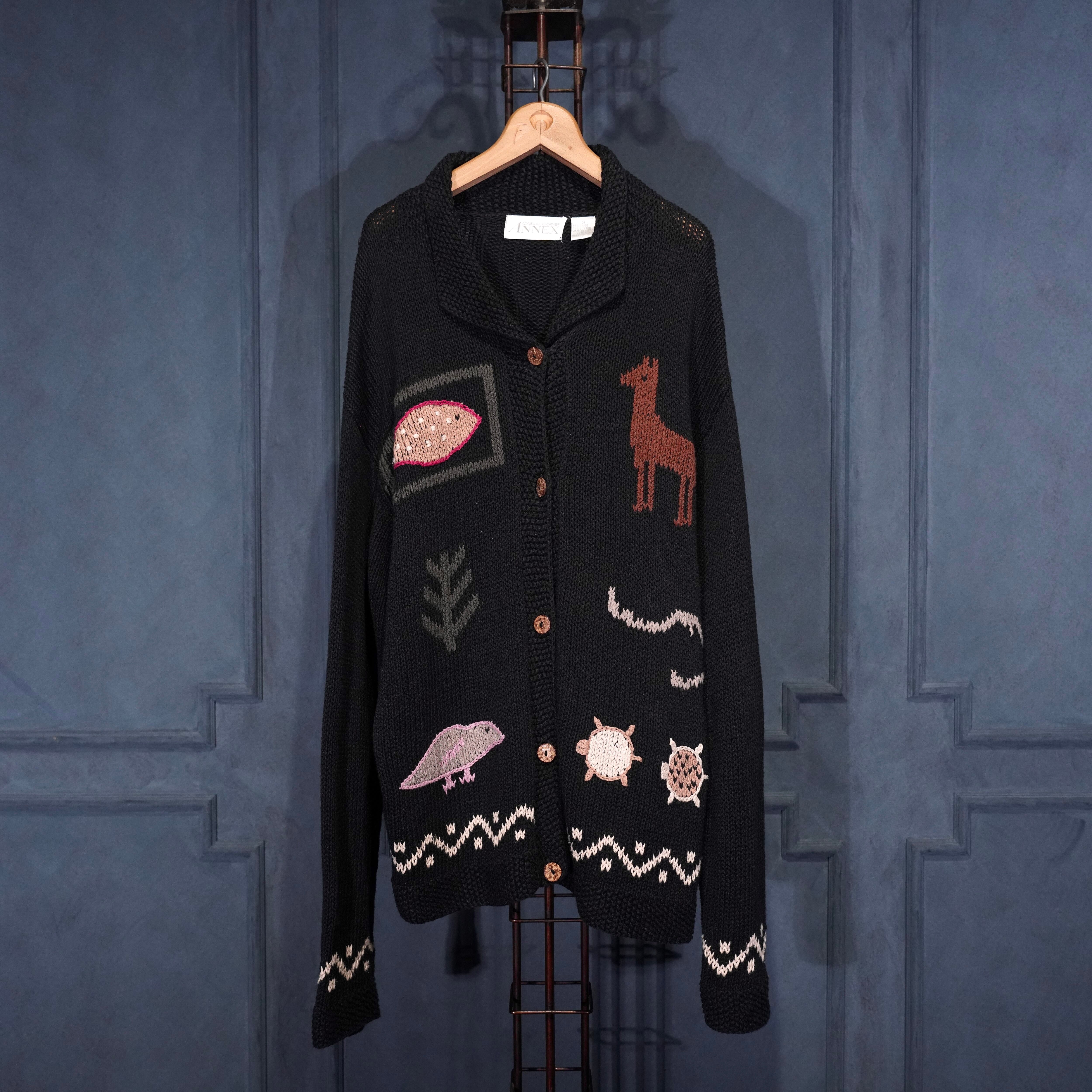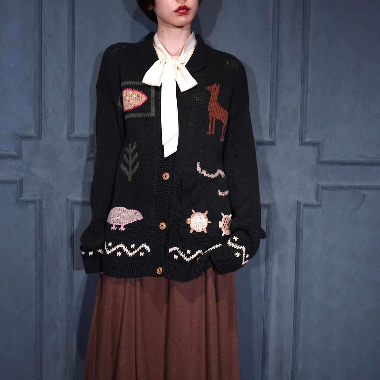 USA VINTAGE CASUAL CORNER ANNEX ANIMAL DESIGN COTTON RAMIE KNIT CARDIGAN/アメリカ古着アニマルデザインコットンラミーニットカーディガン