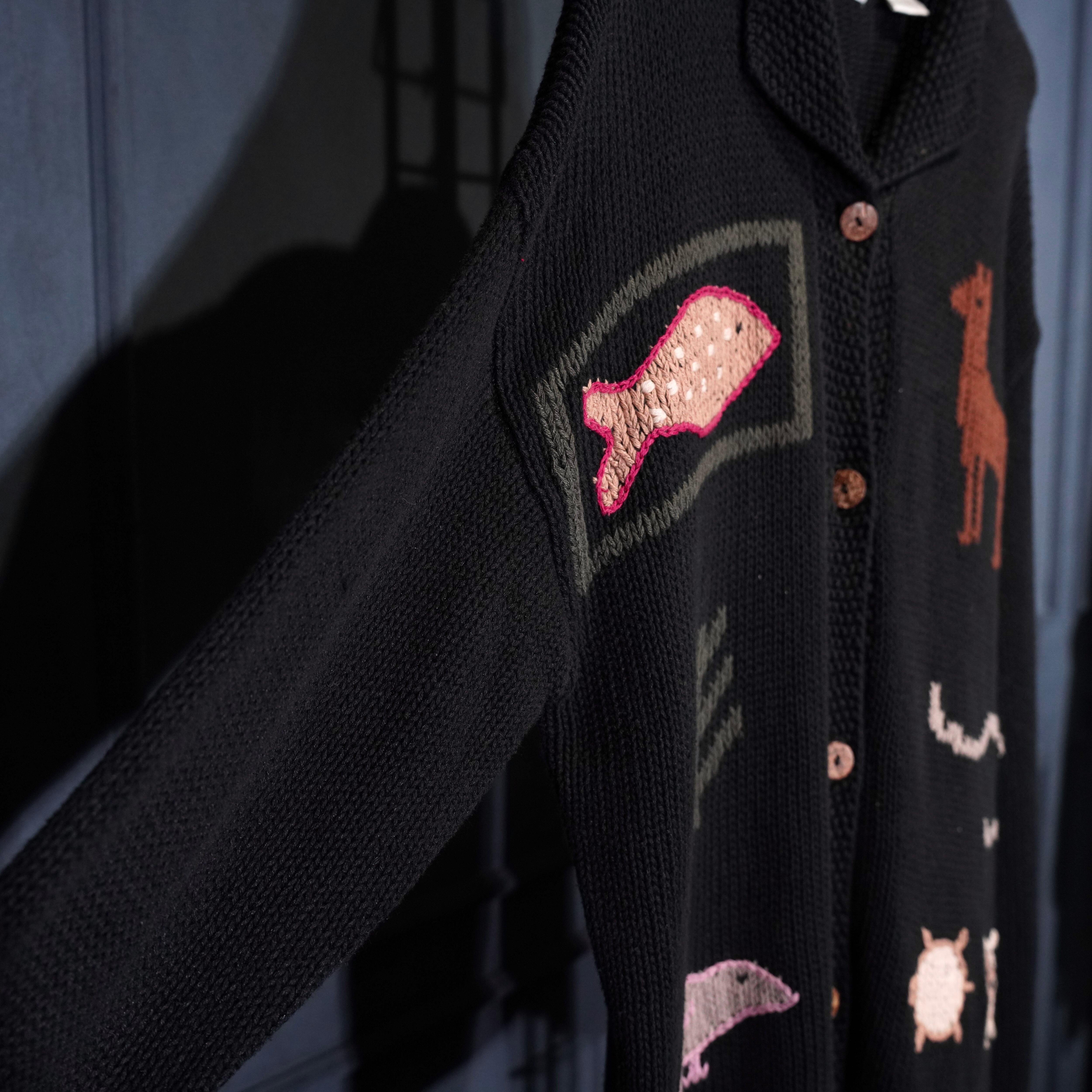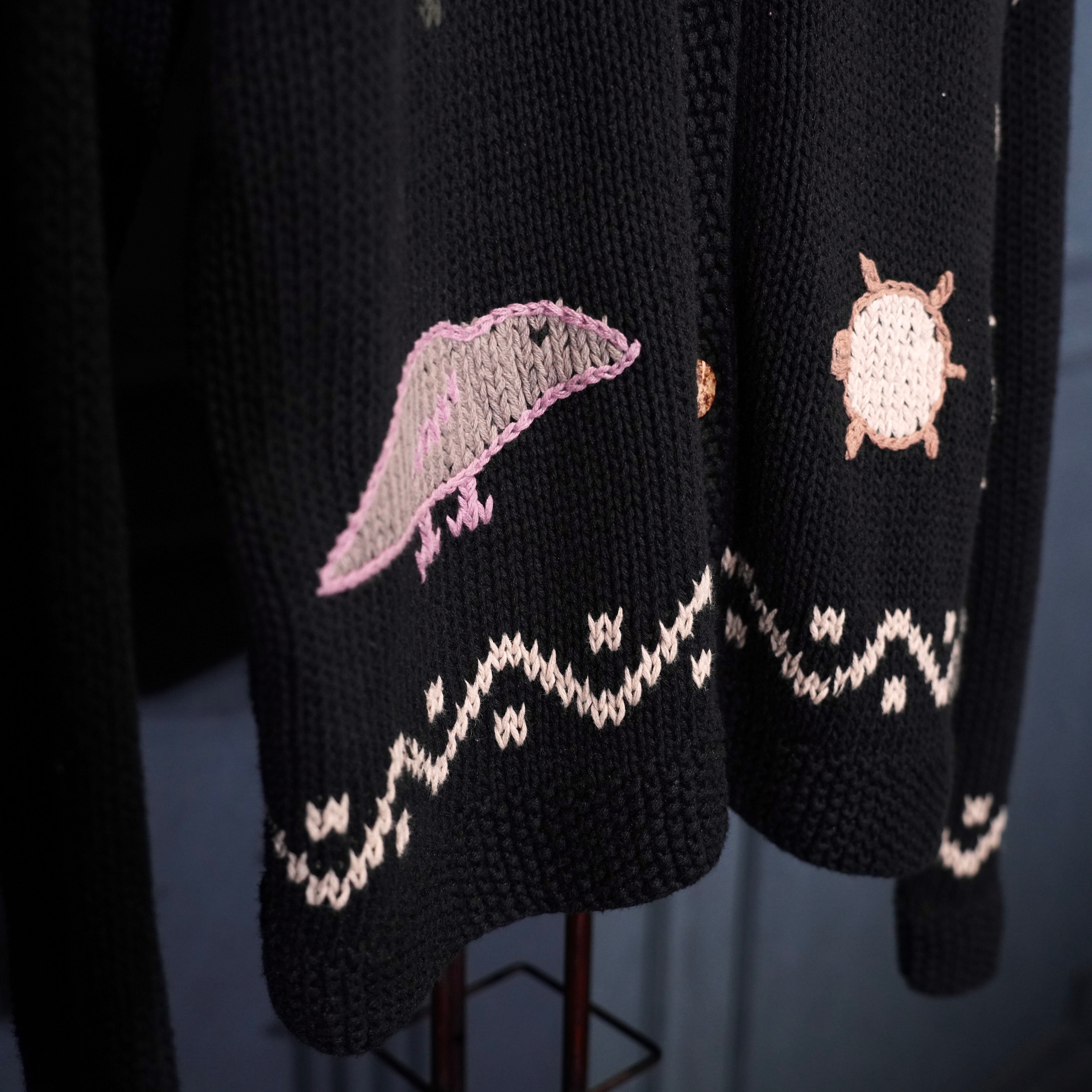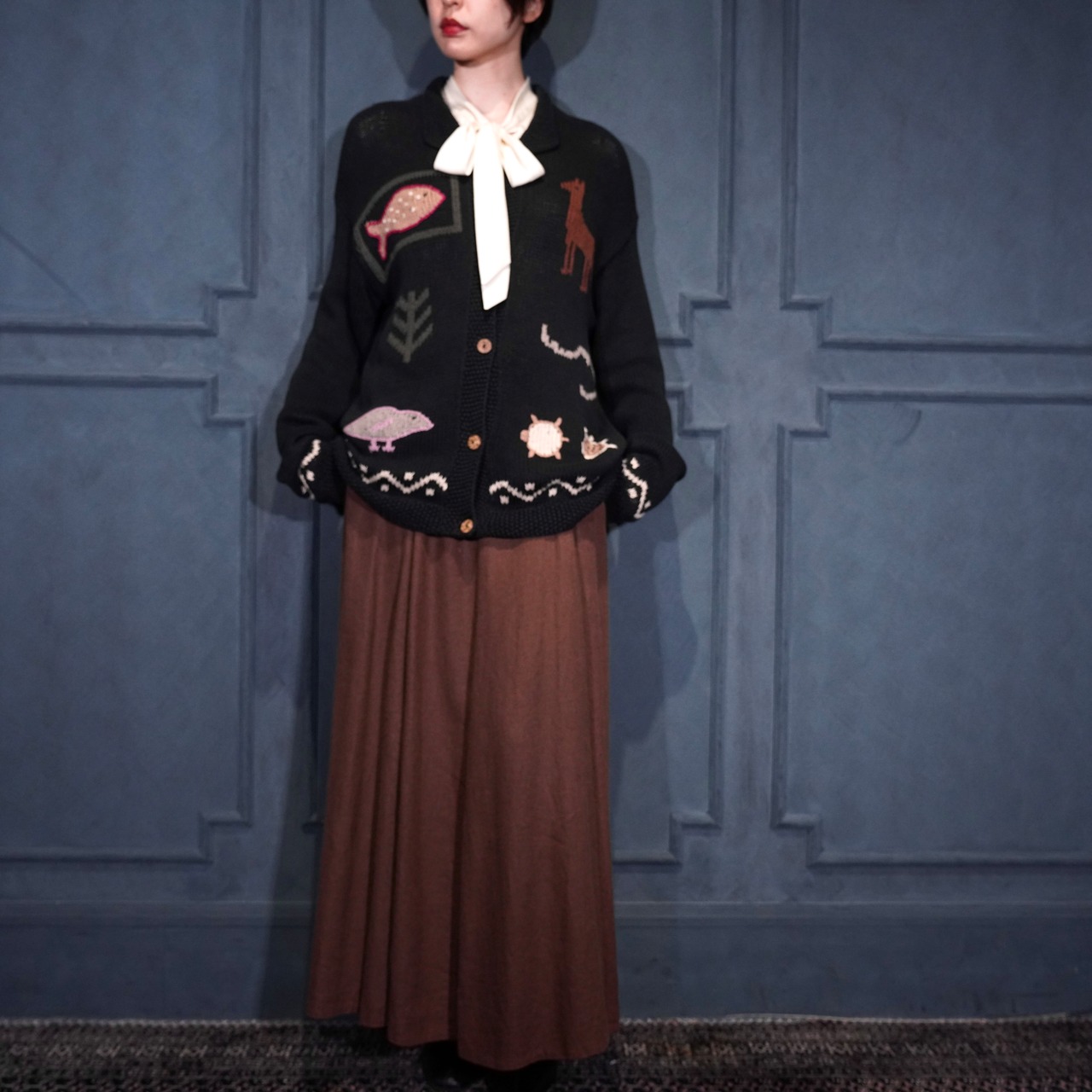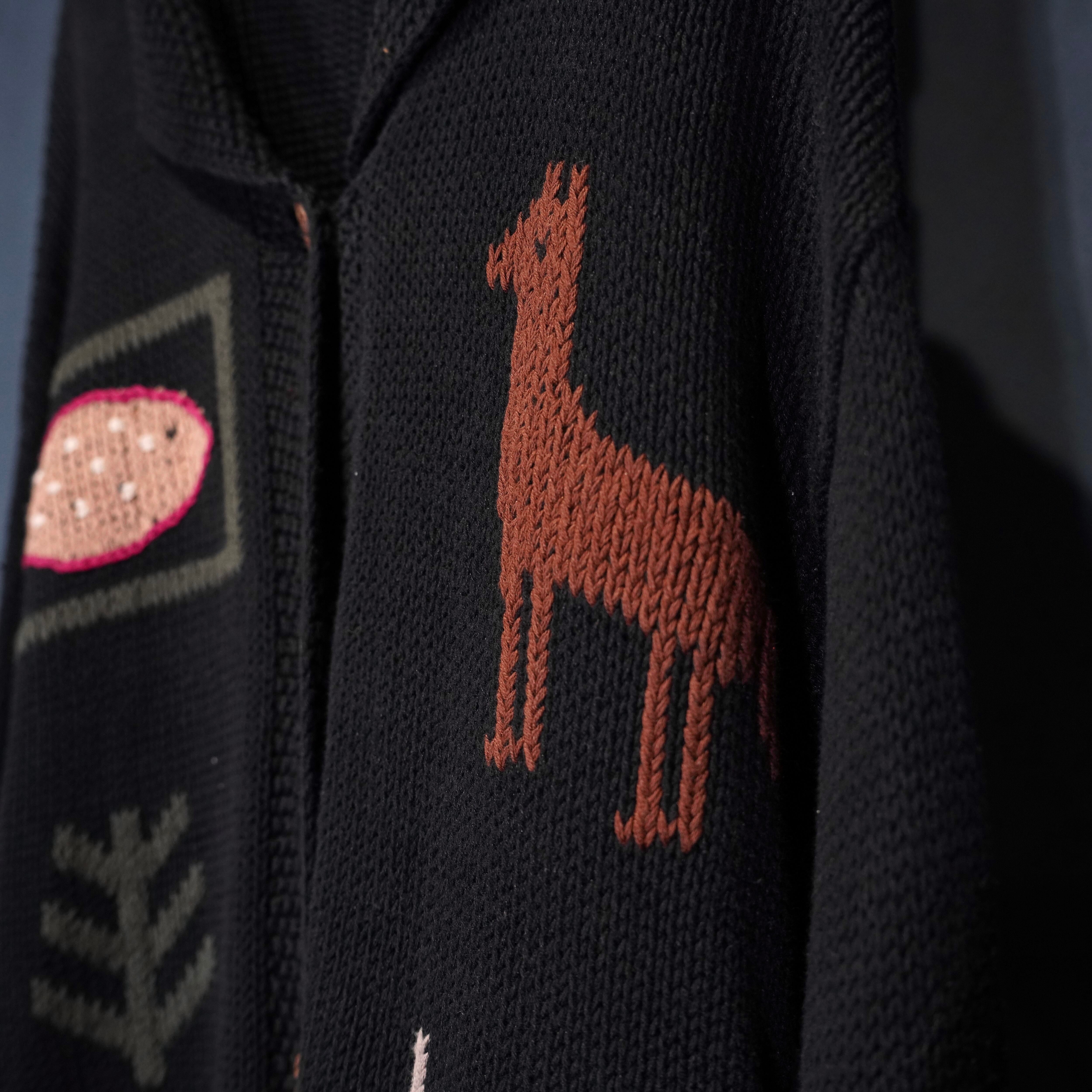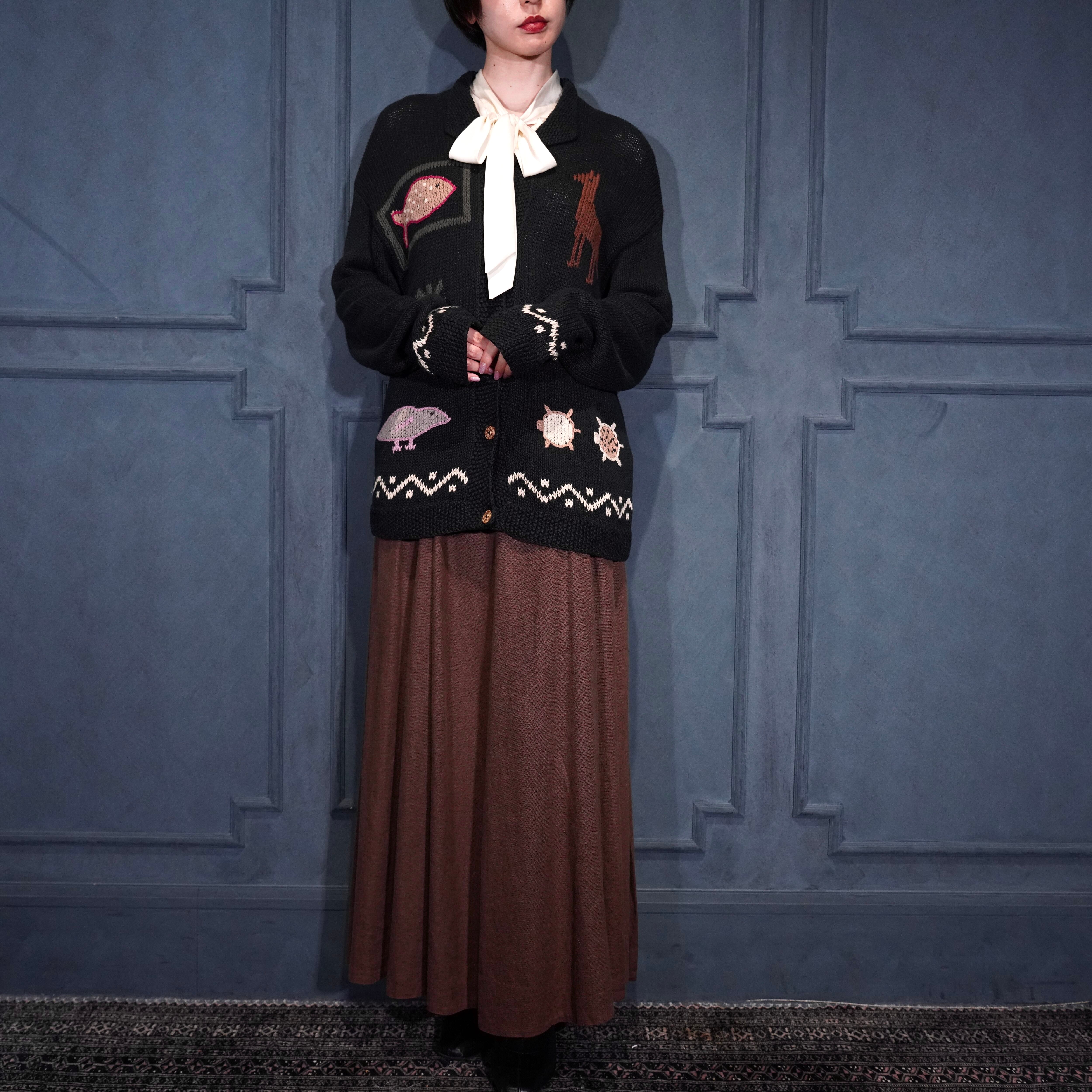 USA VINTAGE CASUAL CORNER ANNEX ANIMAL DESIGN COTTON RAMIE KNIT CARDIGAN/アメリカ古着アニマルデザインコットンラミーニットカーディガン