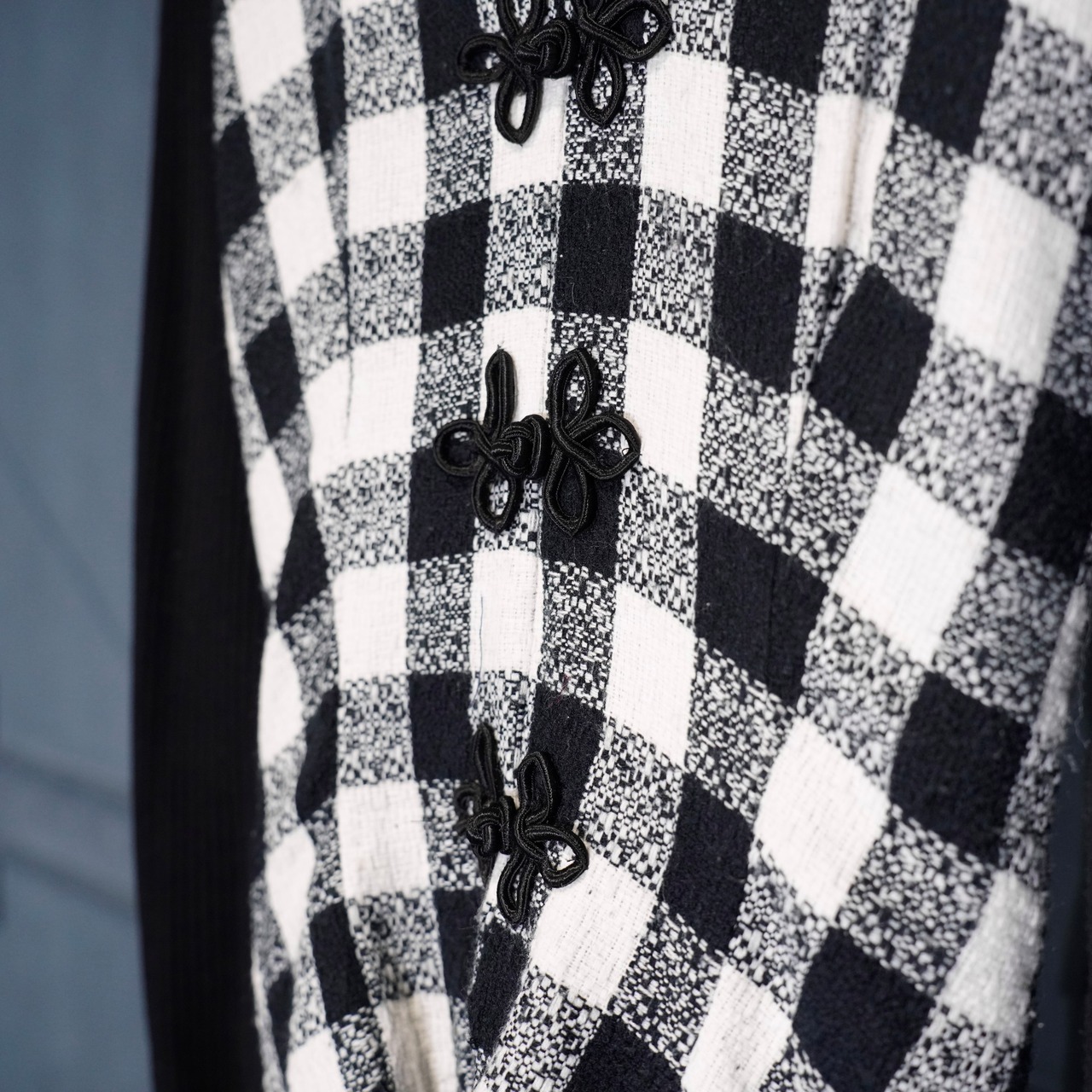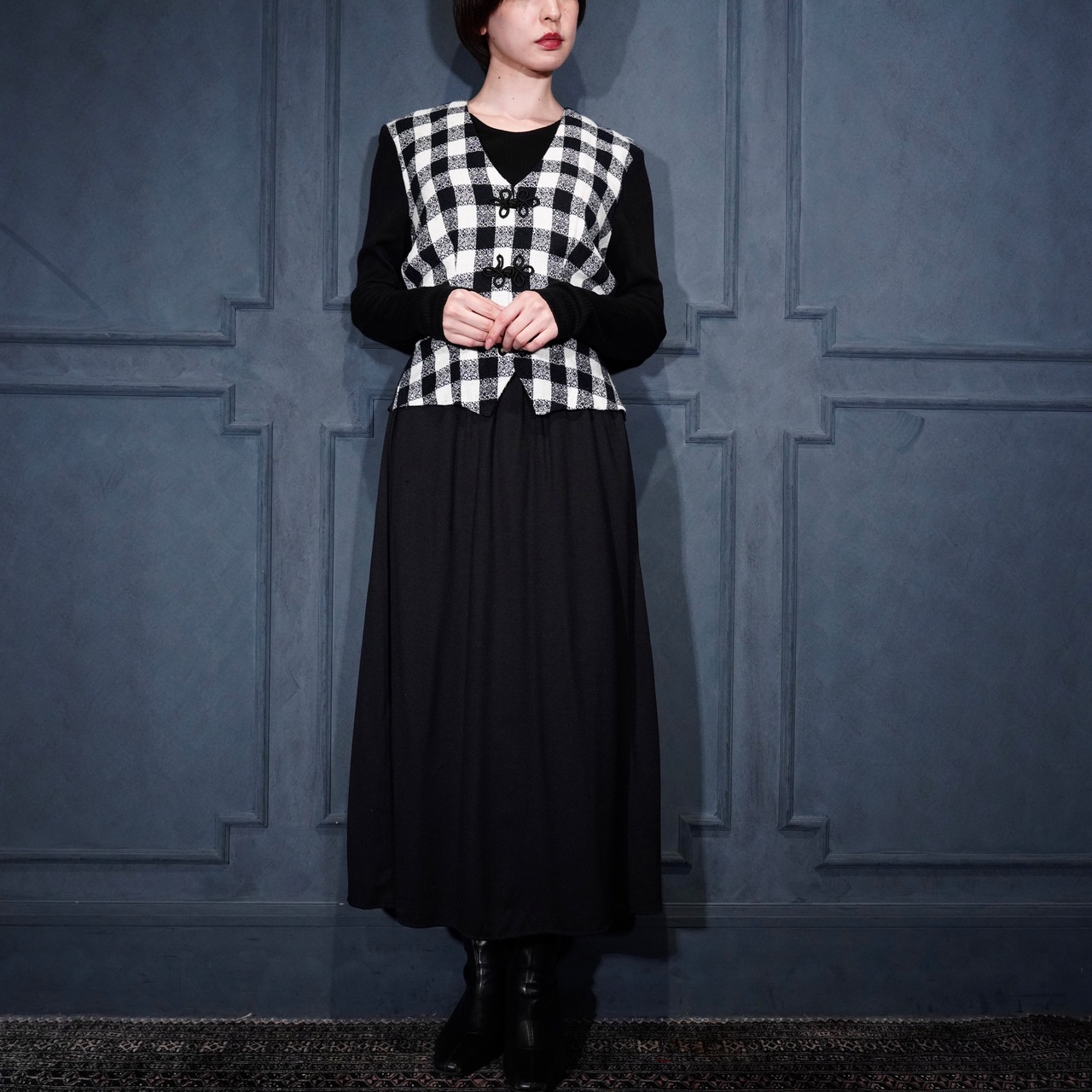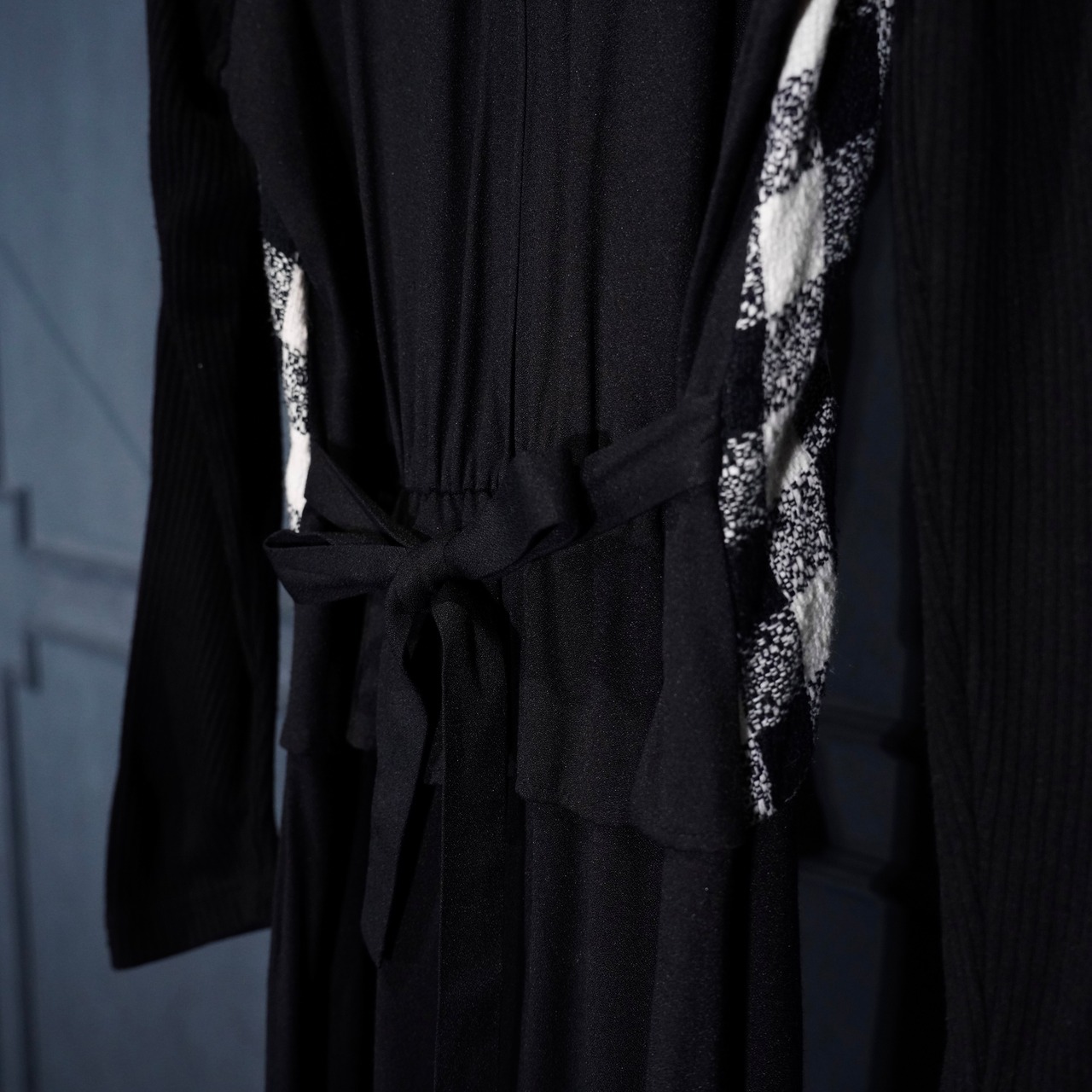 USA VINTAGE Miss Dorby CHECK PATTERNED BACK RIBBON LAYARD DESIGN CHINA BUTTON ONE PIECE/アメリカ古着チェック柄バックリボンレイヤードデザインチャイナボタンワンピース