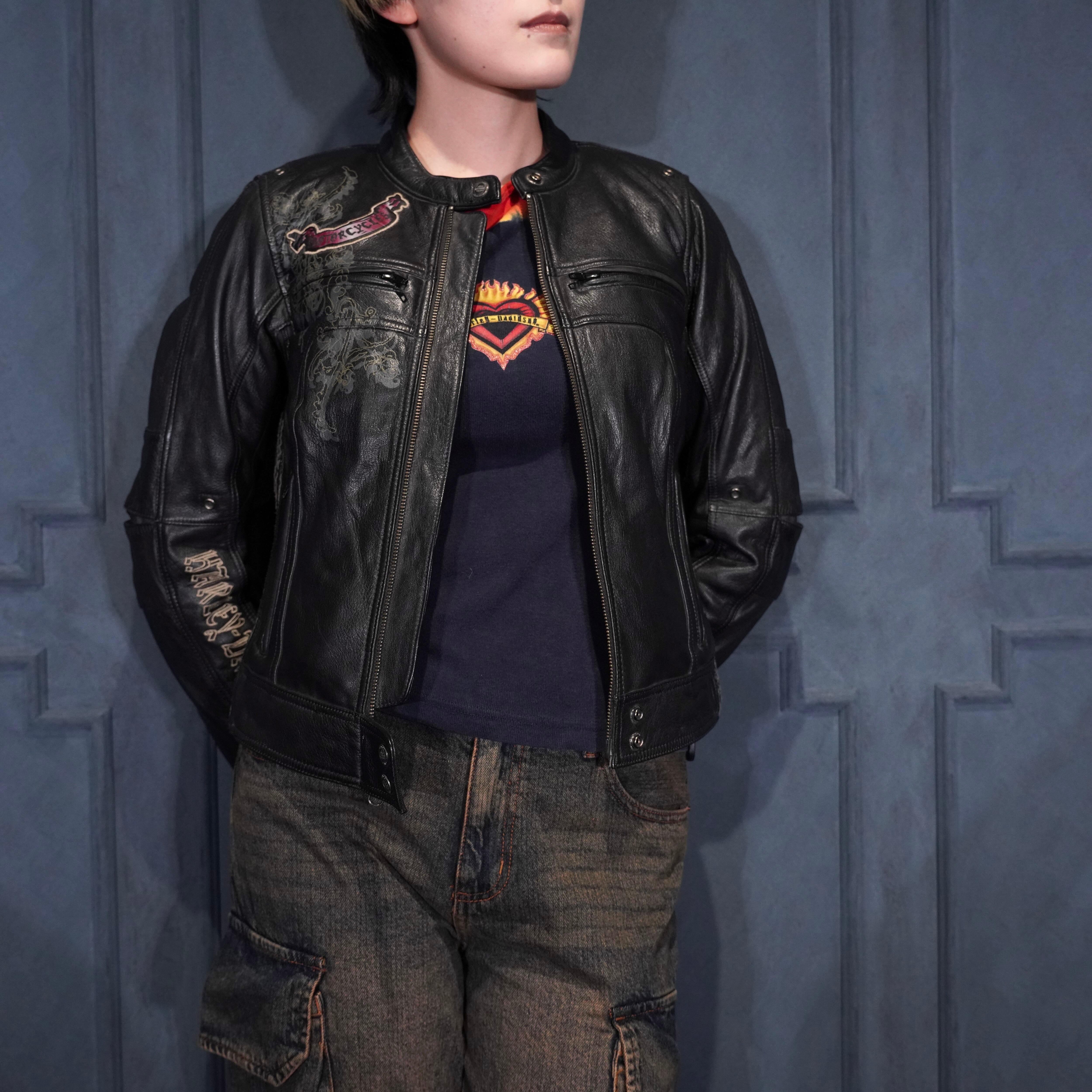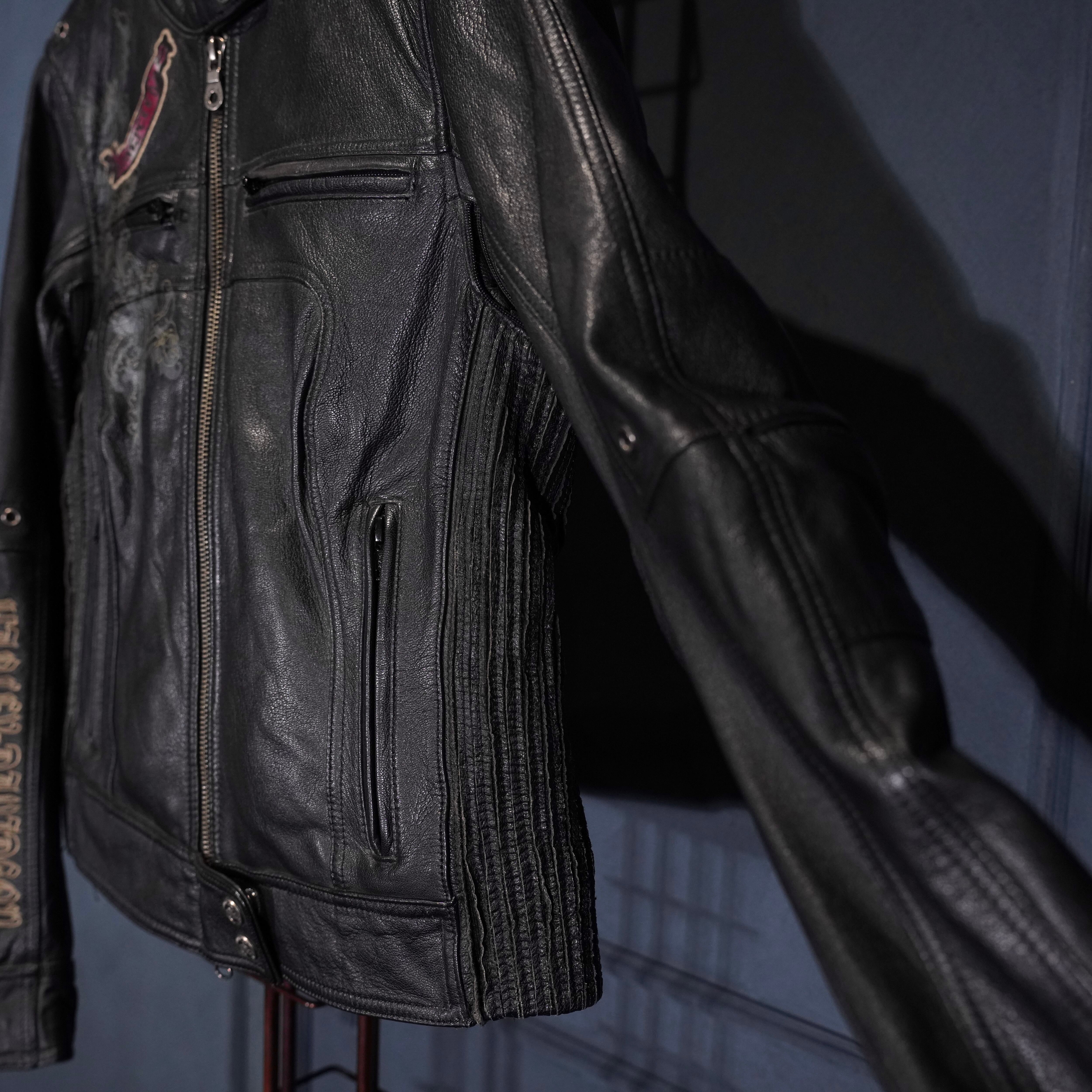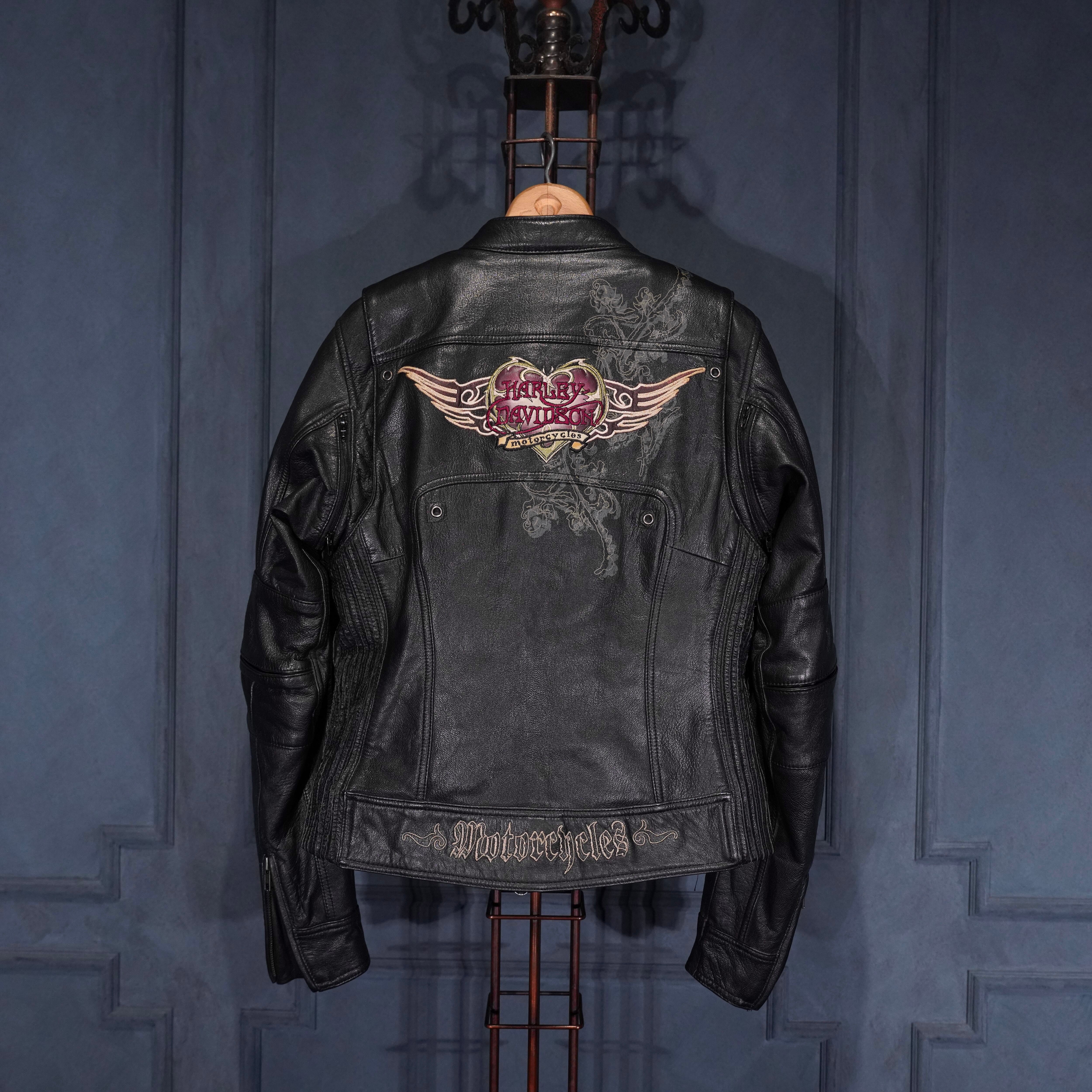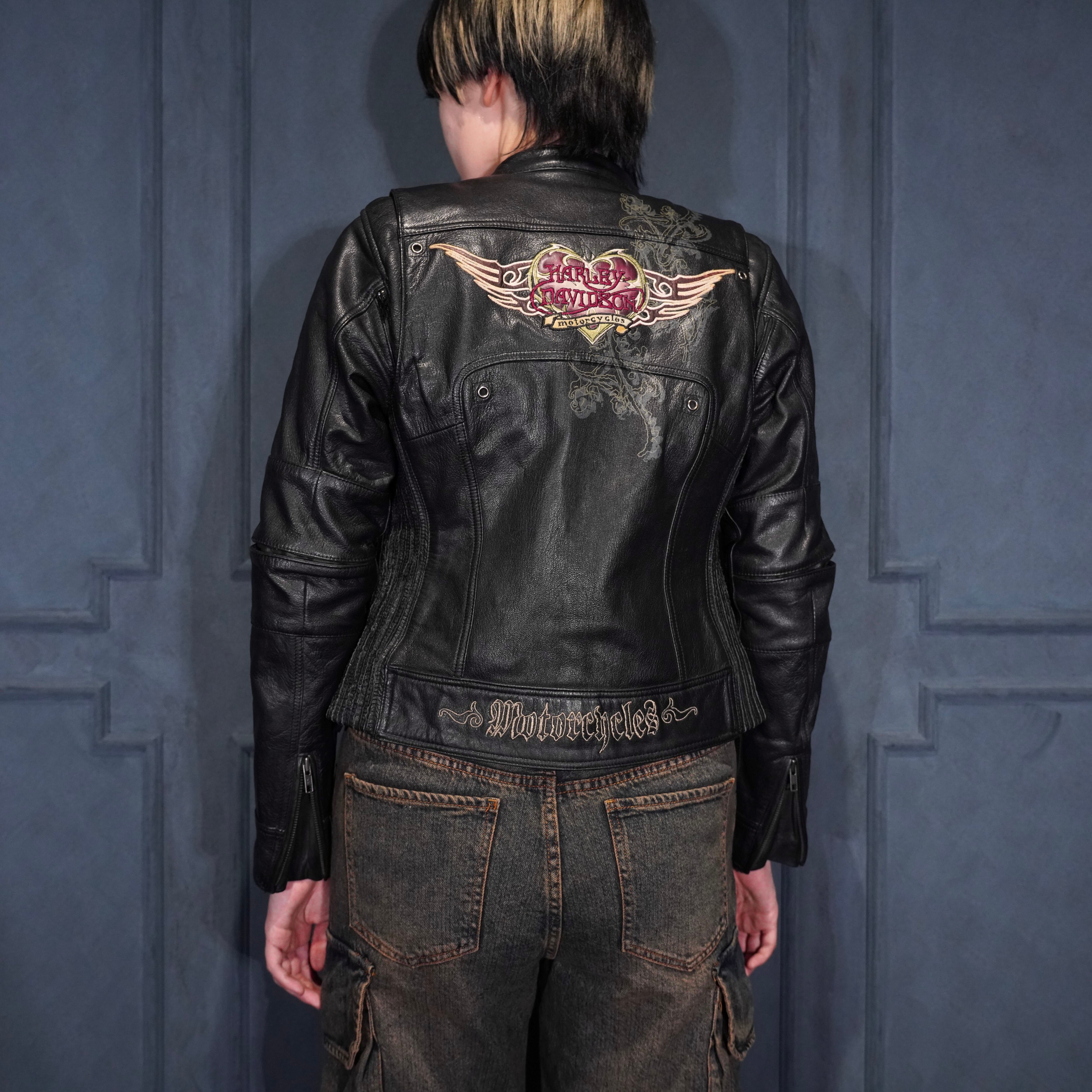 *SPECIAL ITEM* USA VINTAGE HARLEY DAVIDSON WING HEART EMBROIDERY DESIGN LEATHER RIDERS JACKET/アメリカ古着ハーレーダヴィッドソンウィングハート刺繍デザインレザーライダースジャケット