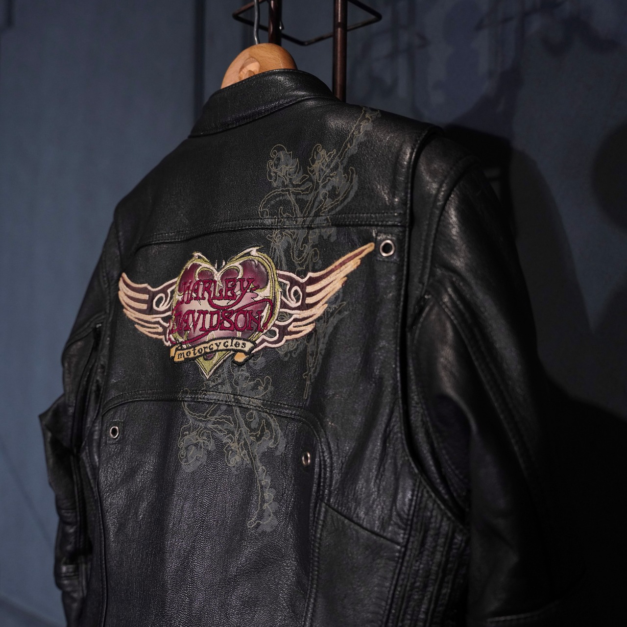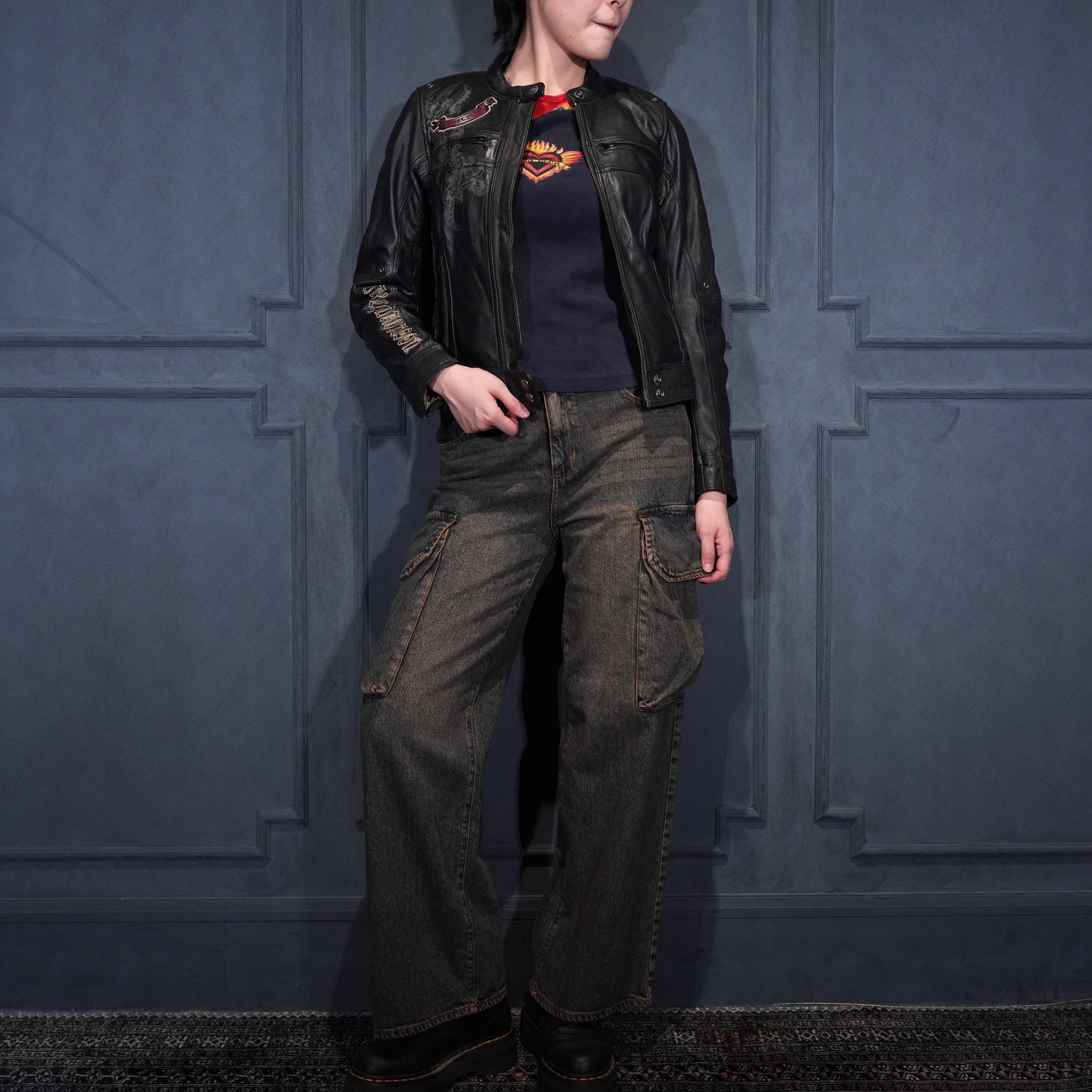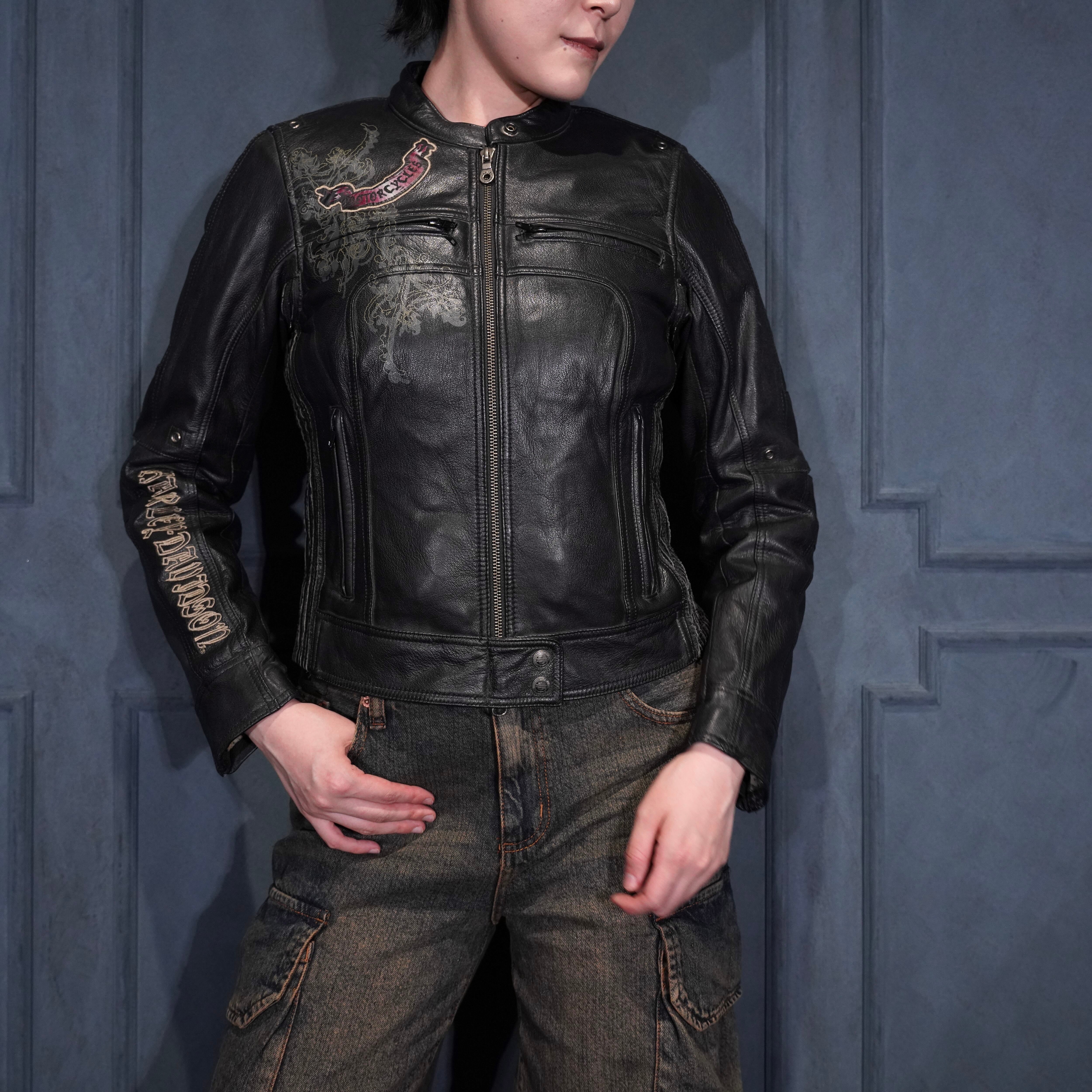 *SPECIAL ITEM* USA VINTAGE HARLEY DAVIDSON WING HEART EMBROIDERY DESIGN LEATHER RIDERS JACKET/アメリカ古着ハーレーダヴィッドソンウィングハート刺繍デザインレザーライダースジャケット