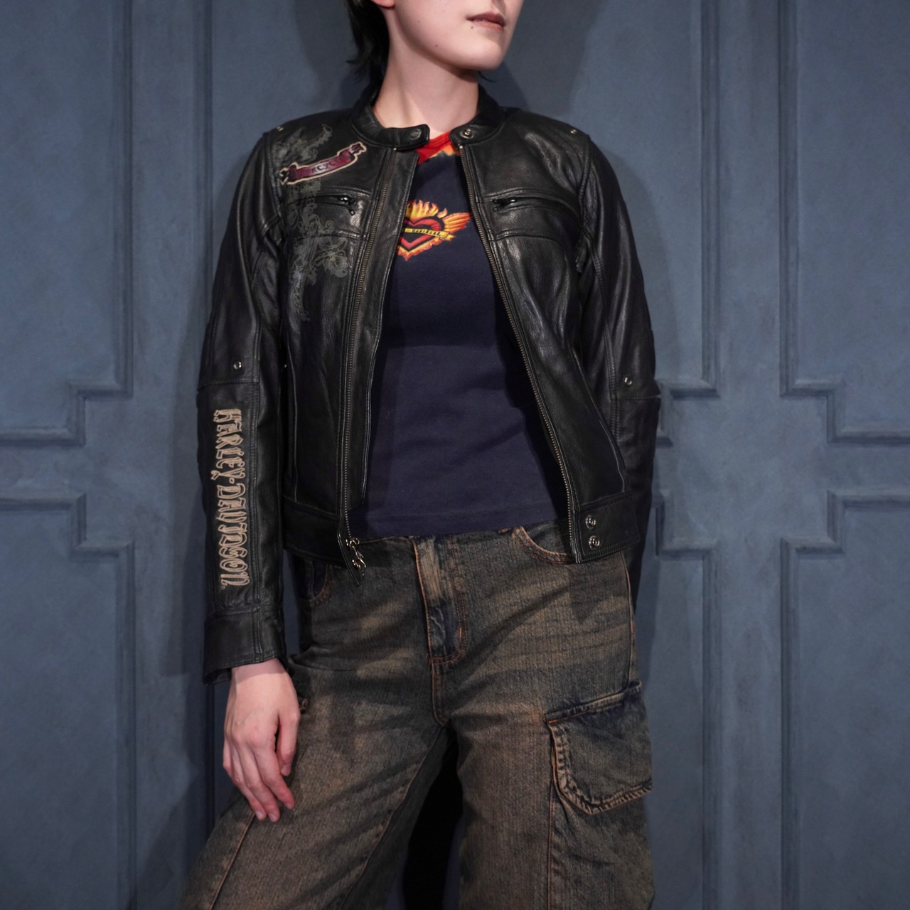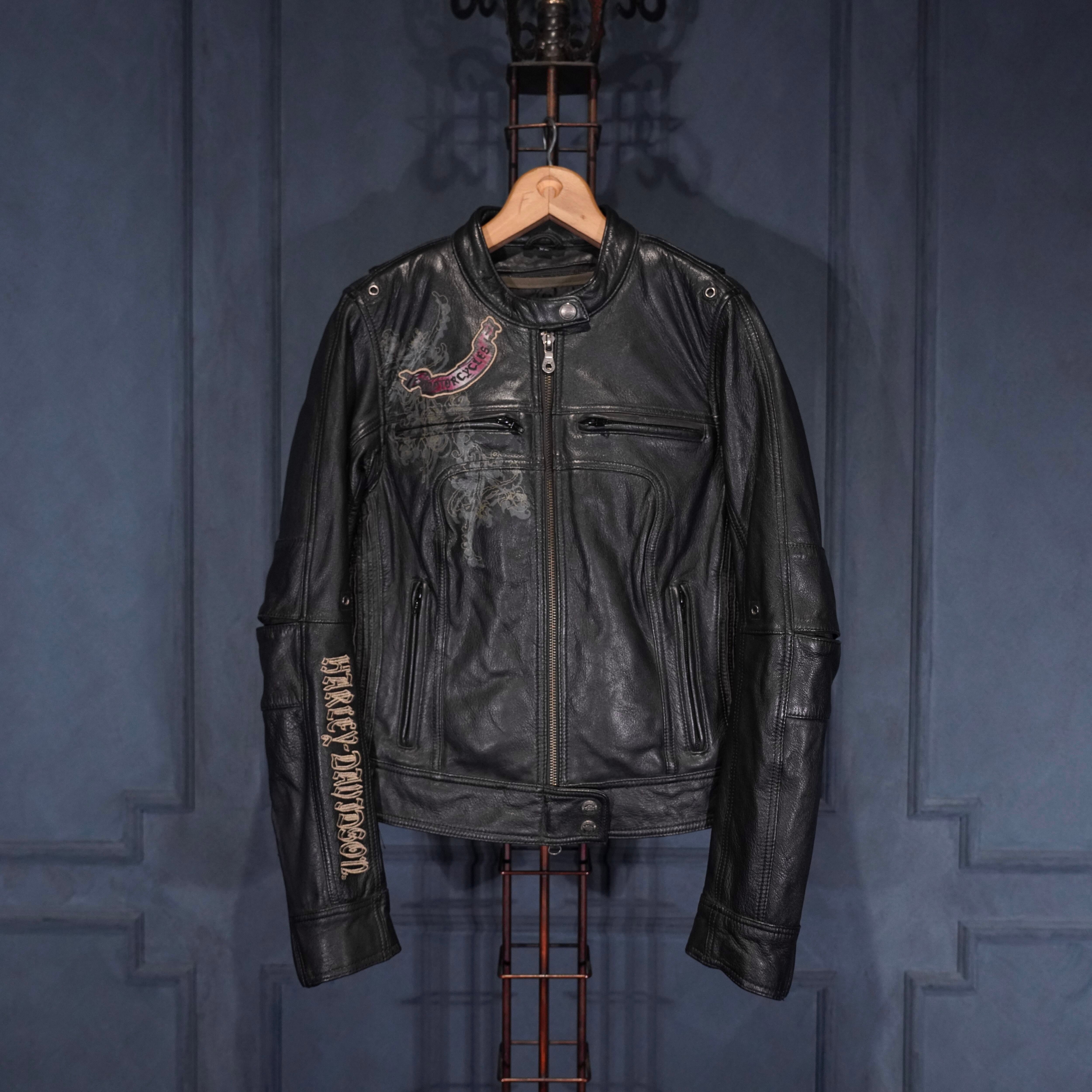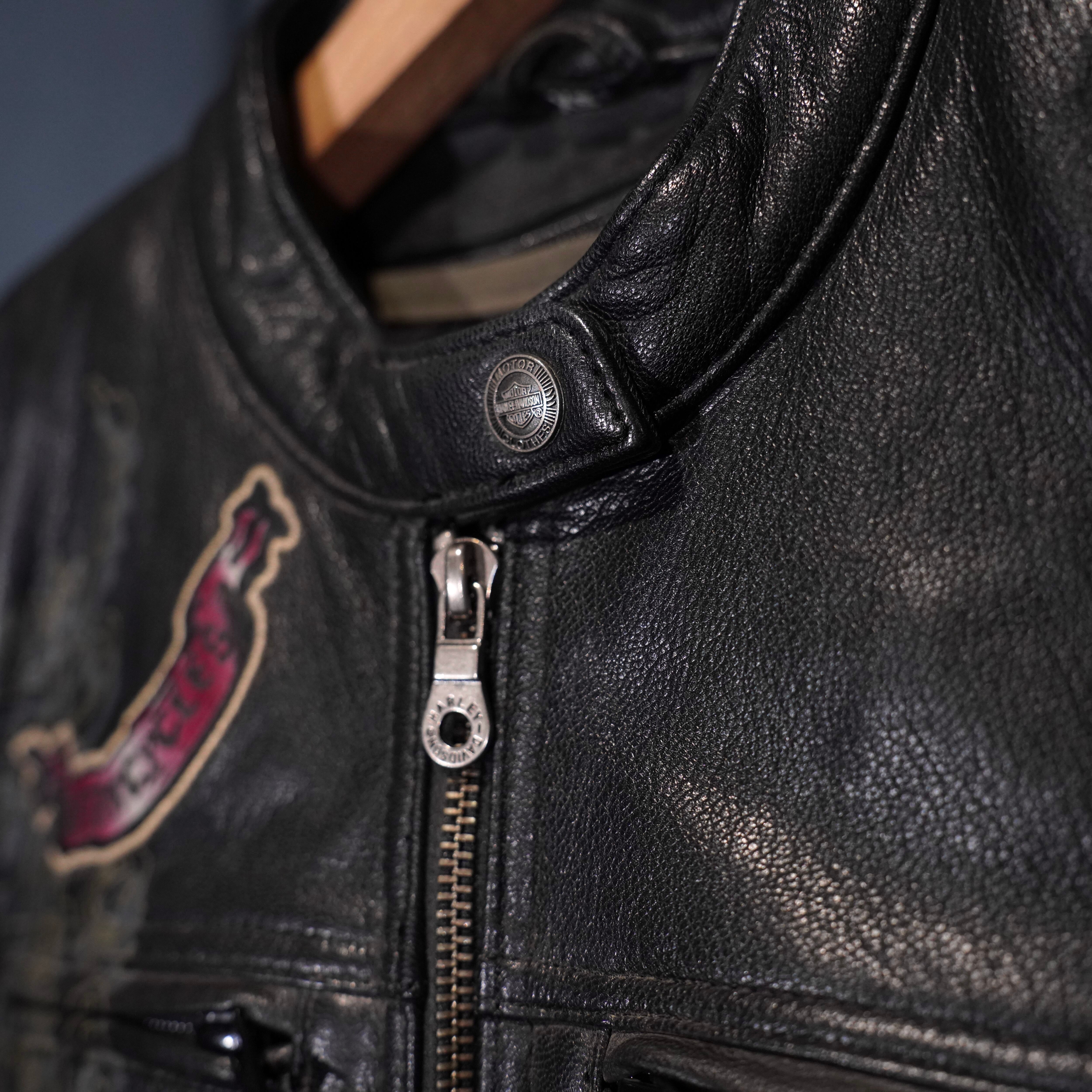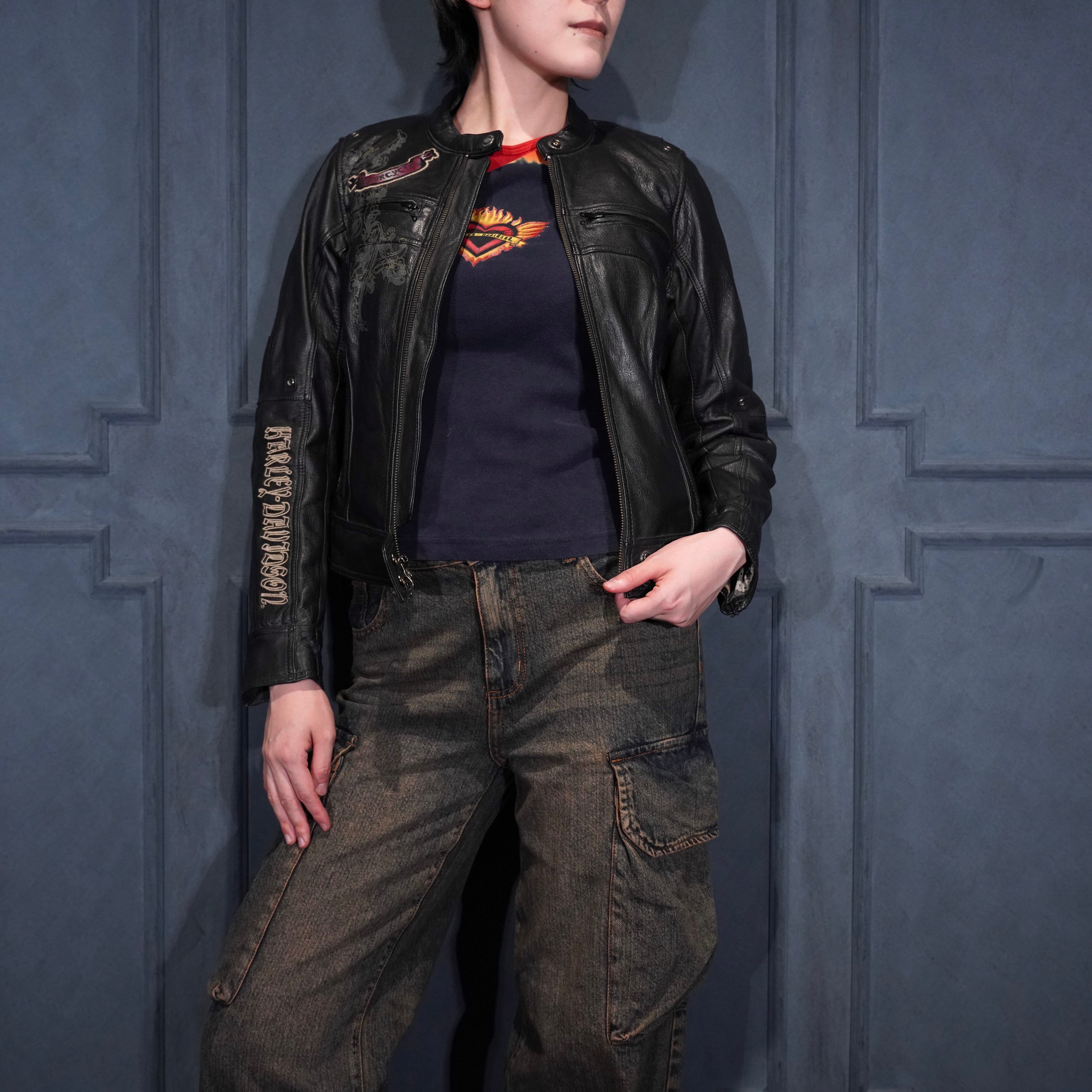 *SPECIAL ITEM* USA VINTAGE HARLEY DAVIDSON WING HEART EMBROIDERY DESIGN LEATHER RIDERS JACKET/アメリカ古着ハーレーダヴィッドソンウィングハート刺繍デザインレザーライダースジャケット