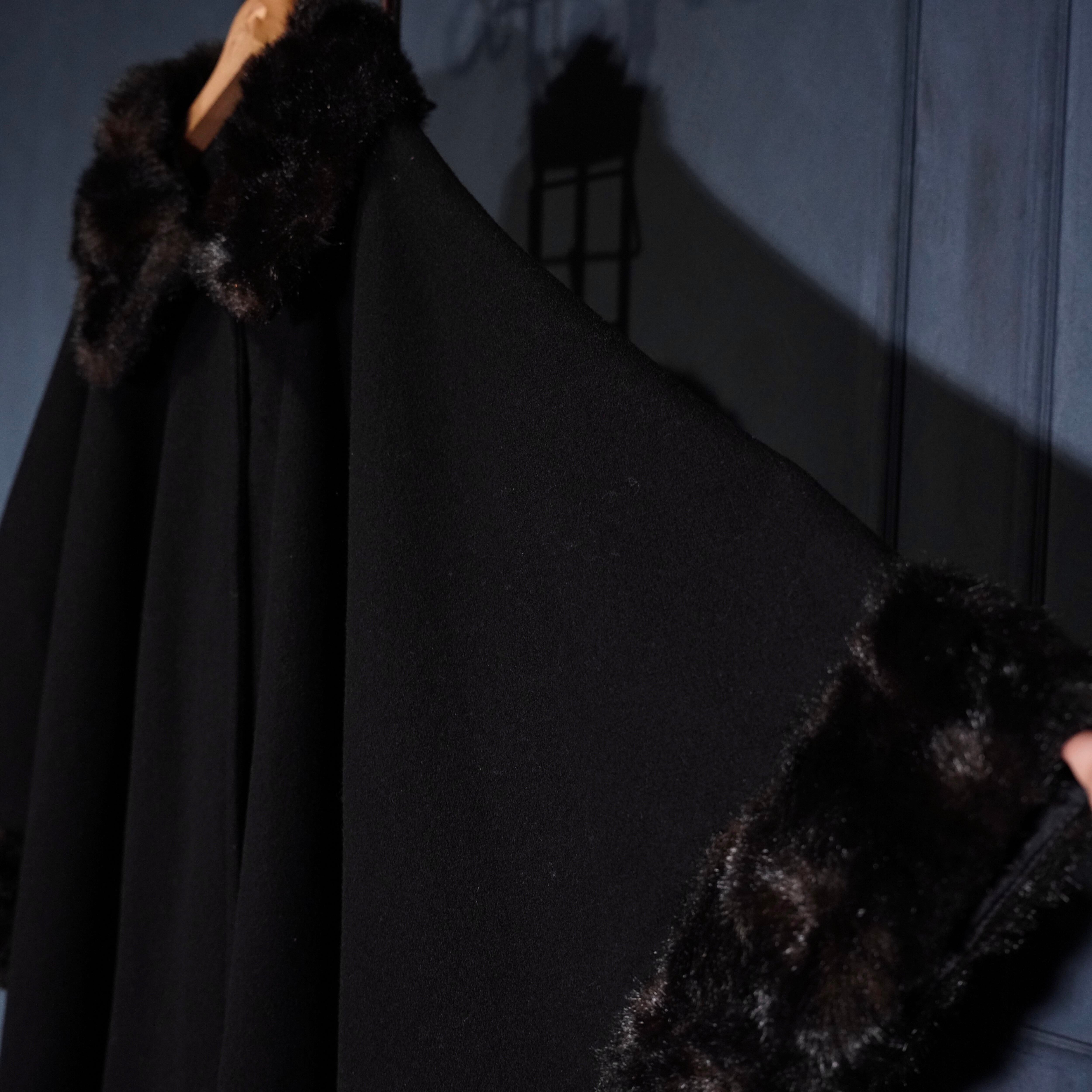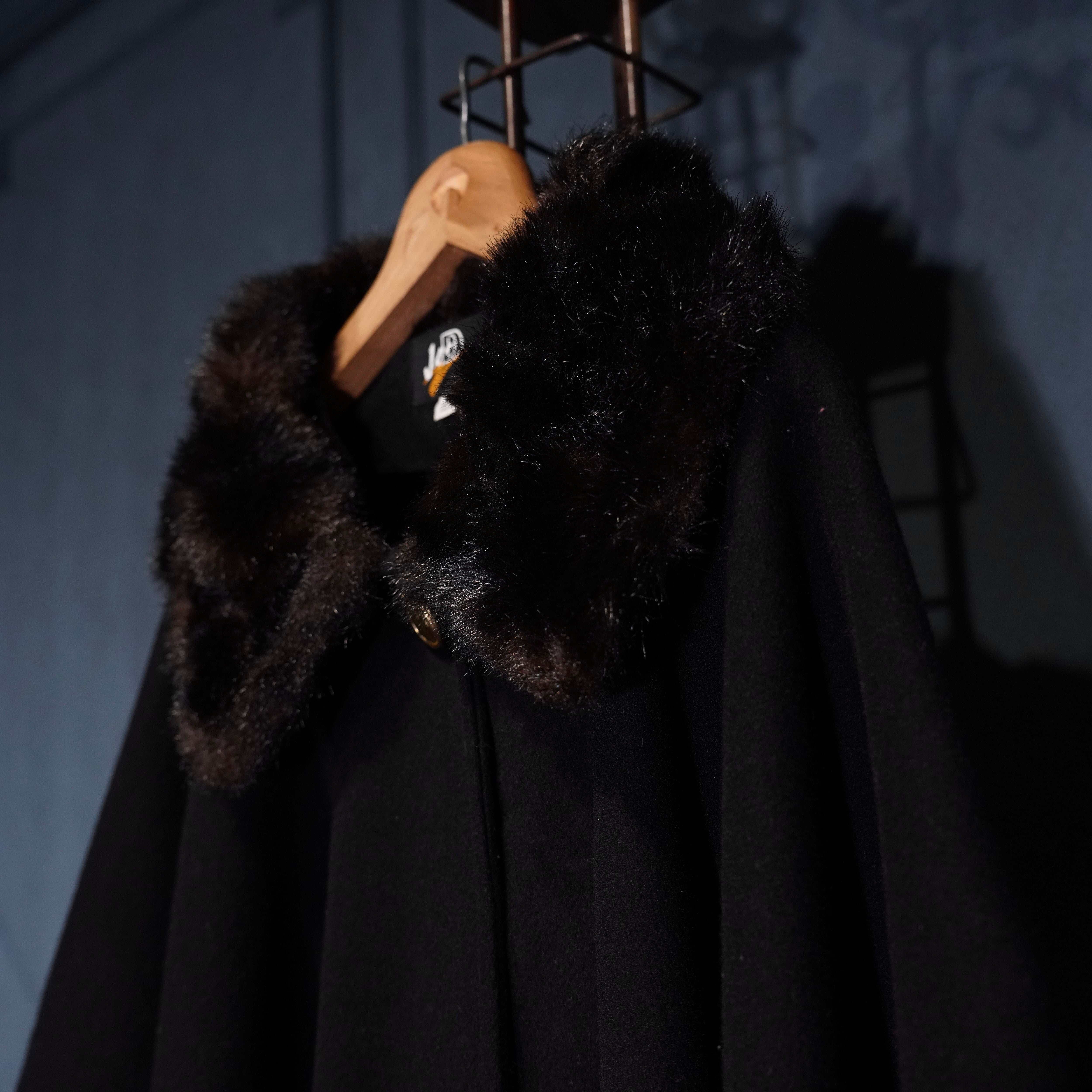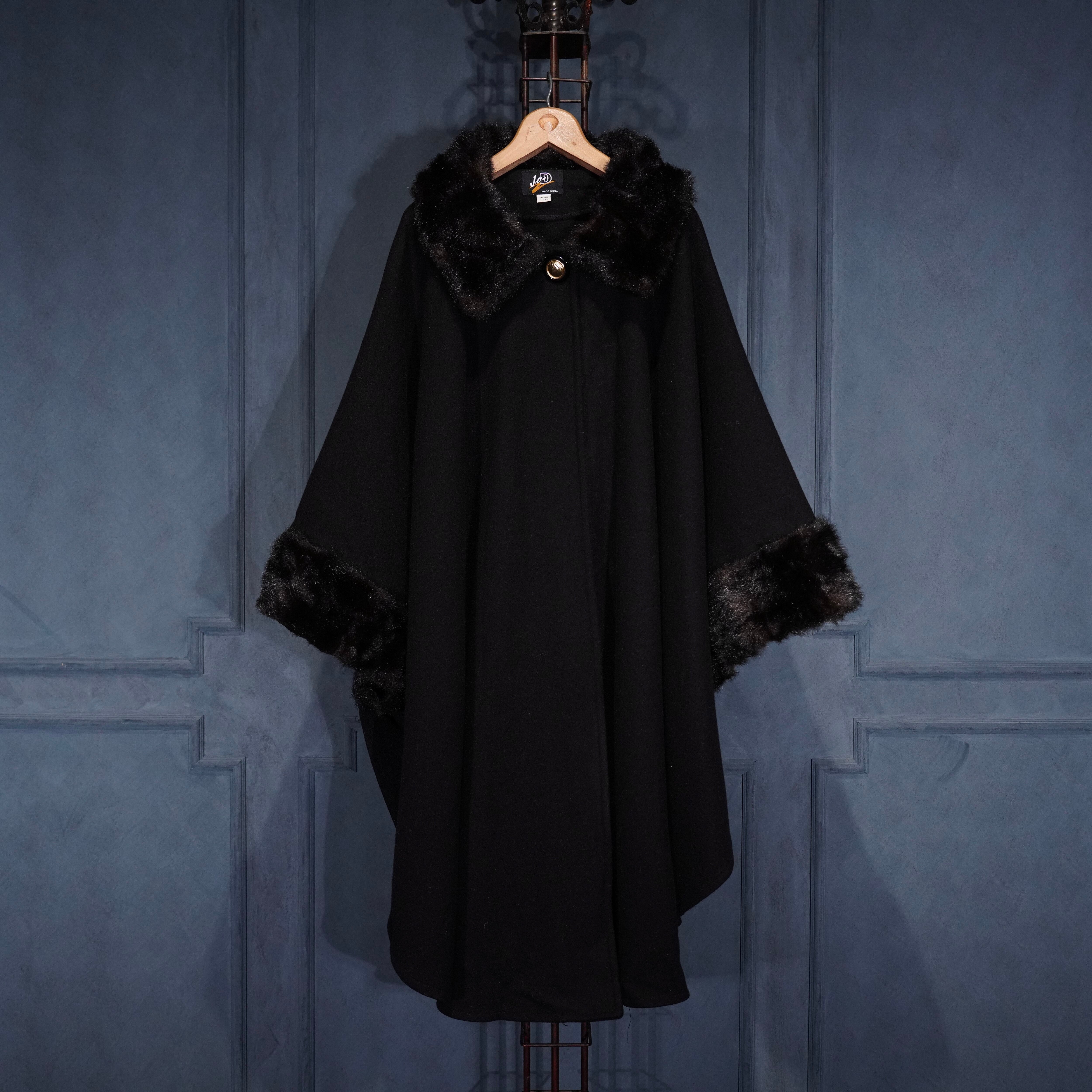 USA VINTAGE JpD FUR DESIGN WOOL CAPE COAT MADE IN USA/アメリカ古着ファーデザインウールケープコート(ポンチョ)