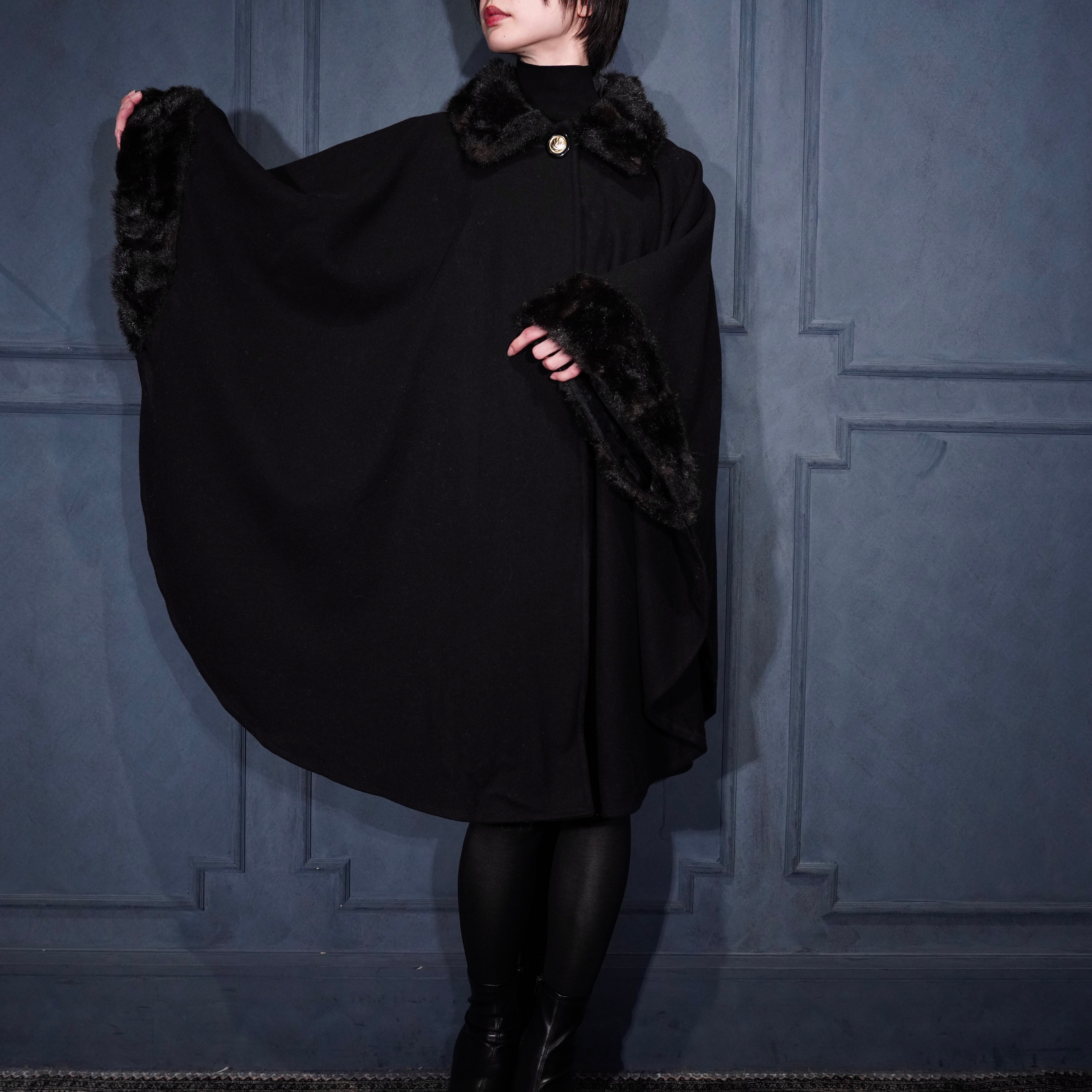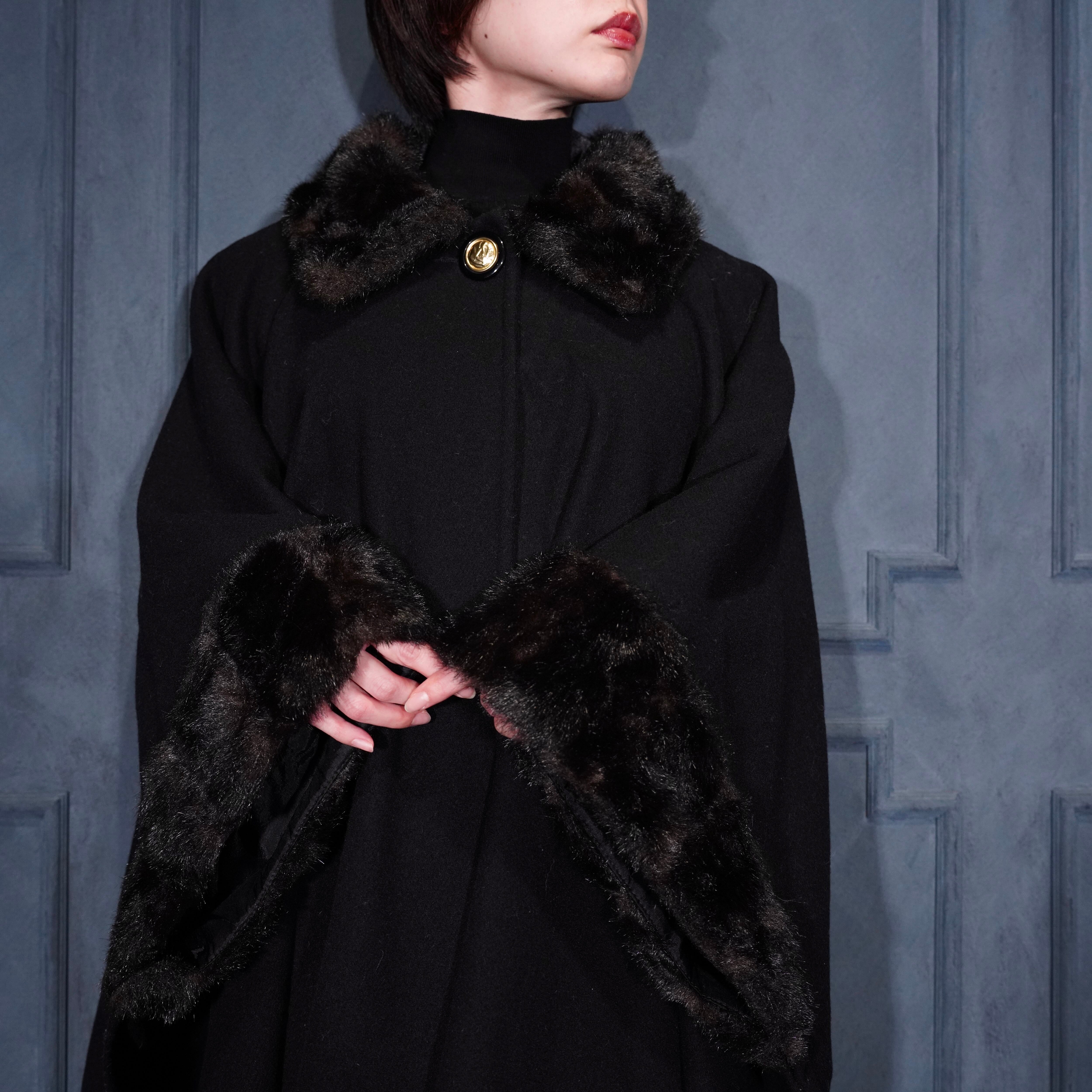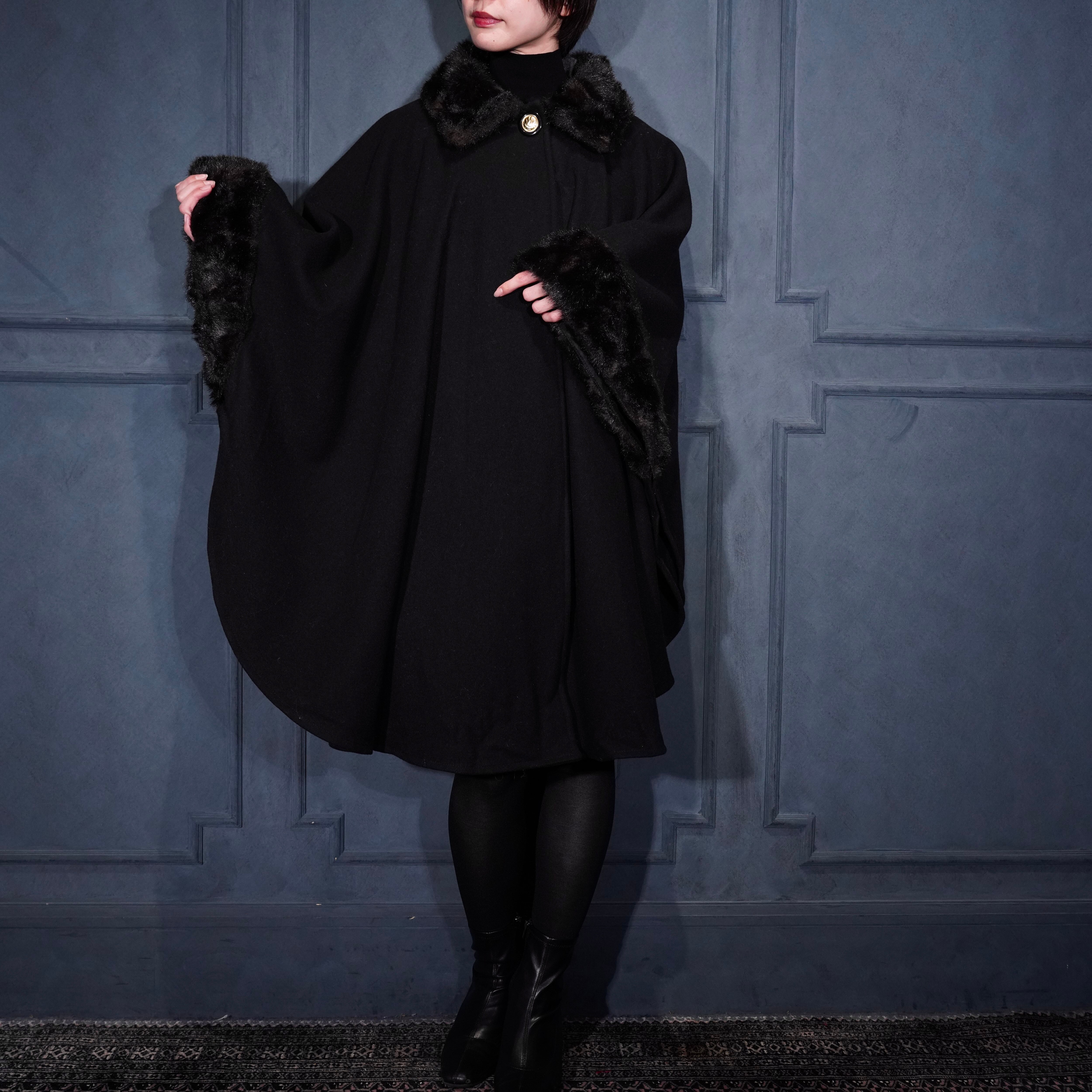 USA VINTAGE JpD FUR DESIGN WOOL CAPE COAT MADE IN USA/アメリカ古着ファーデザインウールケープコート(ポンチョ)