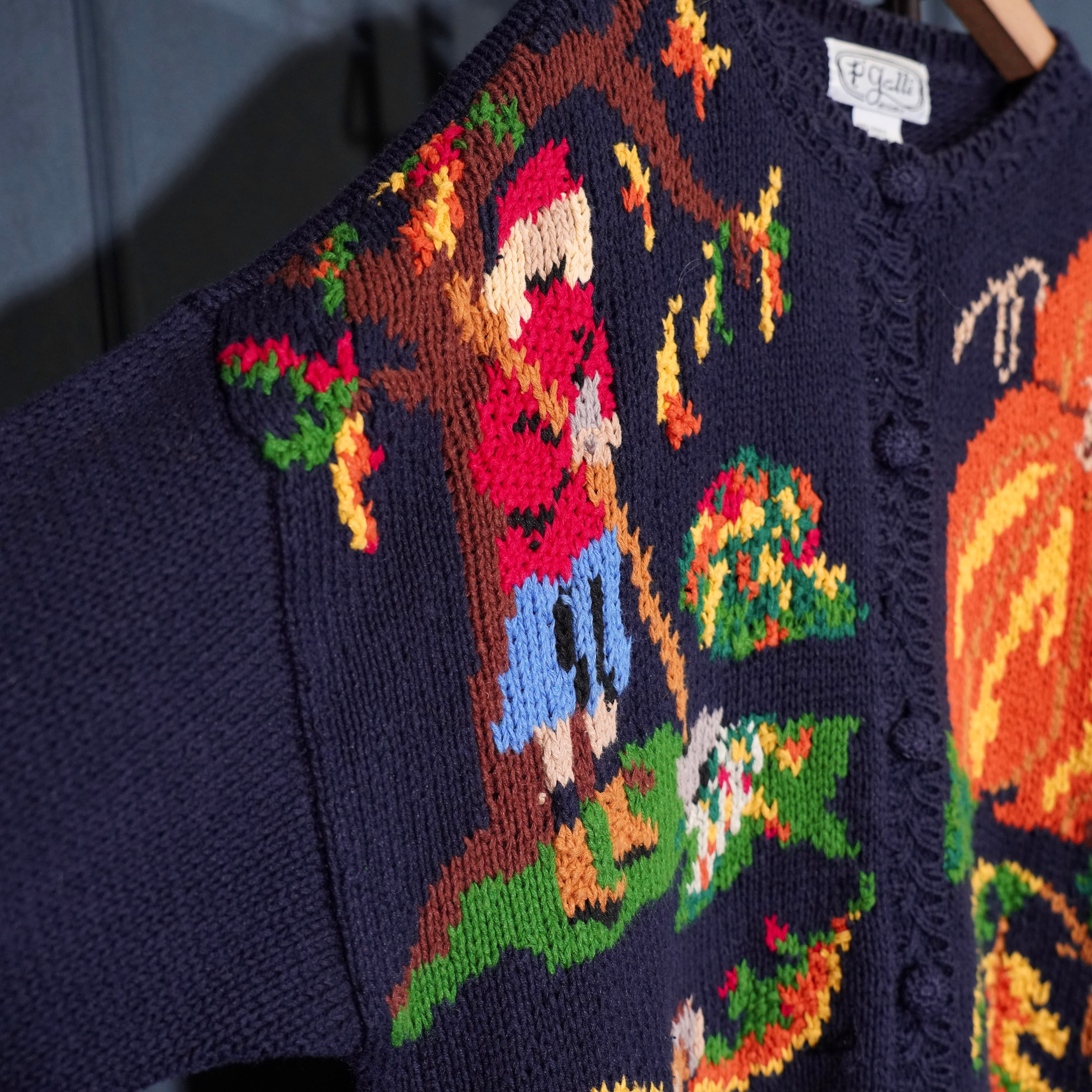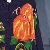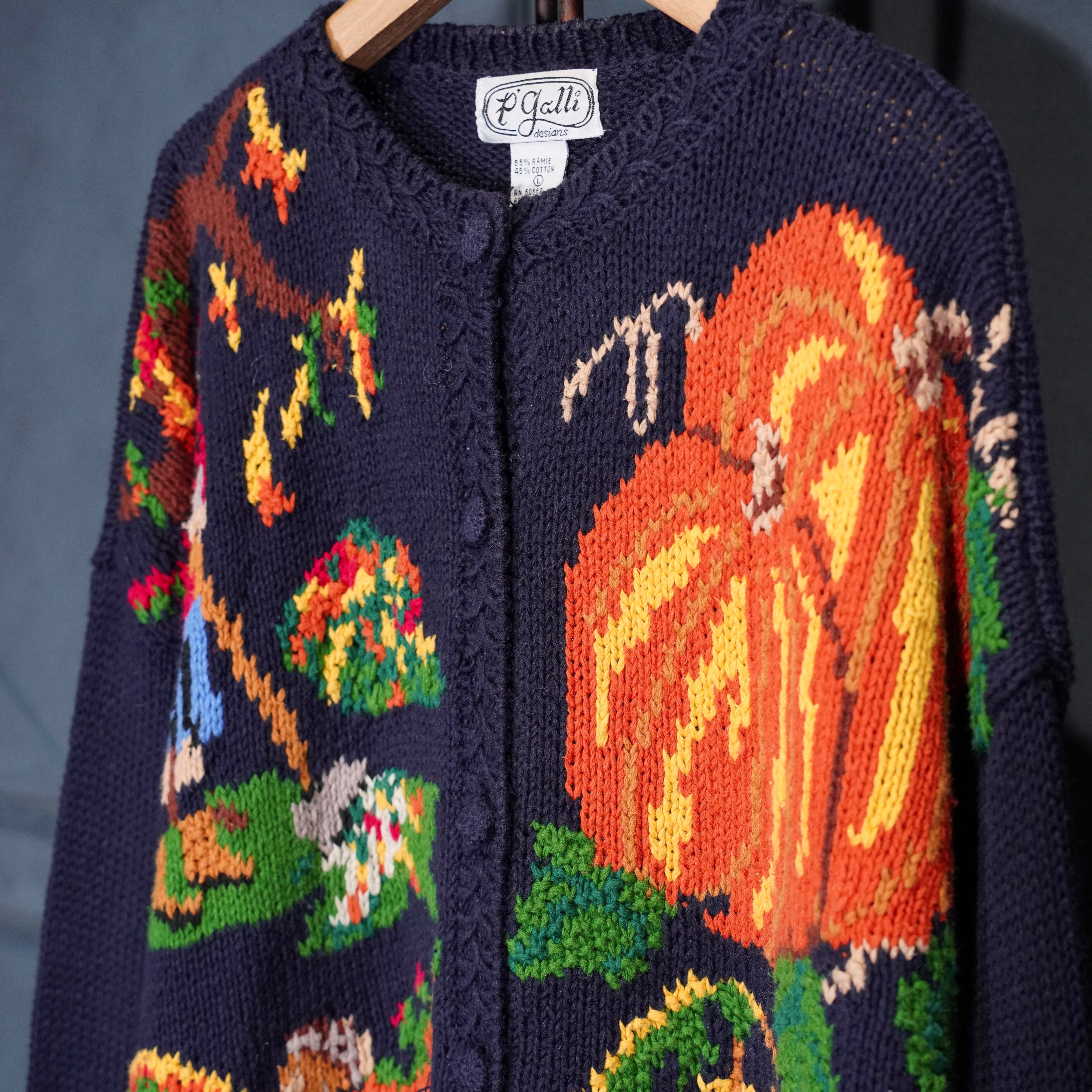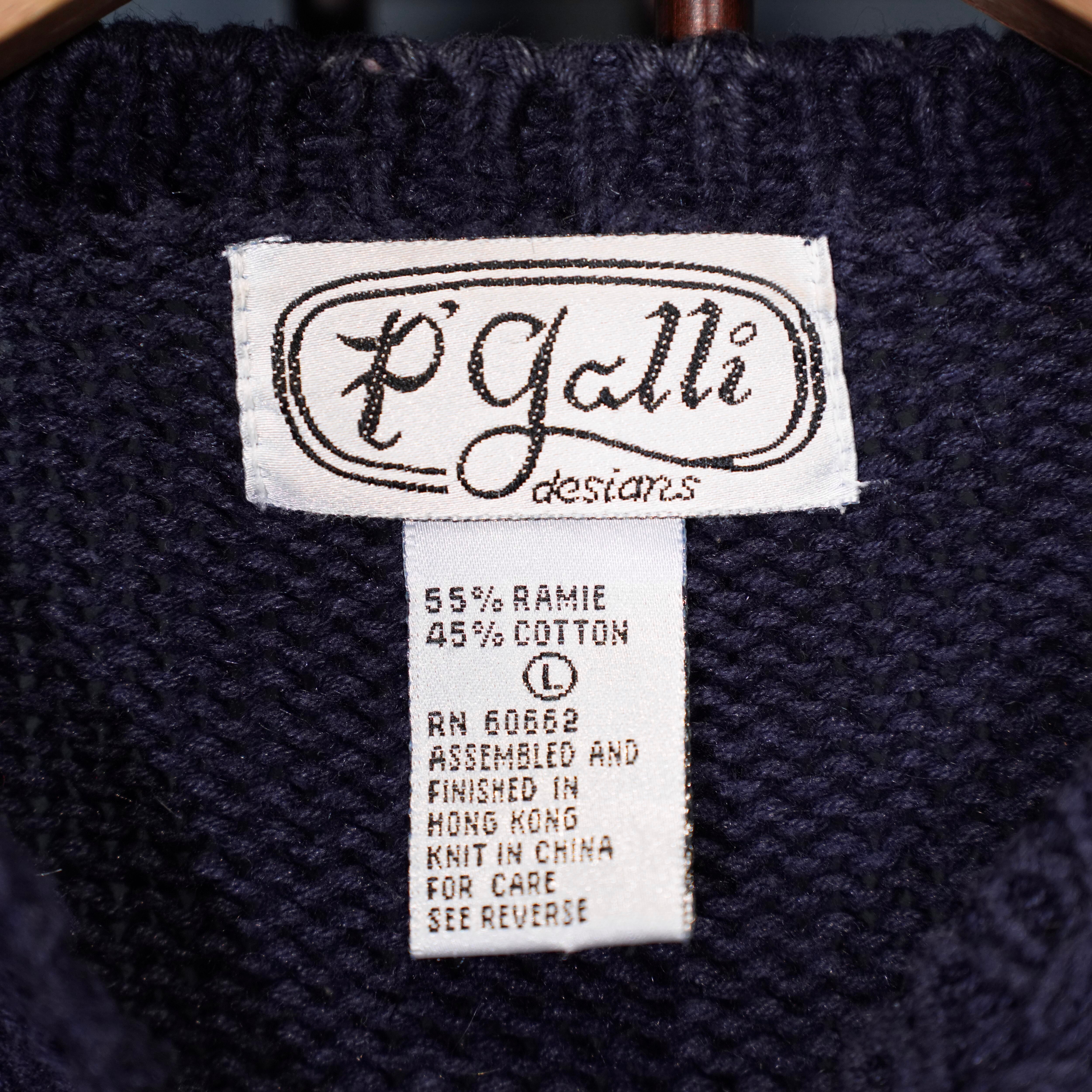 USA VINTAGE P'galli designs PATTERNED DESIGN COTTON RAMIE KNIT CARDIGAN/アメリカ古着柄デザインコットンラミーニットカーディガン