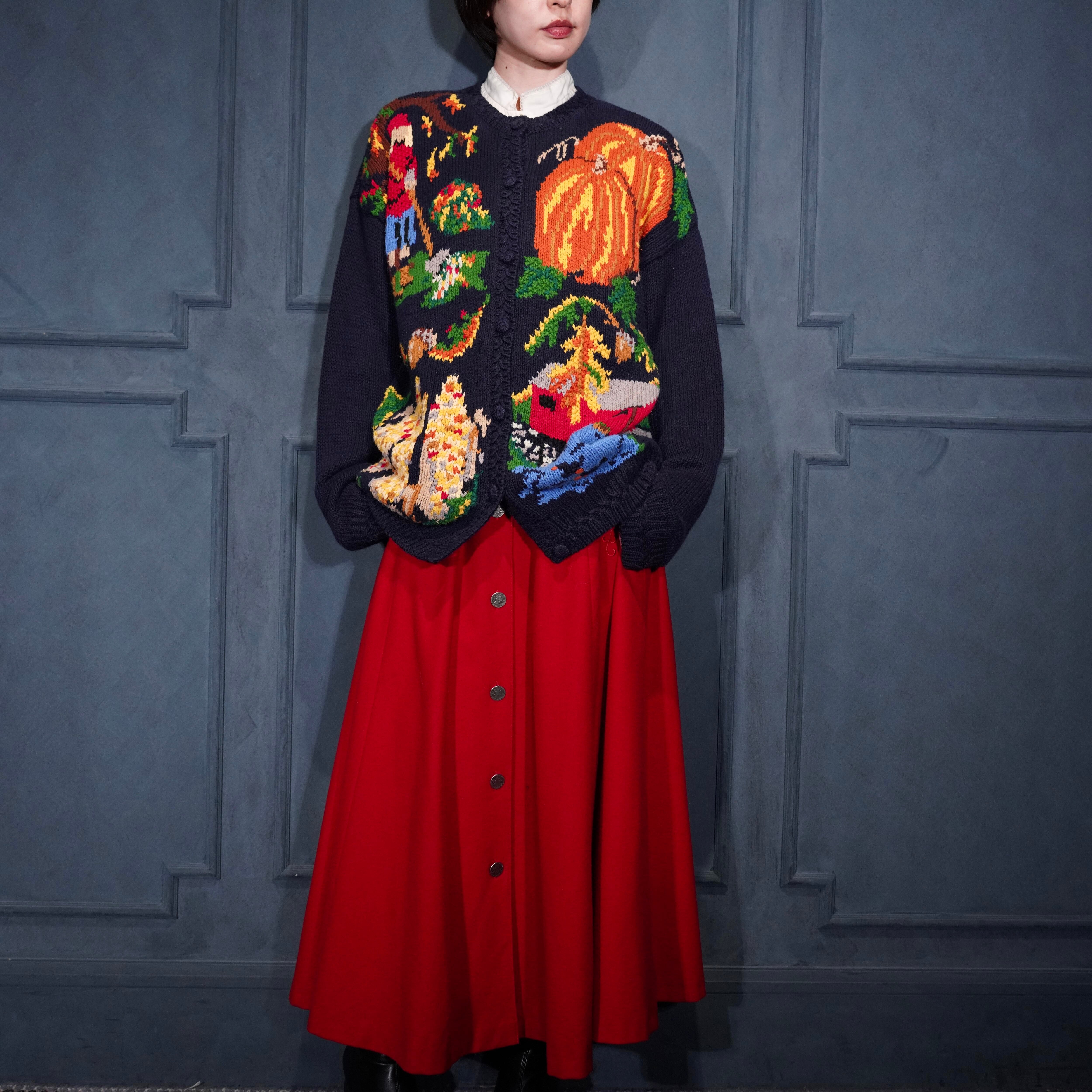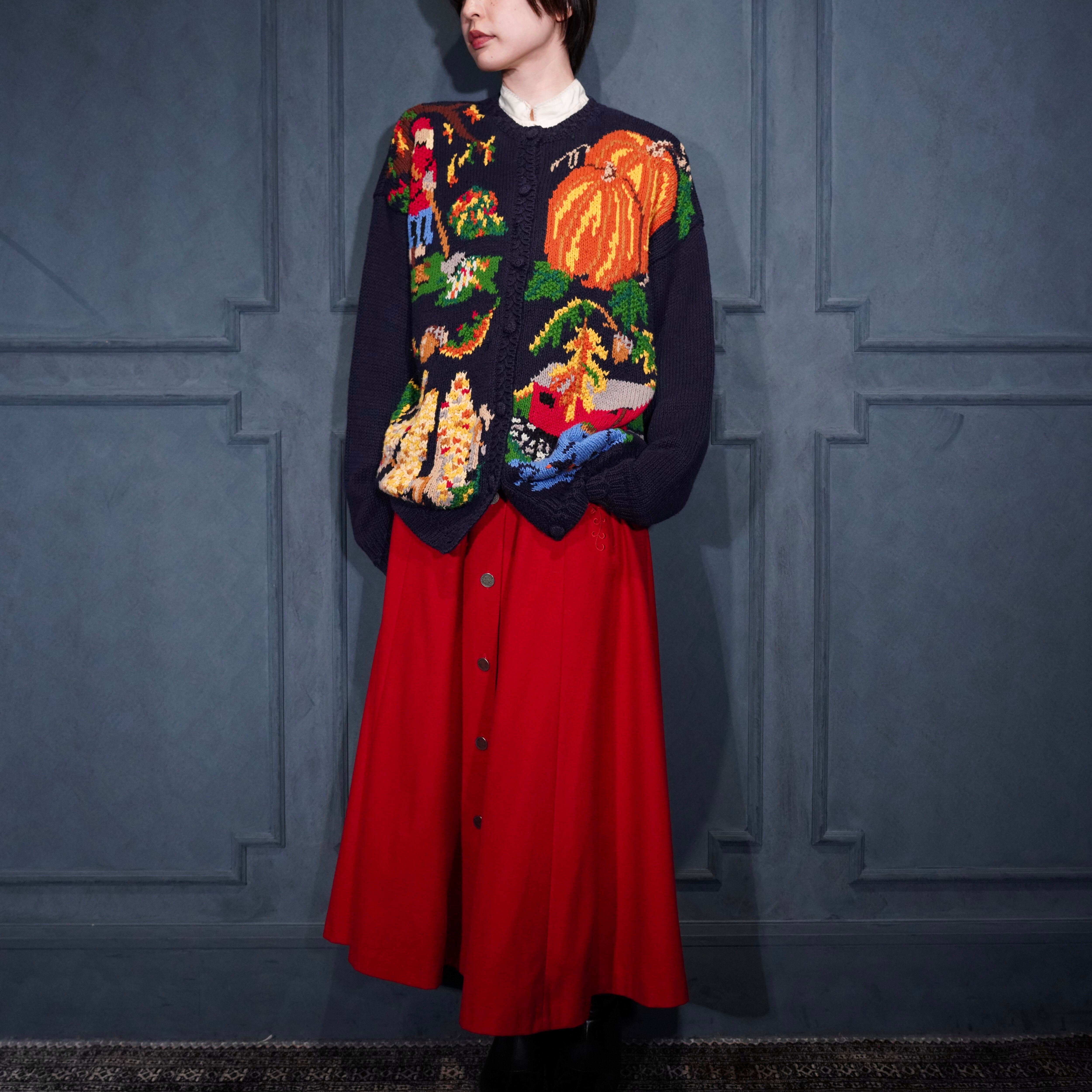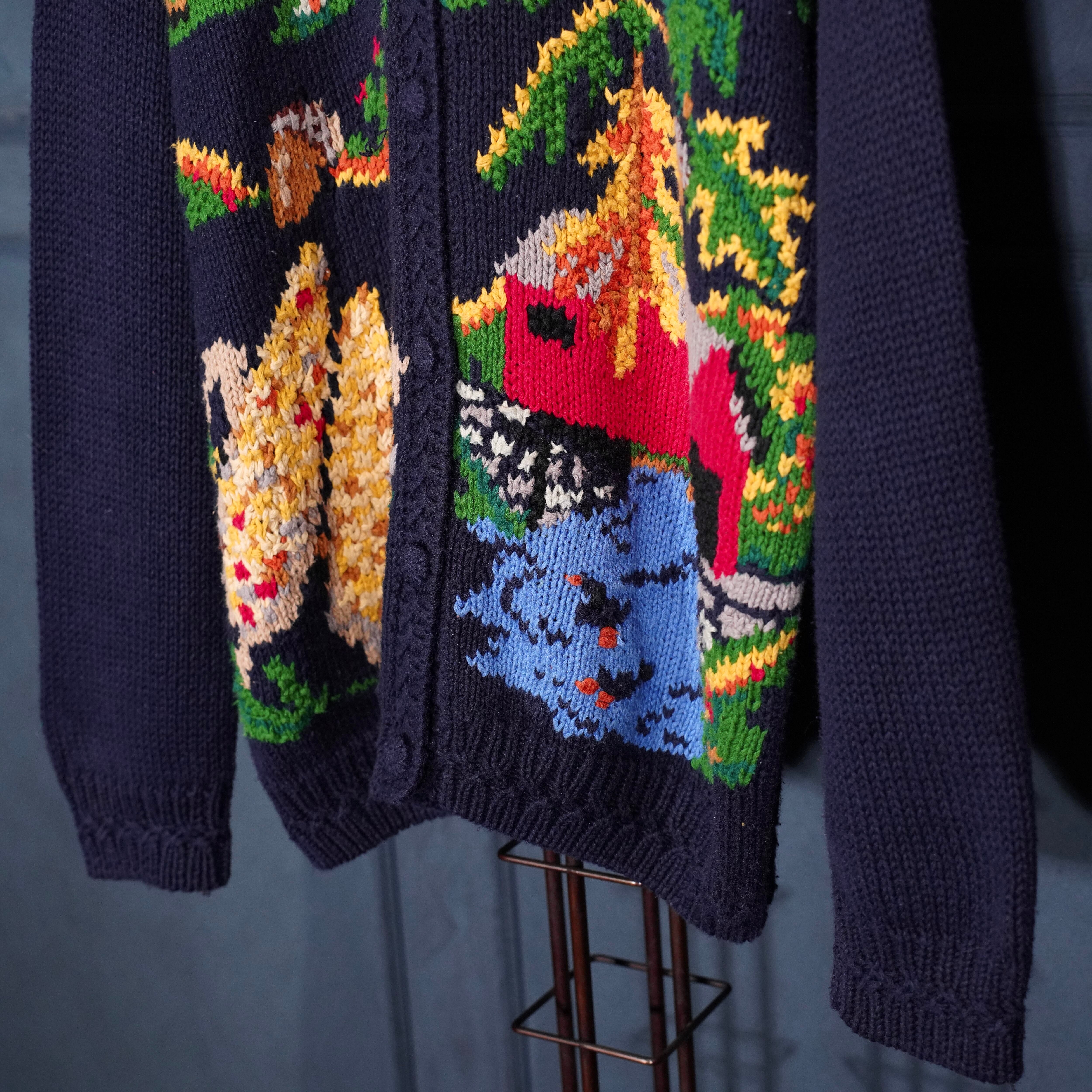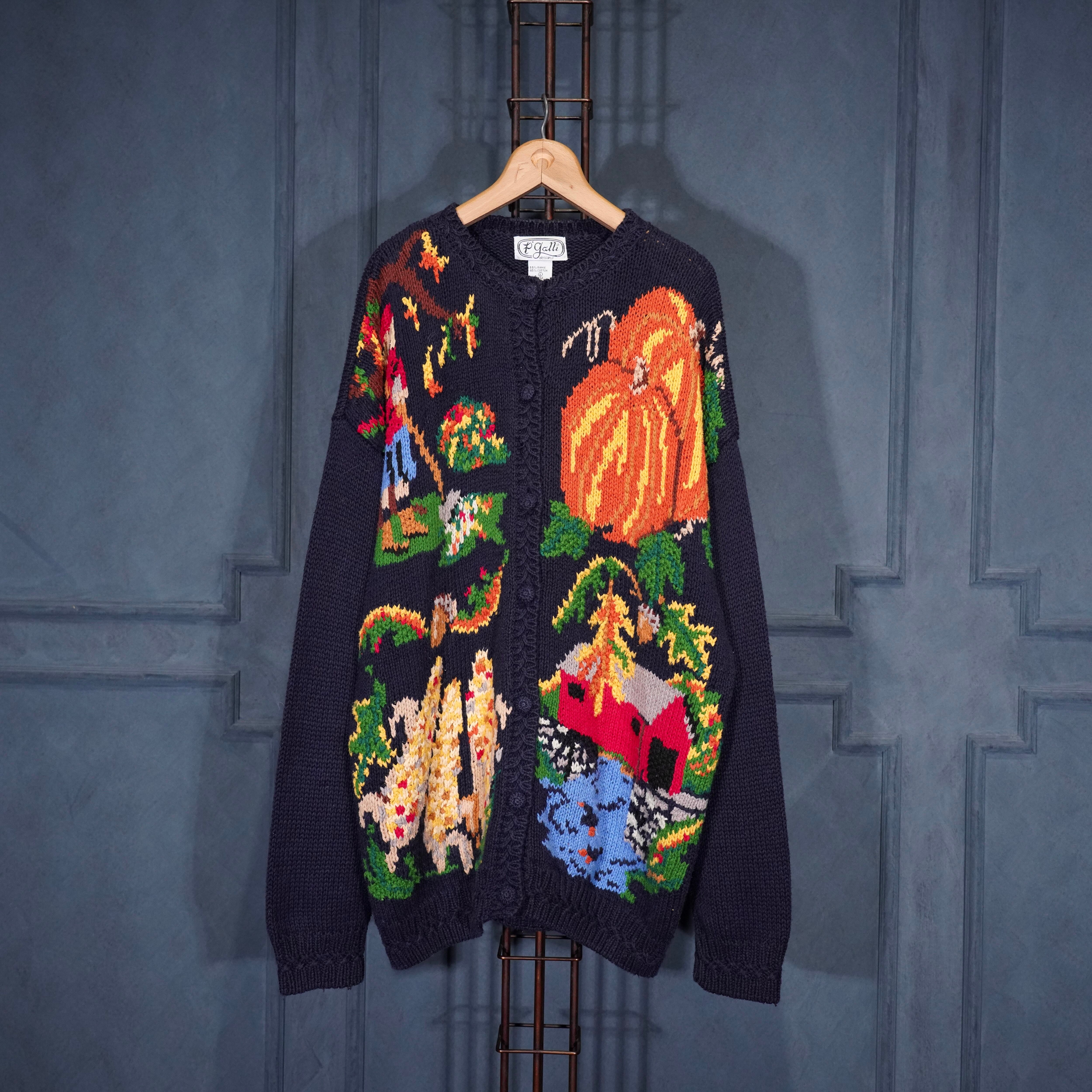 USA VINTAGE P'galli designs PATTERNED DESIGN COTTON RAMIE KNIT CARDIGAN/アメリカ古着柄デザインコットンラミーニットカーディガン