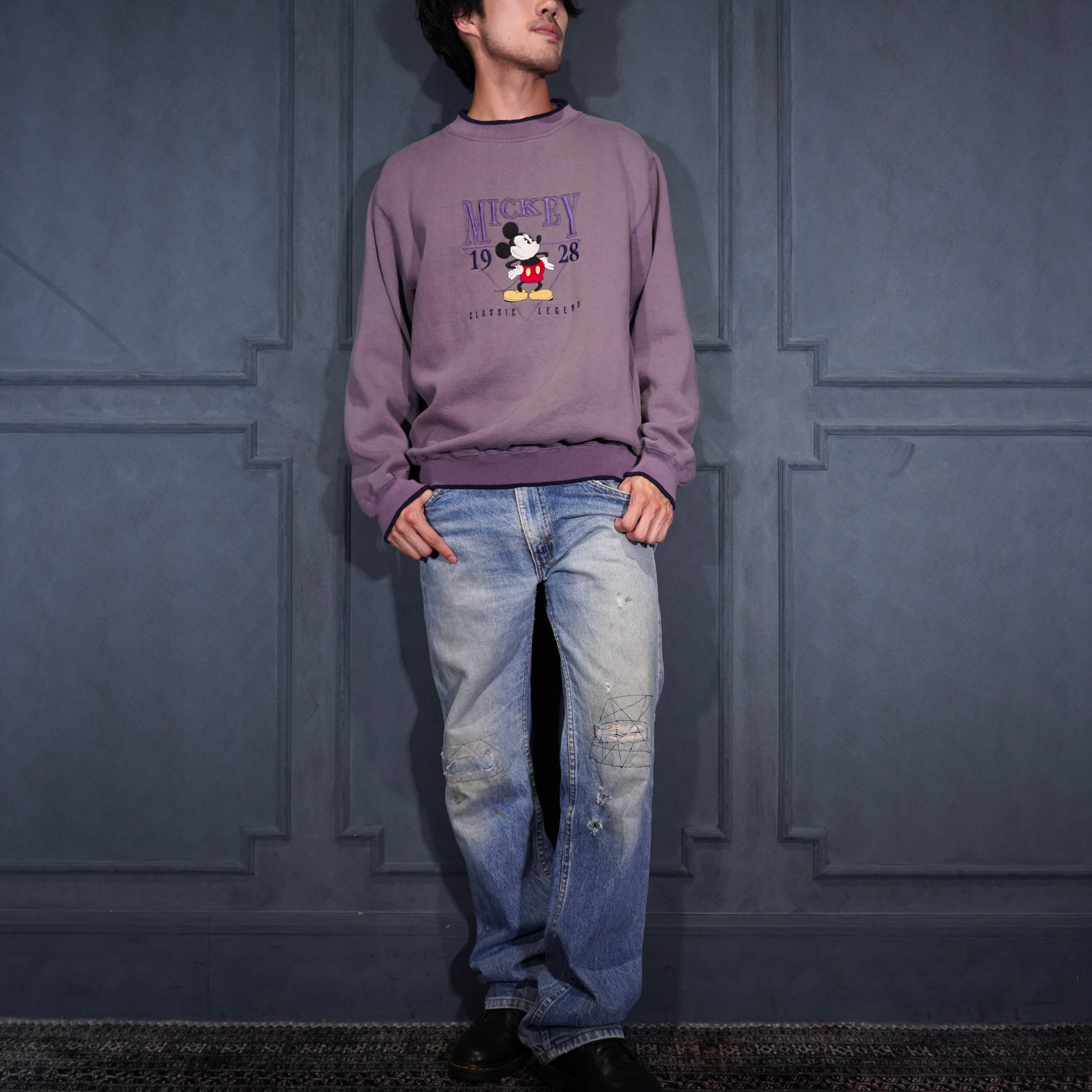 90's USA VINTAGE MICKEY&CO CHARACTER EMBROIDERY DESIGN SWEAT SHIRT/90年代アメリカ古着キャラクター刺繍デザインスウェット