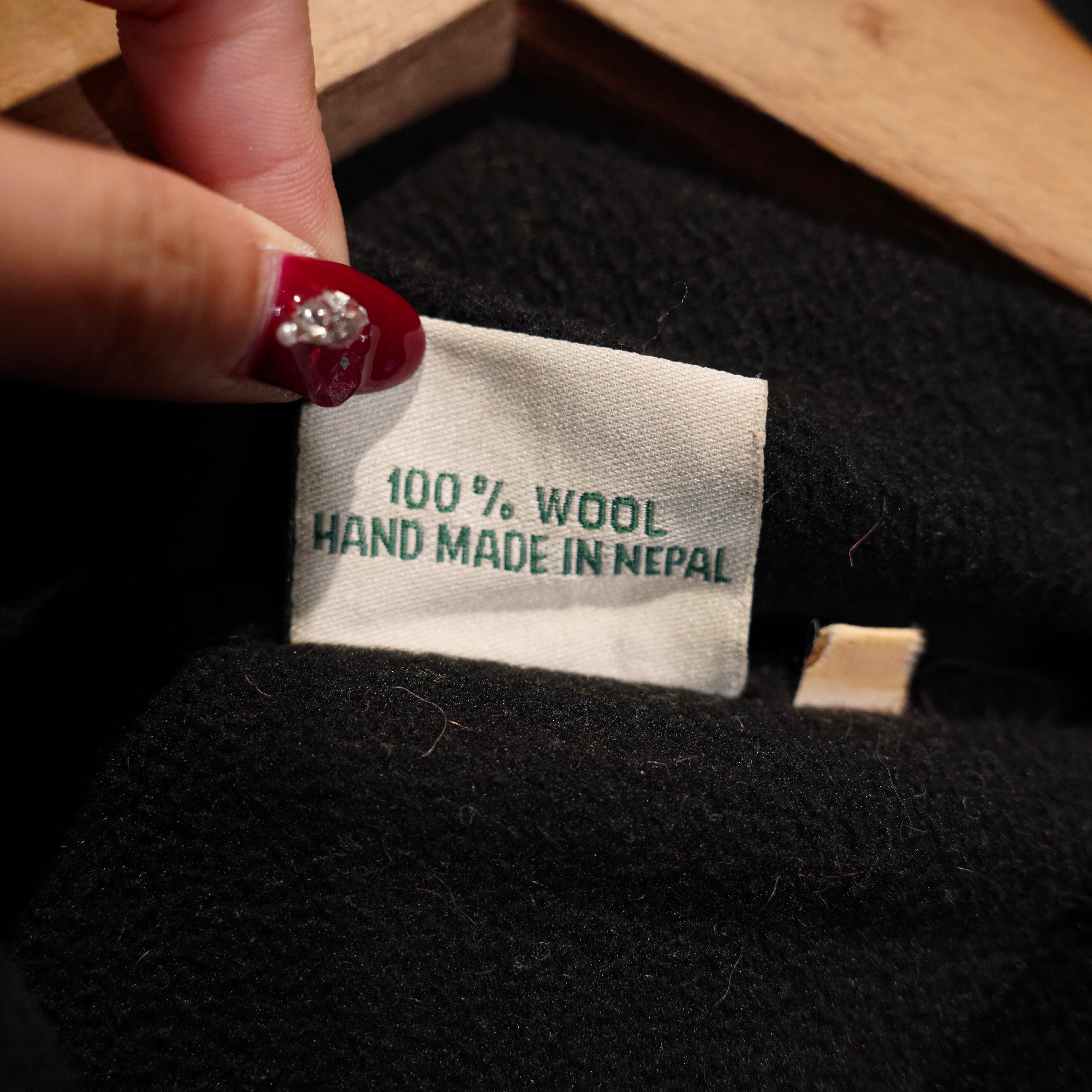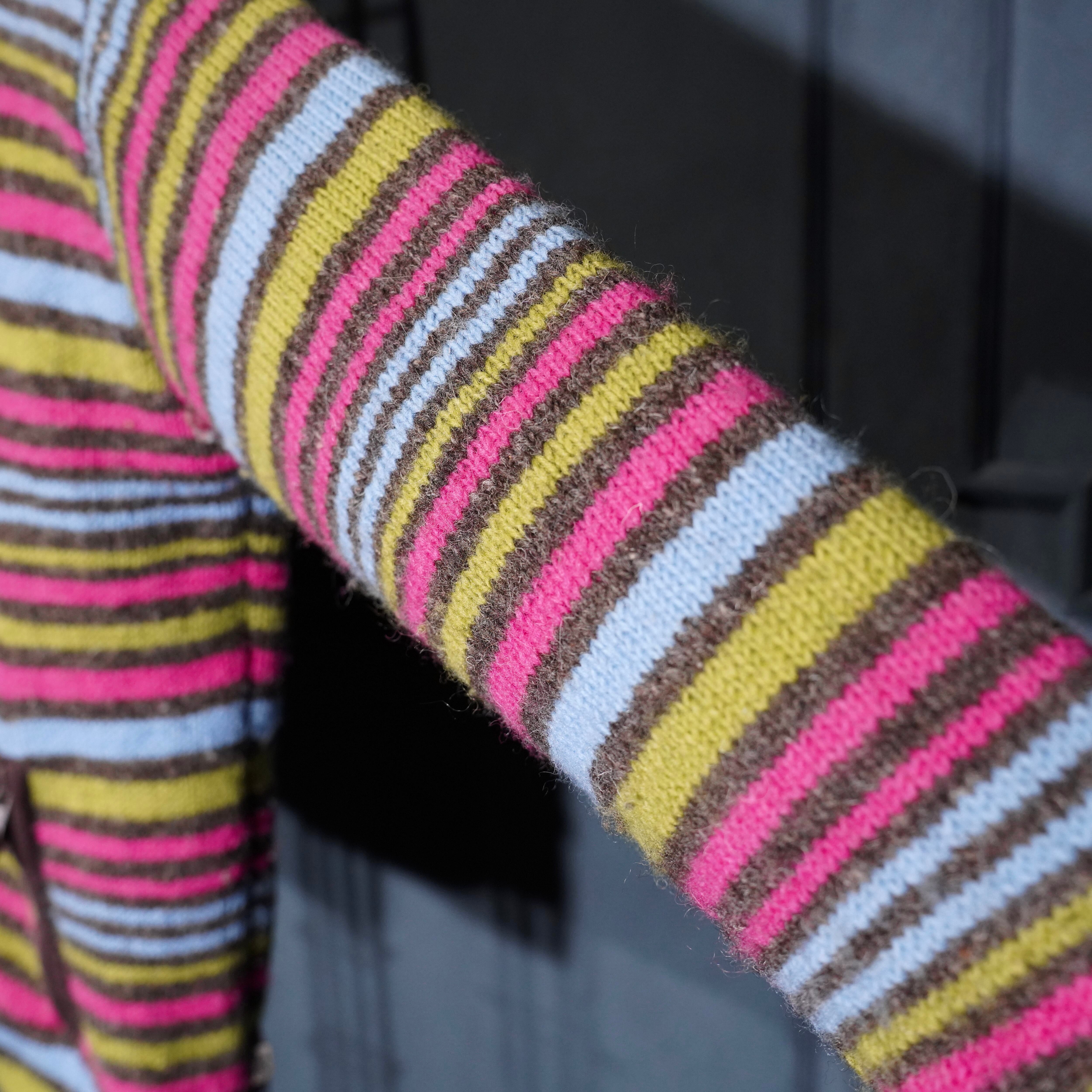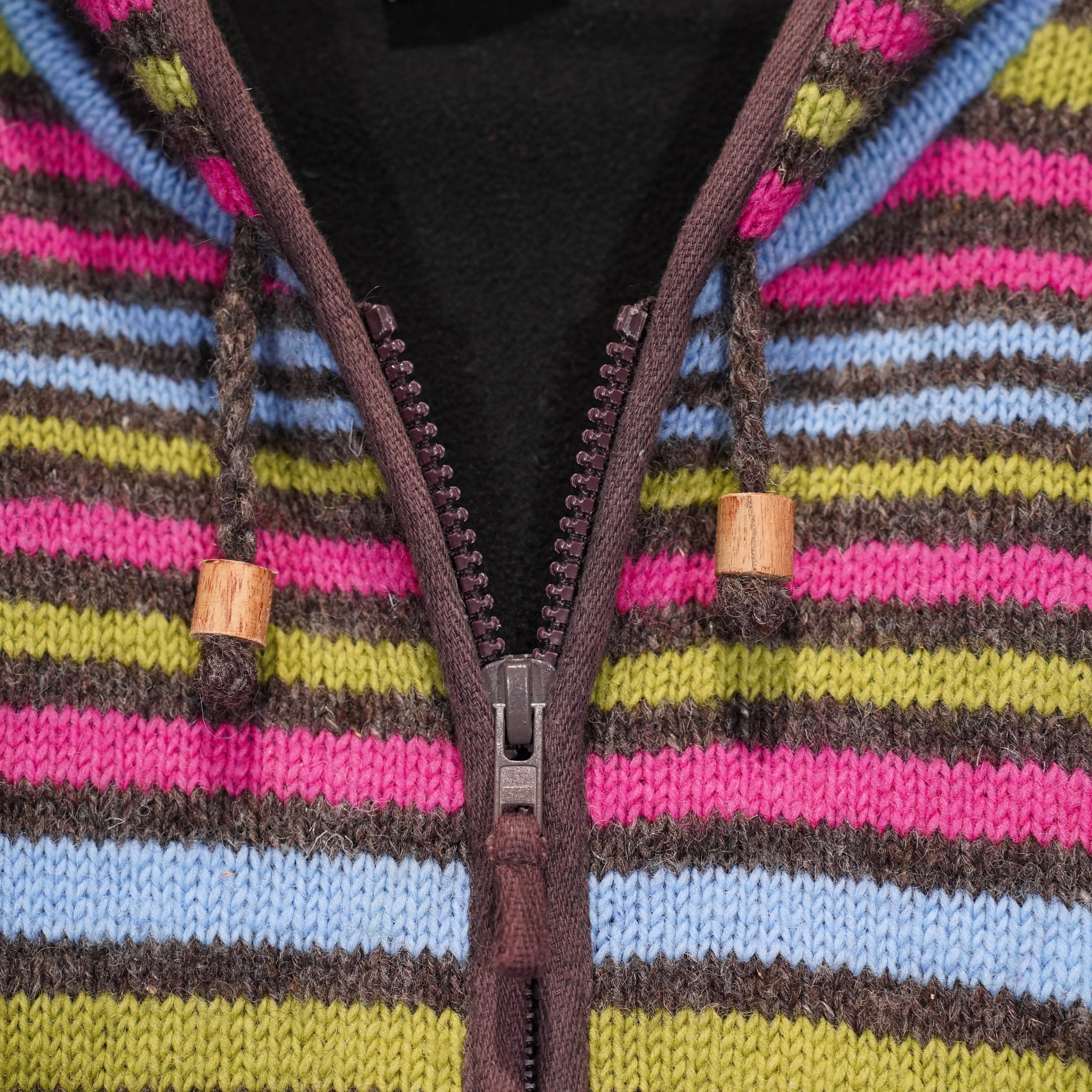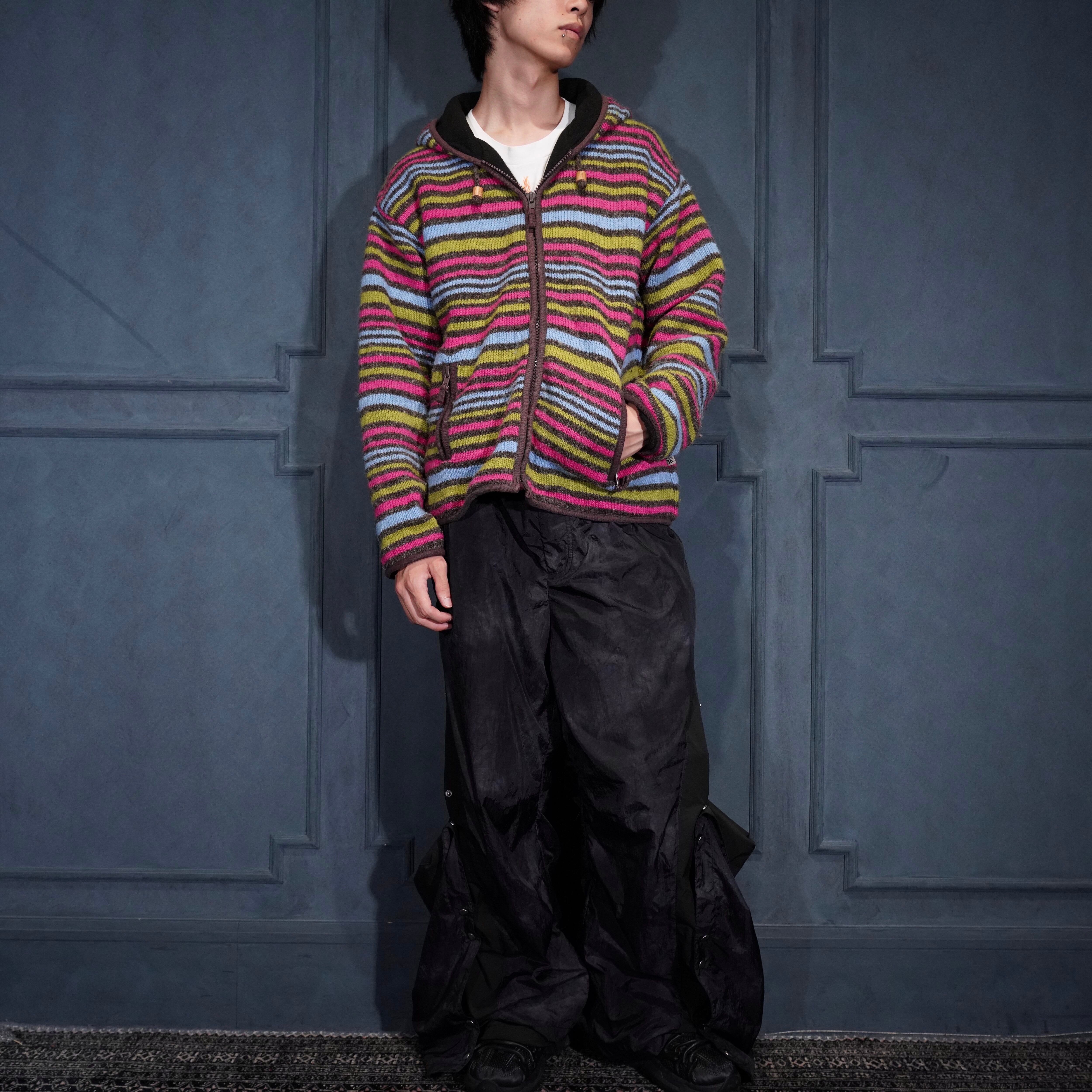 USA VINTAGE PACHAMAMA MULTI BORDER DESIGN HAND WOOL KNIT ZIP UP HOODIE BLOUSON/アメリカ古着マルチボーダーデザインハンドウールニットジップアップフーディブルゾン
