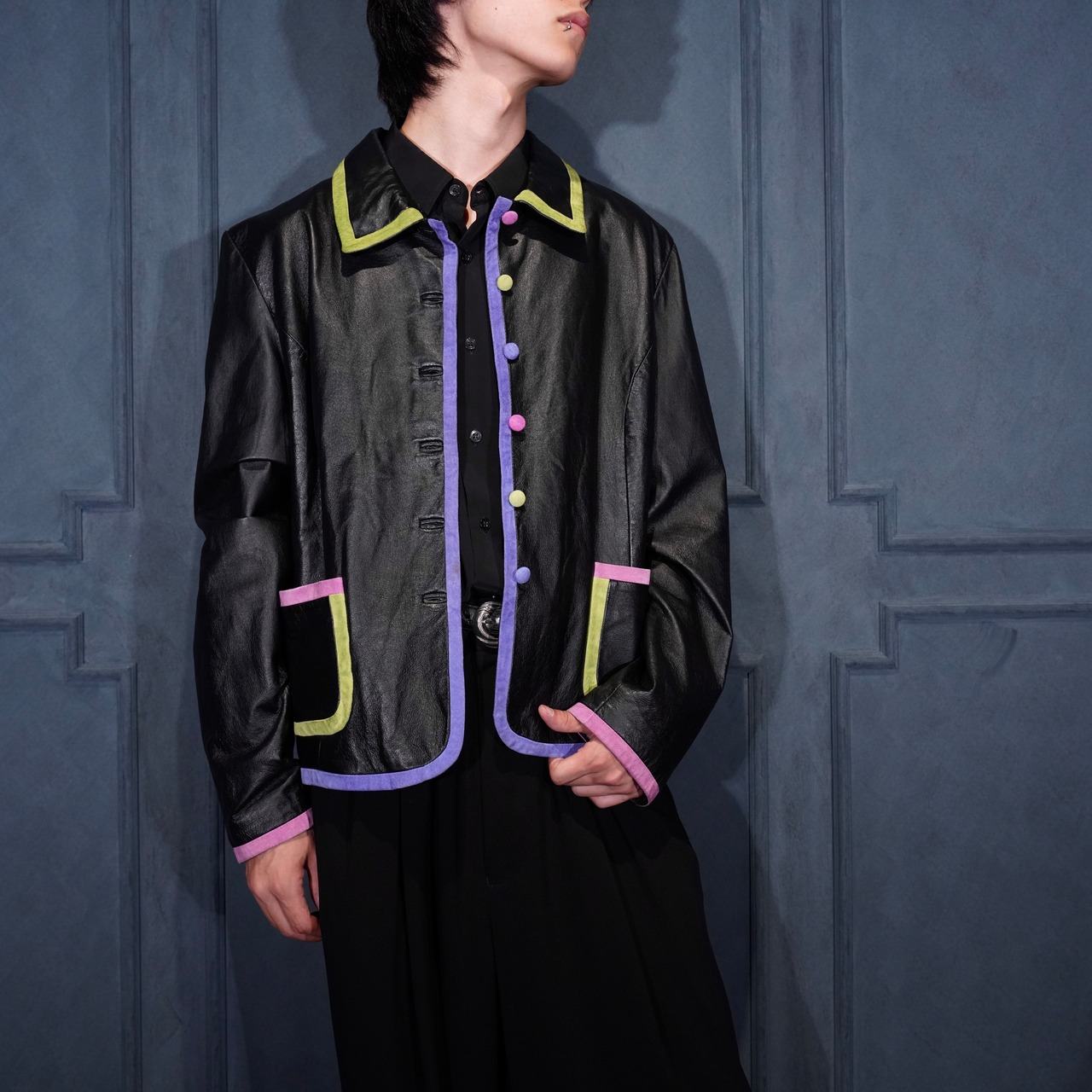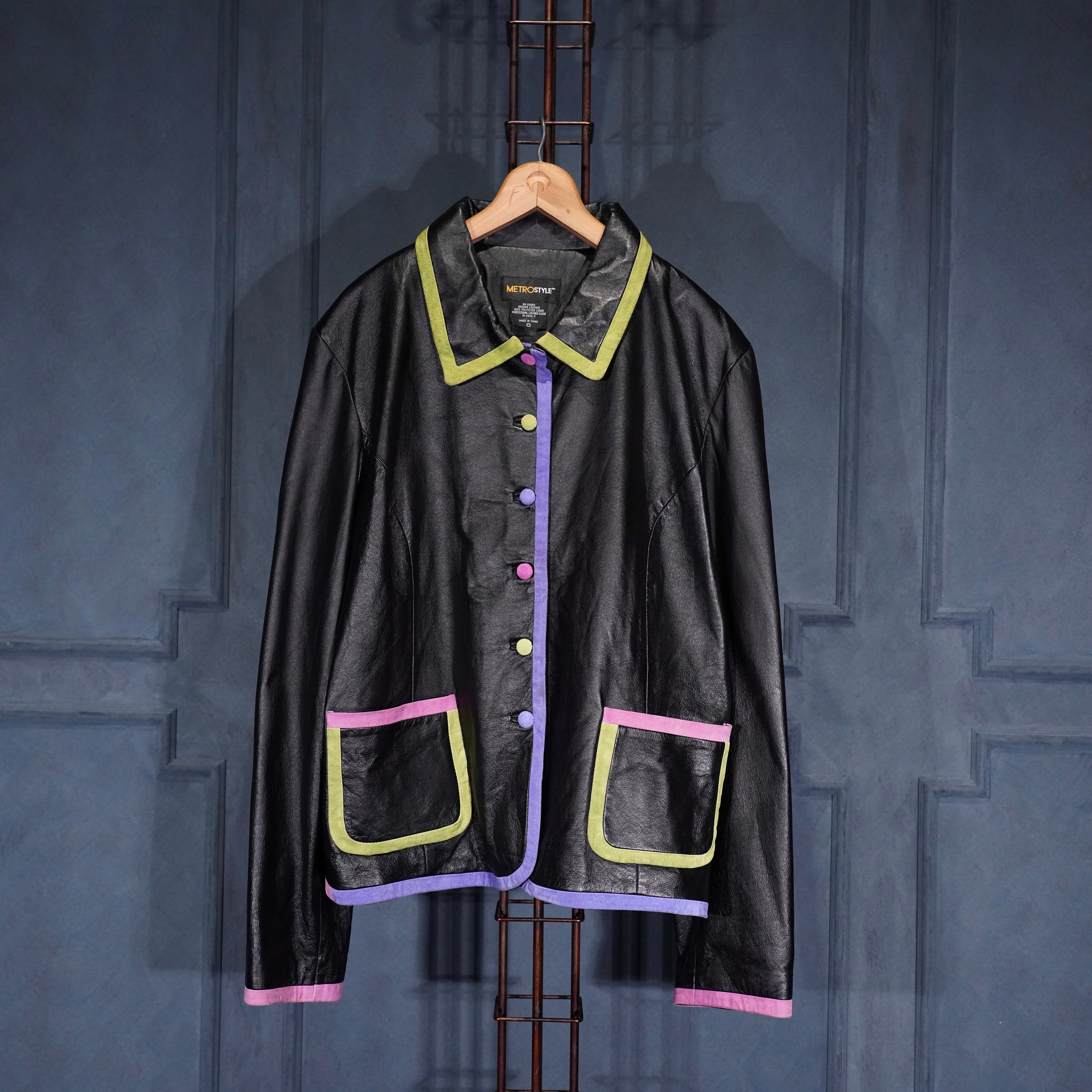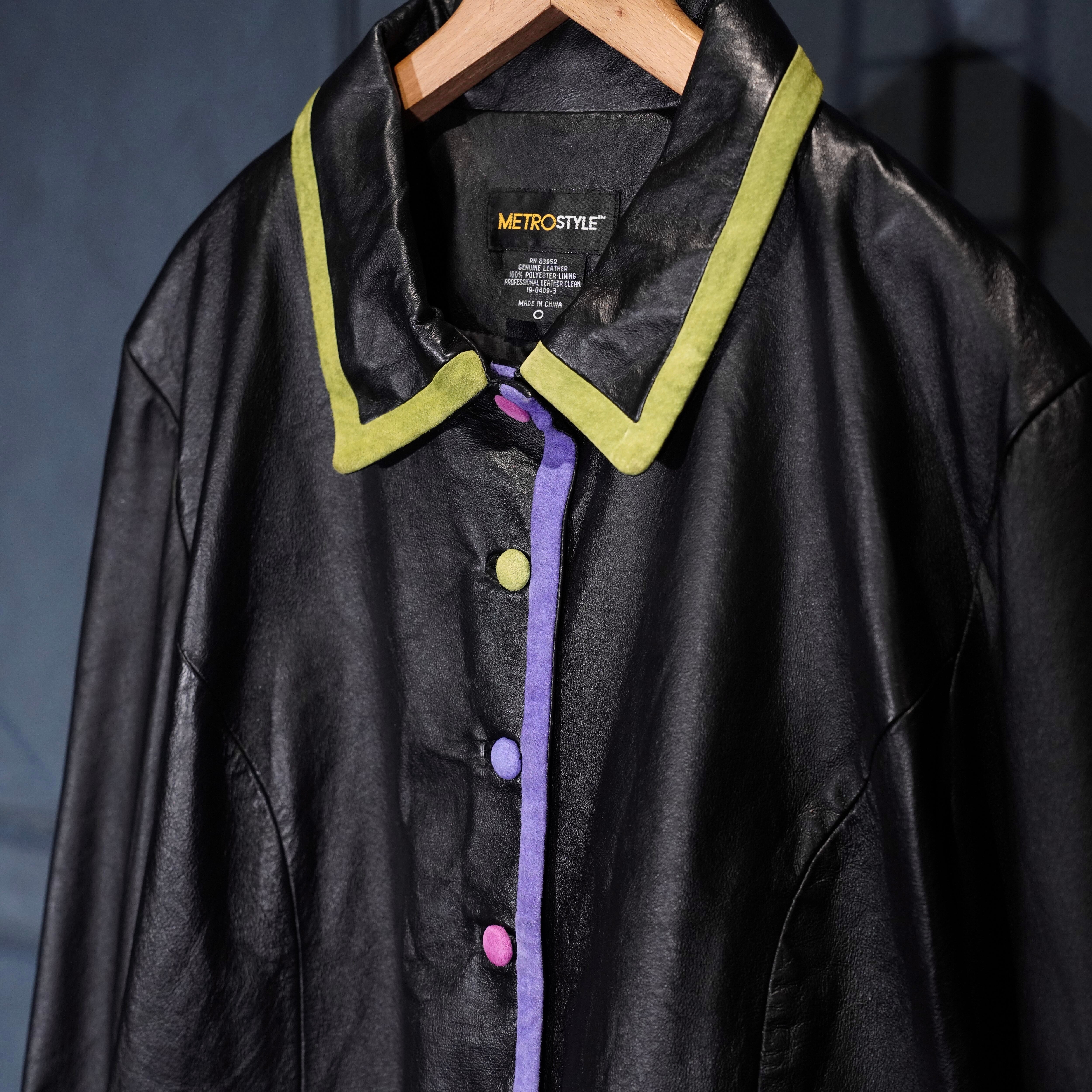 USA VINTAGE METROSTYLE COLOFUL PIPING DESIGN LEATHER JACKET/アメリカ古着カラフルパイピングデザインレザージャケット