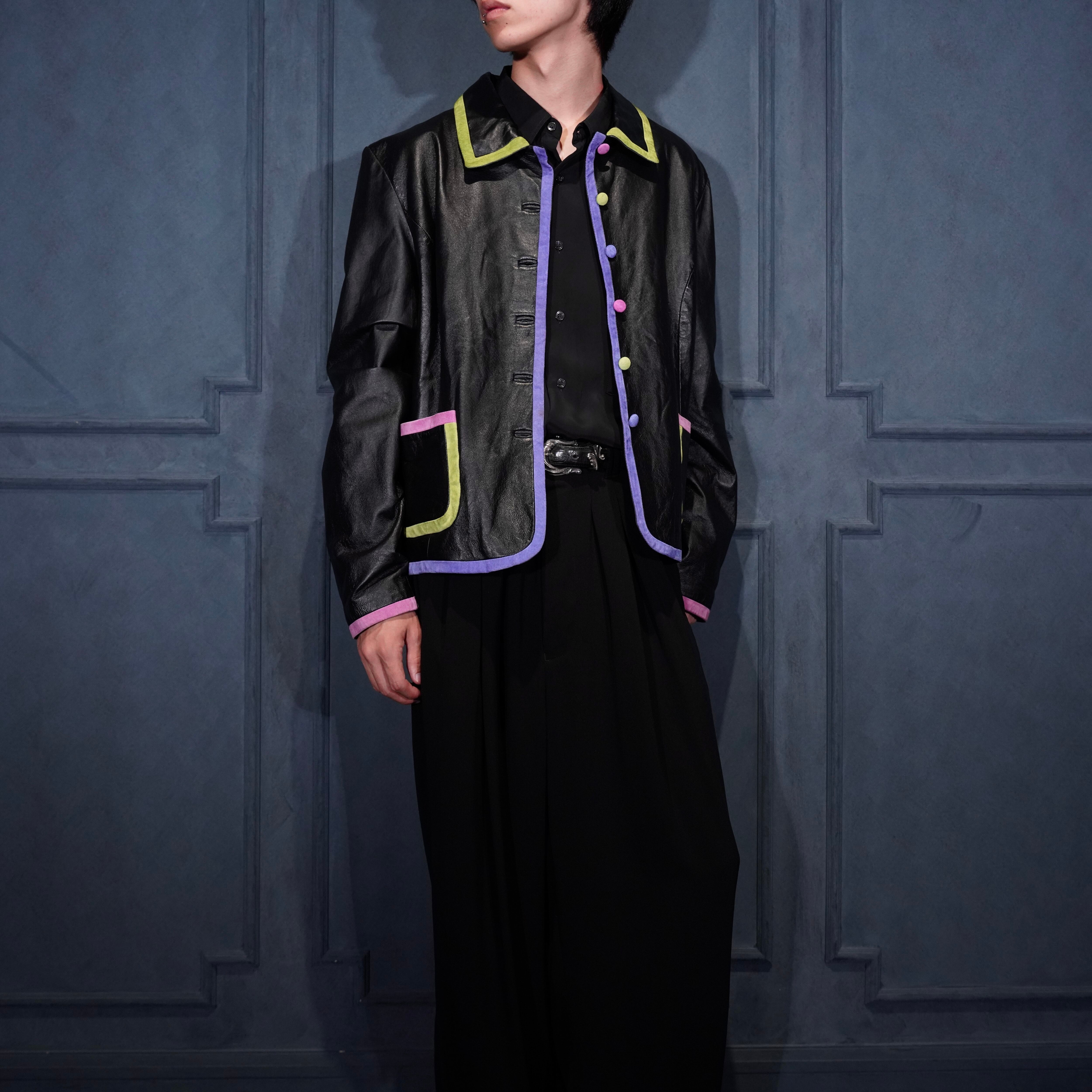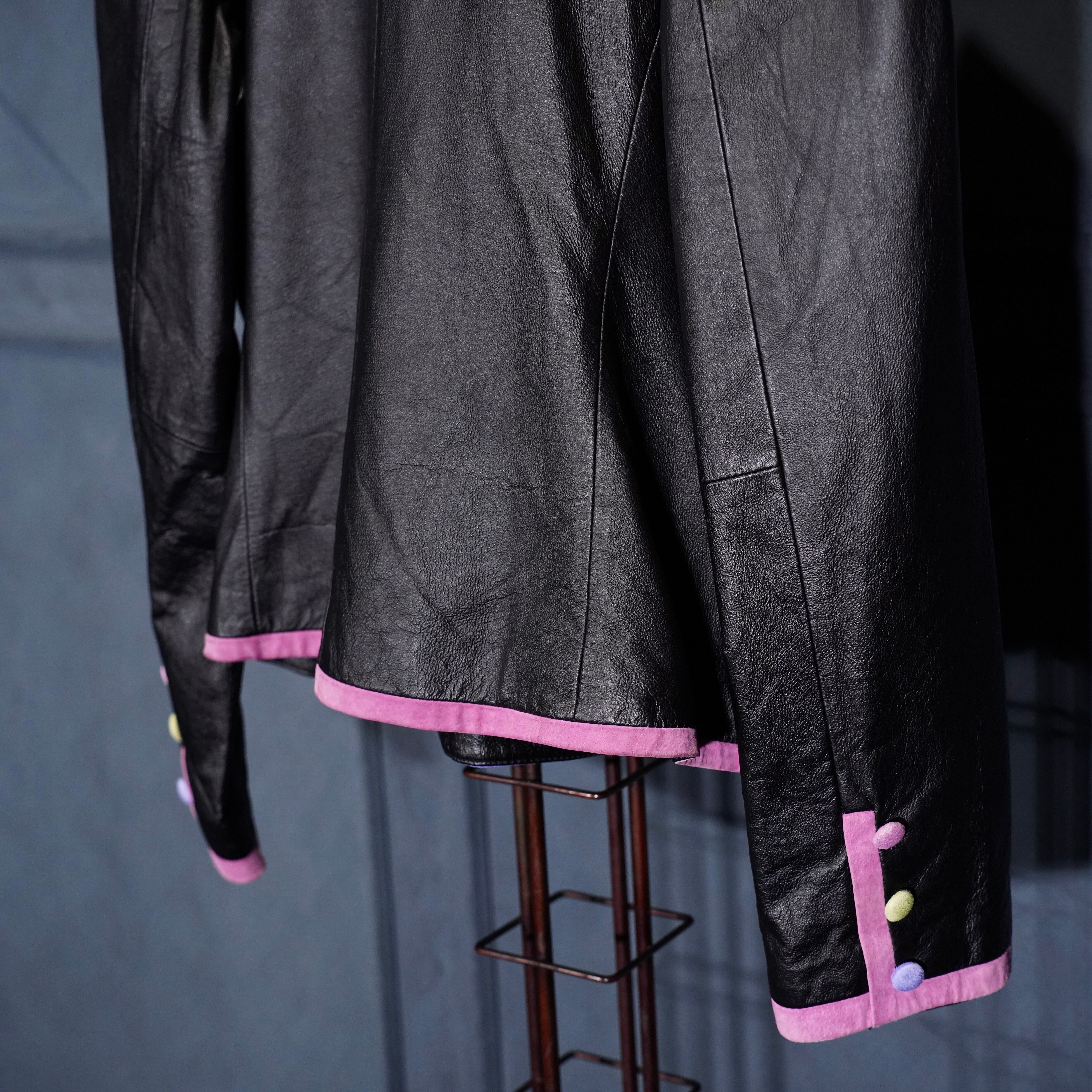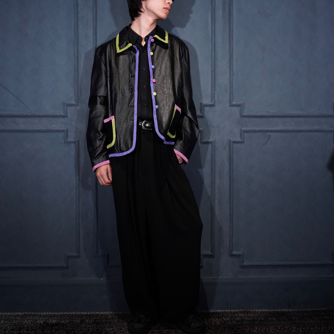 USA VINTAGE METROSTYLE COLOFUL PIPING DESIGN LEATHER JACKET/アメリカ古着カラフルパイピングデザインレザージャケット
