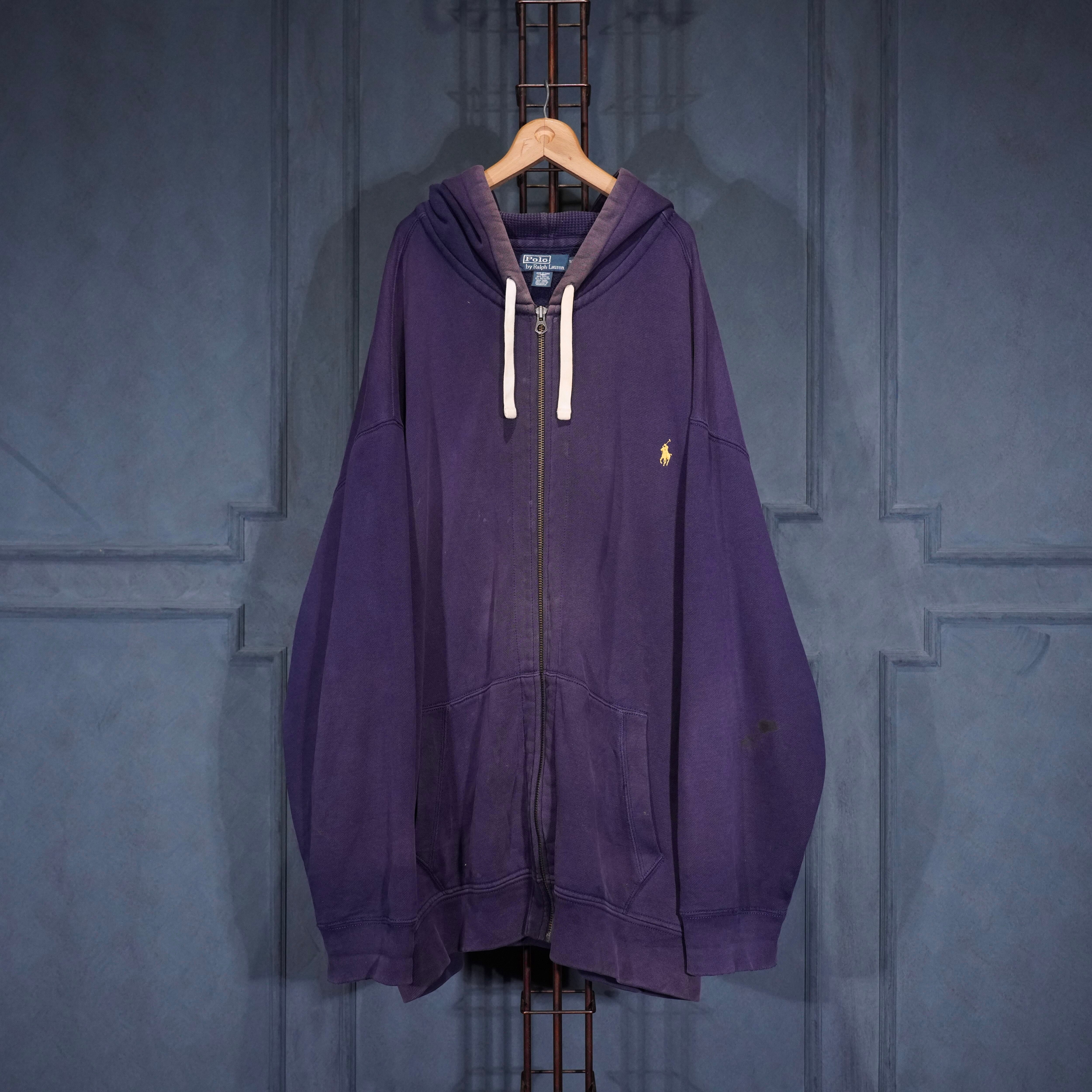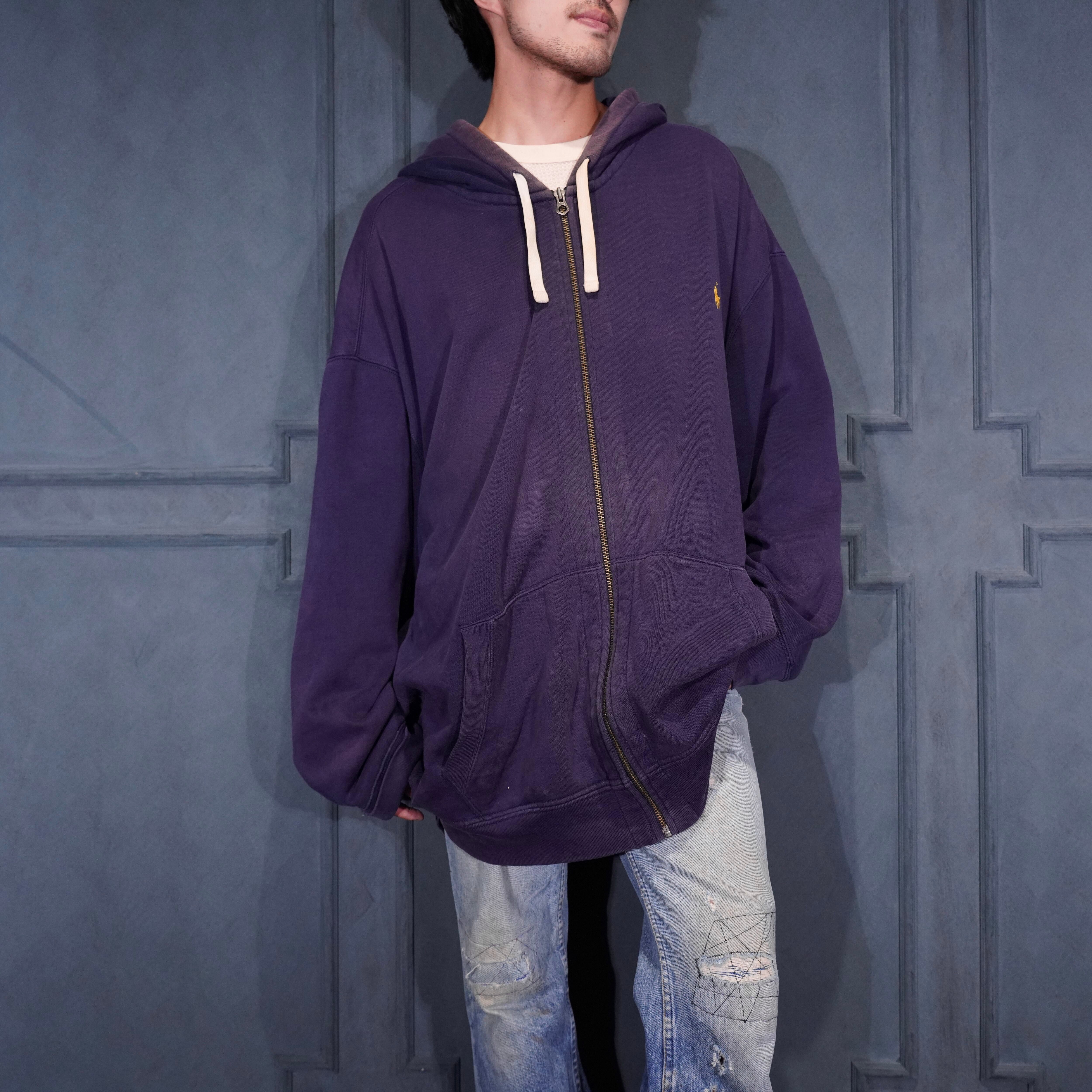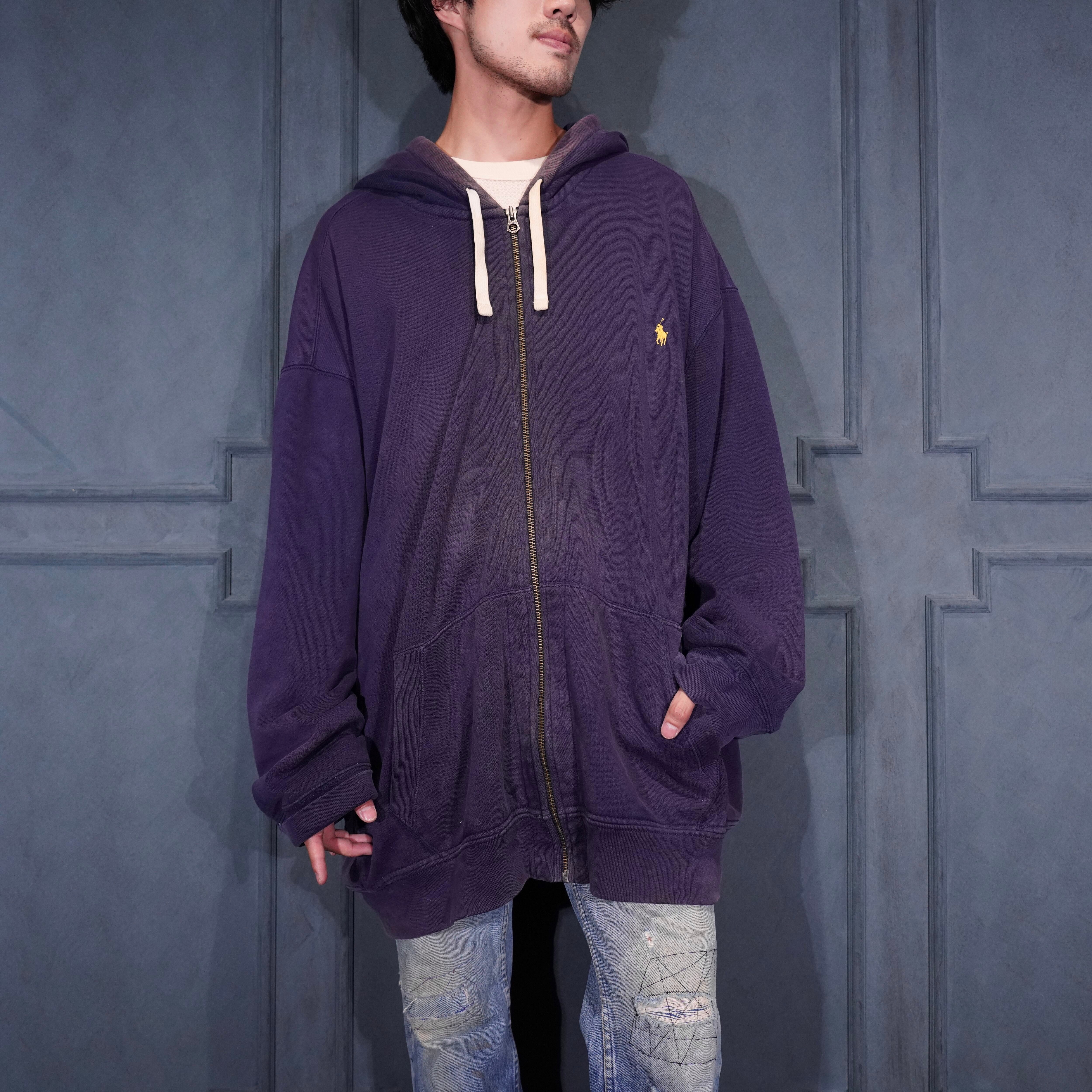 USA VINTAGE Polo by RalphLauren HORSE EMBROIDERY FADED DESIGN EXTRA BIG SIZE SWEAT ZIP UP HOODIE/アメリカ古着ポロバイラルフローレンホース刺繍フェードデザイン超ビッグサイズスウェットジップアップフーディ(パーカー)