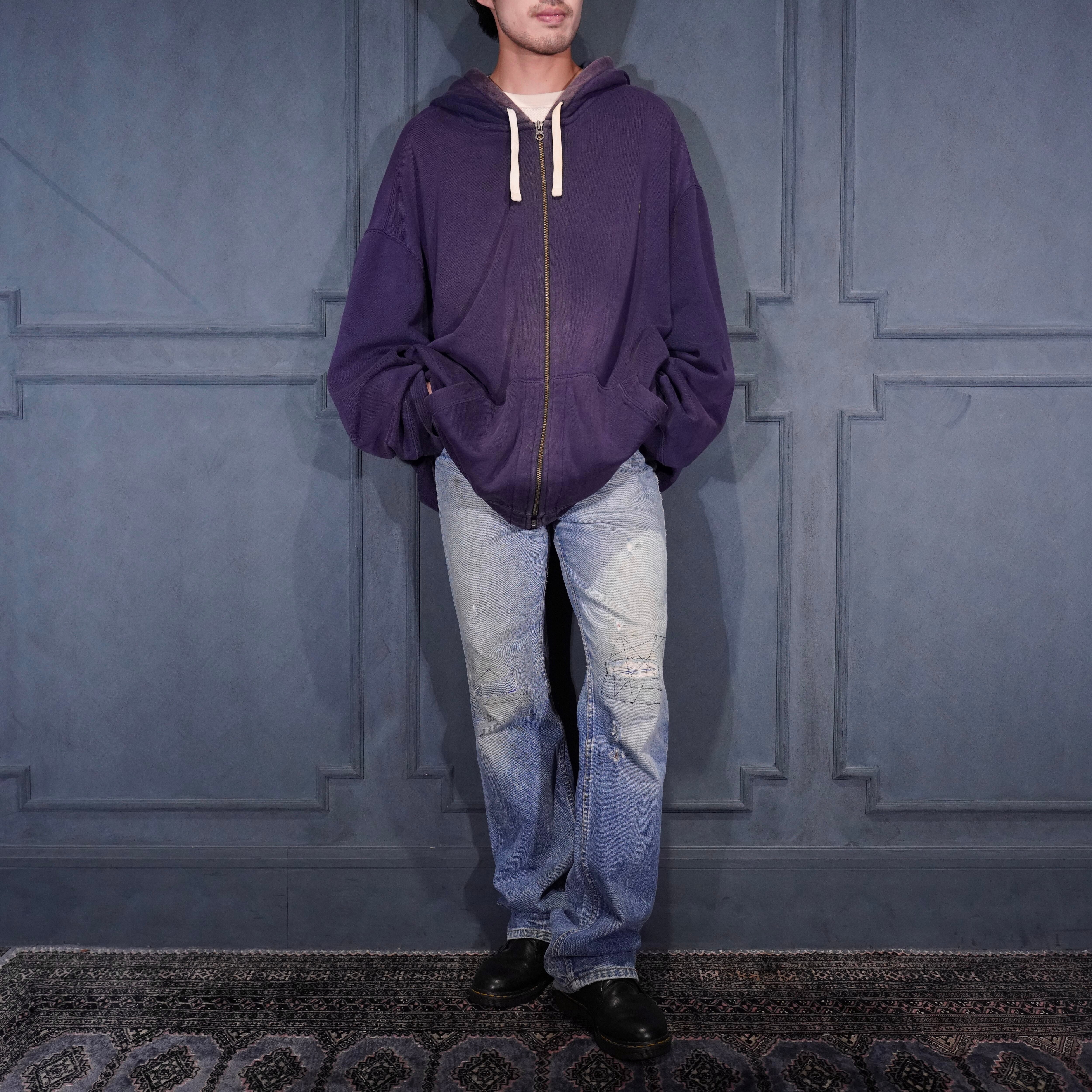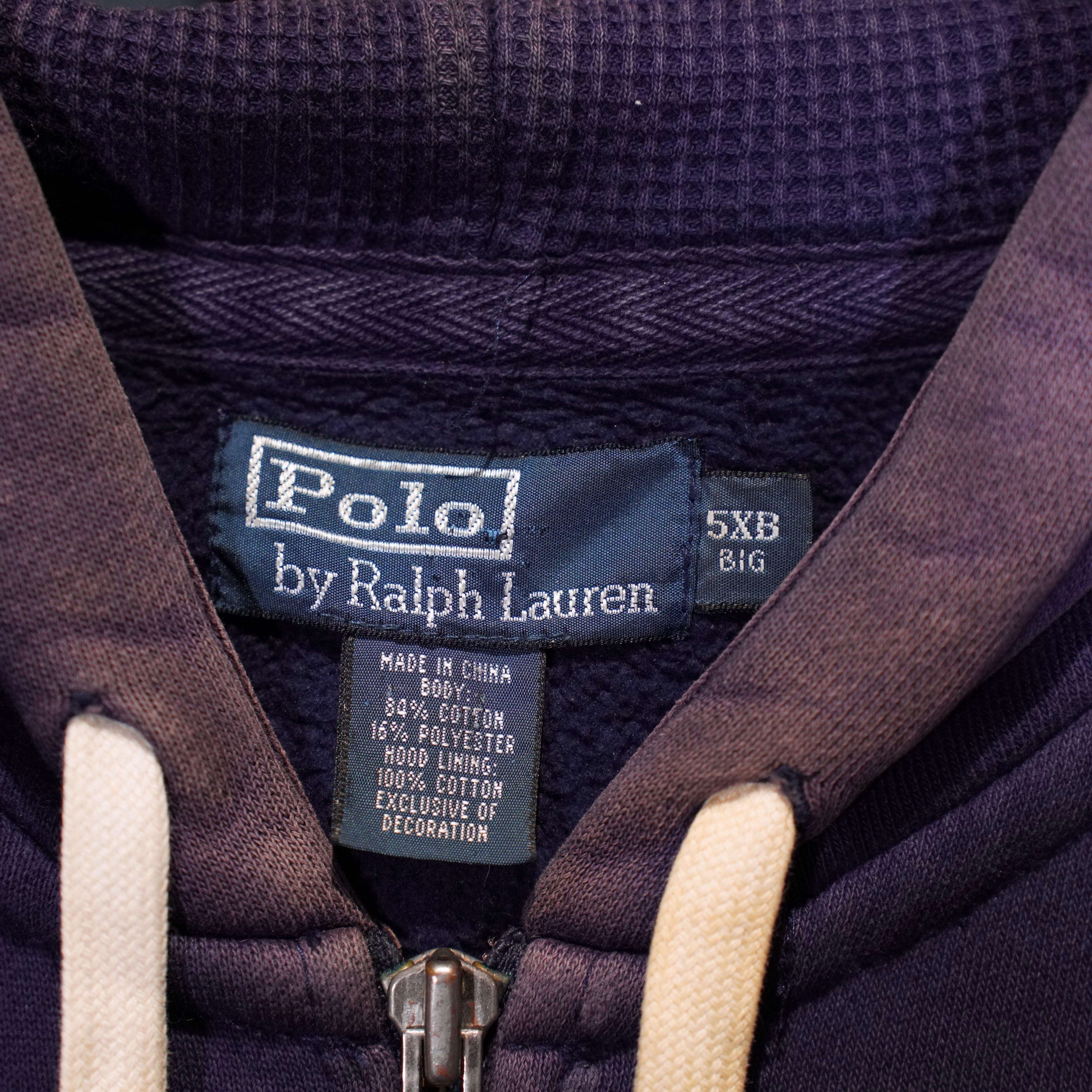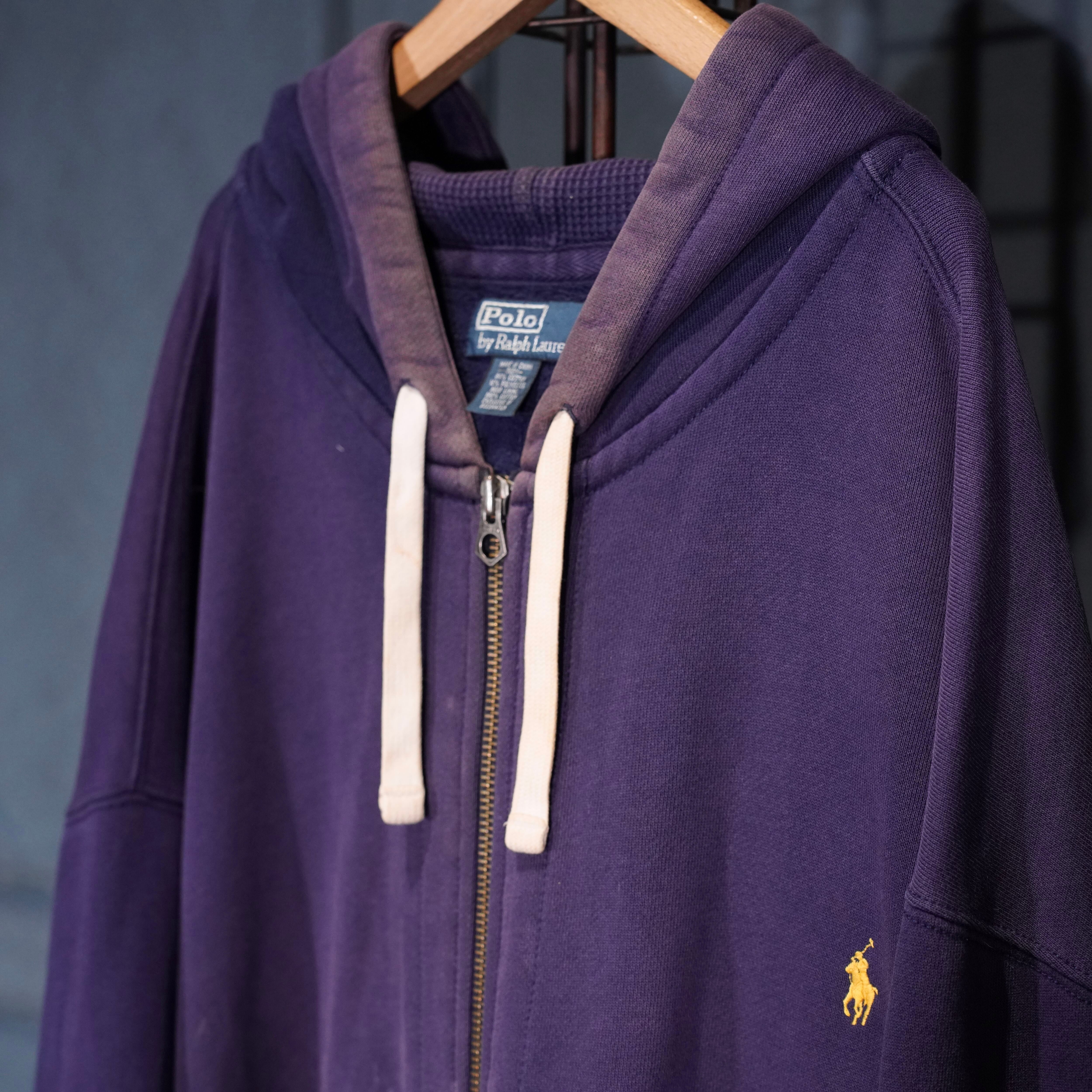 USA VINTAGE Polo by RalphLauren HORSE EMBROIDERY FADED DESIGN EXTRA BIG SIZE SWEAT ZIP UP HOODIE/アメリカ古着ポロバイラルフローレンホース刺繍フェードデザイン超ビッグサイズスウェットジップアップフーディ(パーカー)
