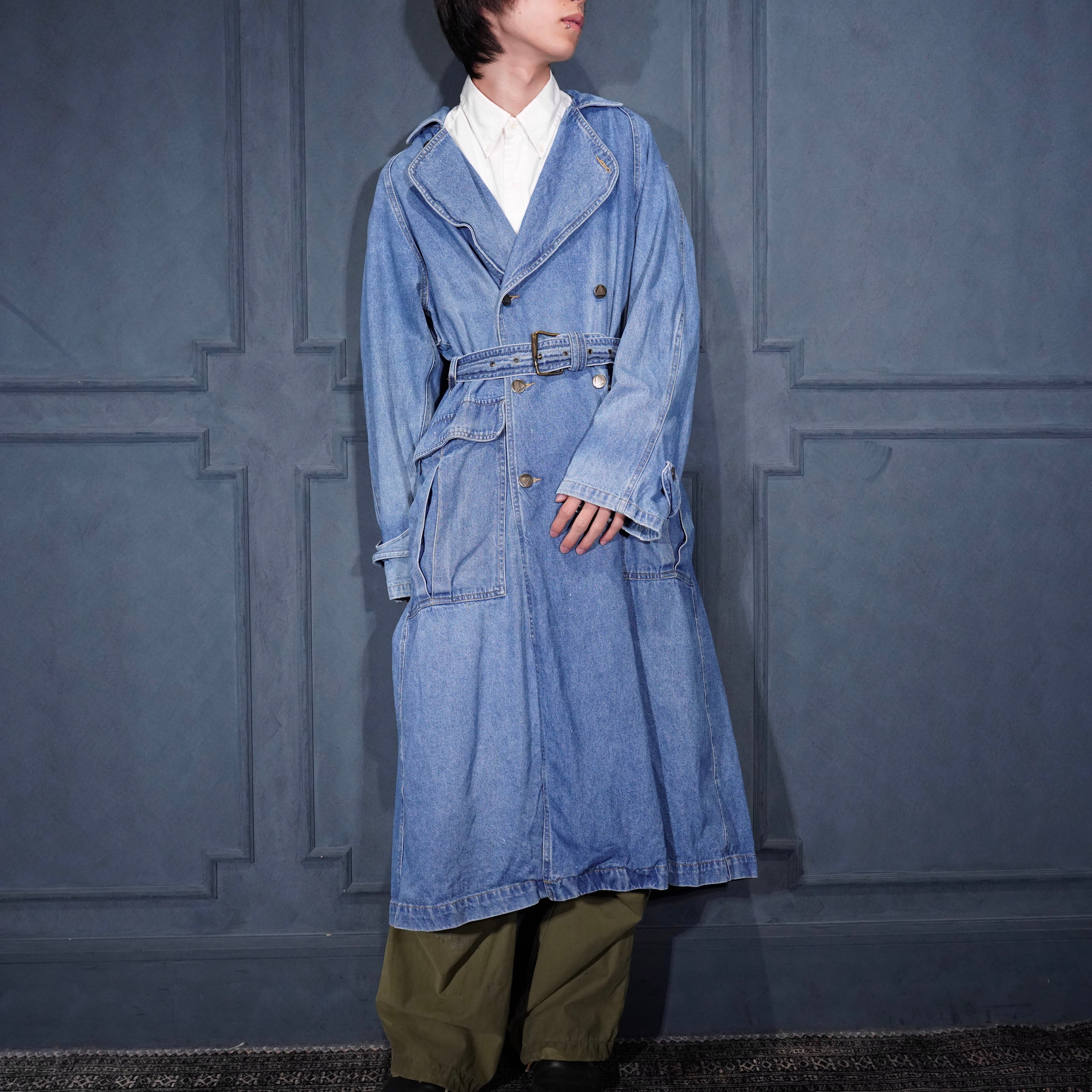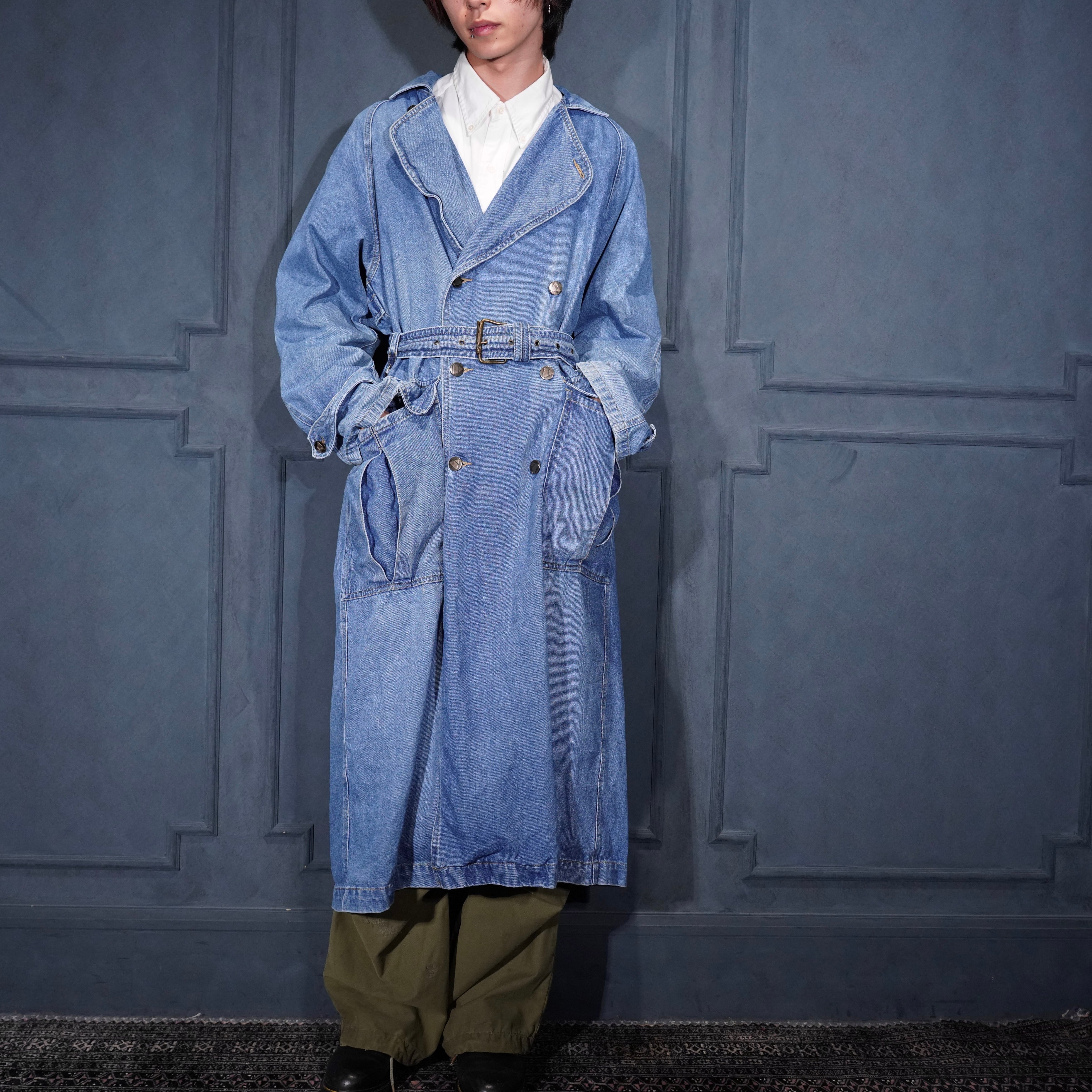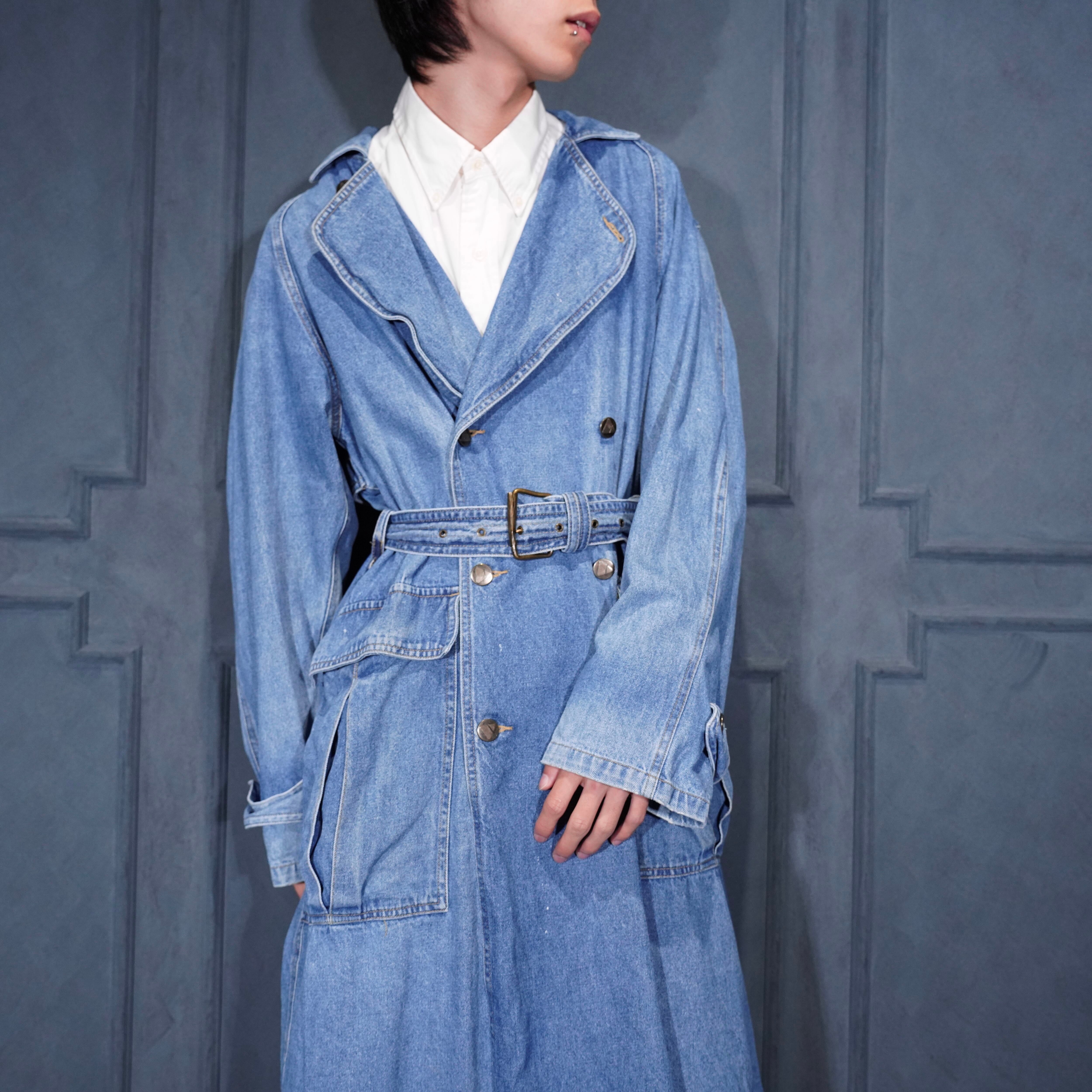 USA VINTAGE DOUBLE DESIGN BELTED DENIM TRENCH COAT/アメリカ古着ダブルデザインベルテッドデニムトレンチコート