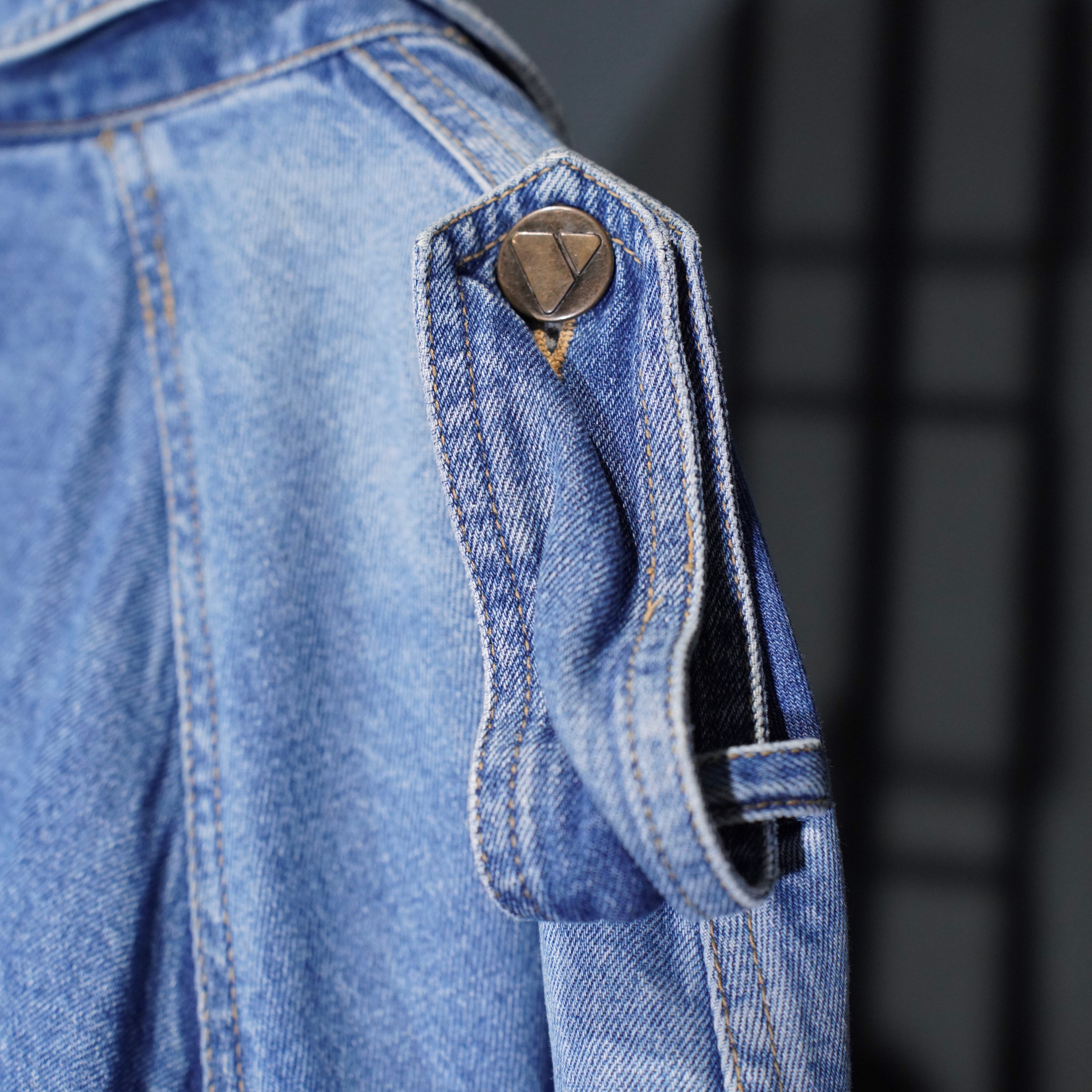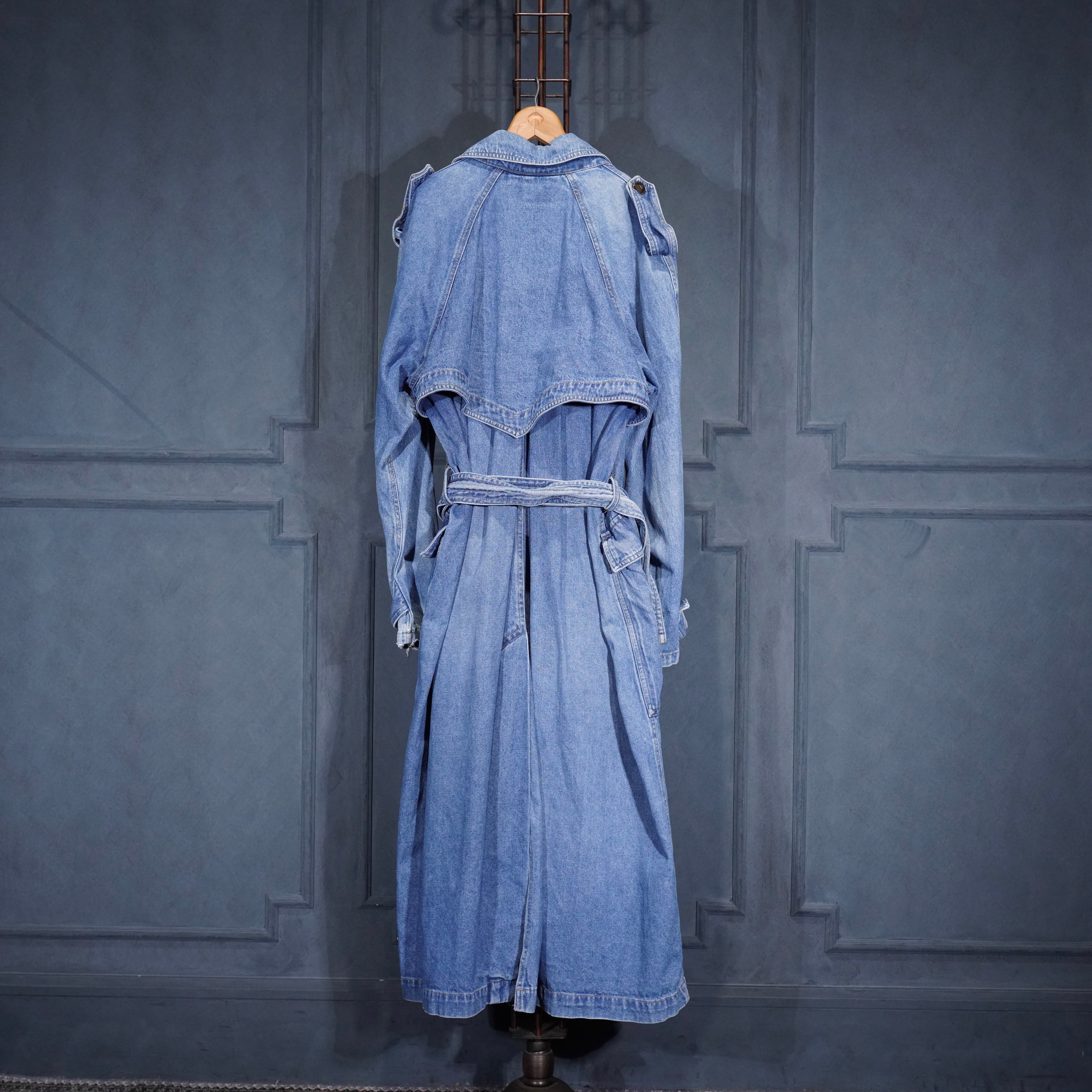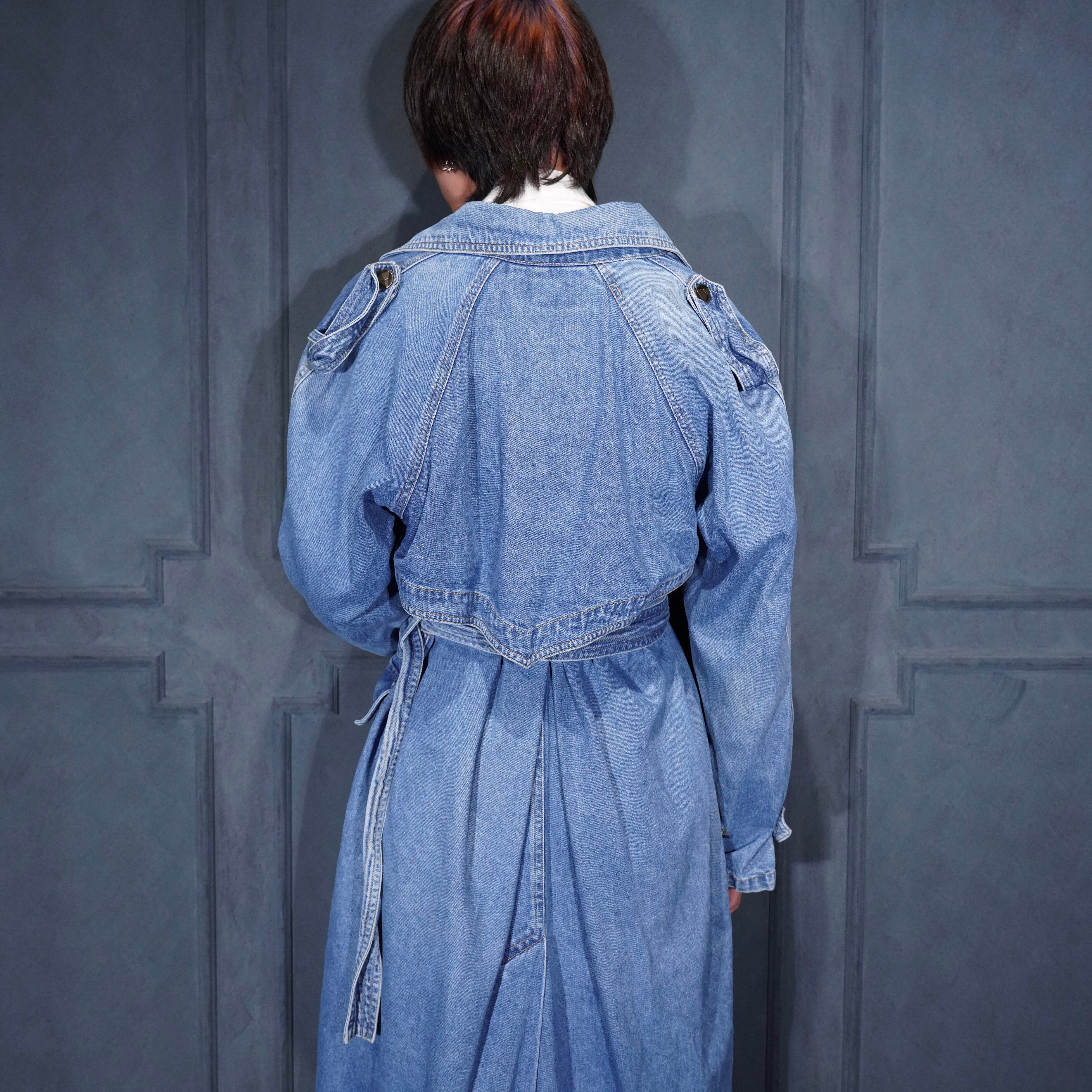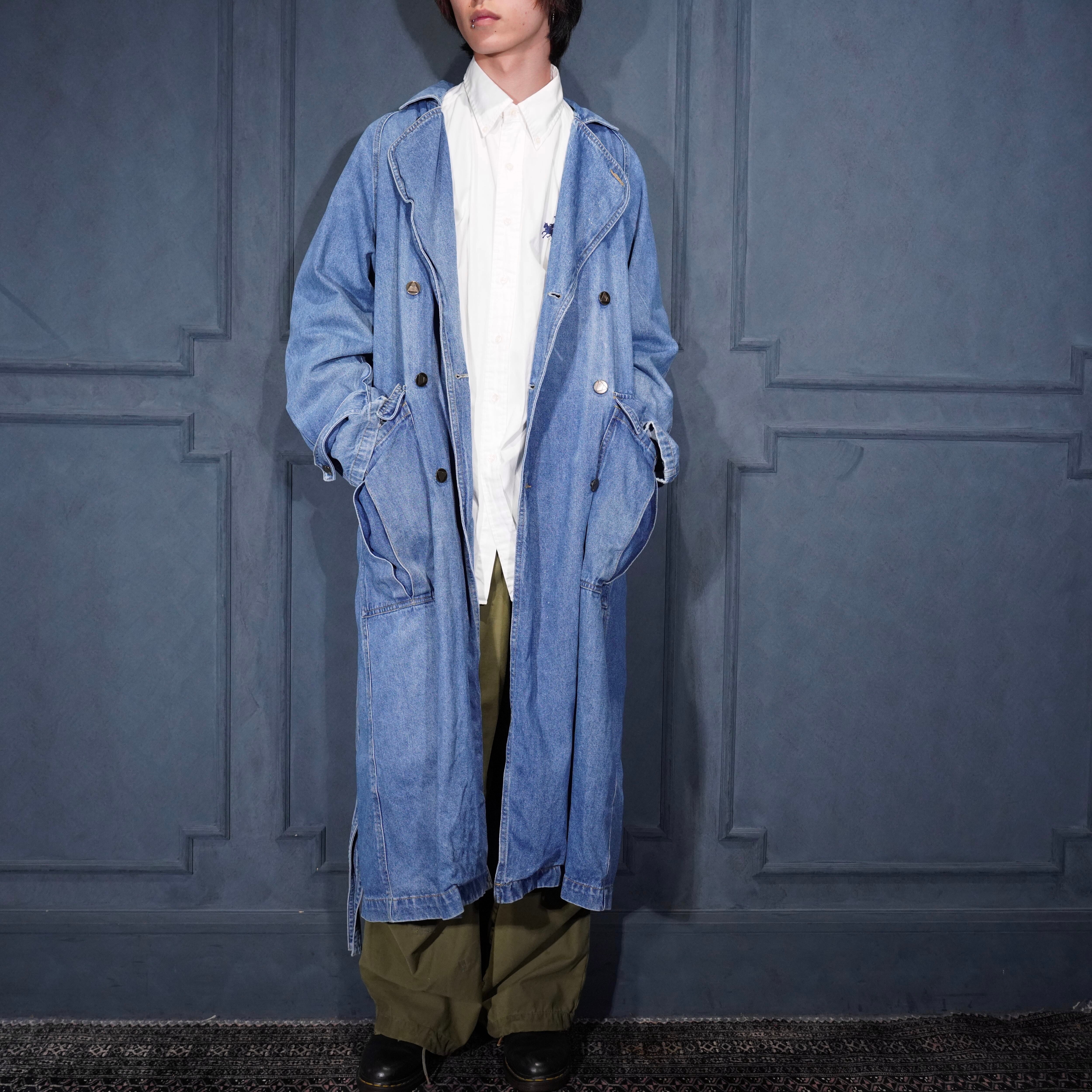 USA VINTAGE DOUBLE DESIGN BELTED DENIM TRENCH COAT/アメリカ古着ダブルデザインベルテッドデニムトレンチコート
