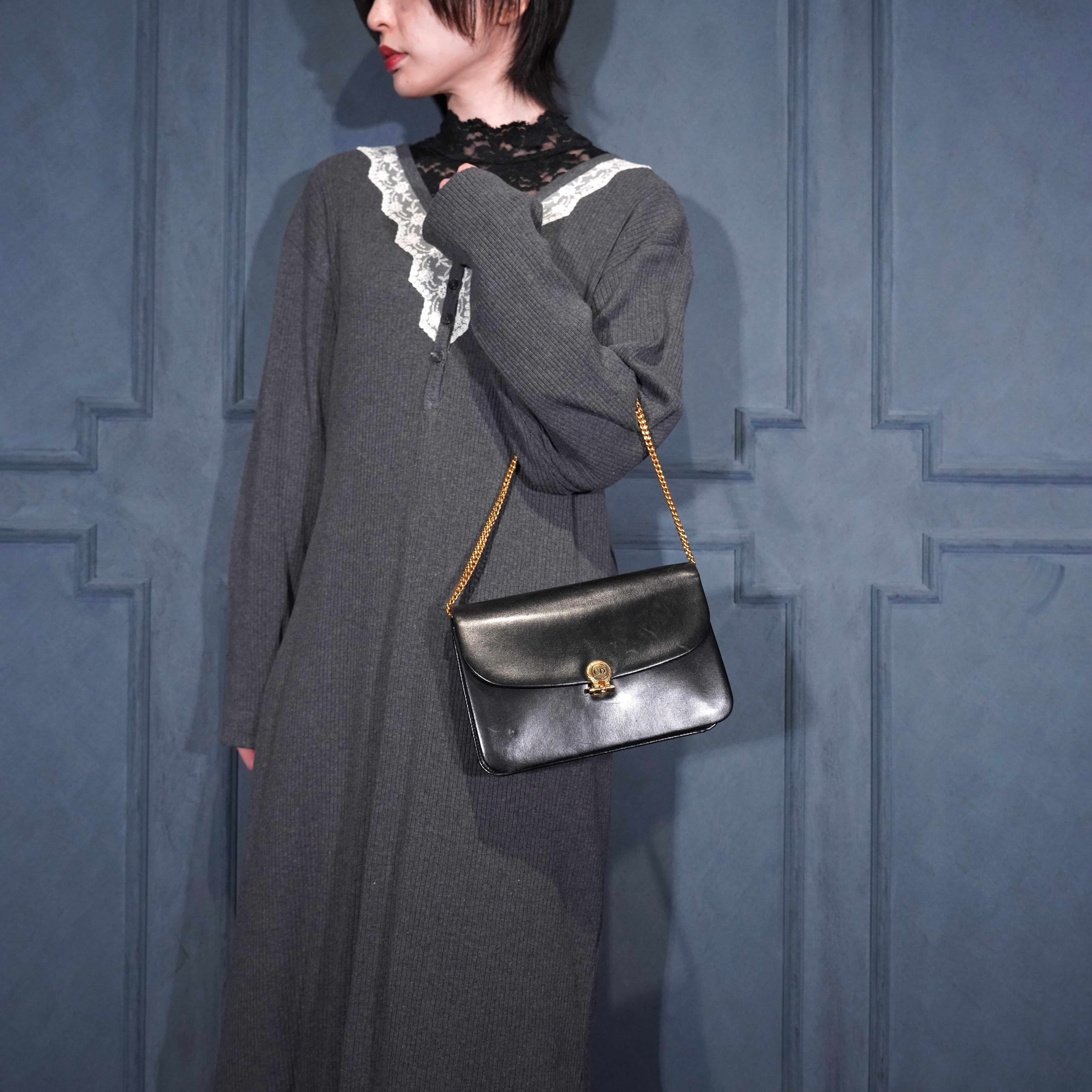 .Christian Dior LOGO DESIGN CHAIN LEATHER SHOULDER BAG/クリスチャンディオールロゴデザインチェーンレザーショルダーバッグ 2000000075204