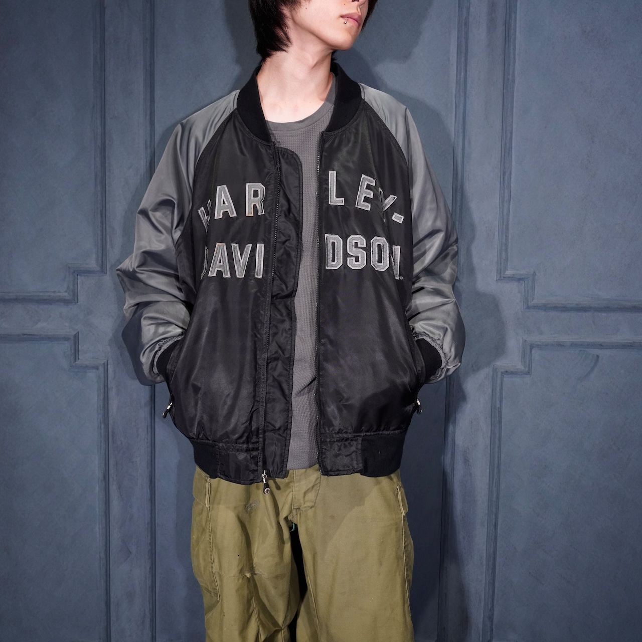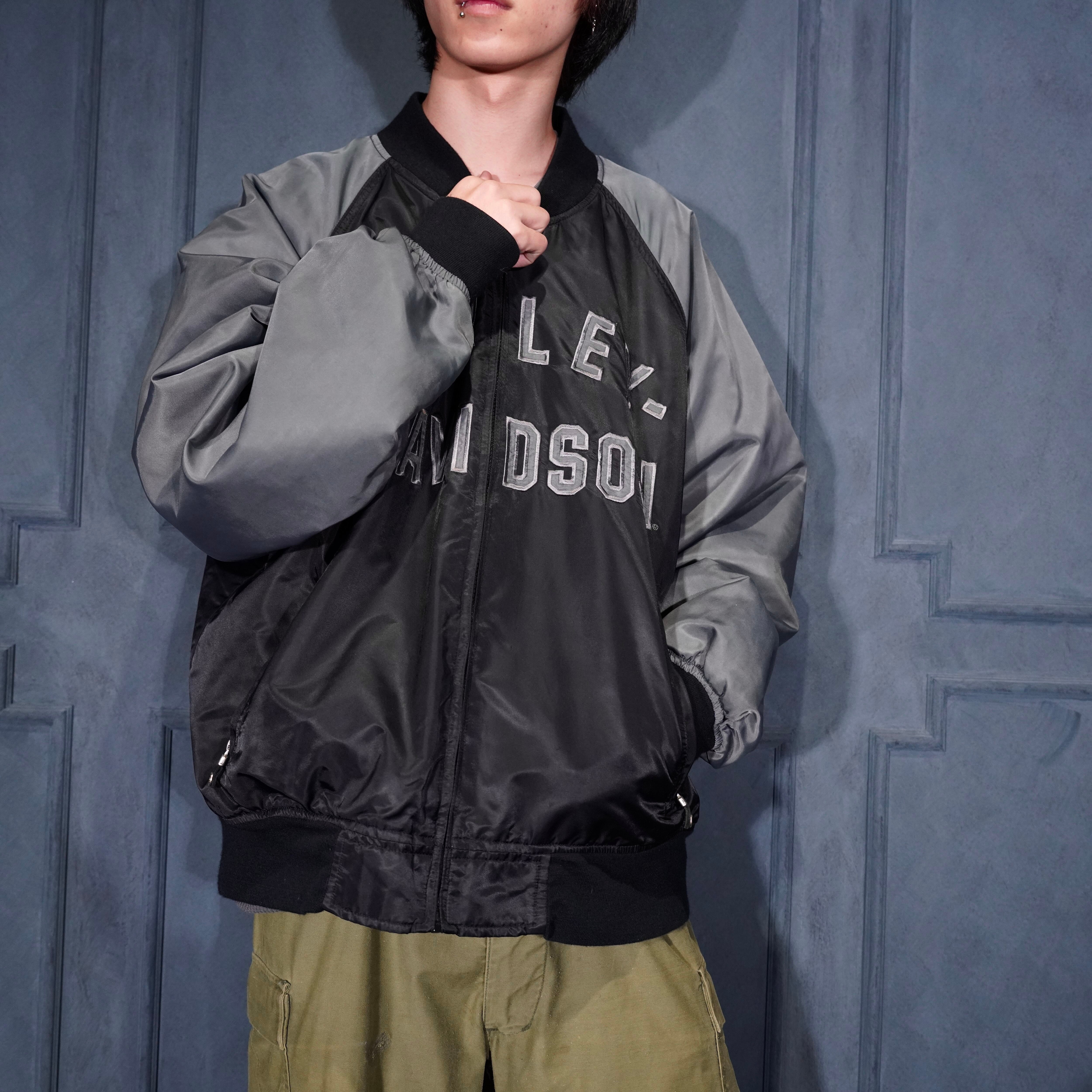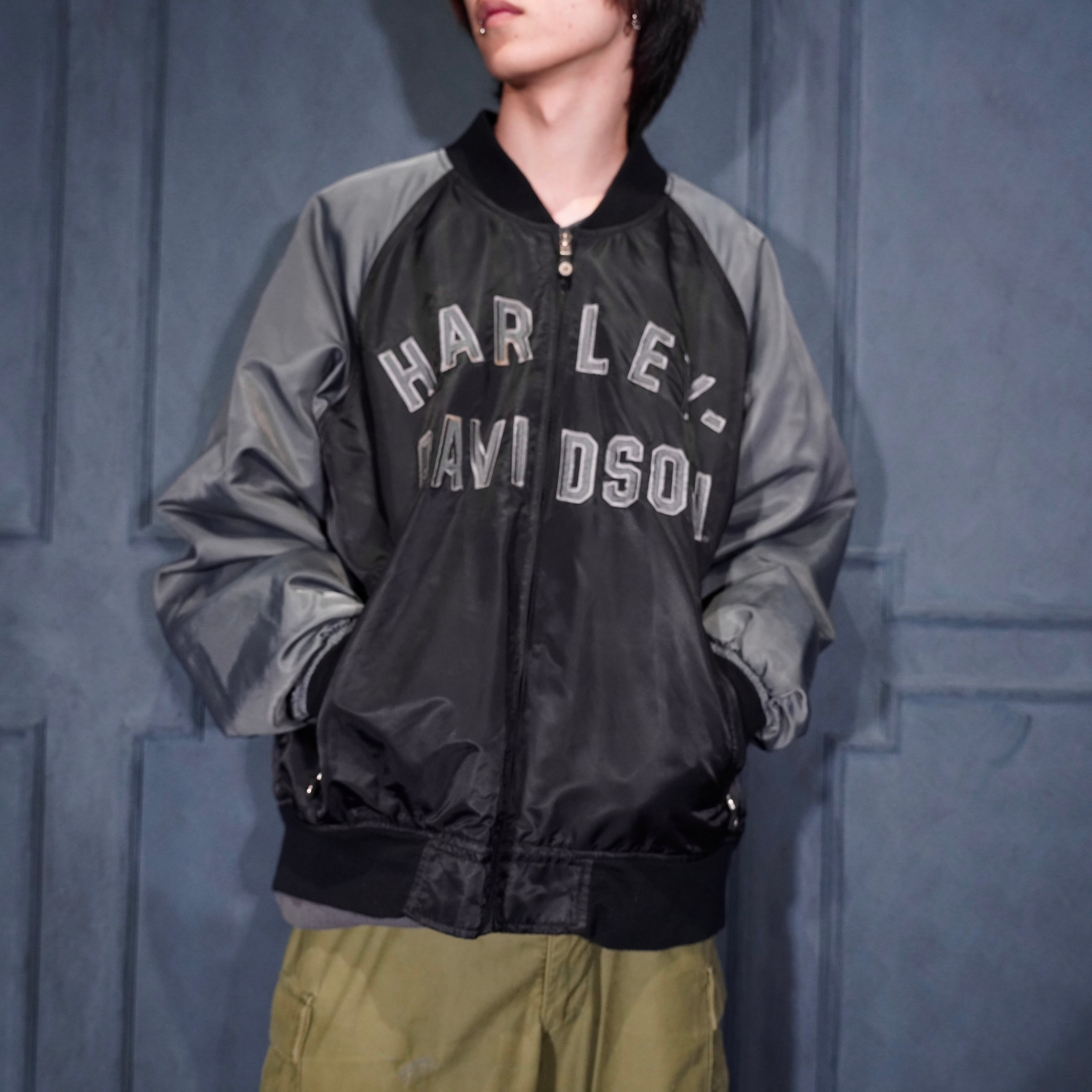 00’s USA VINTAGE HARLEY DAVIDSON LOGO EMBROIDERY DESIGN ZIP UP MA-1 BLOUSON/00年アメリカ古着ハーレーダヴィッドソンロゴ刺繍デザインジップアップma1ブルゾン