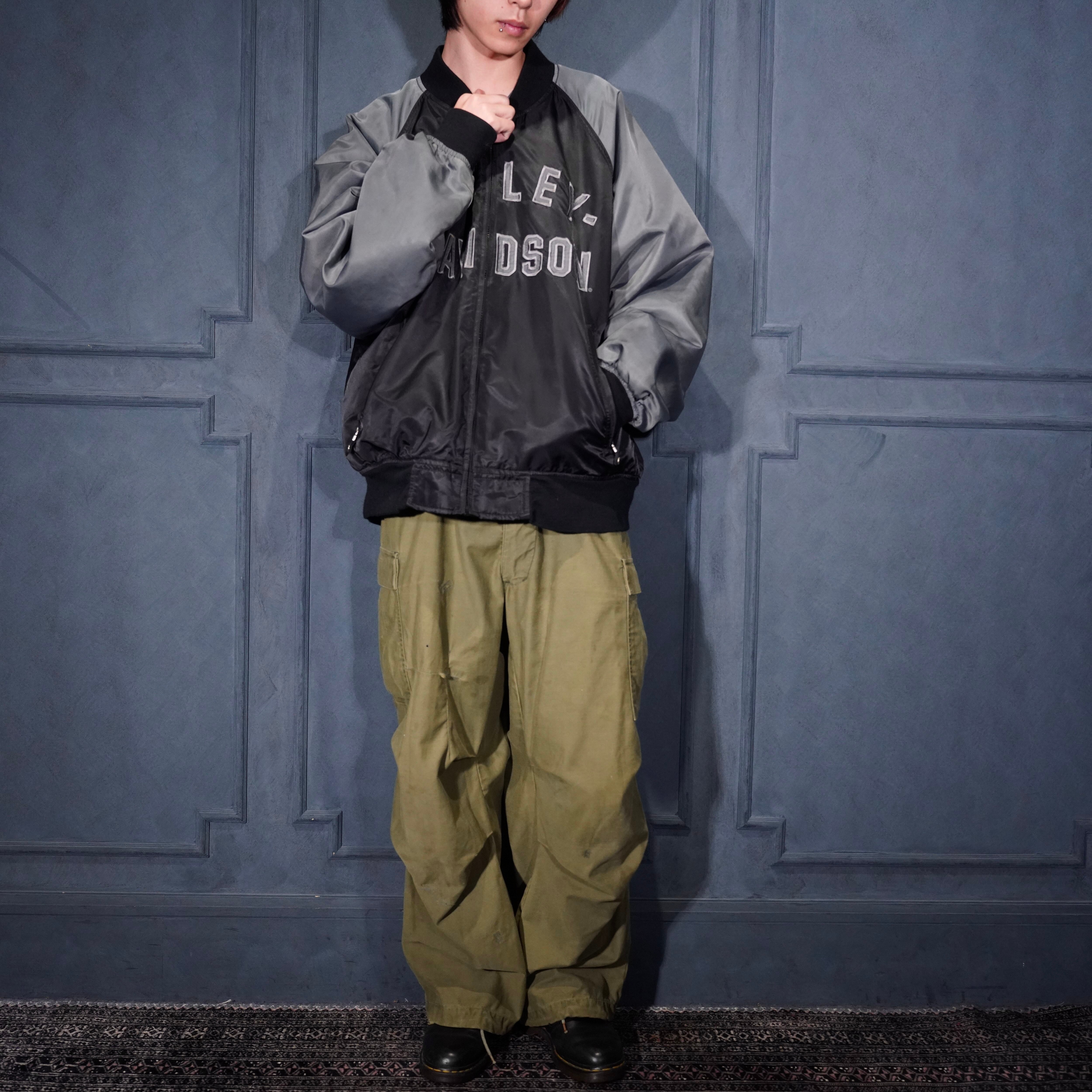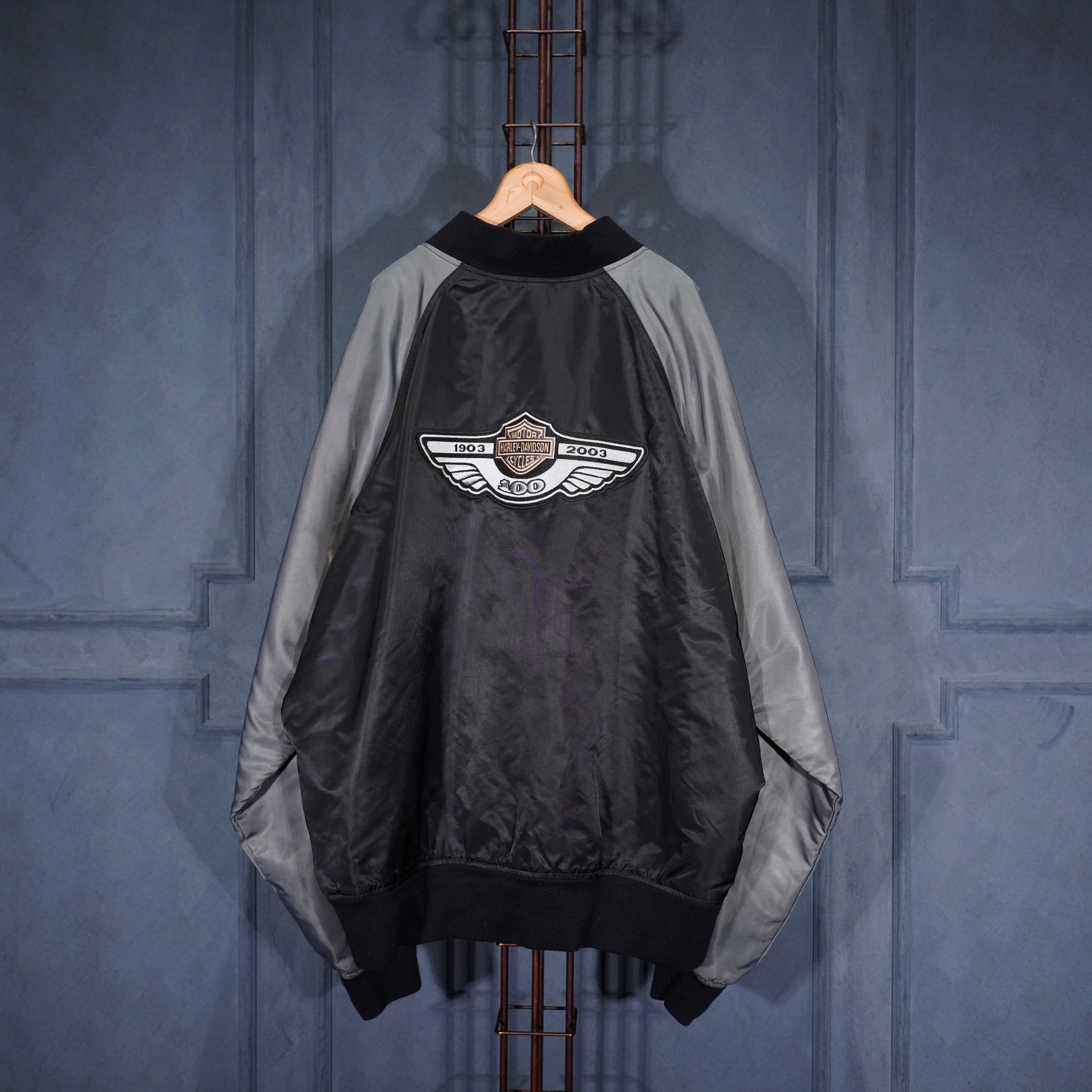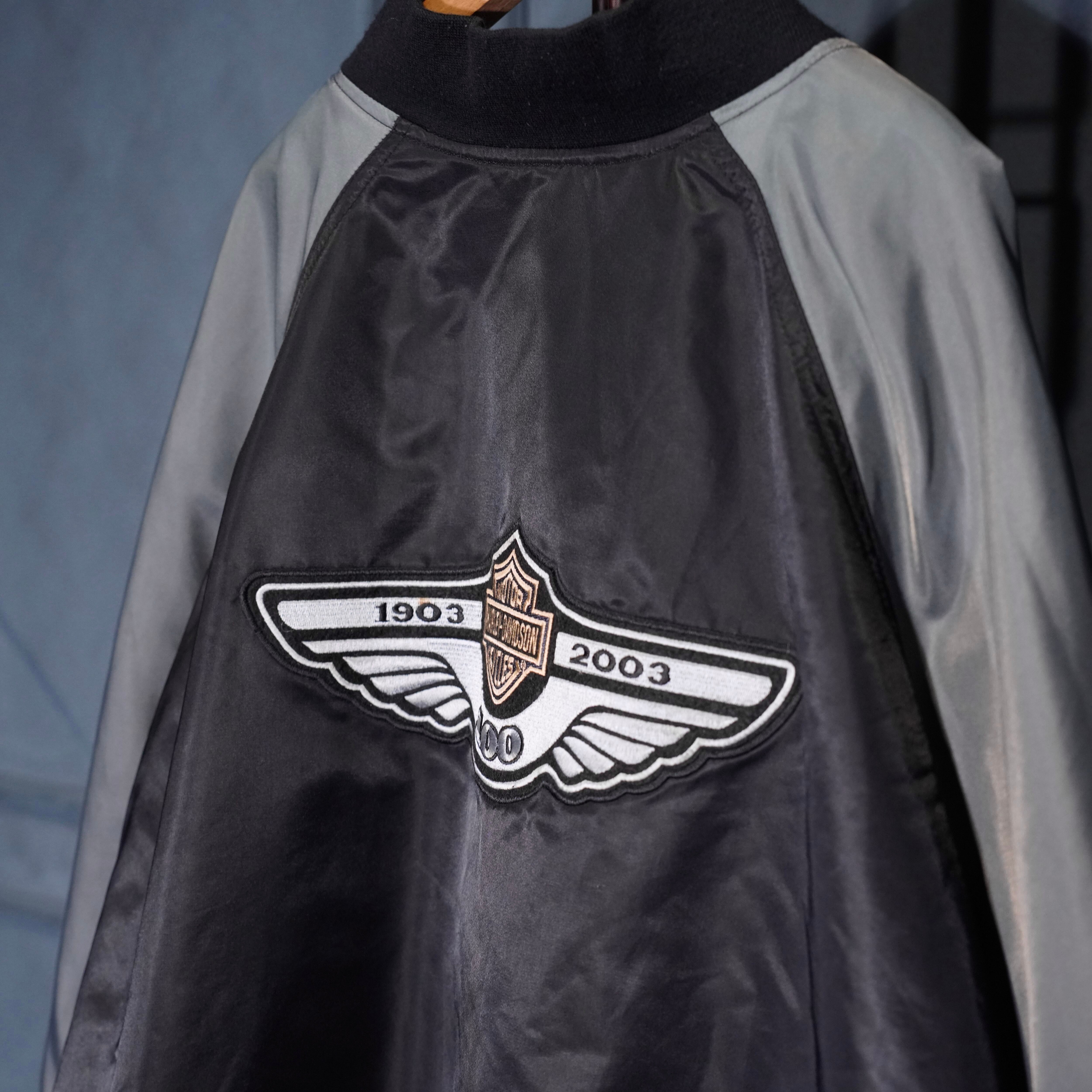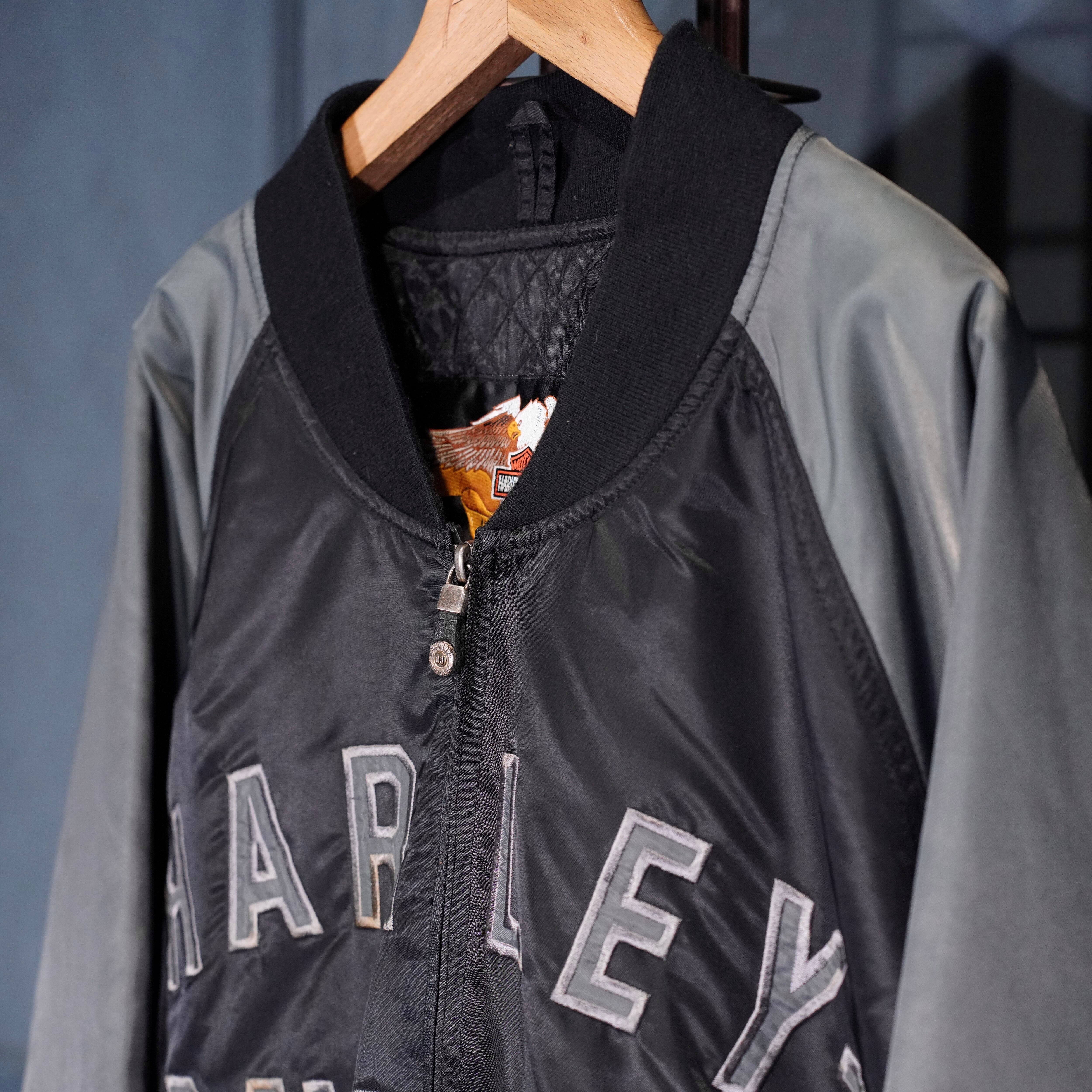 00’s USA VINTAGE HARLEY DAVIDSON LOGO EMBROIDERY DESIGN ZIP UP MA-1 BLOUSON/00年アメリカ古着ハーレーダヴィッドソンロゴ刺繍デザインジップアップma1ブルゾン
