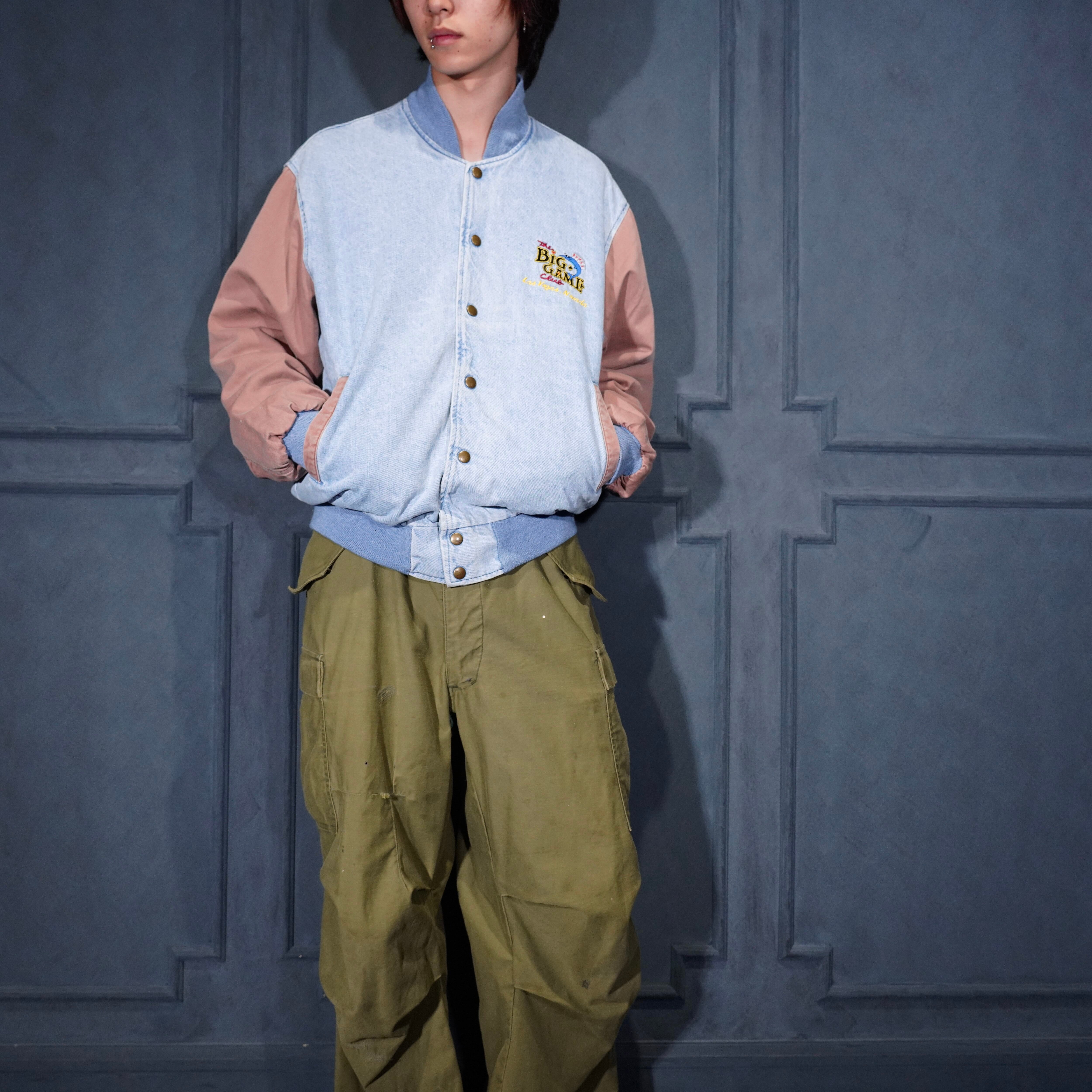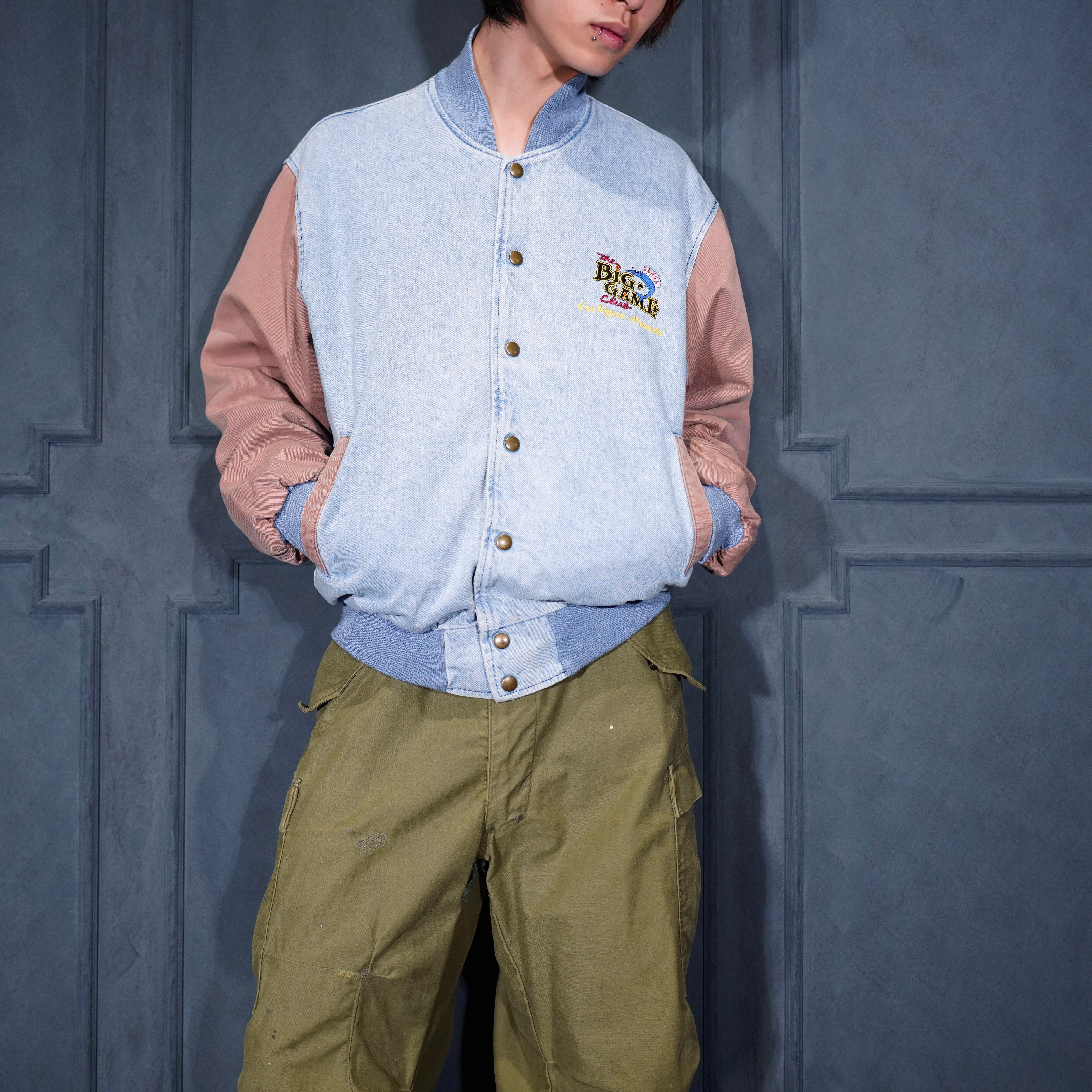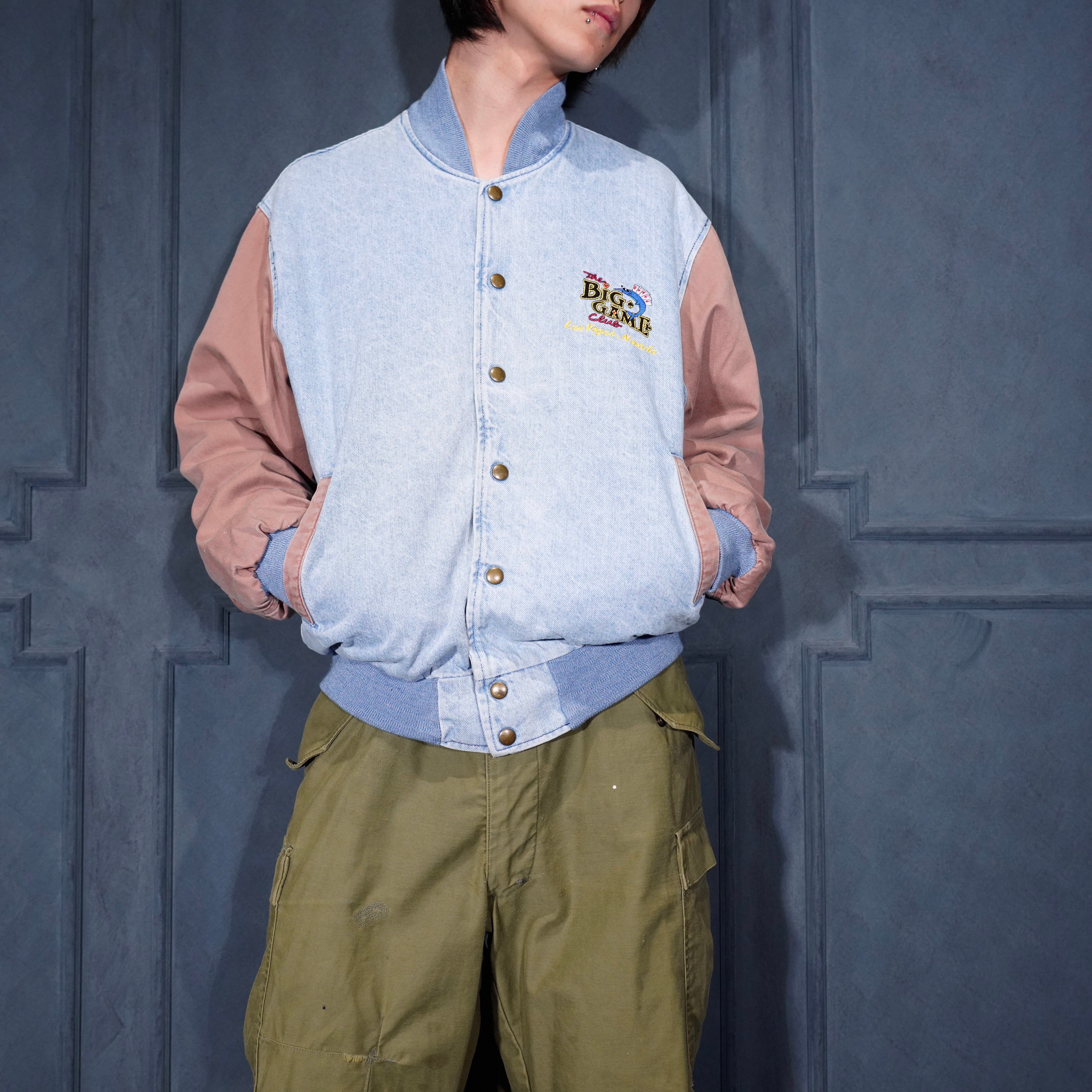 USA VINTAGEAUBURN BIG GAME EMBROIDERY DESIGN DENIM STADIUM JUMPER MADE IN USA/アメリカ古着刺繍デザインデニムスタジャン