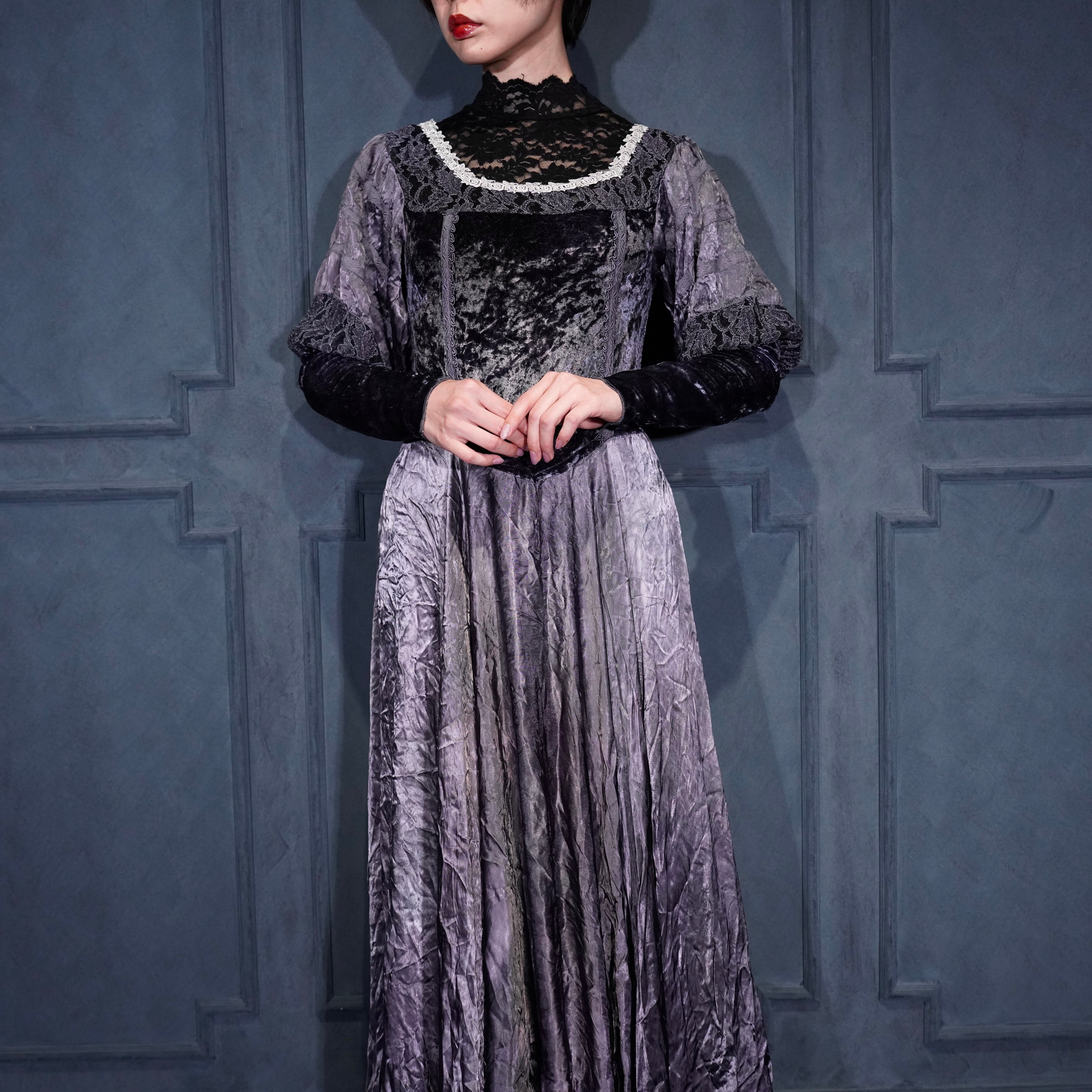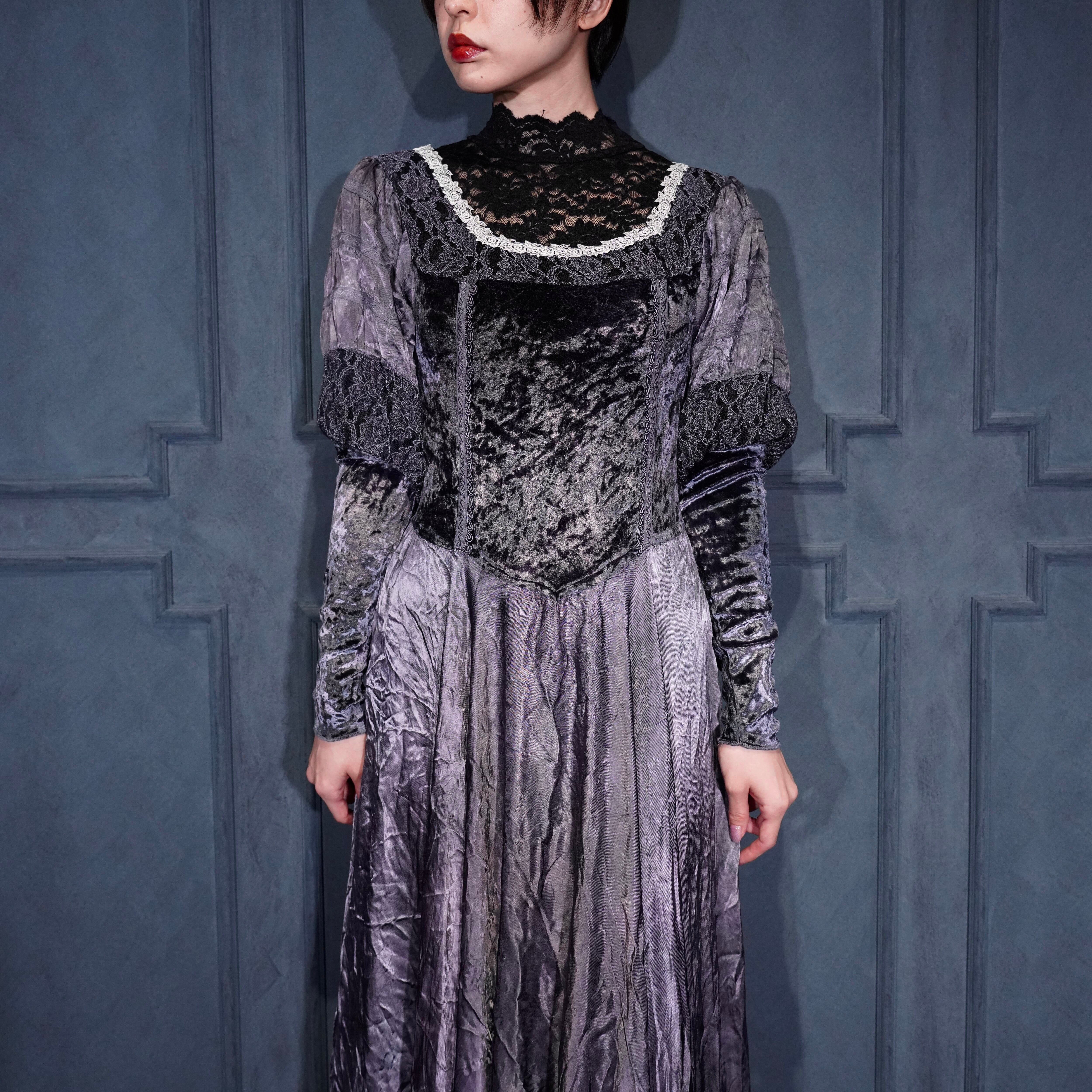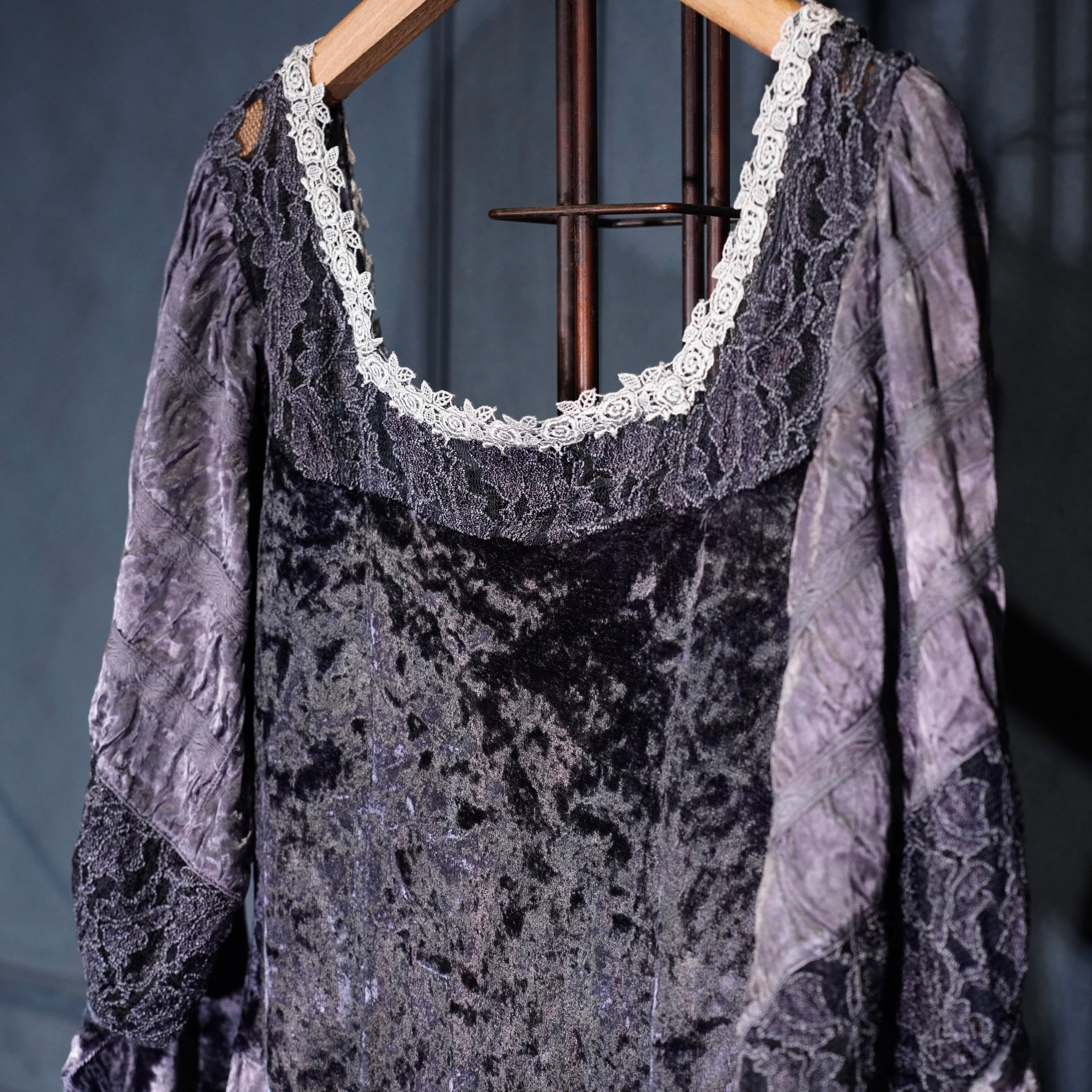 *SPECIAL ITEM* USA VINTAGE Peace Angel LACE EMBROIDERY DESIGN VELOUR DRESS ONE PIECE/アメリカ古着レース刺繍デザインベロアドレスワンピース