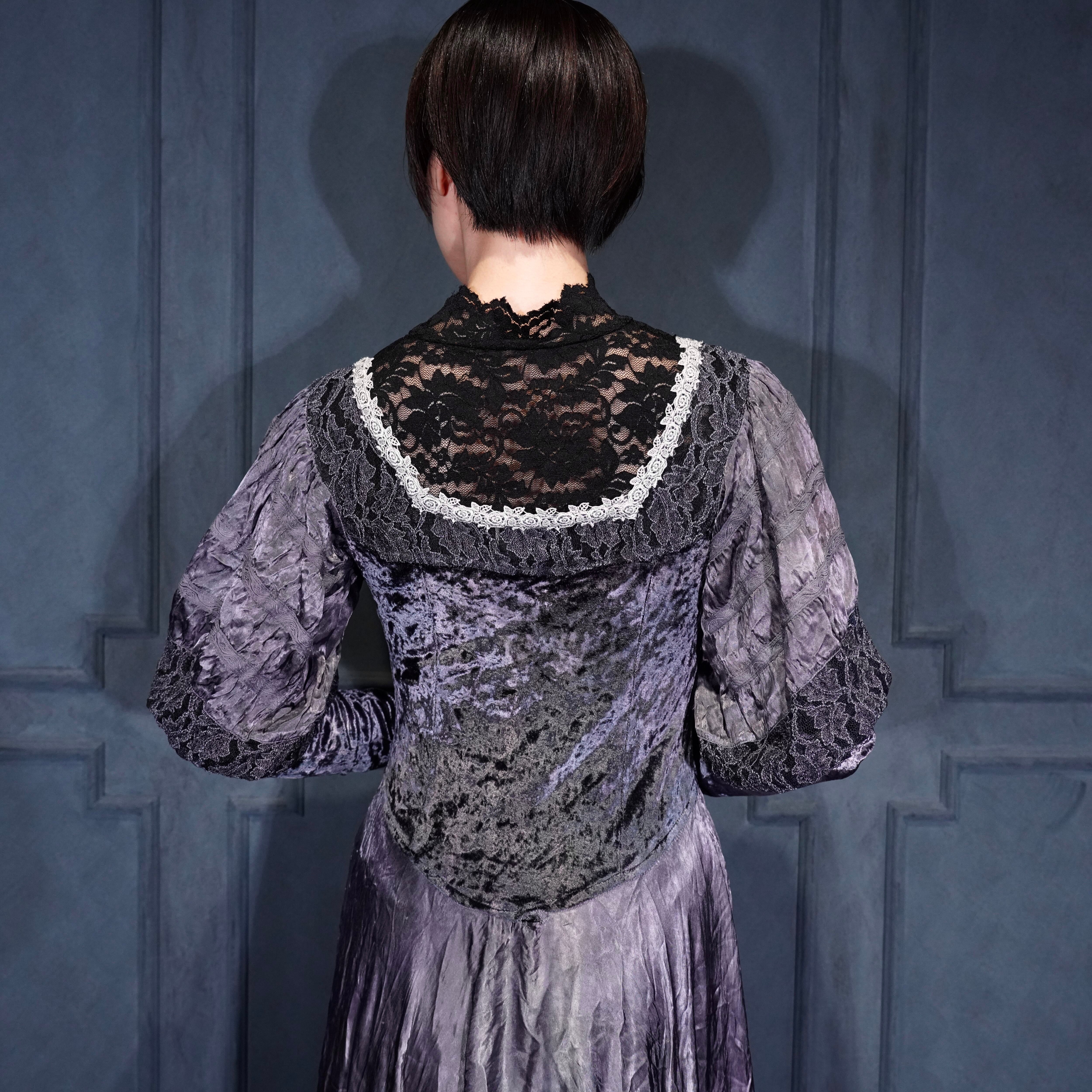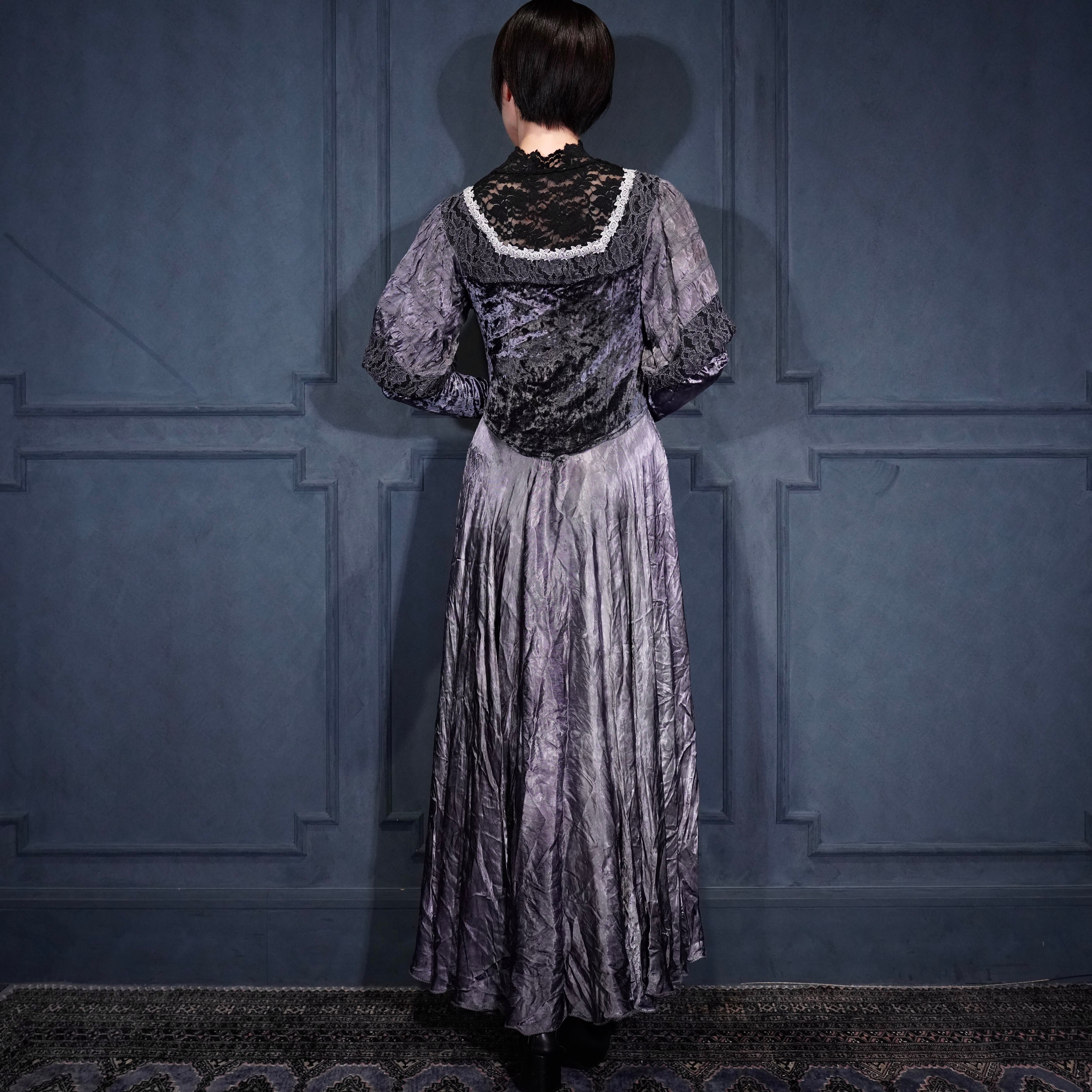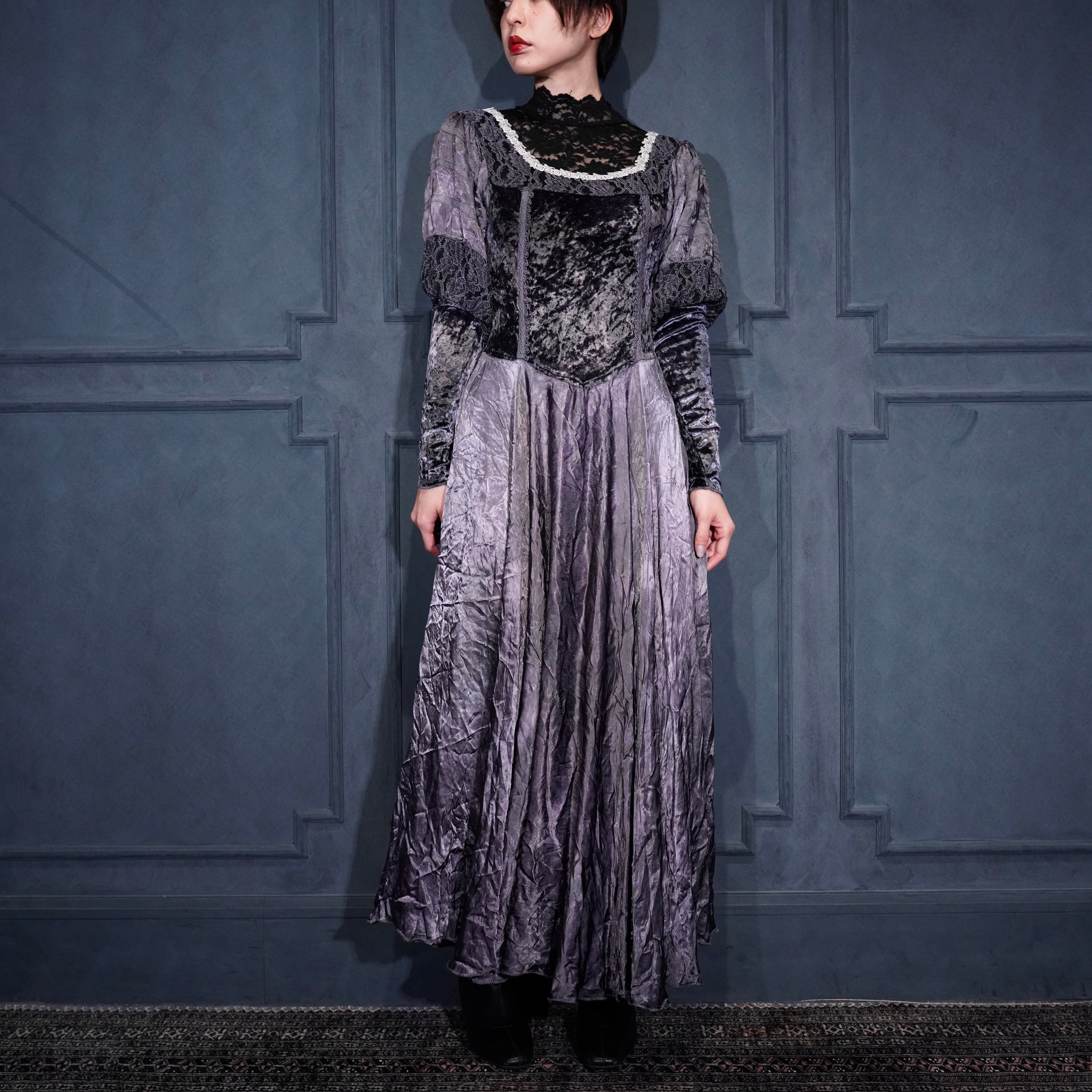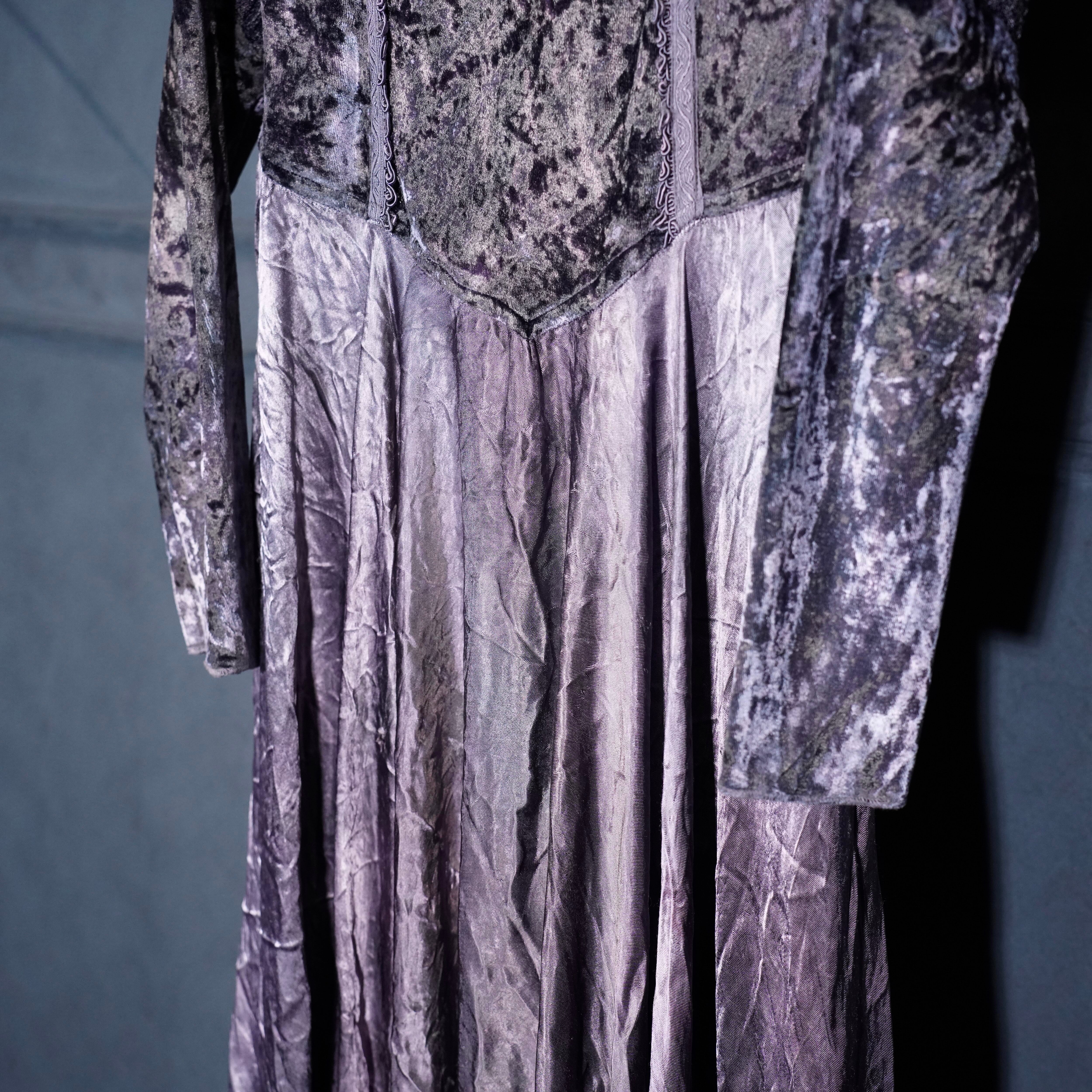 *SPECIAL ITEM* USA VINTAGE Peace Angel LACE EMBROIDERY DESIGN VELOUR DRESS ONE PIECE/アメリカ古着レース刺繍デザインベロアドレスワンピース