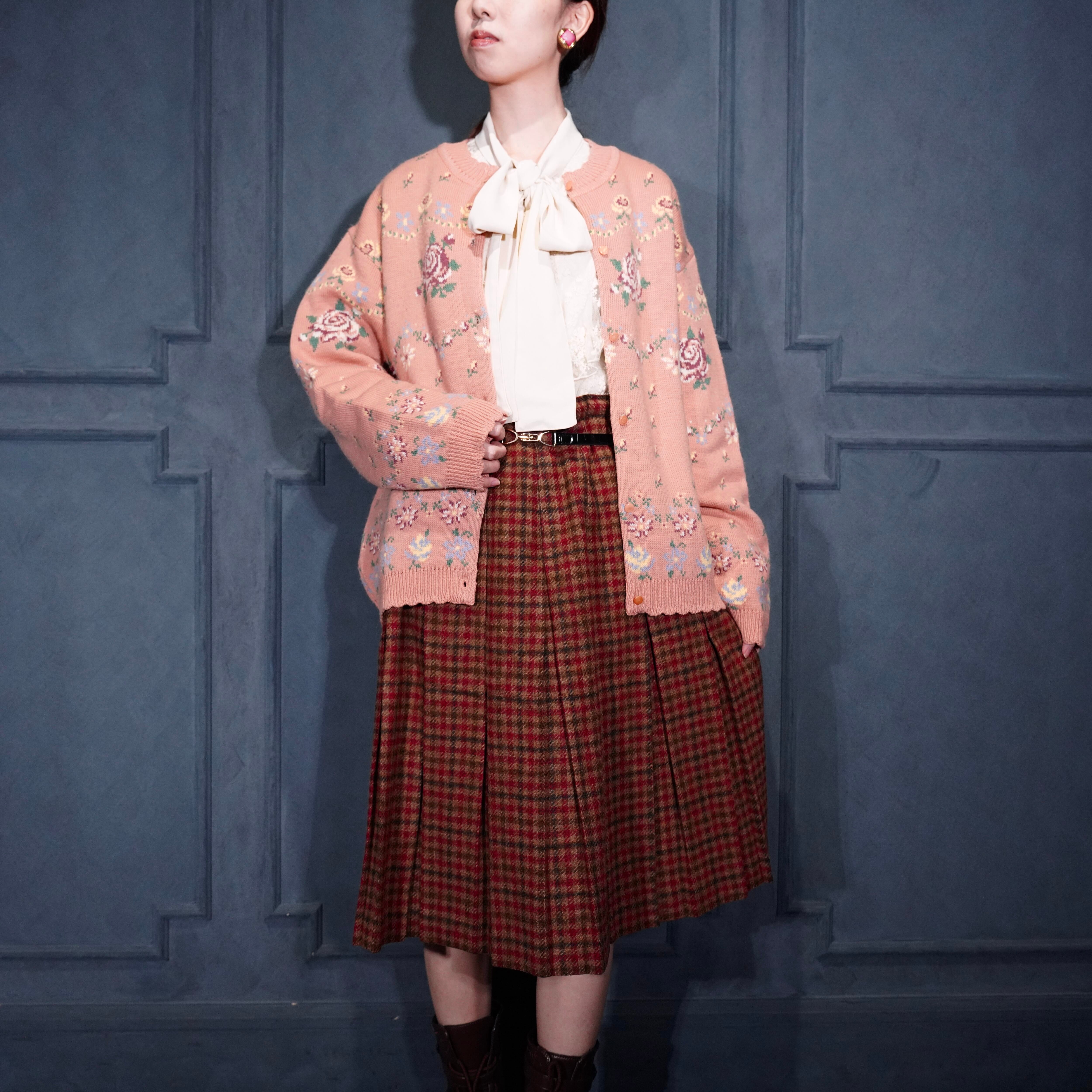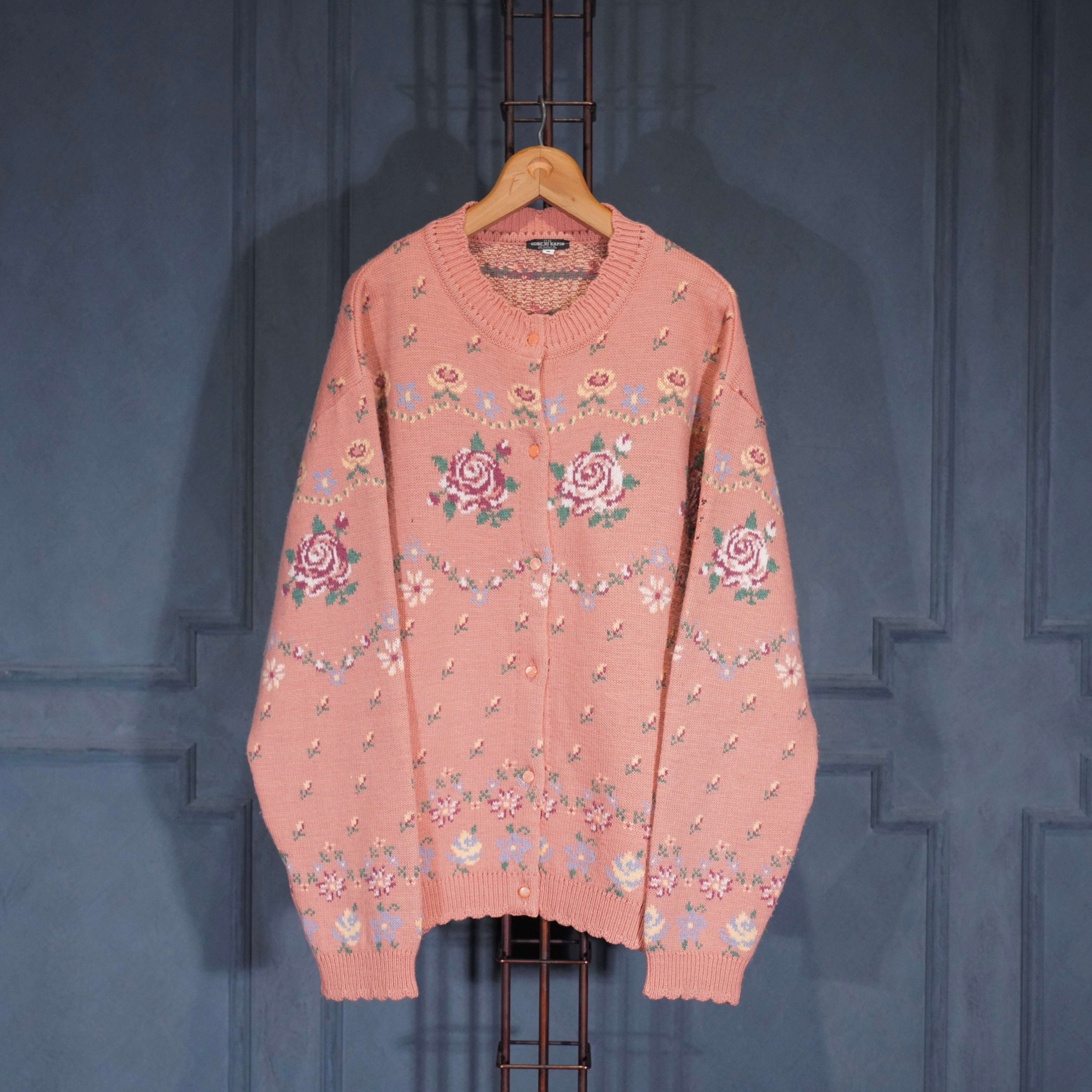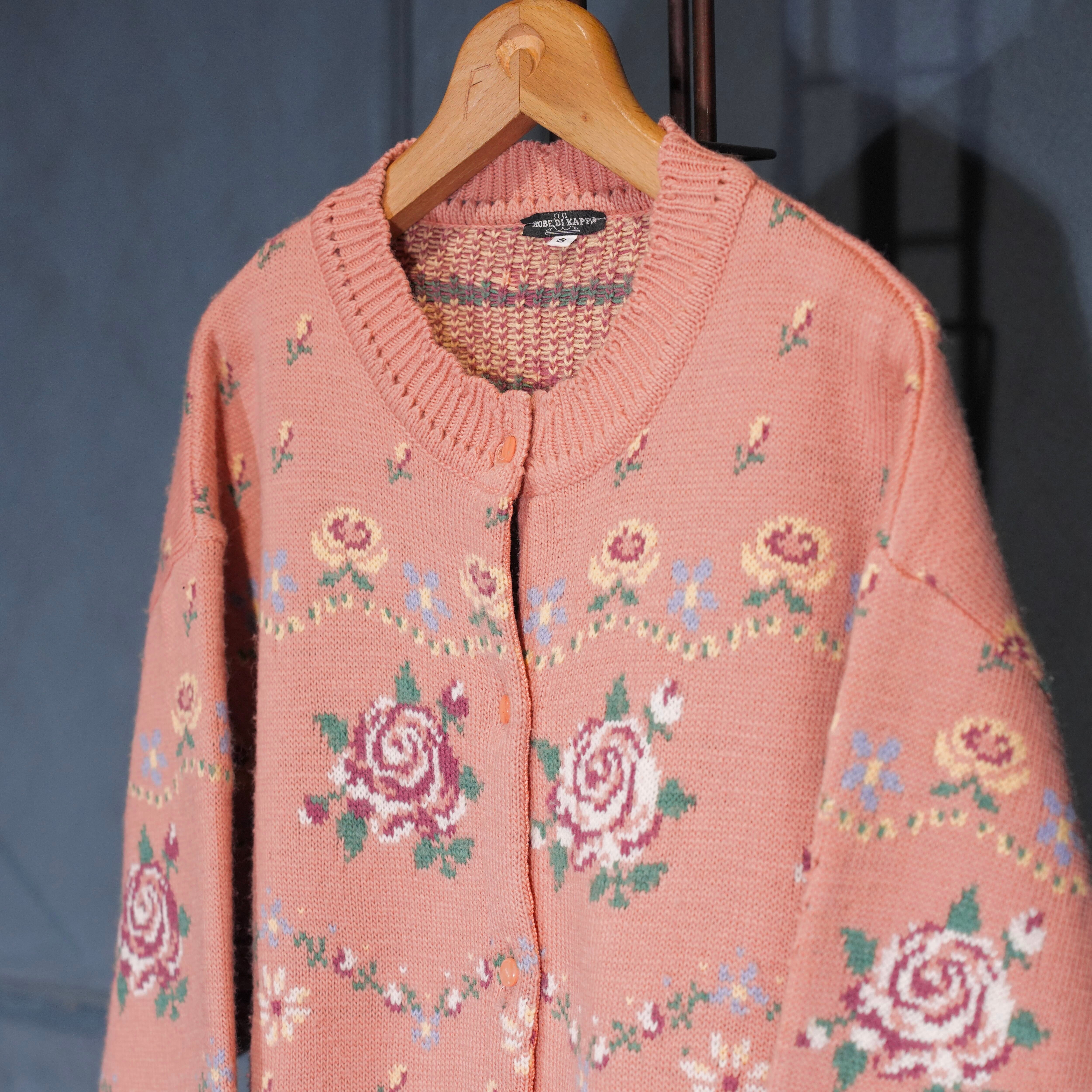 80’s〜90’s EU VINTAGE ROBE DI KAPPA FLOWER PATTERNED SCALLOPED DESIGN KNIT CARDIGAN/80年代〜90年代ヨーロッパ古着カッパお花柄スカラップデザインニットカーディガン
