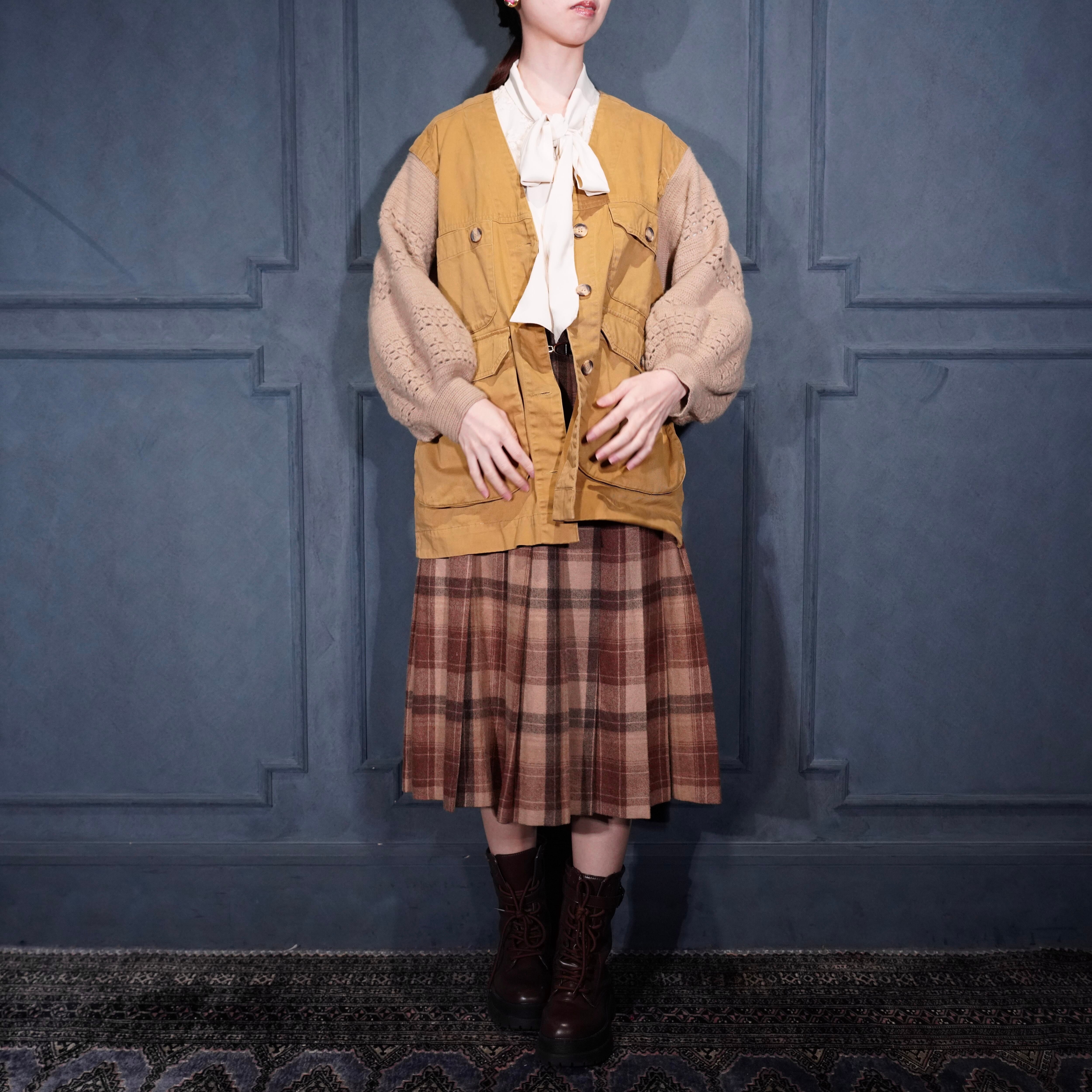 USA VINTAGE Red Ridge Mountain Outfitters KNIT SLEEVE HUNTING DESIGN JACKET/アメリカ古着袖ニットハンティングデザインジャケット