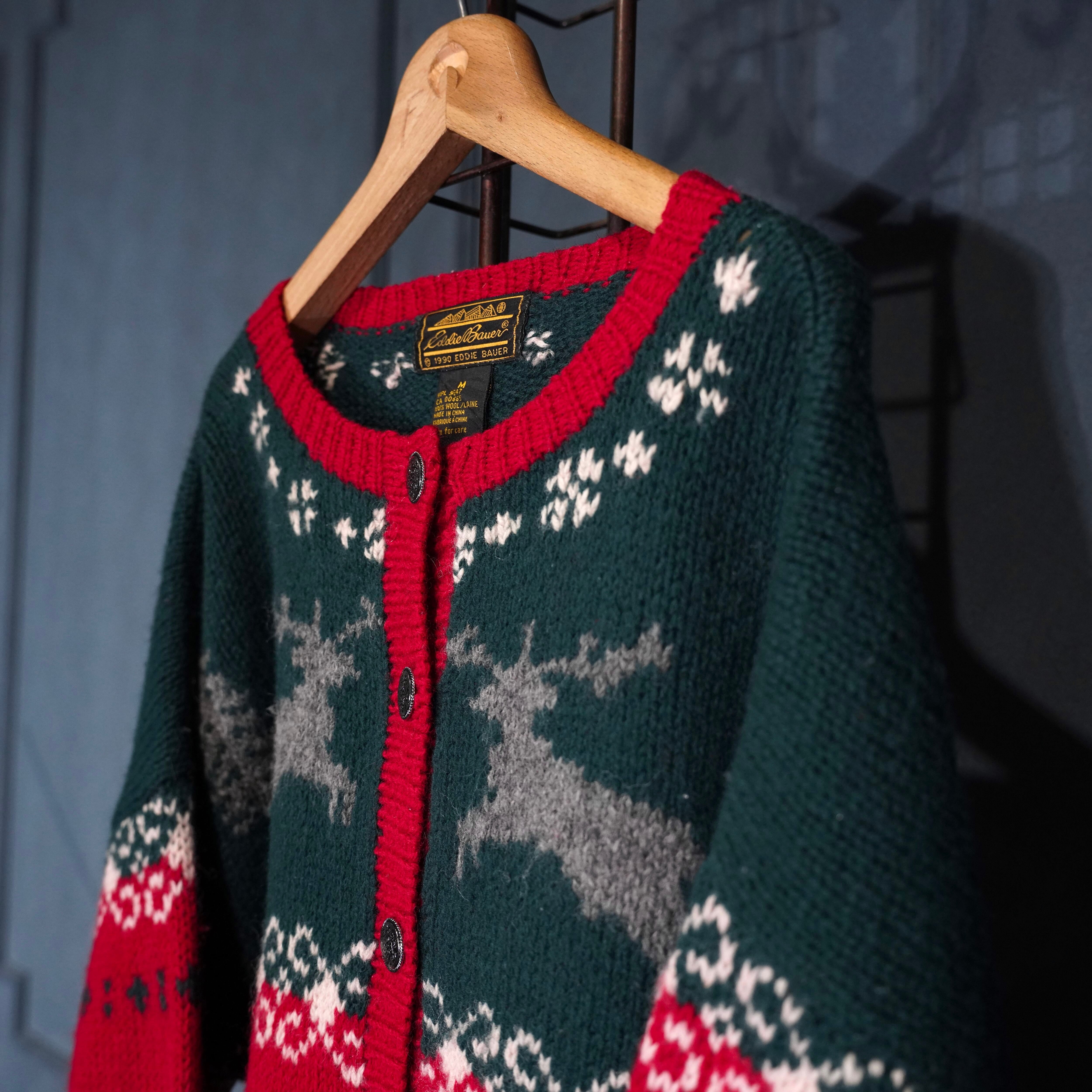 90's USA VINTAE Eddie Bauer COIN BUTTON DESIGN NORDIC KNIT CARDIGAN/90年代アメリカ古着エディバウアーコインボタンデザインノルディックニットカーディガン