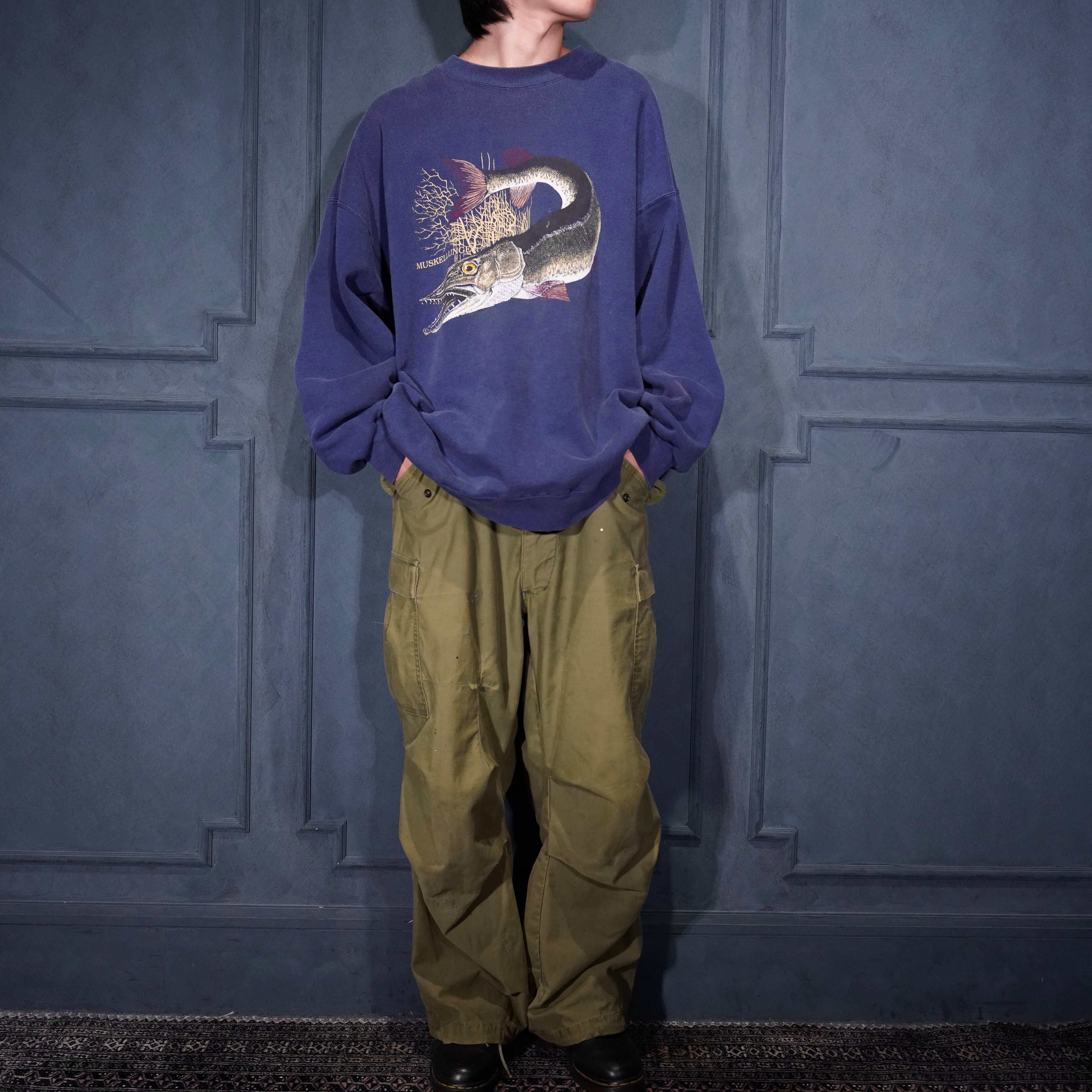 90’s USA VINTAGE MUSKELLUNGE PRINT DESIGN SWEAT SHIRT/90年代アメリカ古着マスケランジプリントデザインスウェット