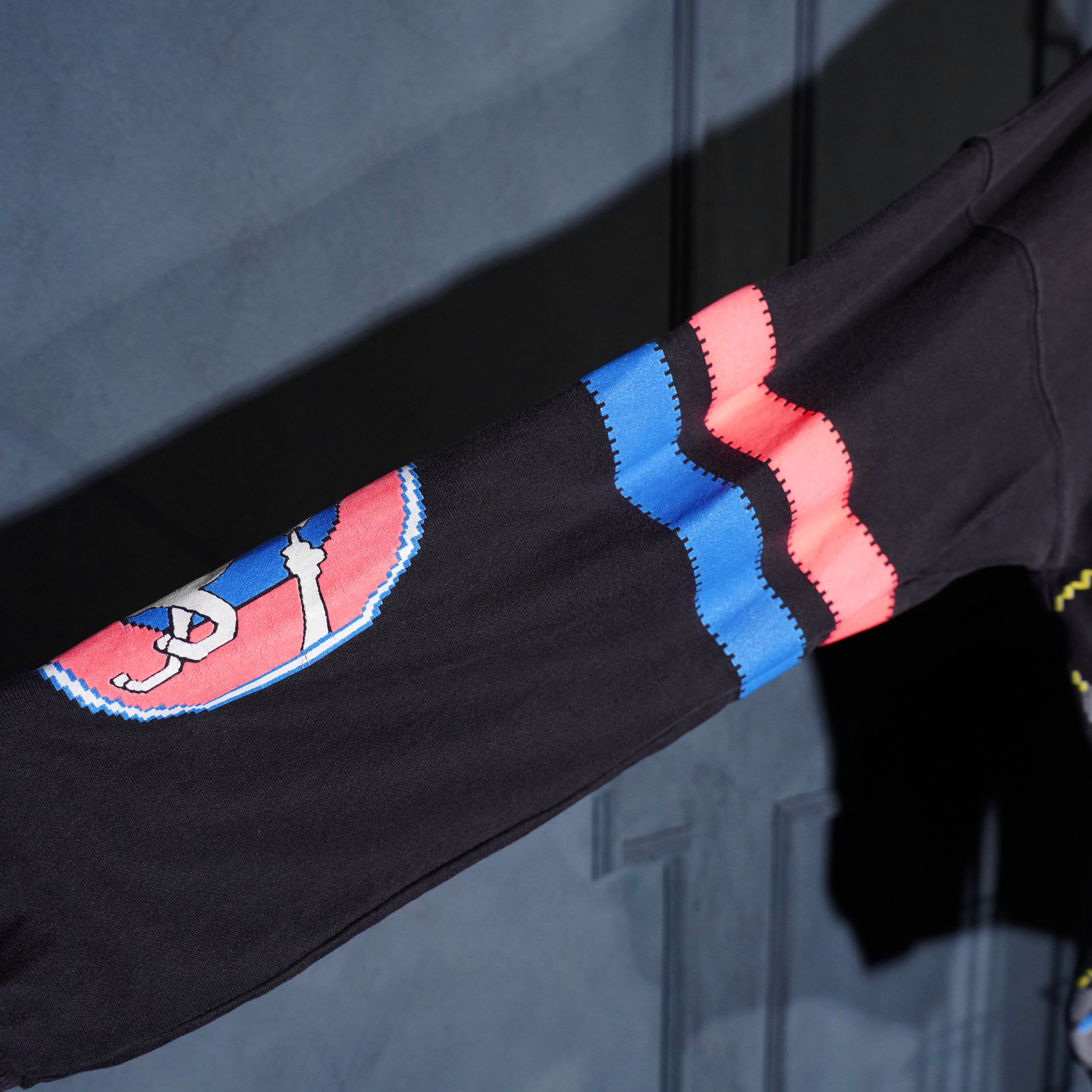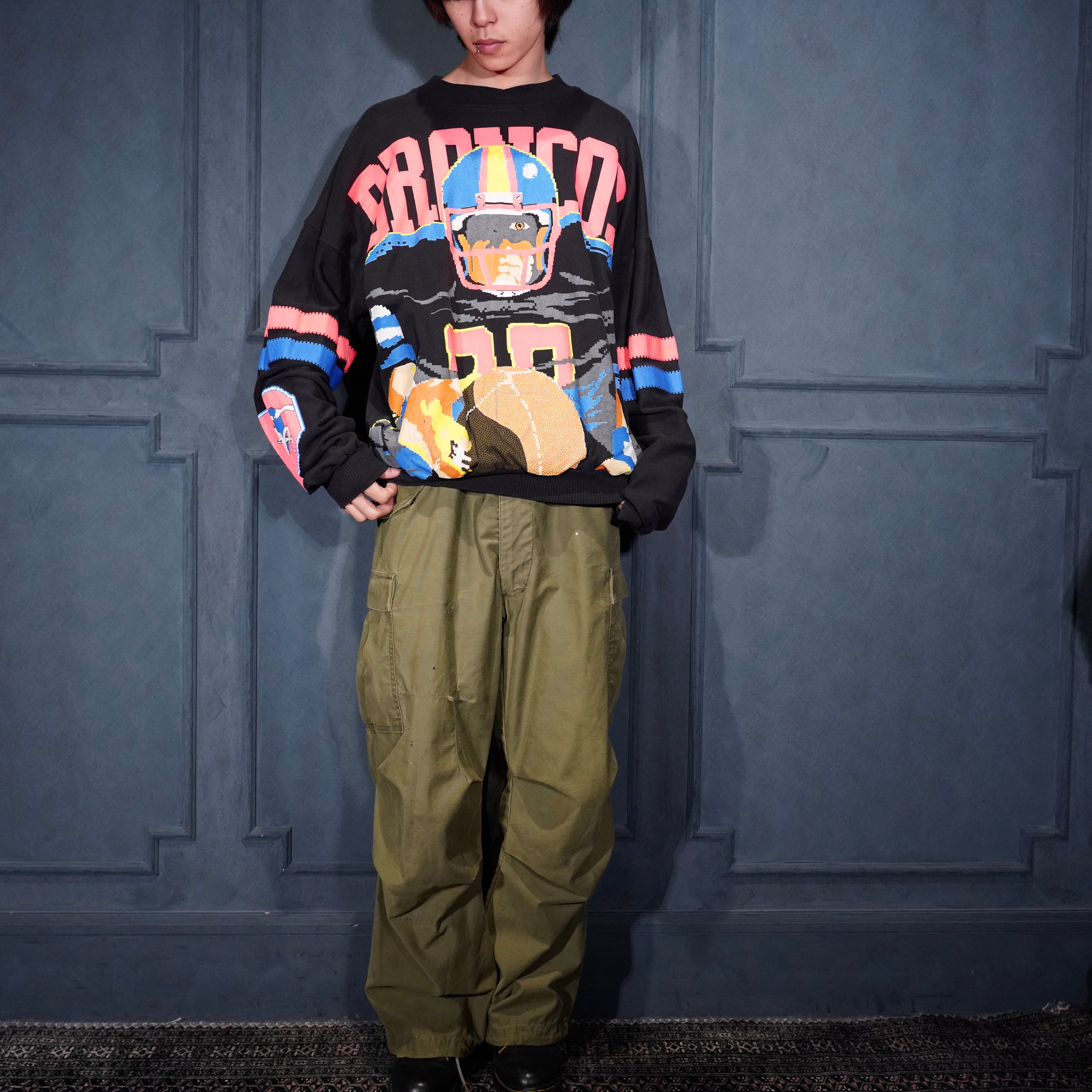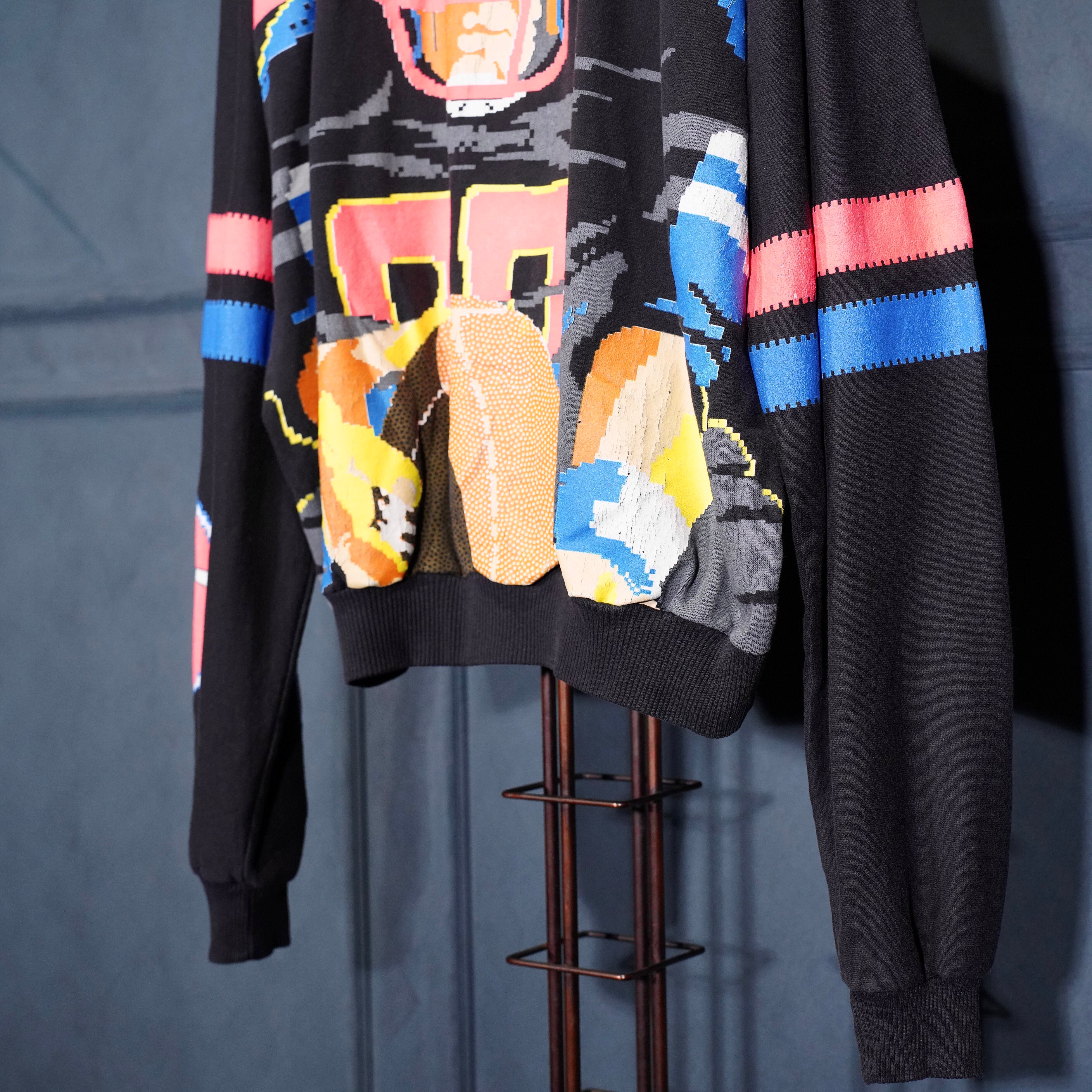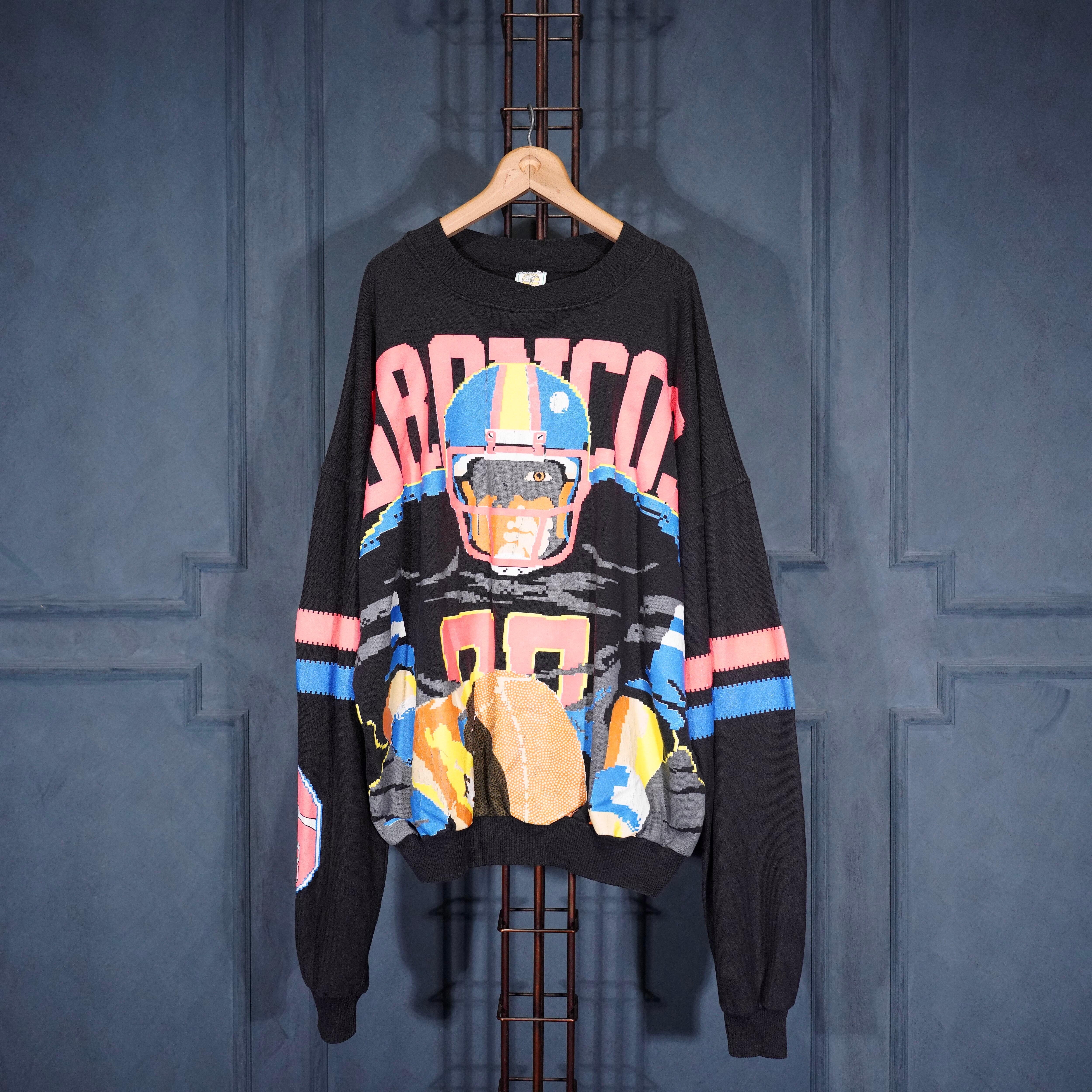 90’s USA VINTAGE Caribe RUGBY PLAYER PRINT DESIGN SWEAT SHIRT/90年代アメリカ古着ラガーマンプリントデザインスウェット