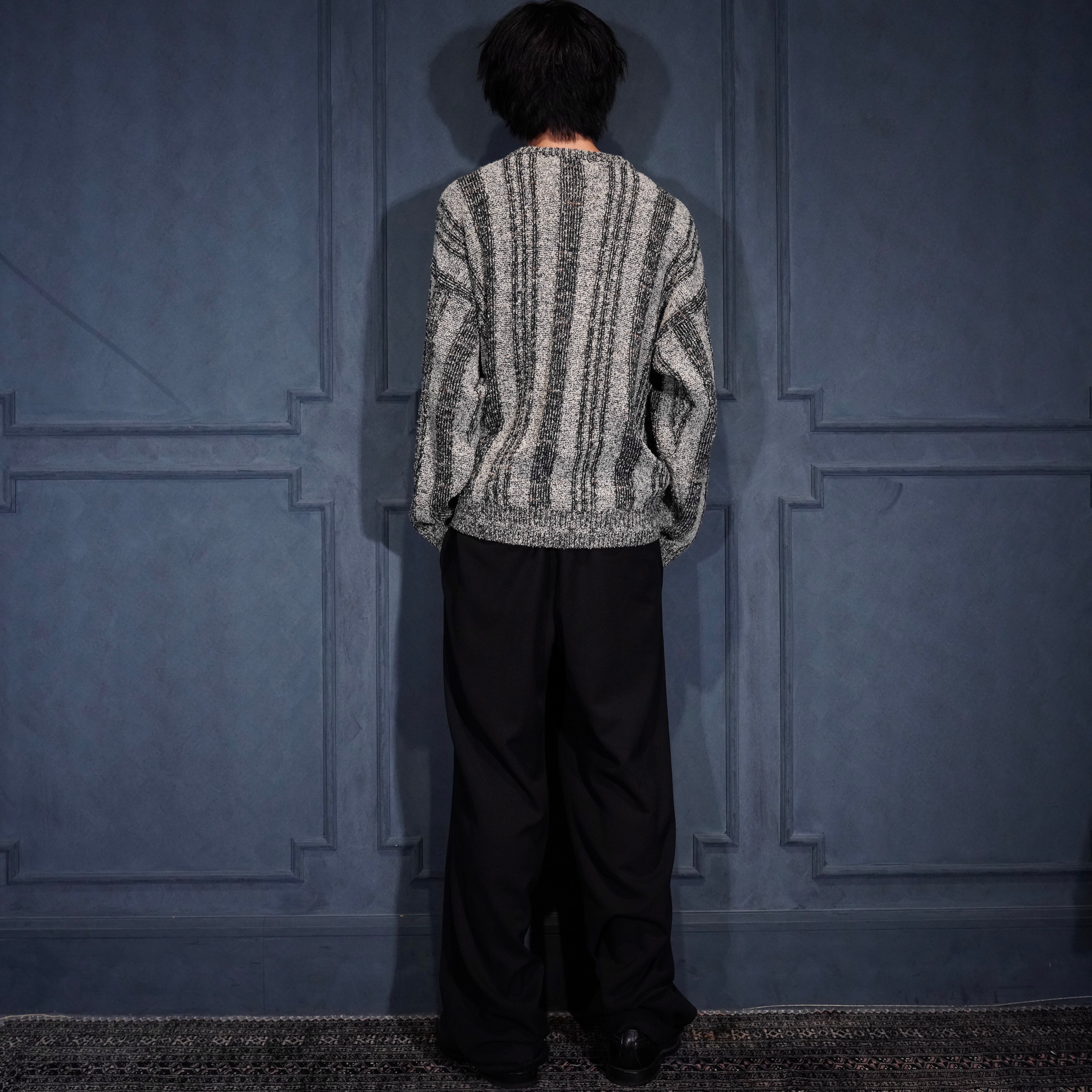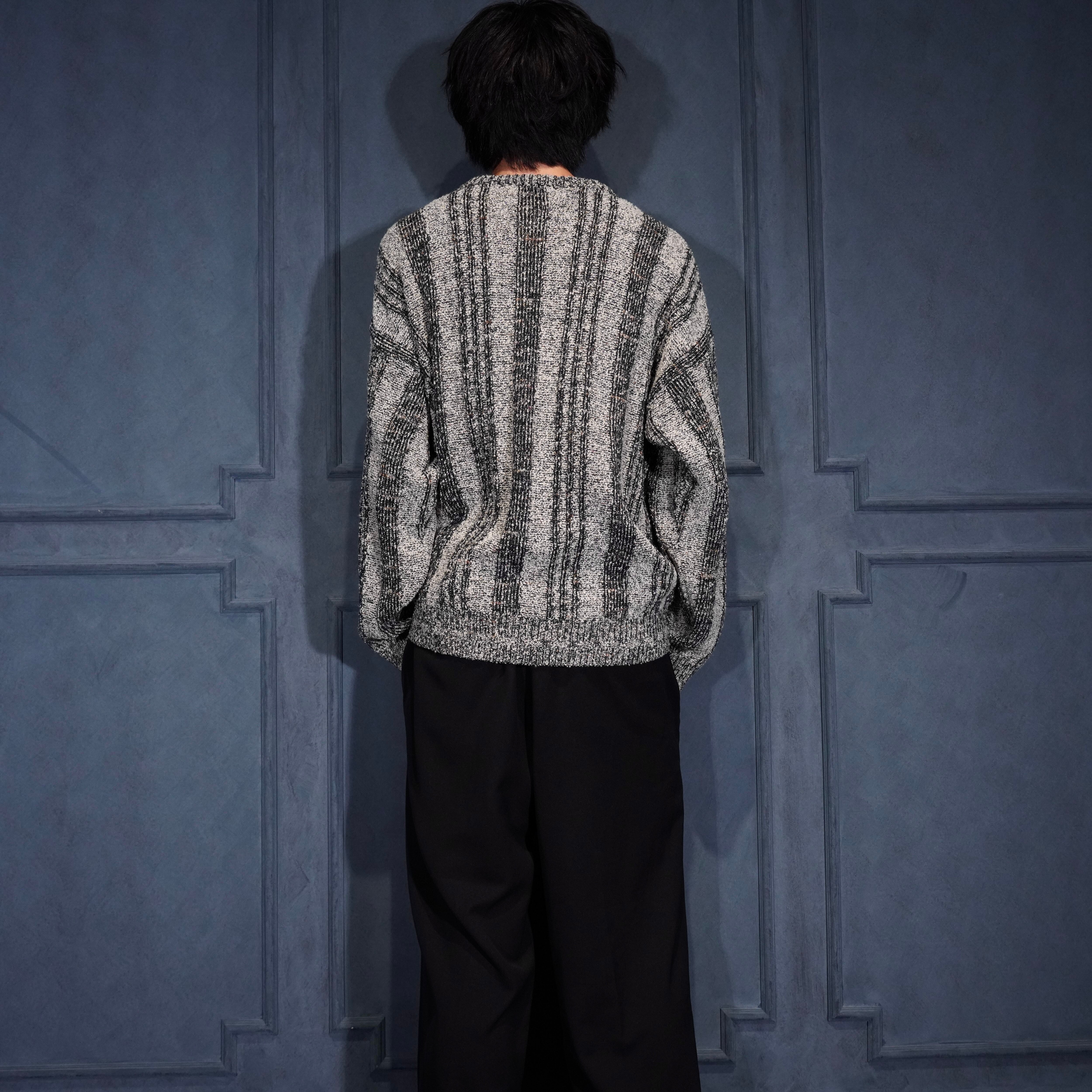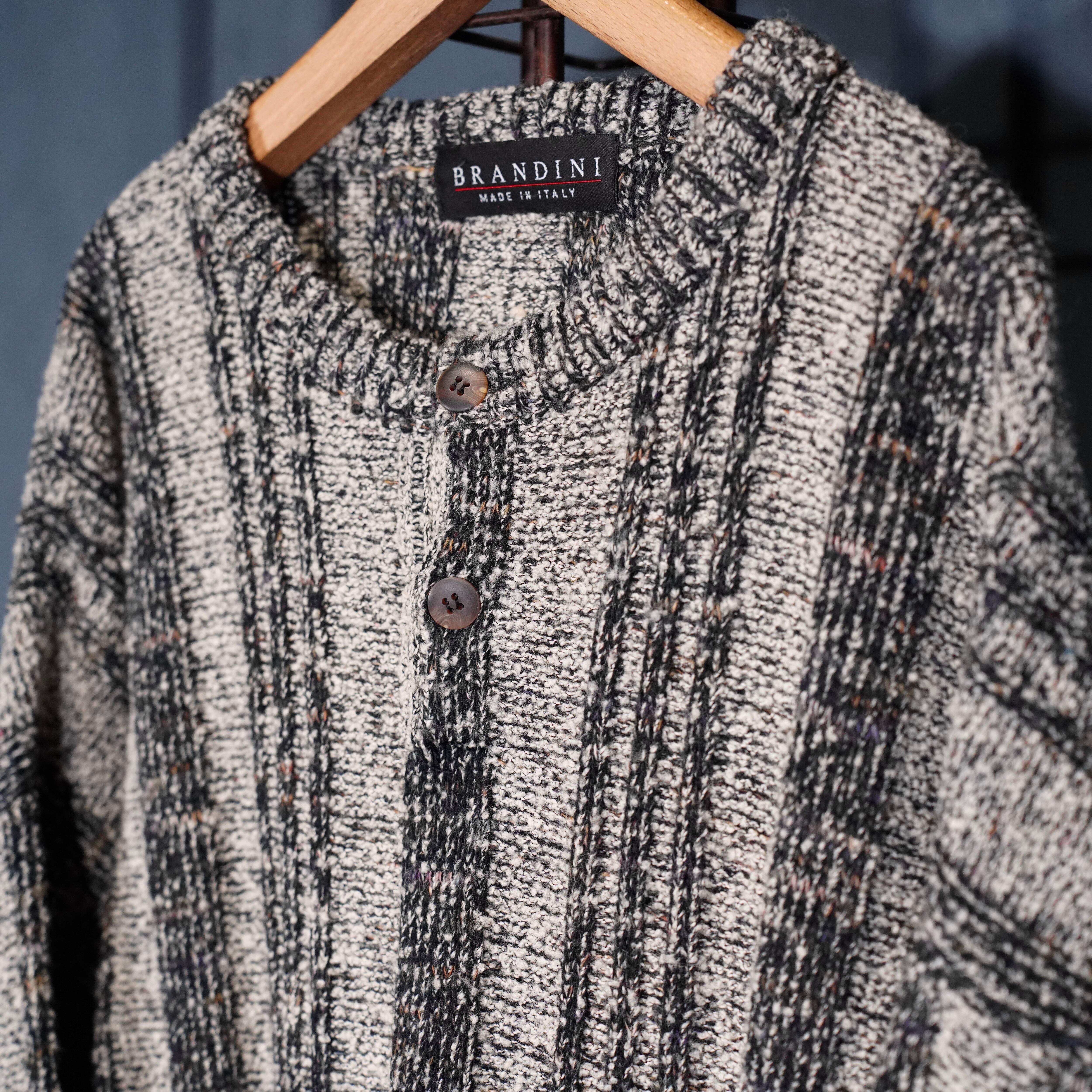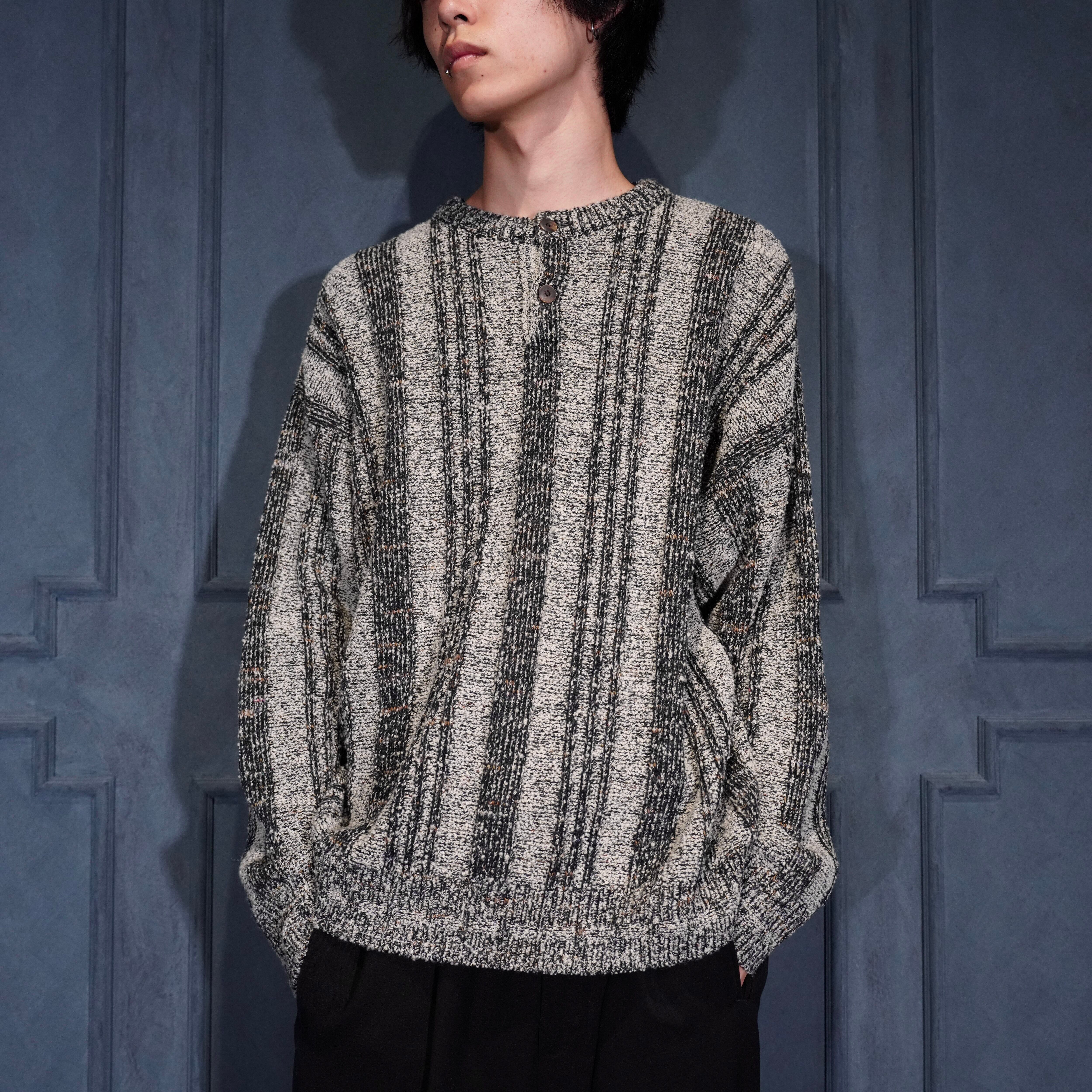 EU VINTAGE BRANDINI STRIPE PATTERNED WOVEN DESIGN HENRY NECK KNIT MADE IN ITALY/ヨーロッパ古着ストライプ柄織デザインヘンリーネックニット