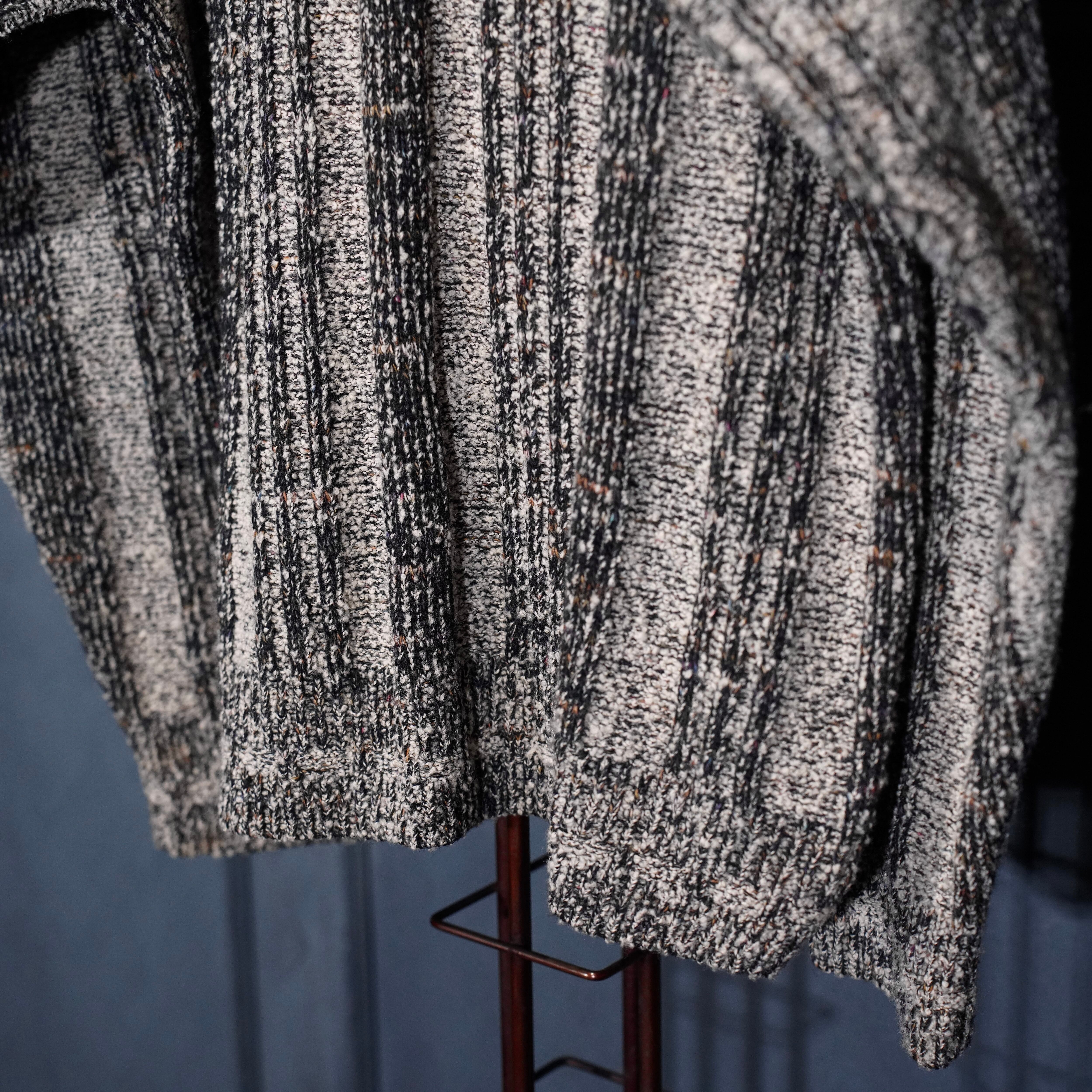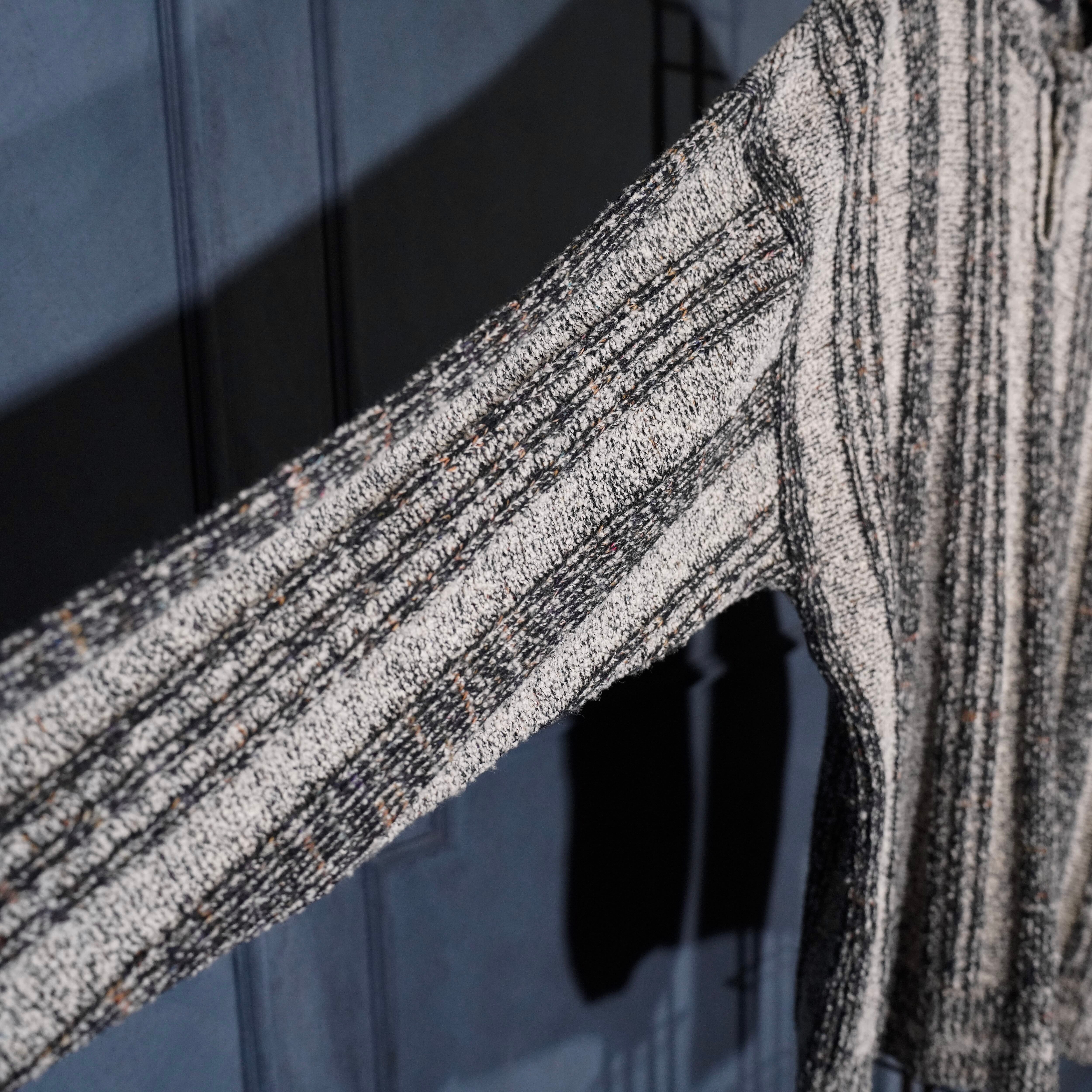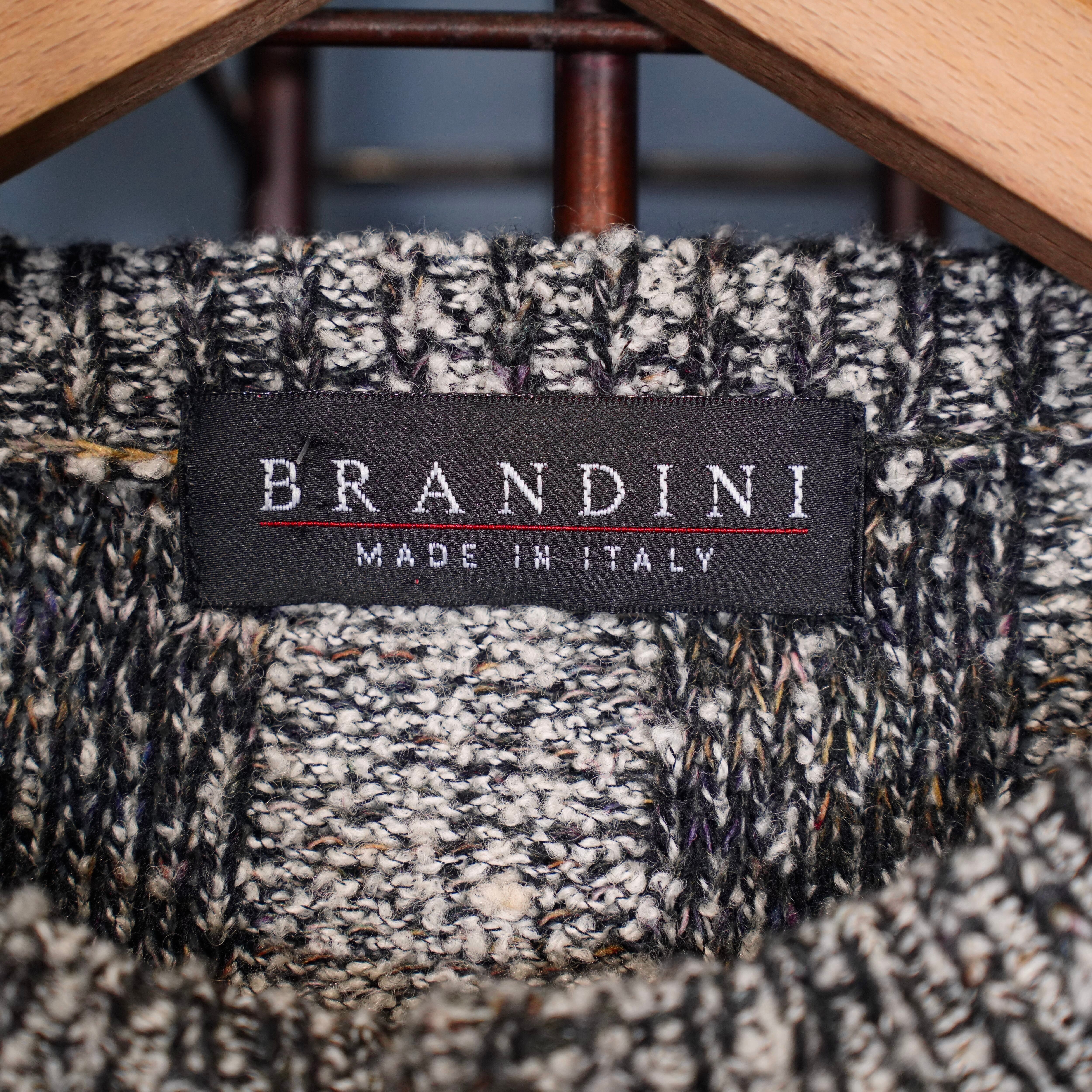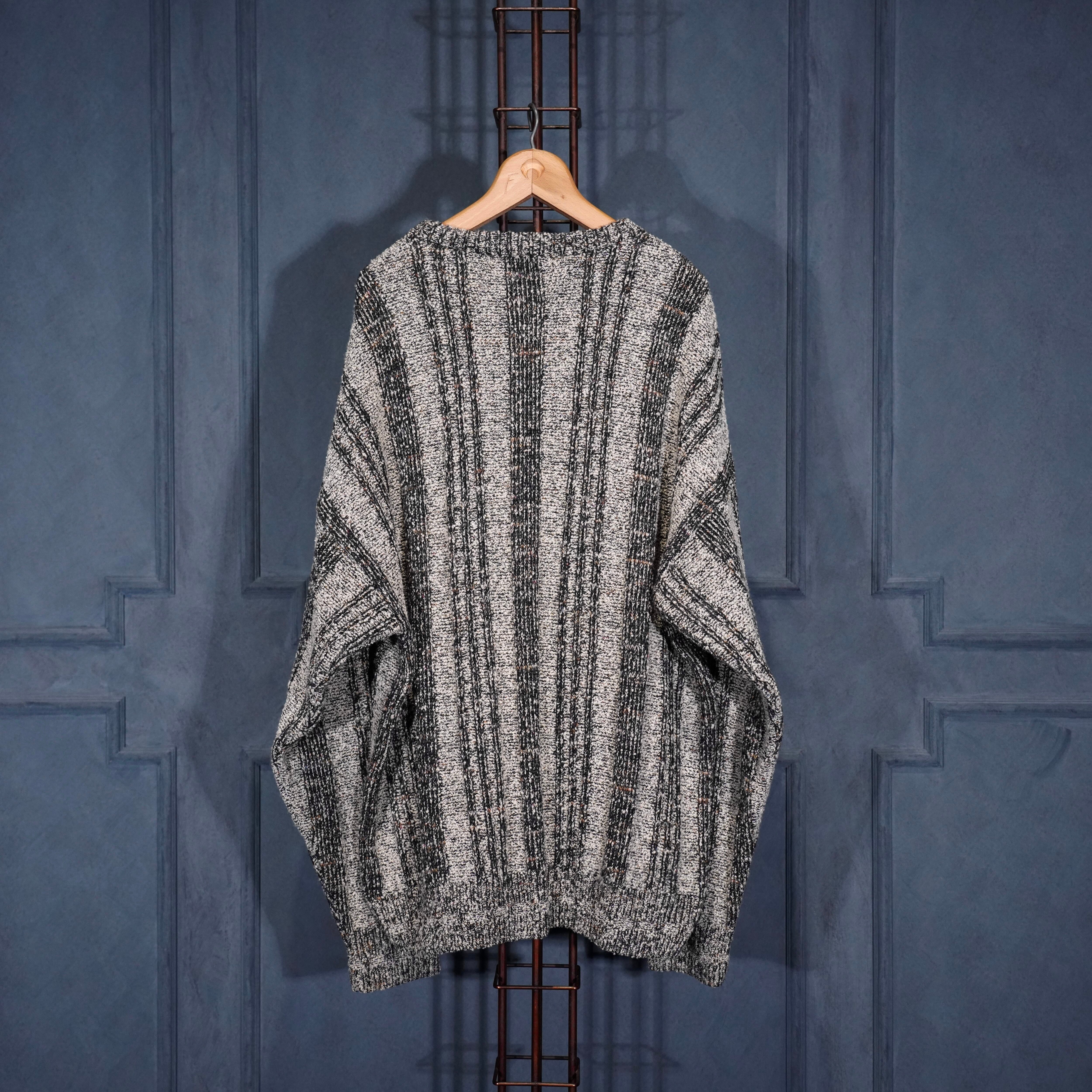 EU VINTAGE BRANDINI STRIPE PATTERNED WOVEN DESIGN HENRY NECK KNIT MADE IN ITALY/ヨーロッパ古着ストライプ柄織デザインヘンリーネックニット