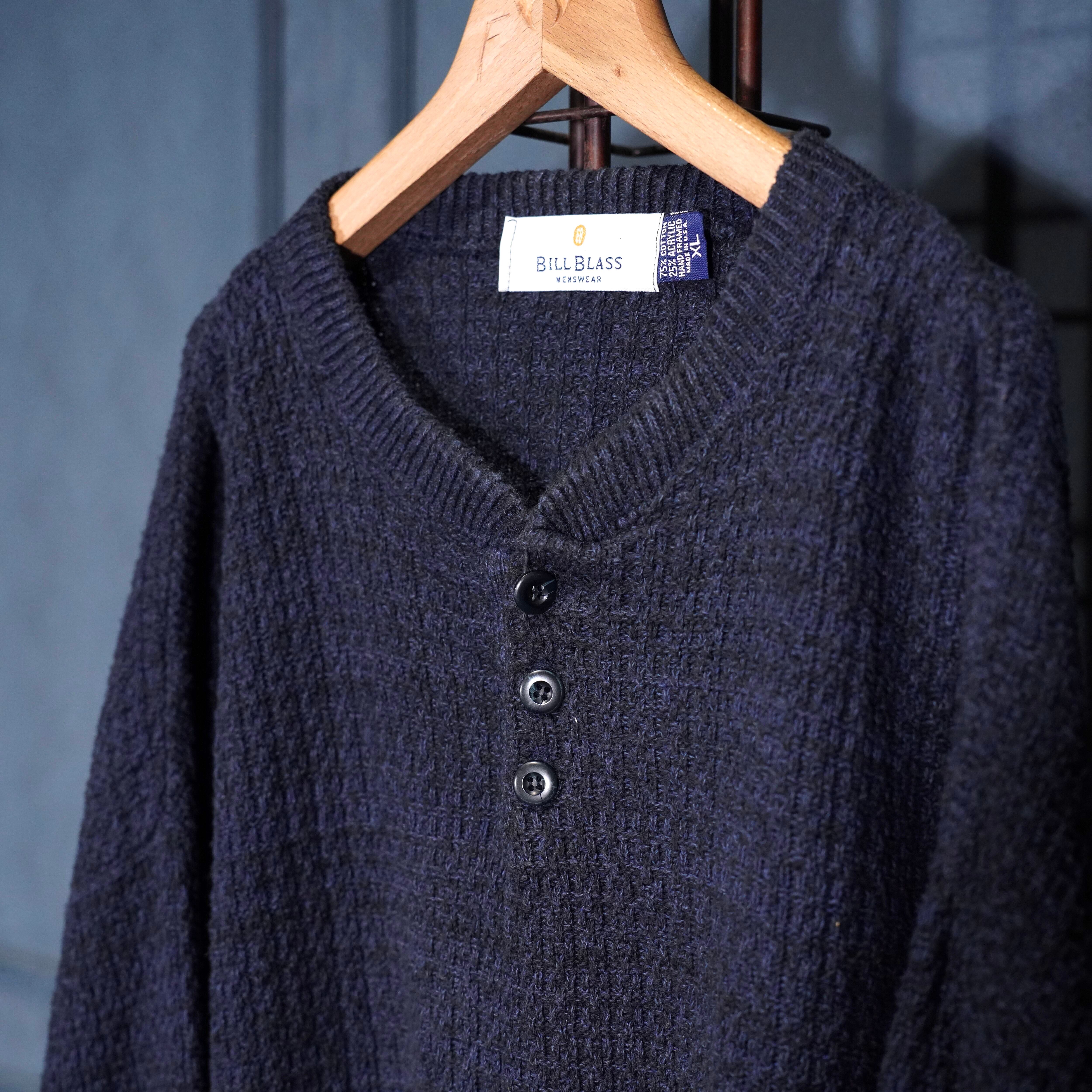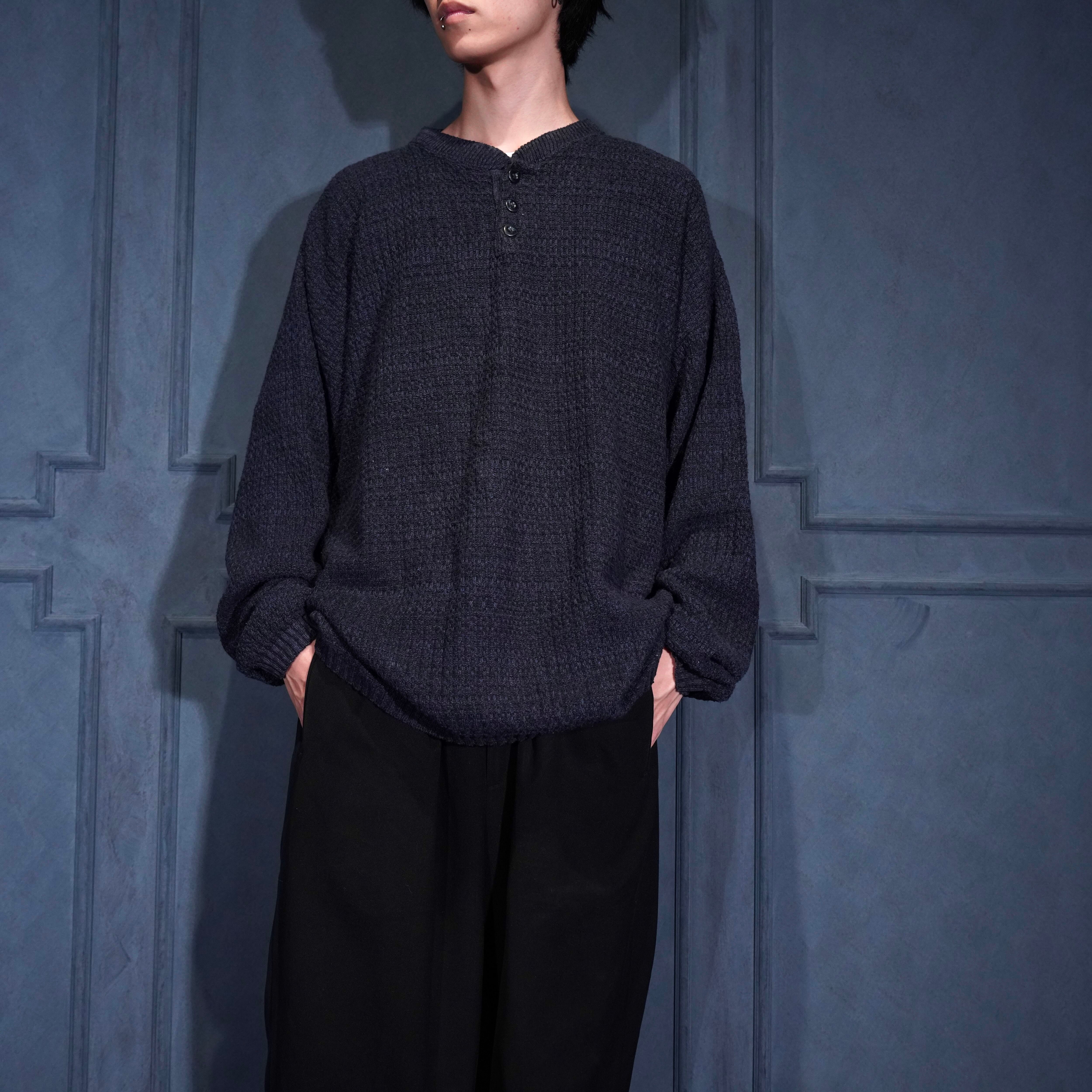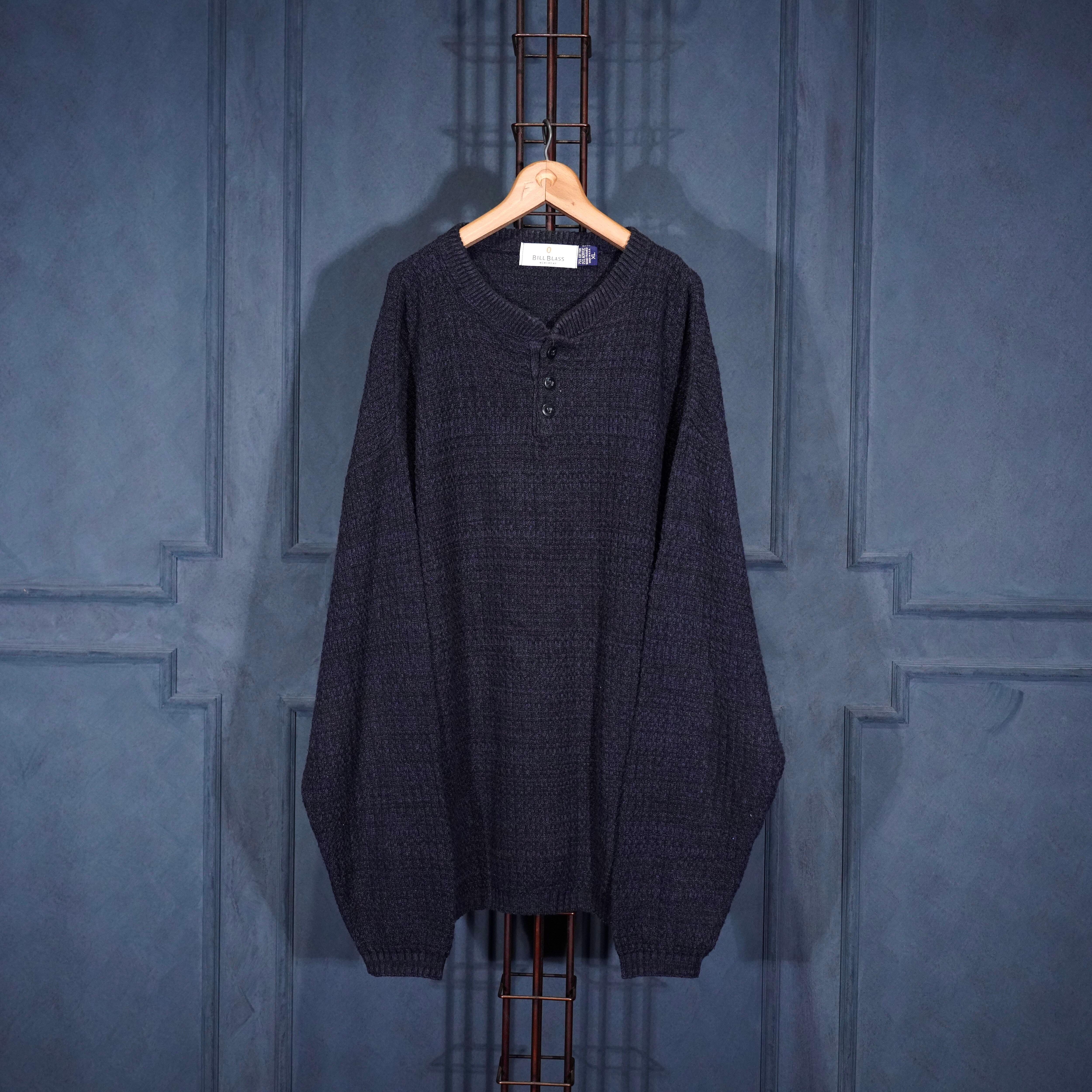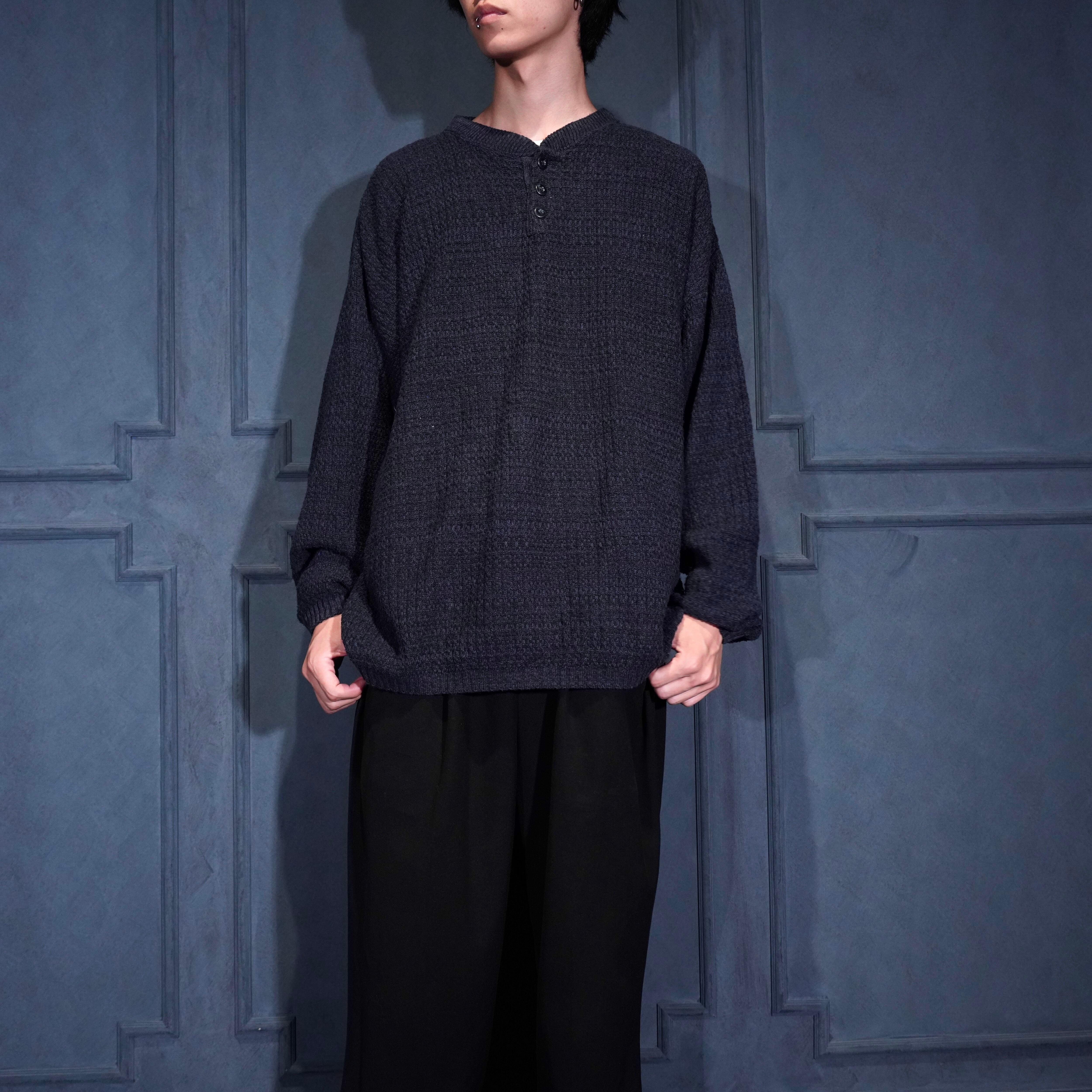 USA VINTAGE BILL BLASS WOVEN DESIGN HENRY NECK COTTON KNIT MADE IN USA/アメリカ古着織デザインヘンリーネックコットンニット