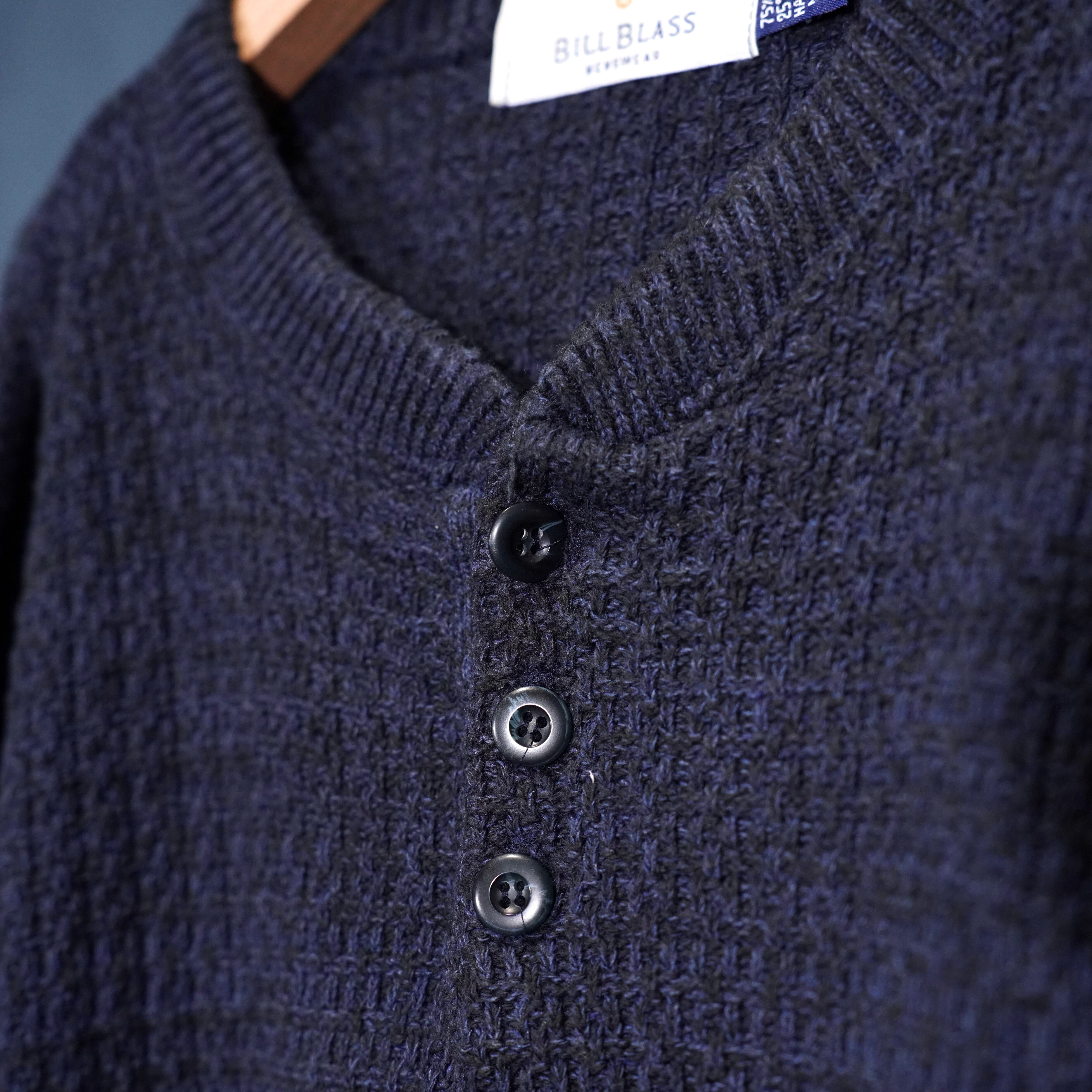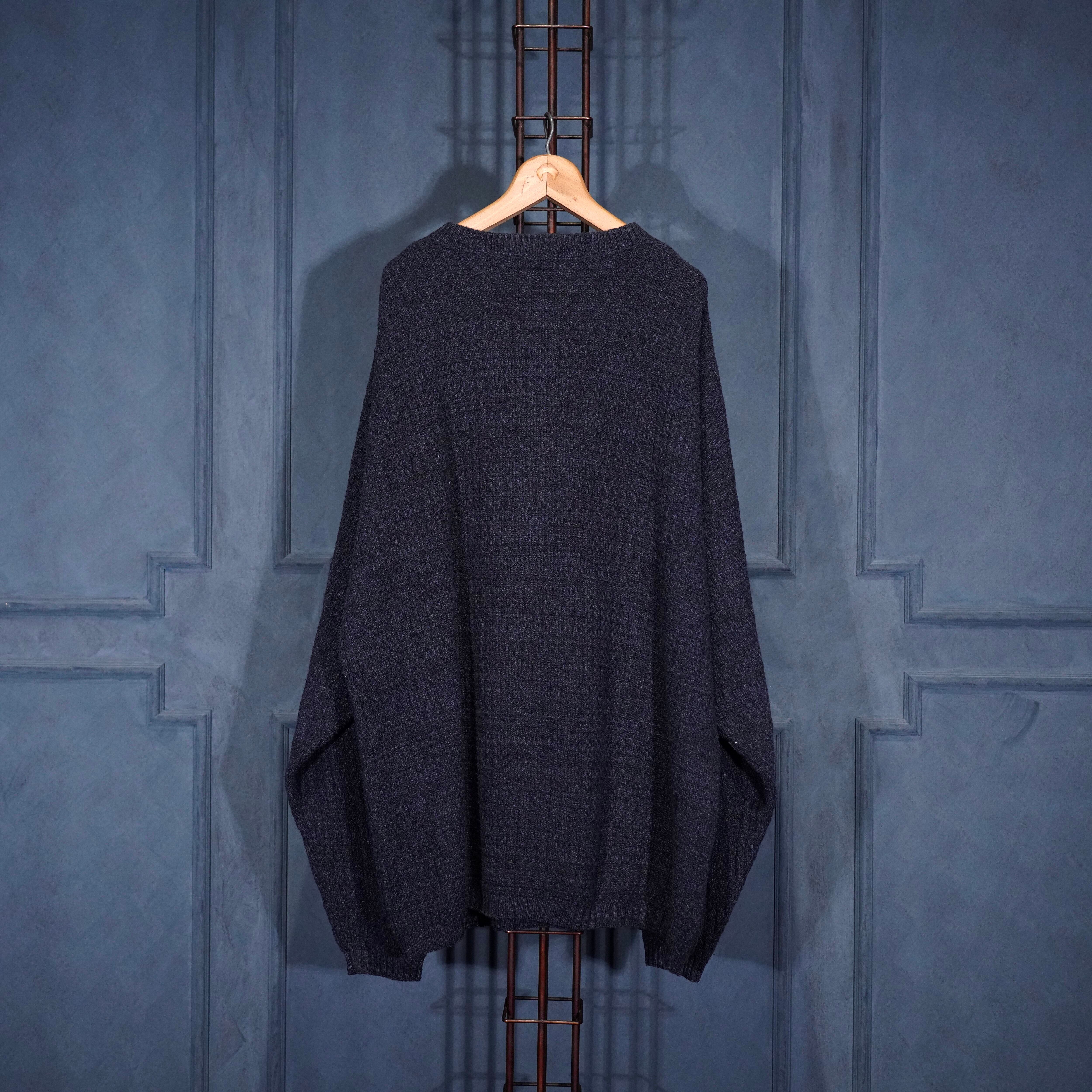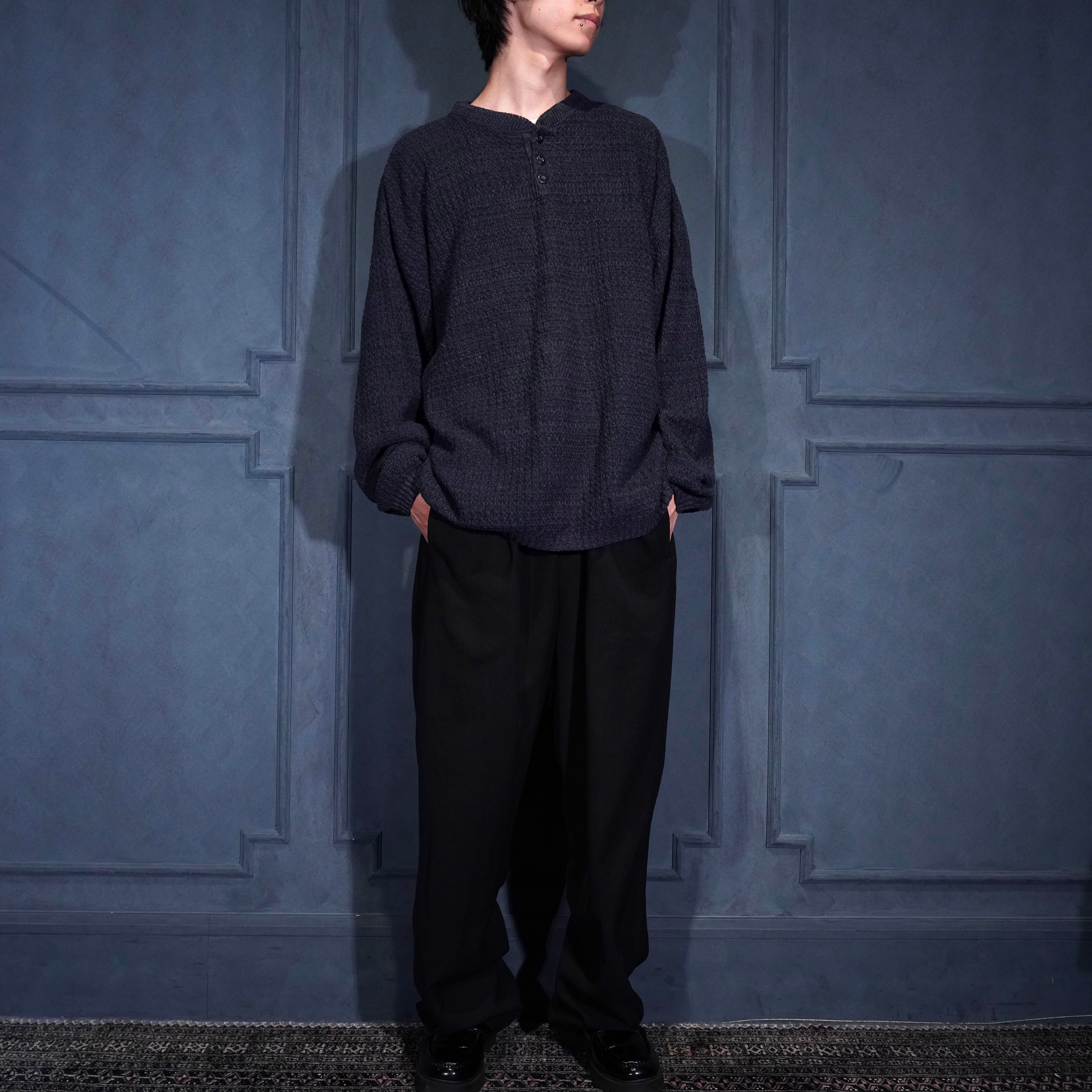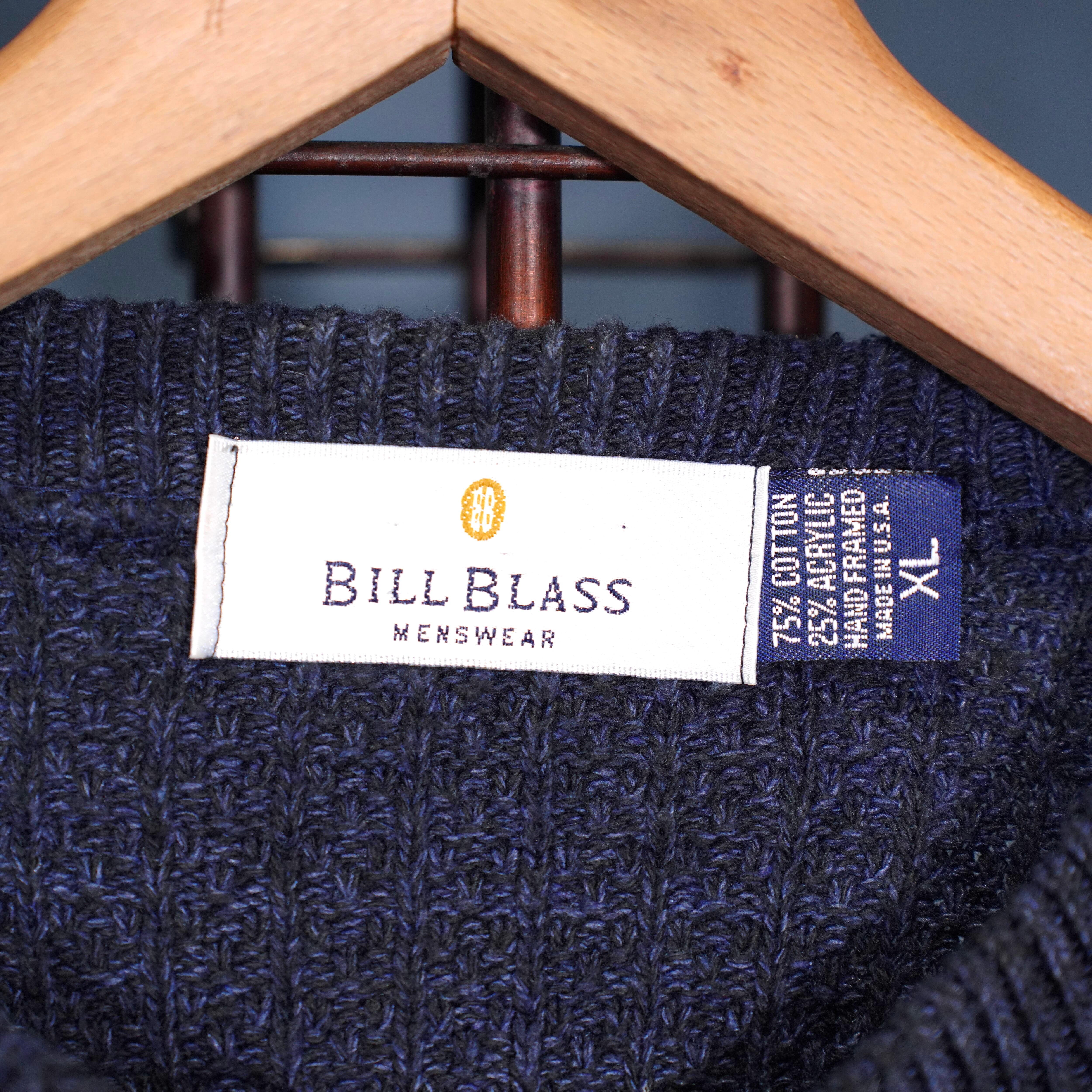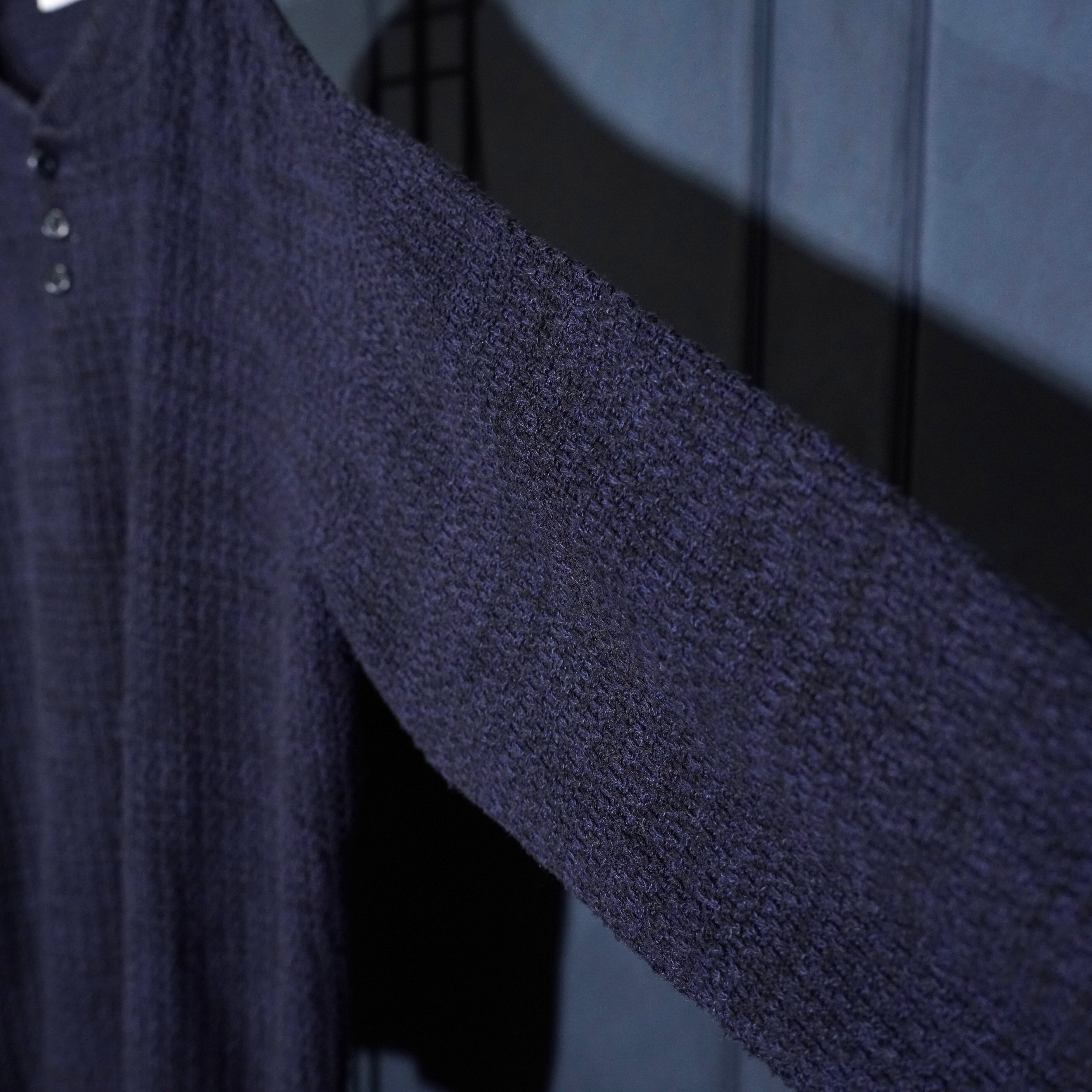 USA VINTAGE BILL BLASS WOVEN DESIGN HENRY NECK COTTON KNIT MADE IN USA/アメリカ古着織デザインヘンリーネックコットンニット