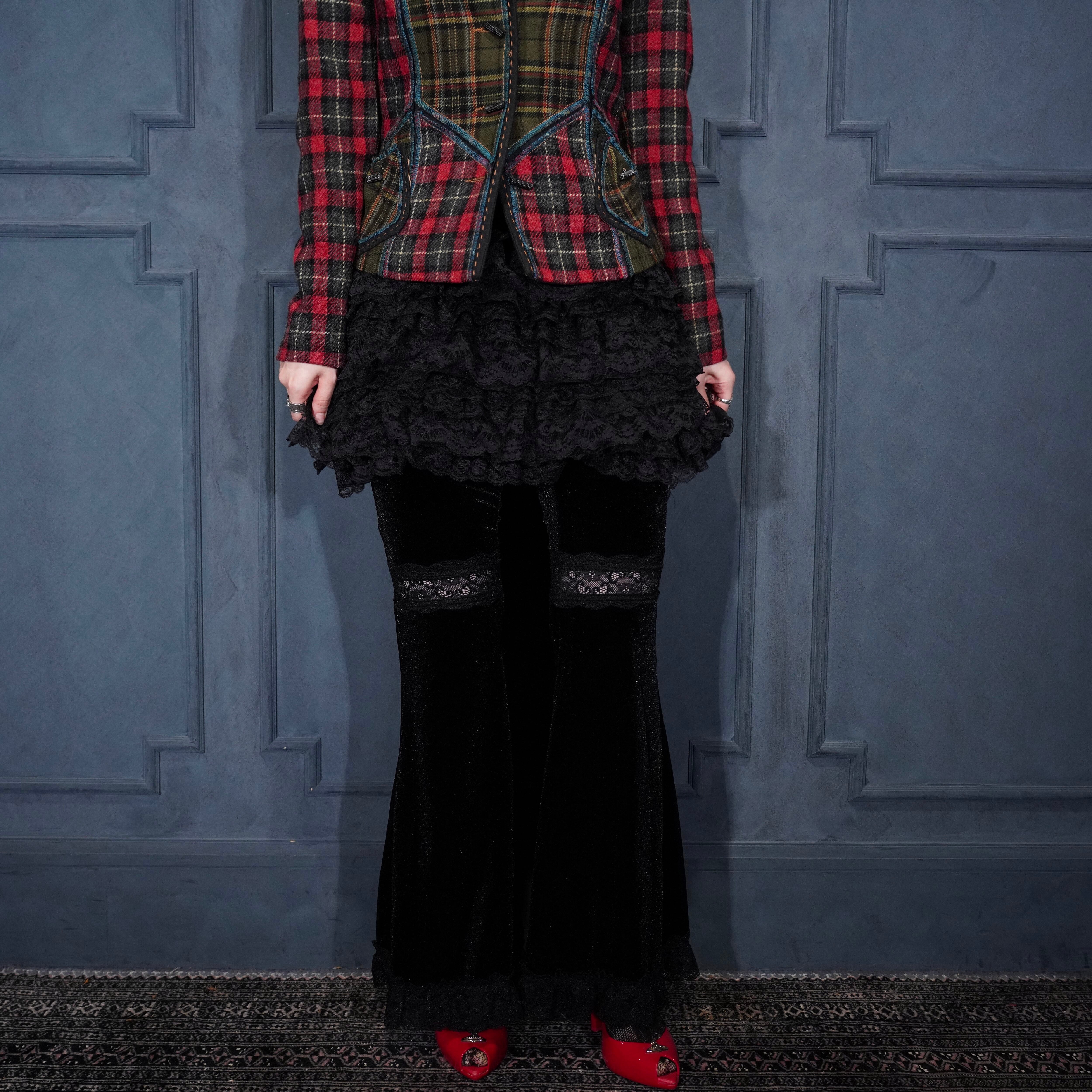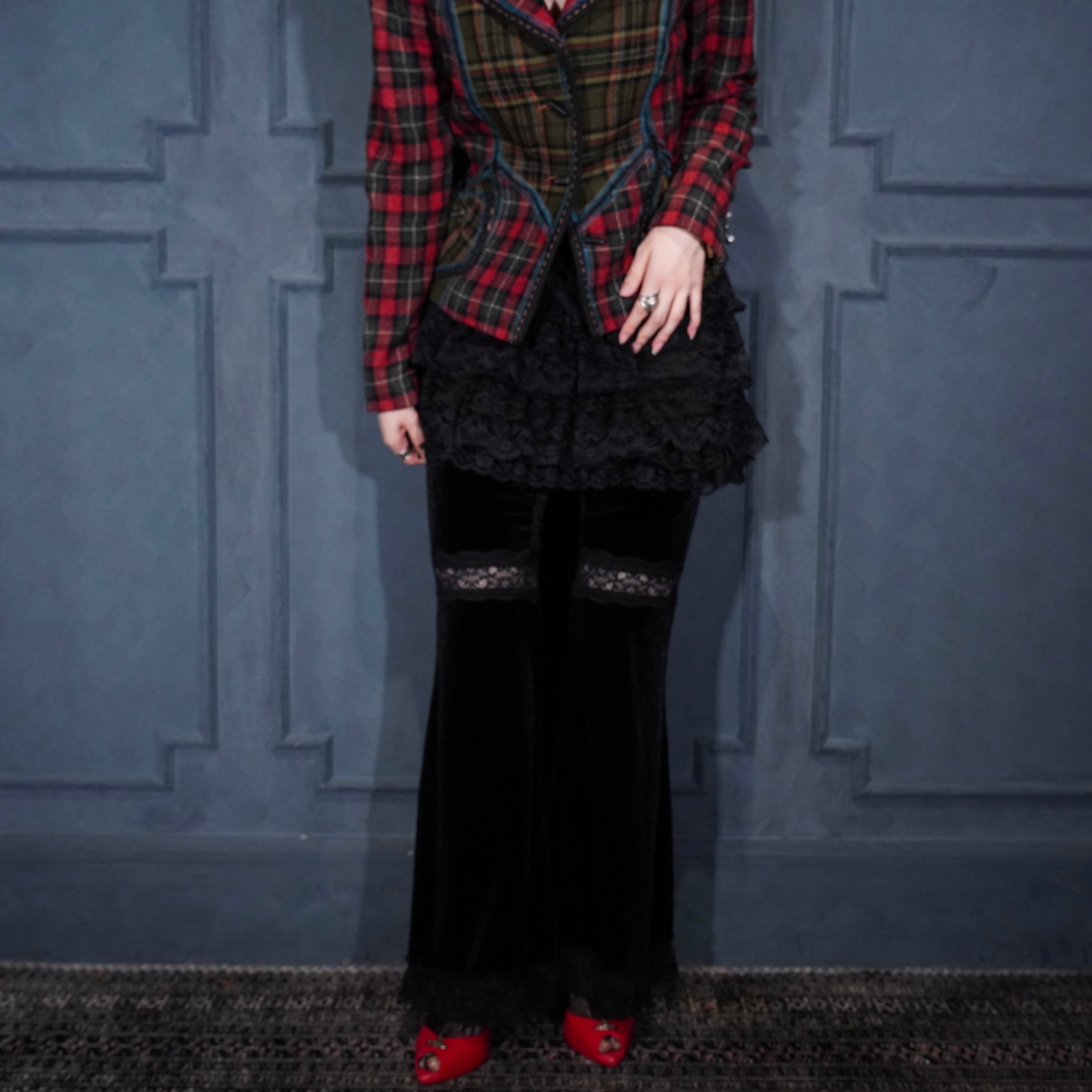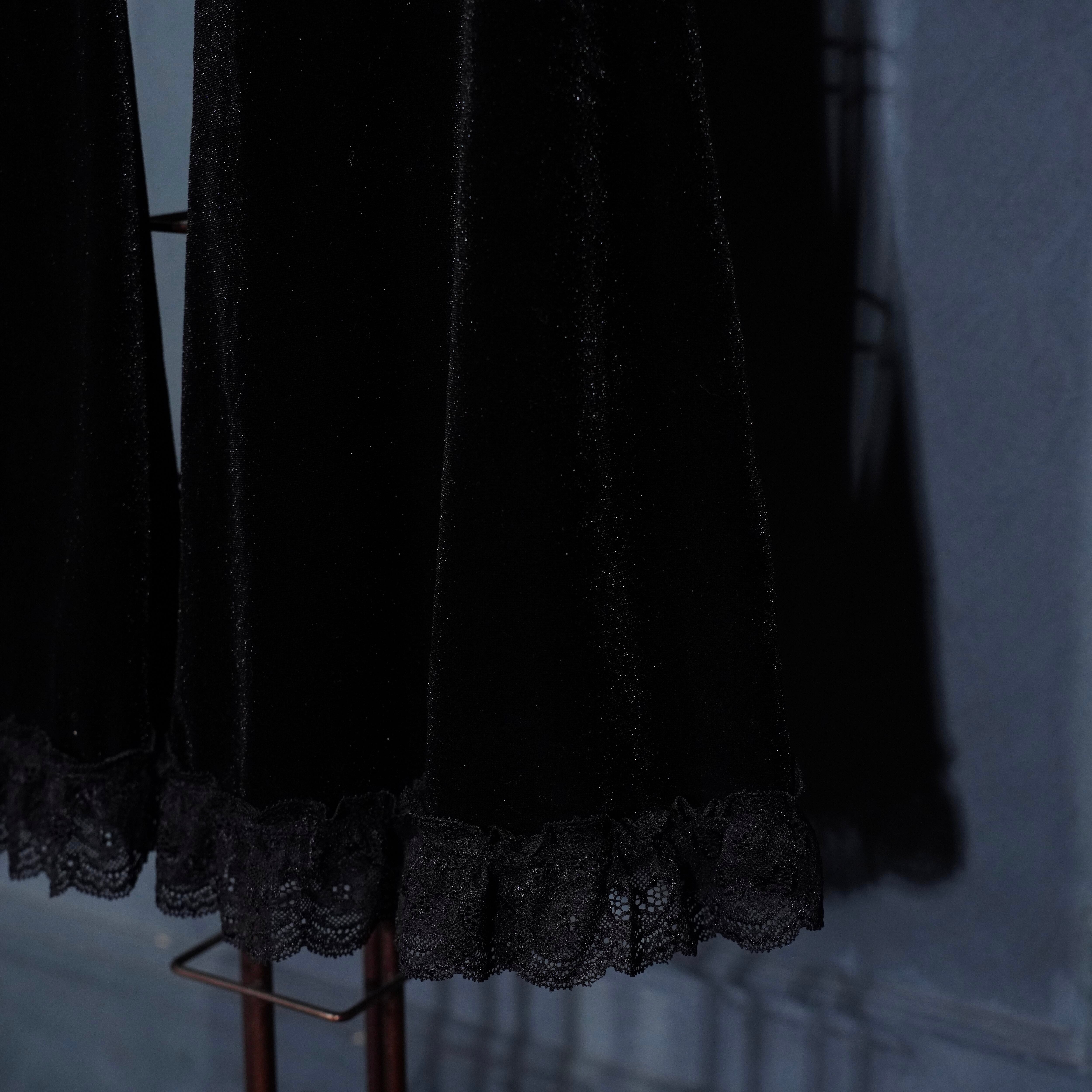 USA VINTAGE LACE DESIGN FLARE VELOUR PANTS/アメリカ古着レースデザインフレアベロアパンツ