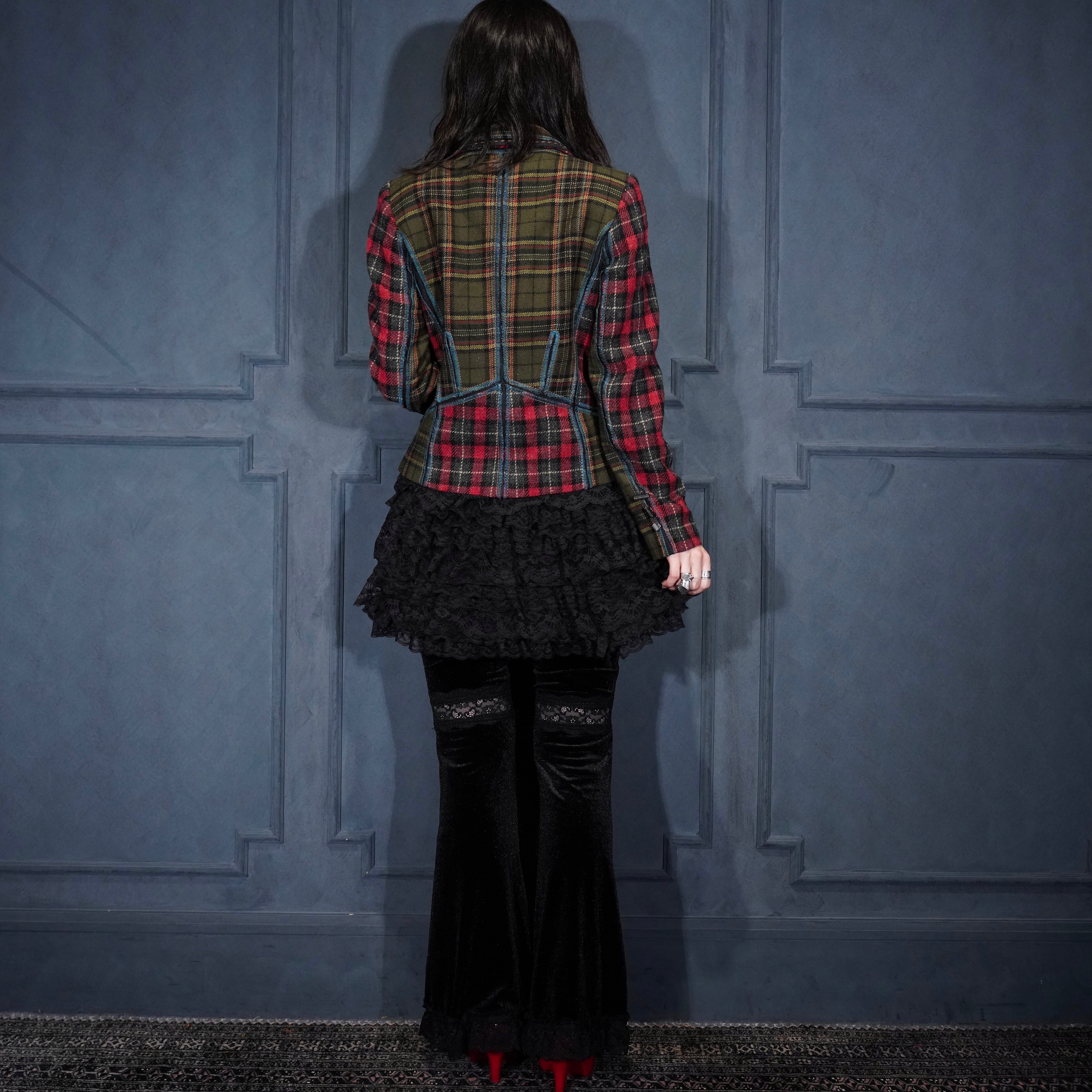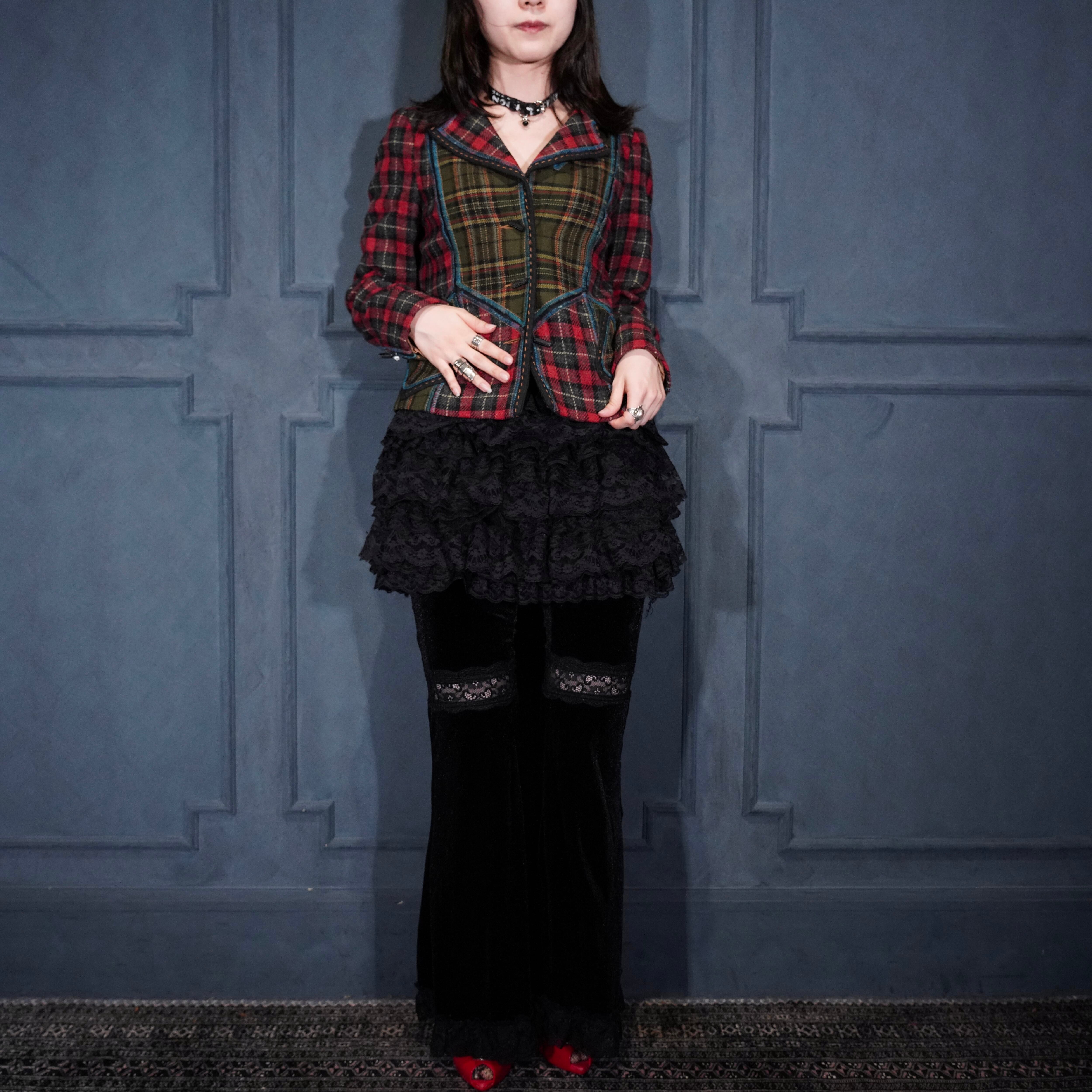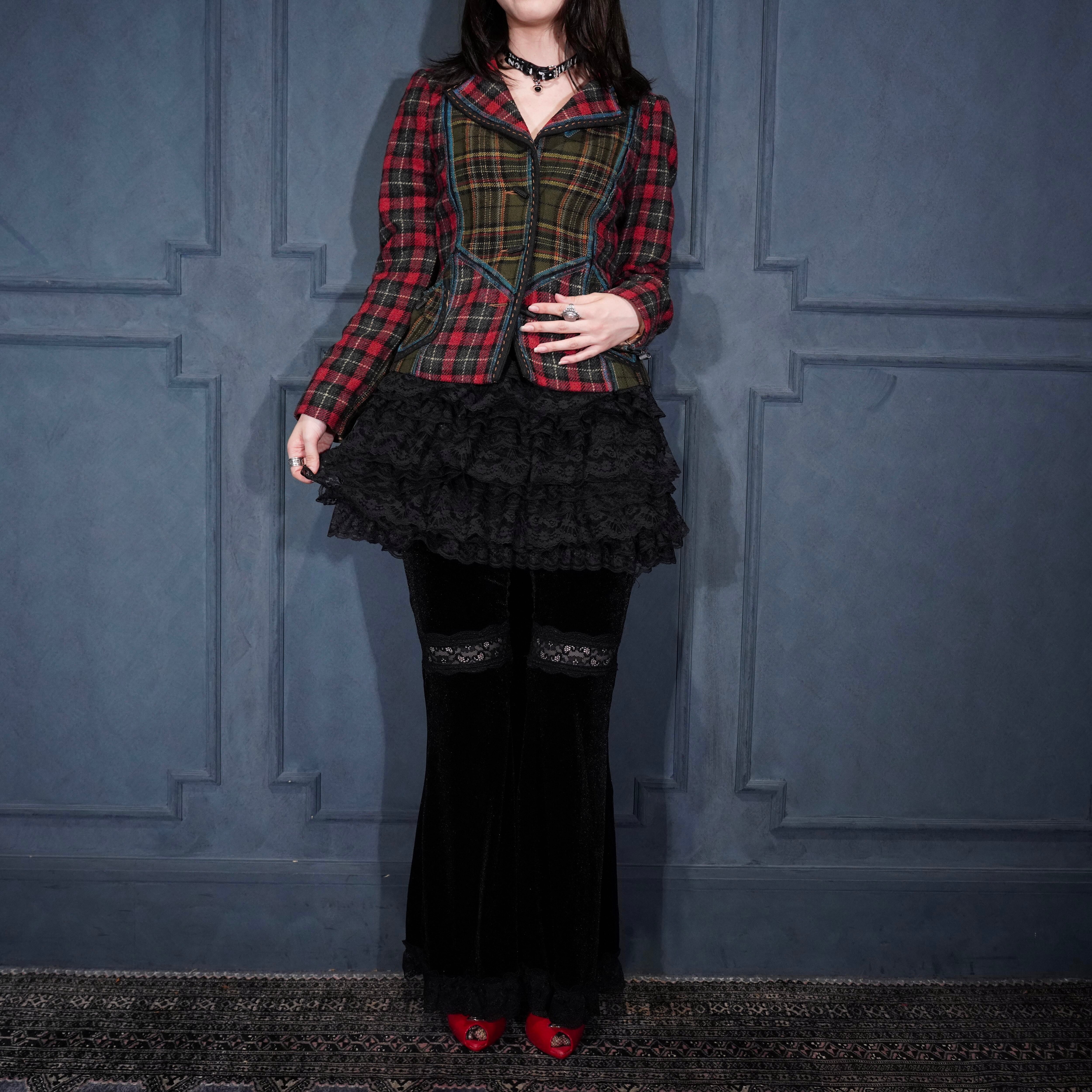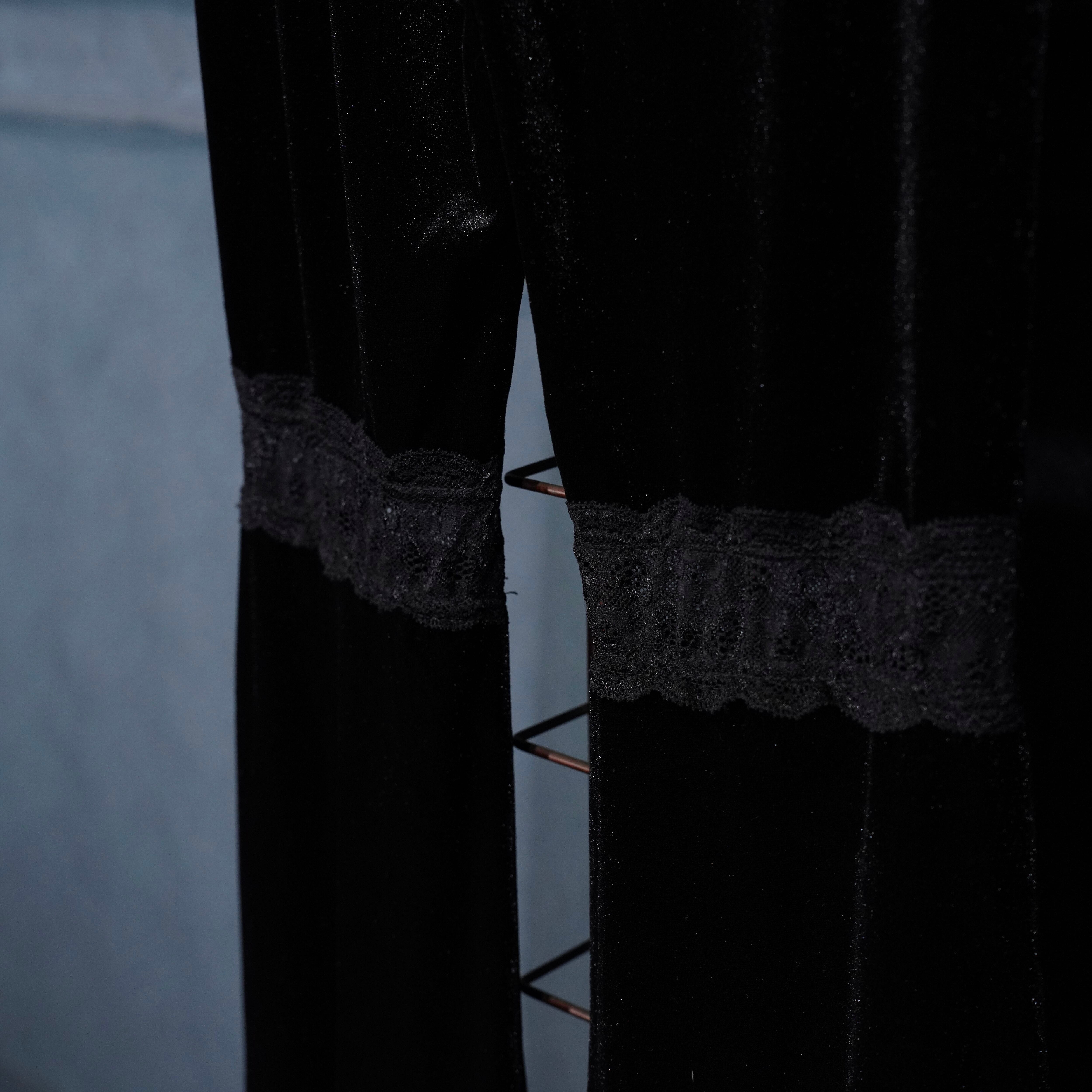 USA VINTAGE LACE DESIGN FLARE VELOUR PANTS/アメリカ古着レースデザインフレアベロアパンツ