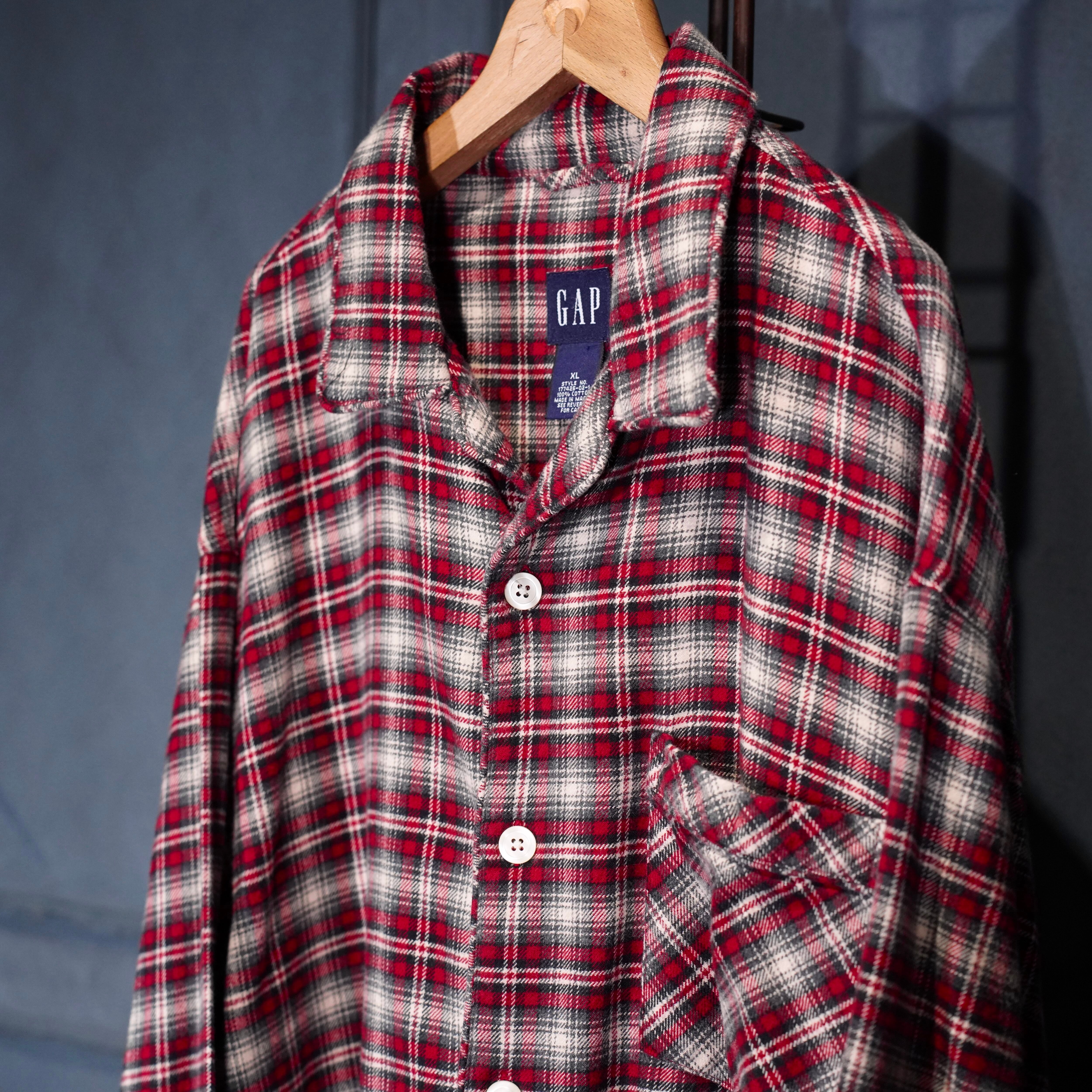 90's~ USA VINTAGE GAP CHECK PATTERNED OPEN COLLAR FLANNEL SHIRT/90年代~アメリカ古着オールドギャップチェック柄オープンカラーフランネルシャツ