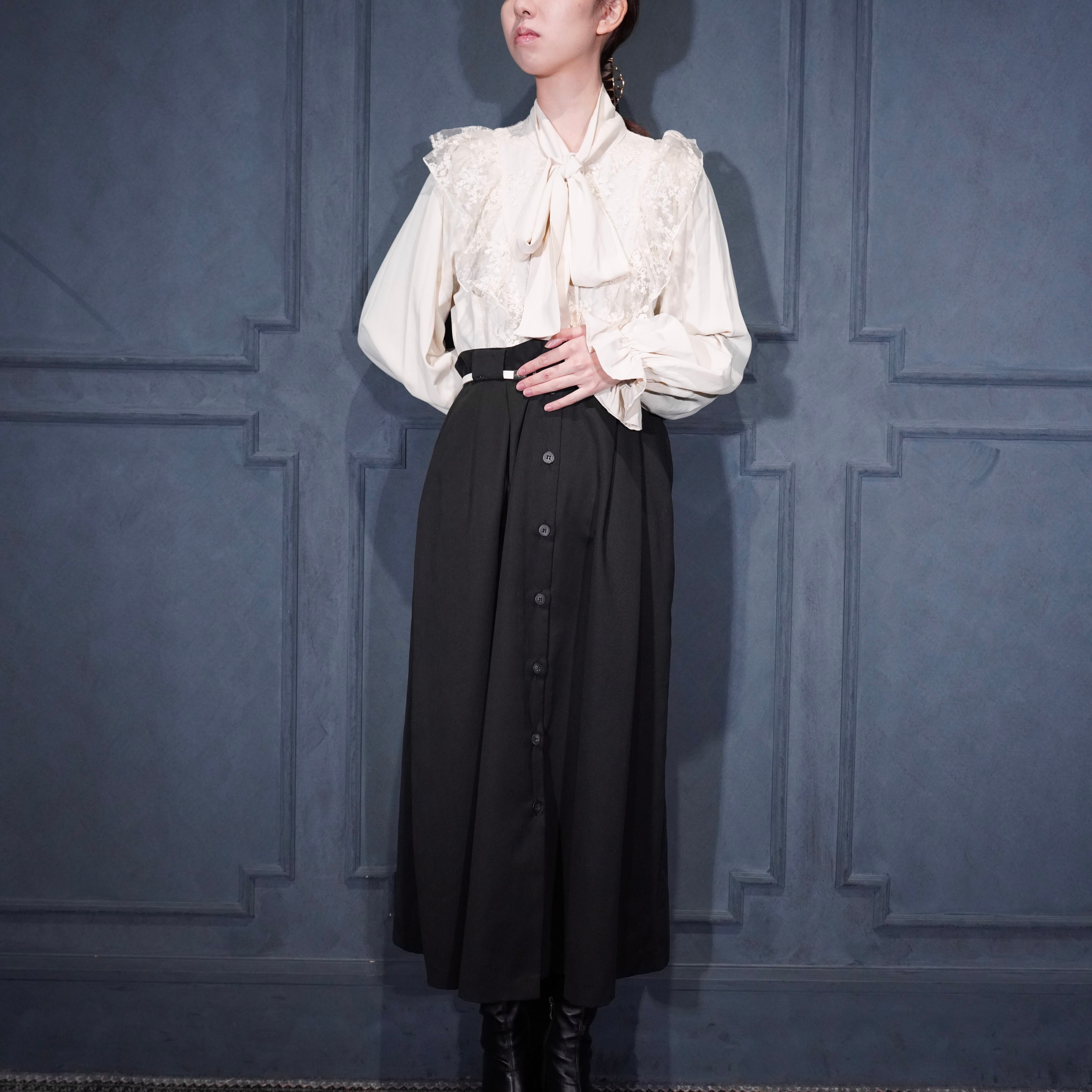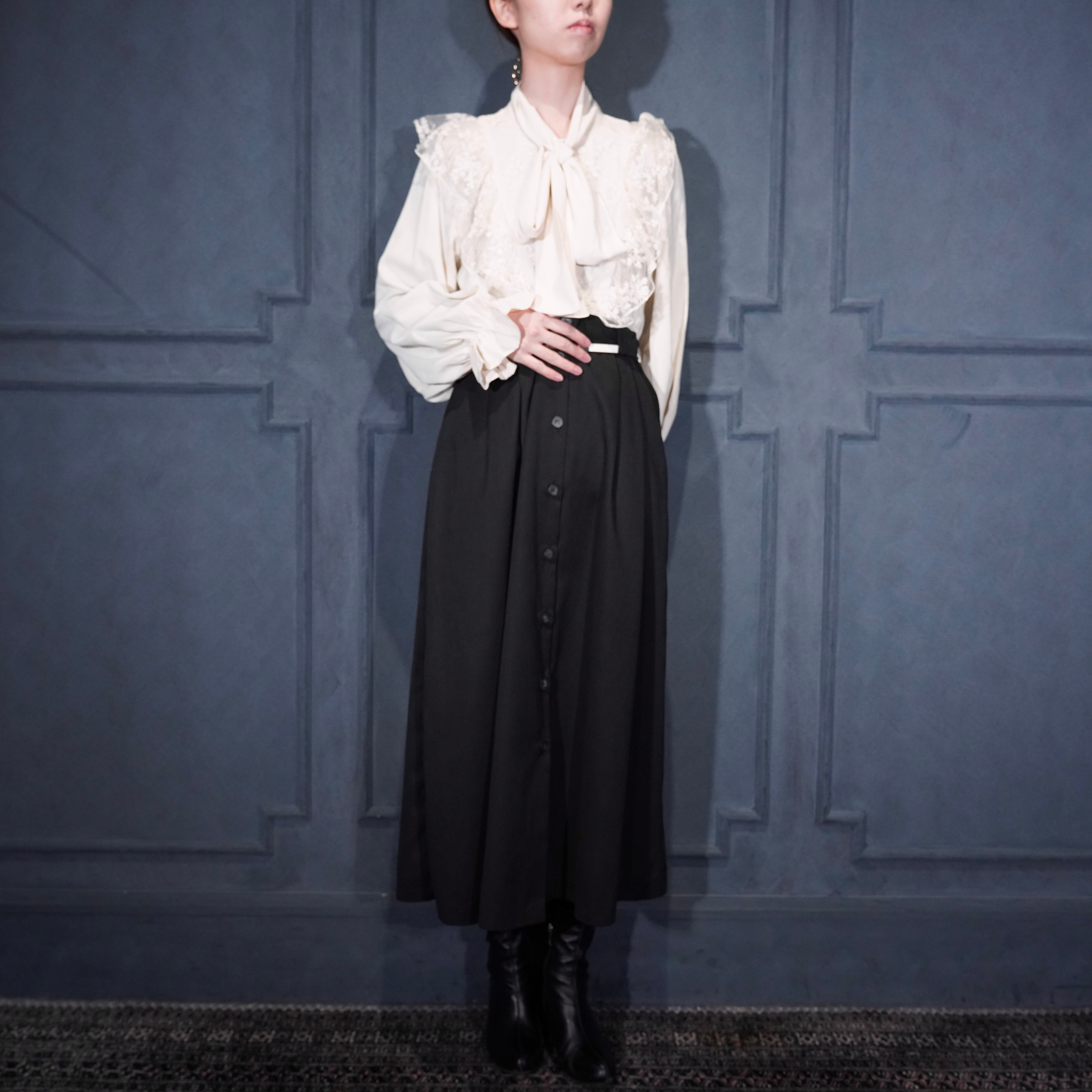 USA VINTAGE CASABLANCA FRONT BUTTON DESIGN COTTON LONG SKIRT/アメリカ古着フロントボタンデザインコットンロングスカート