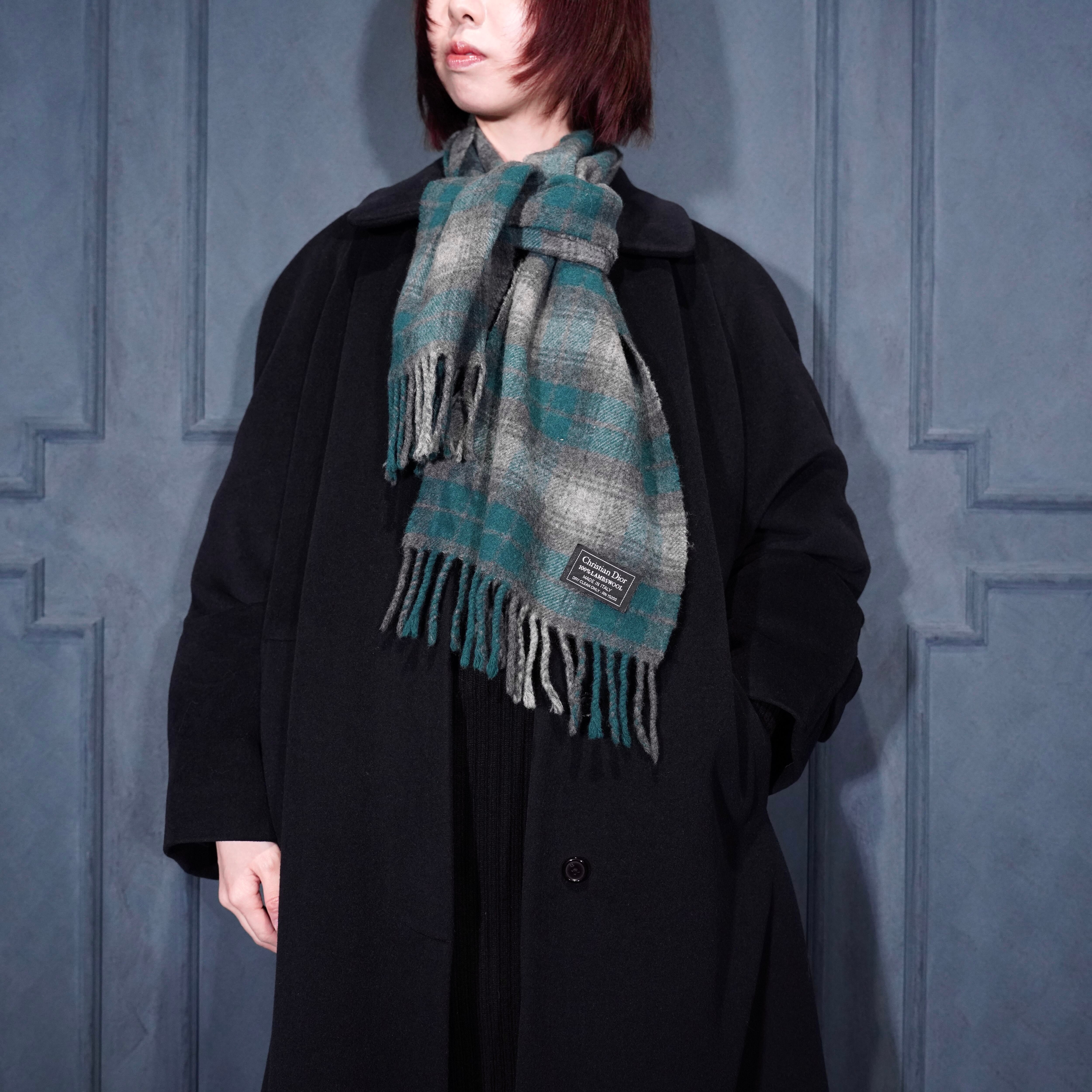 Christian Dior CHECK PATTERNED LAMBSWOOL MUFFLER MADE IN ITALY/クリスチャンディオールチェック柄ラムウールマフラー