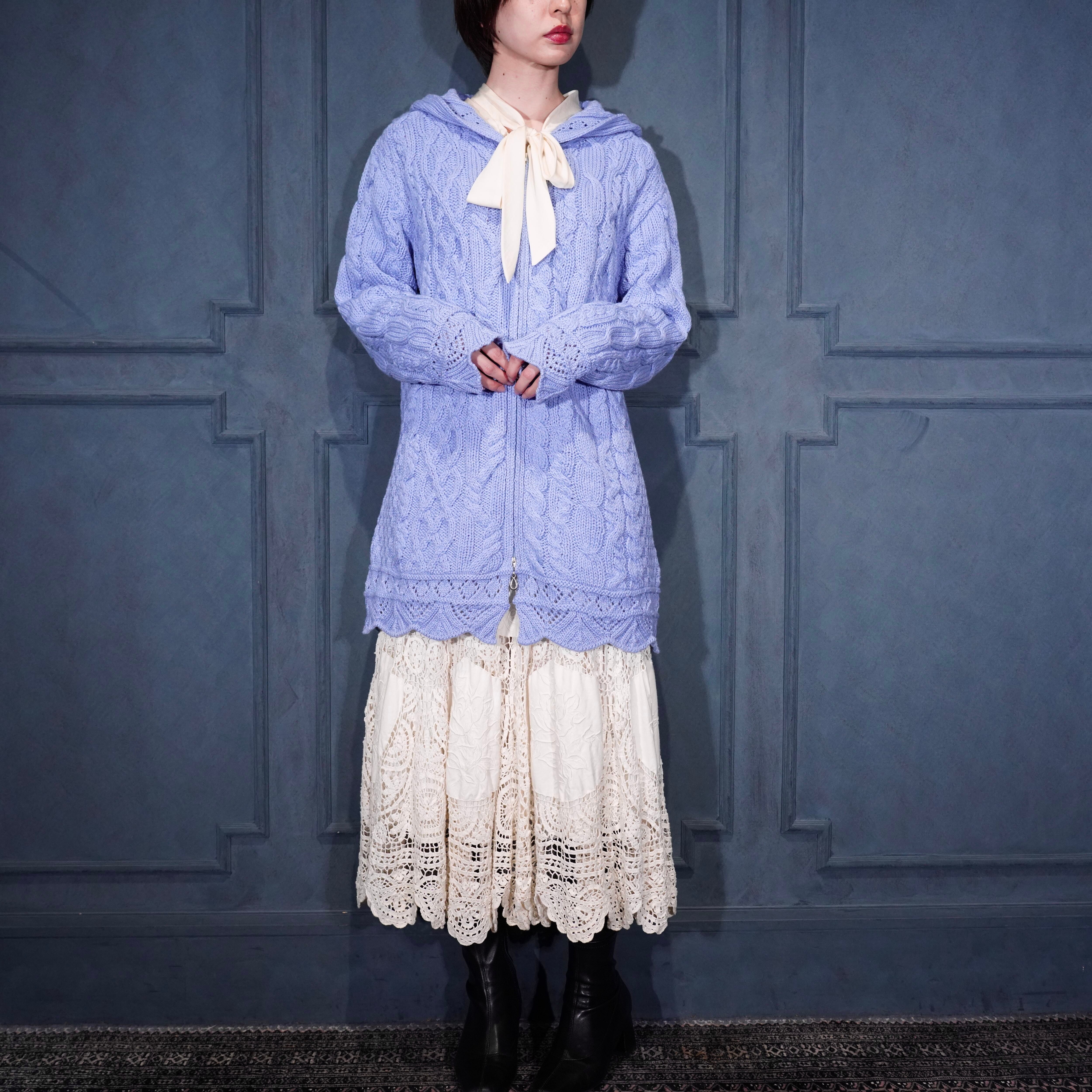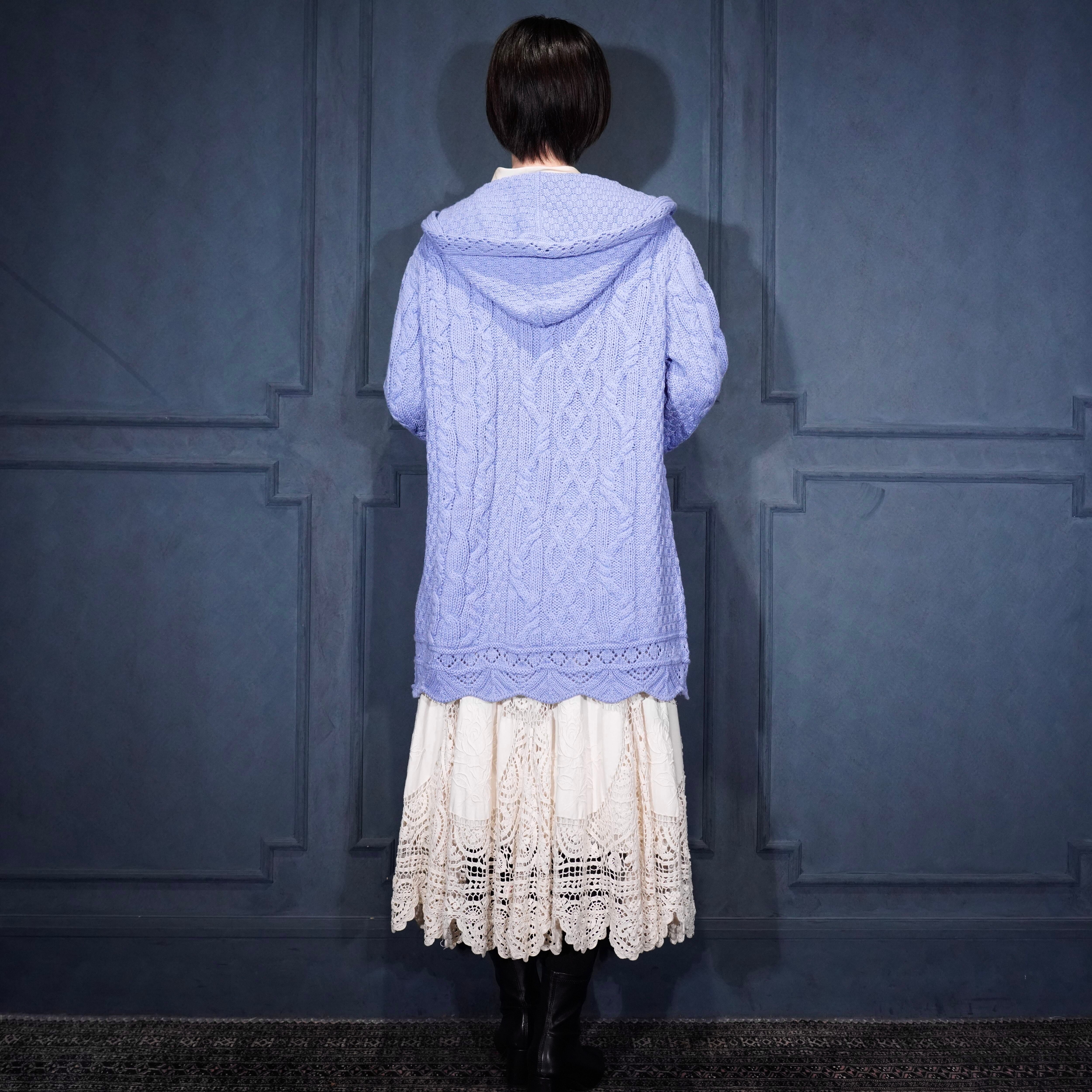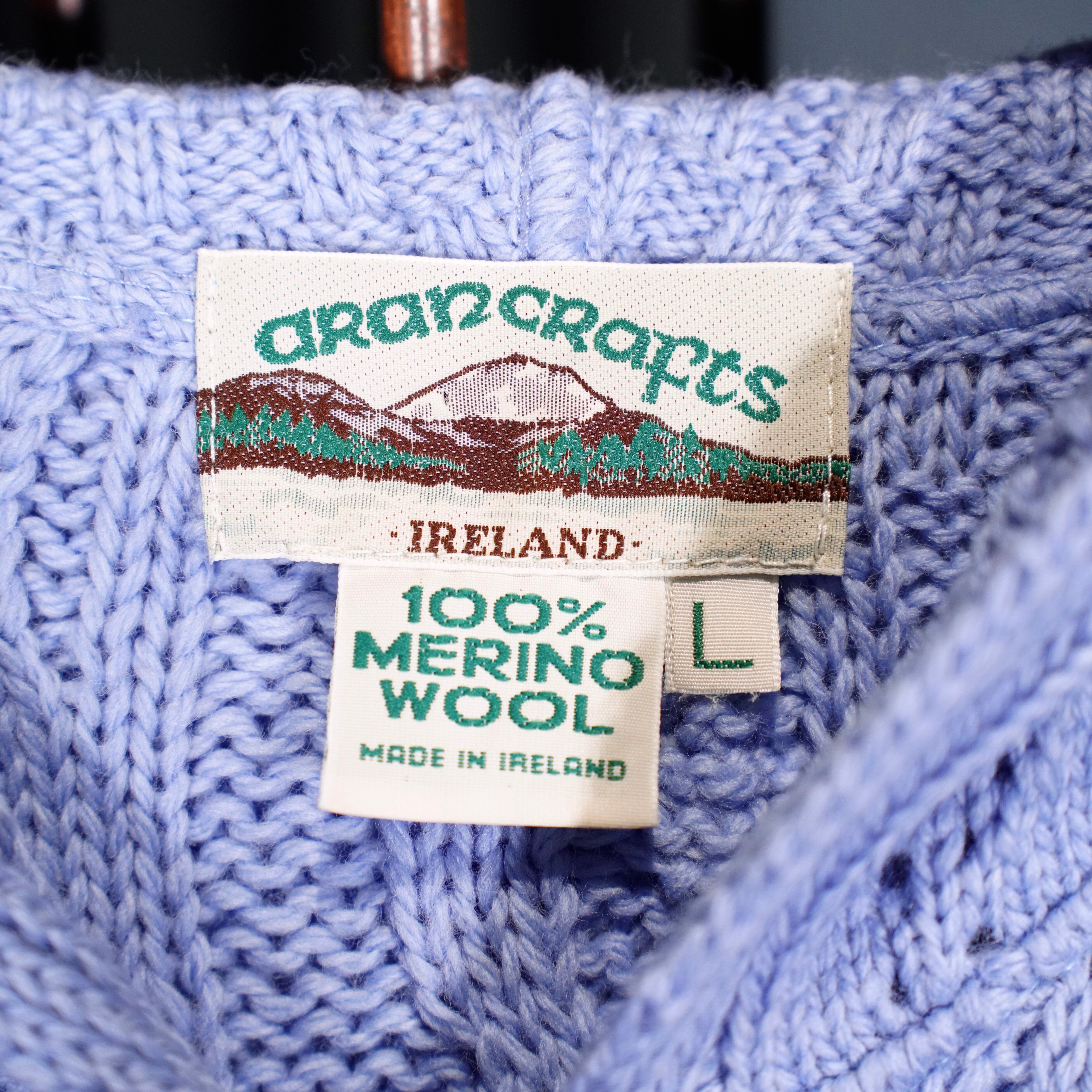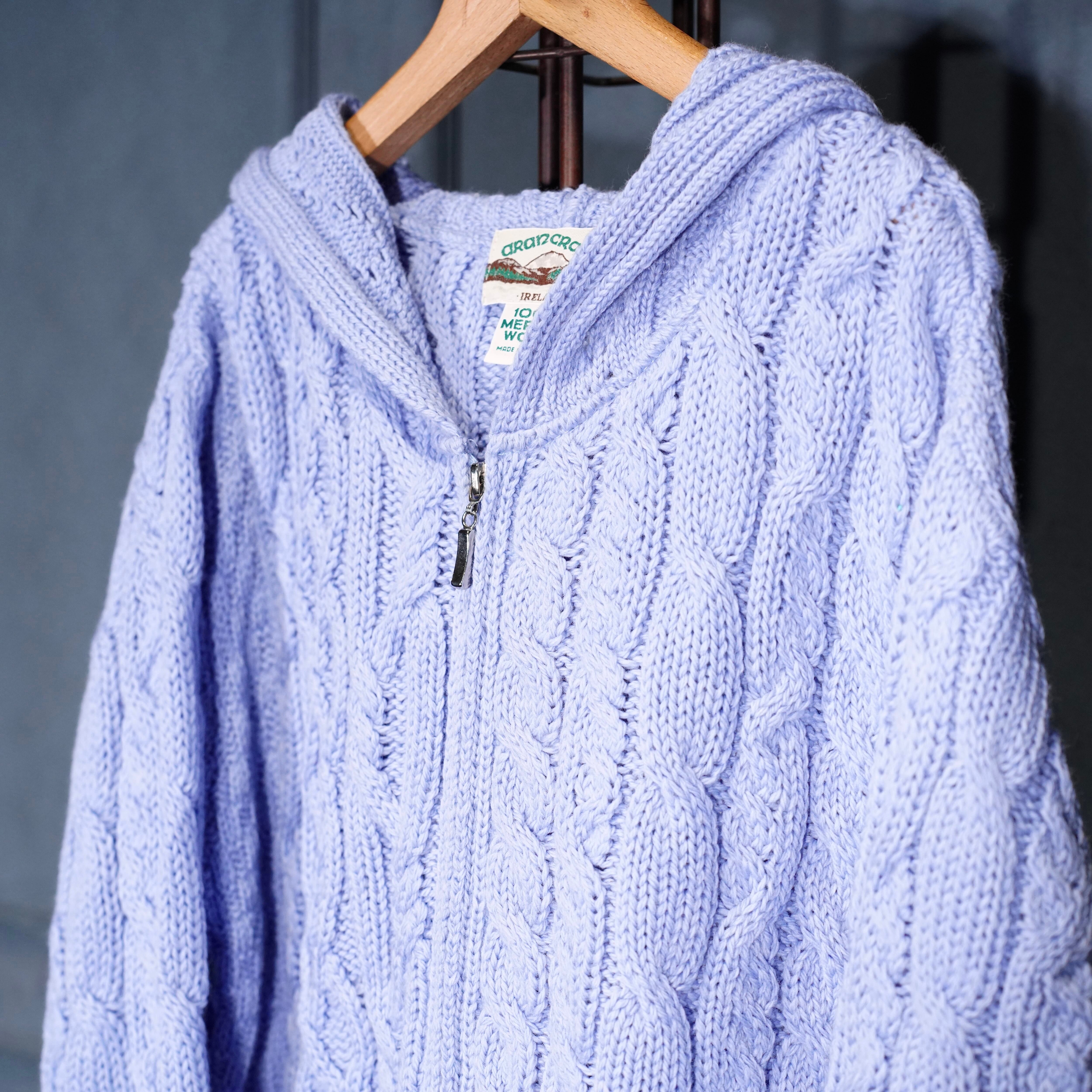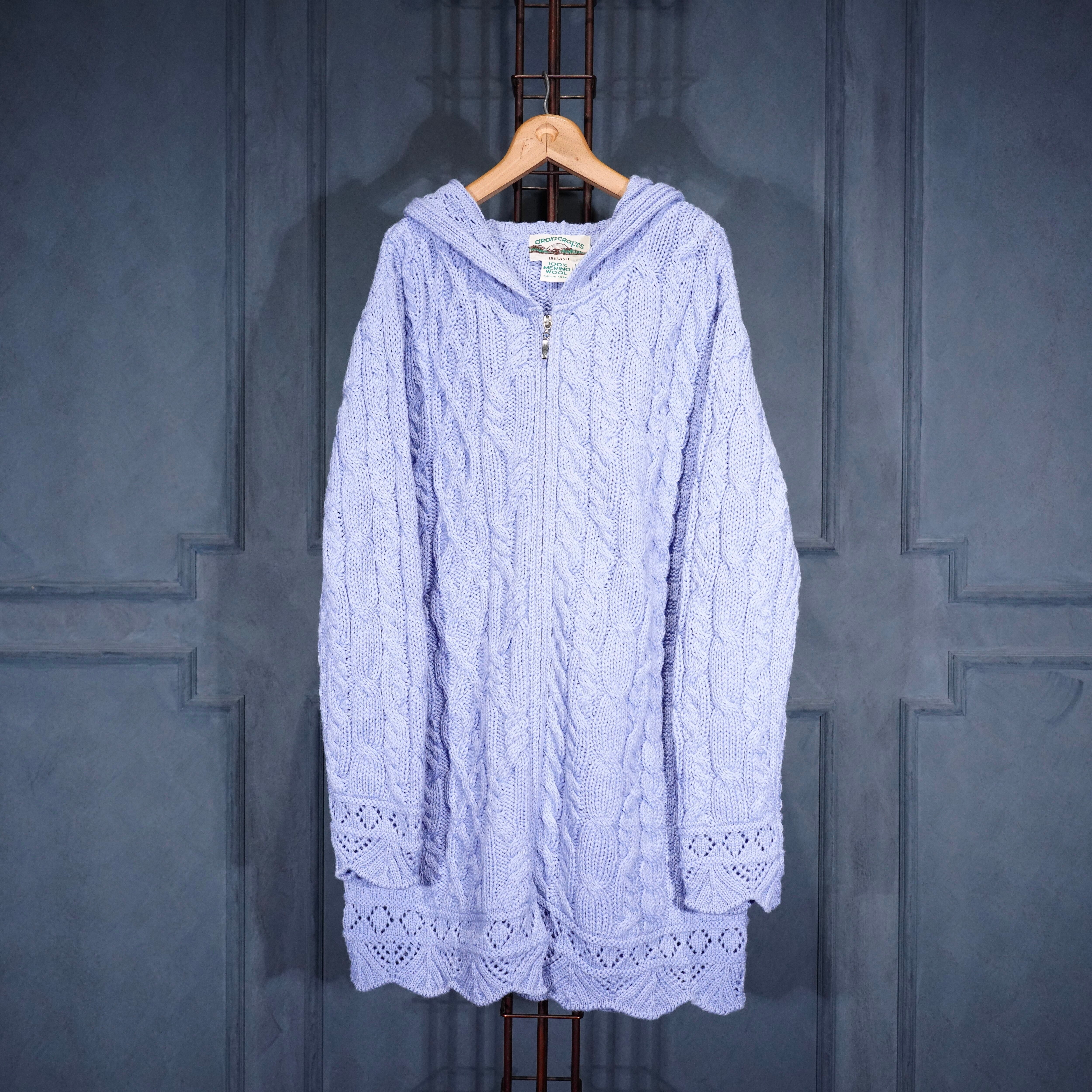EU VINTAGE aran crafts CABLE DESIGN ZIP UP KNIT HOODIE MADE IN IRELAND/ヨーロッパ古着ケーブルデザインジップアップニットフーディ(パーカー)
